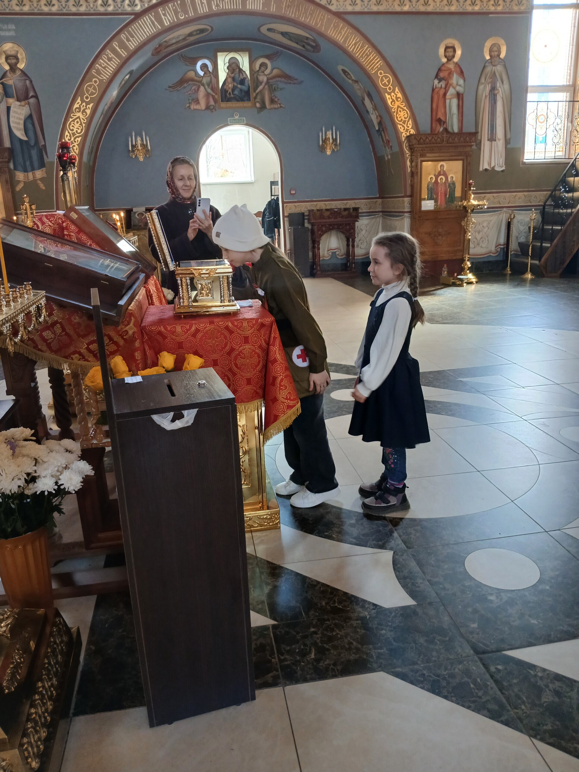 15 декабря 2025 года учащиеся СОШ № 4, ученики 6Б и 6Г классов под руководством своих классных руководителей, Александровой Нины Павловны и Тернового Иоанна Эдуардовича, совершили увлекательную экскурсию в Храм. Покрова Божией Матери. Экскурсию для ребят провел отец Илия, который рассказал ученикам об истории праздника Рождества Христова и Крещения Господня, а также о традициях празднования этих великих событий.
