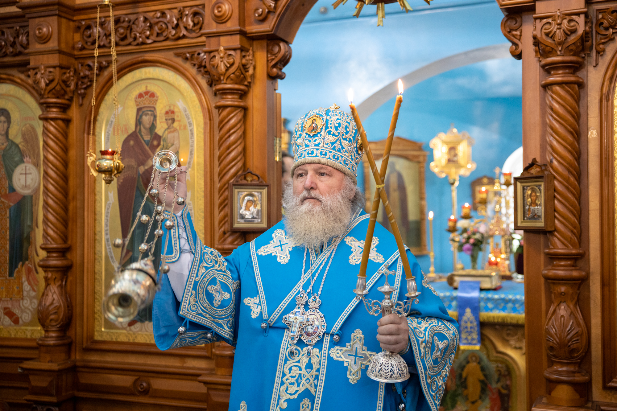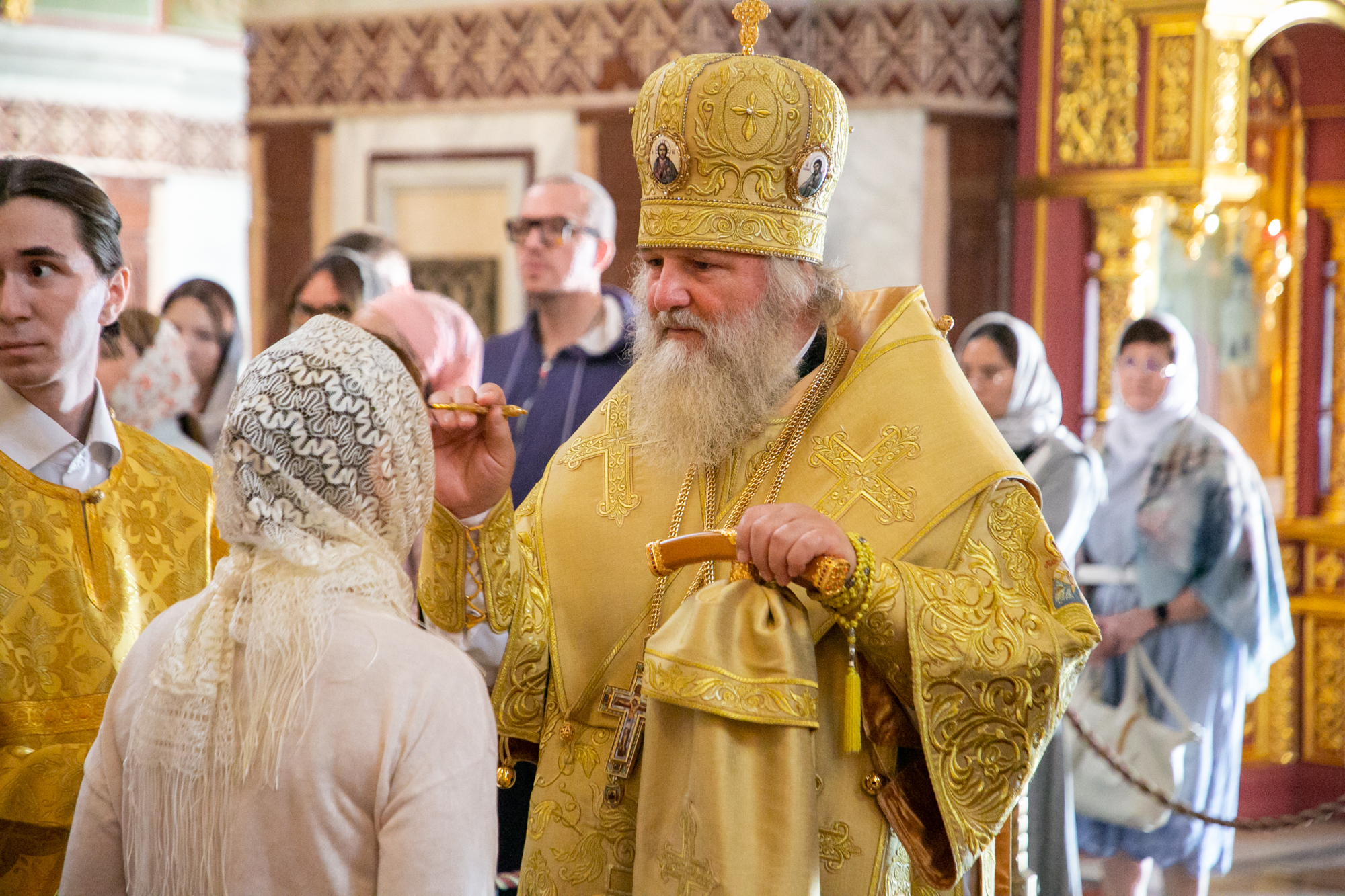 д) наблюдает за течением епархиальной жизни;