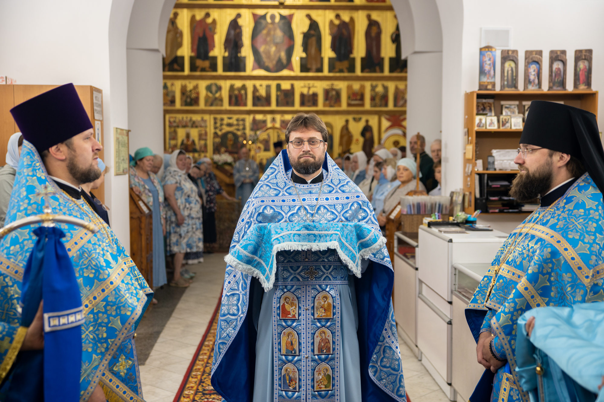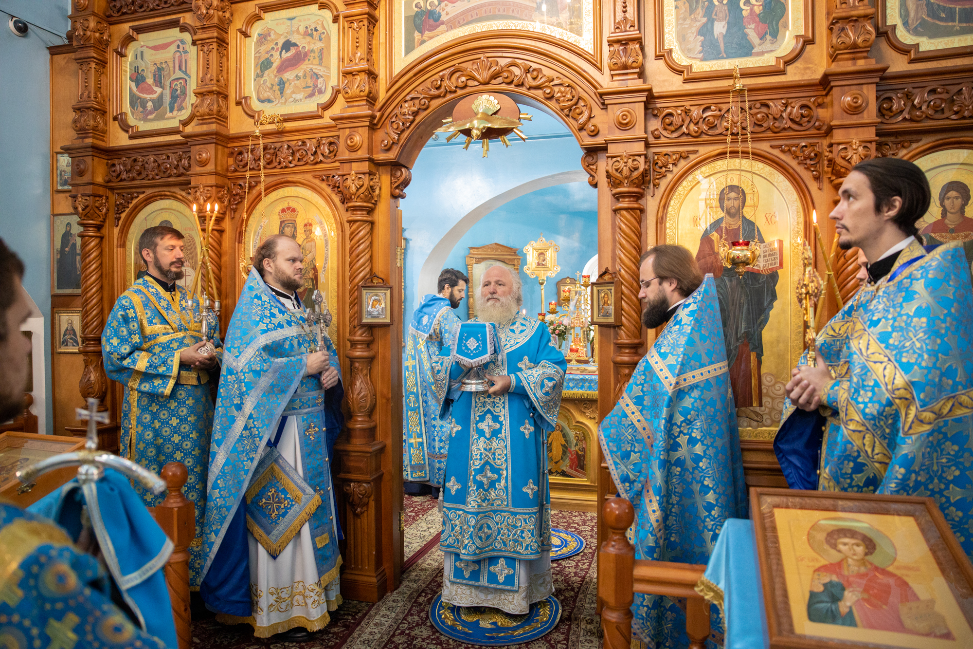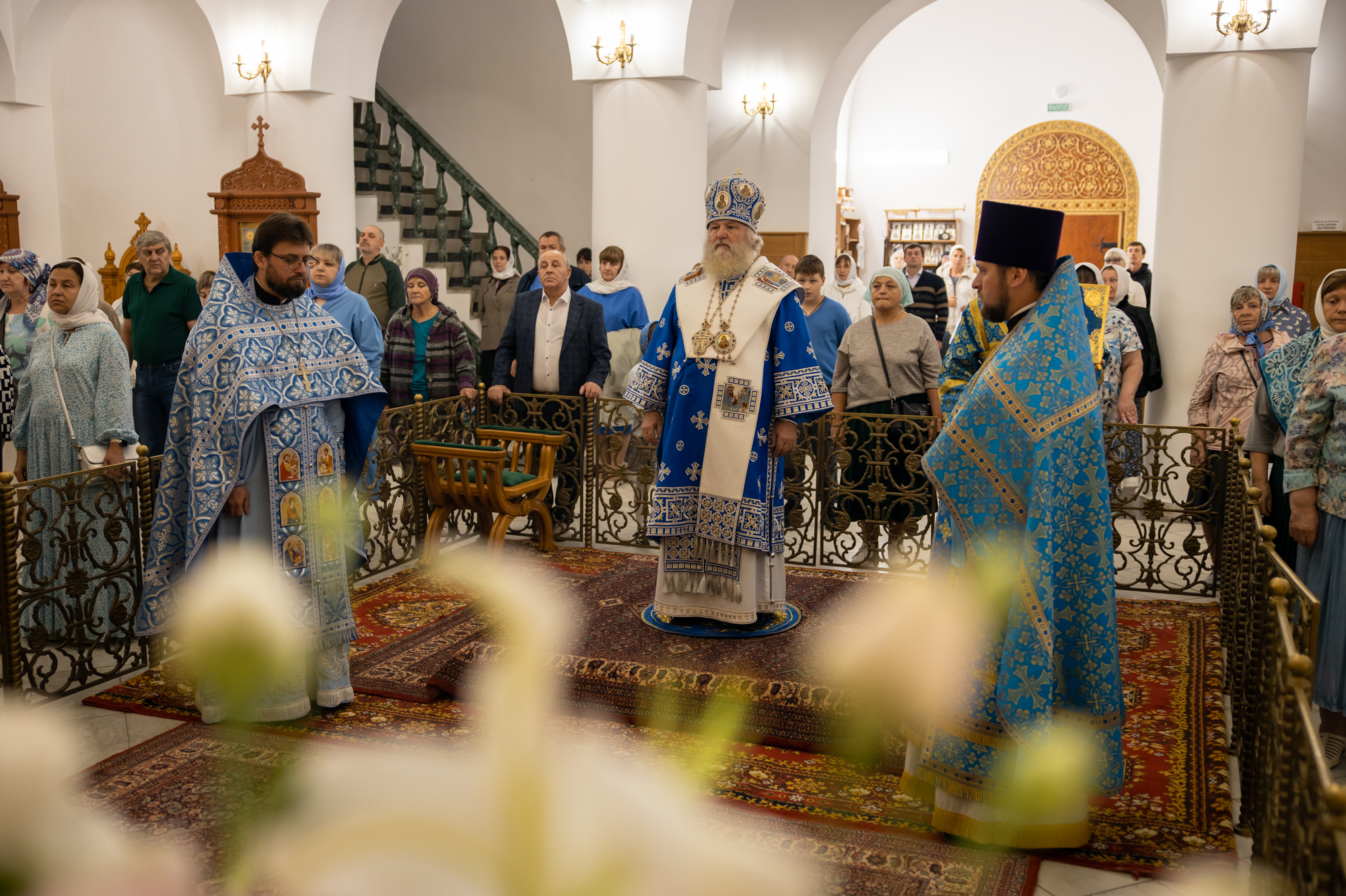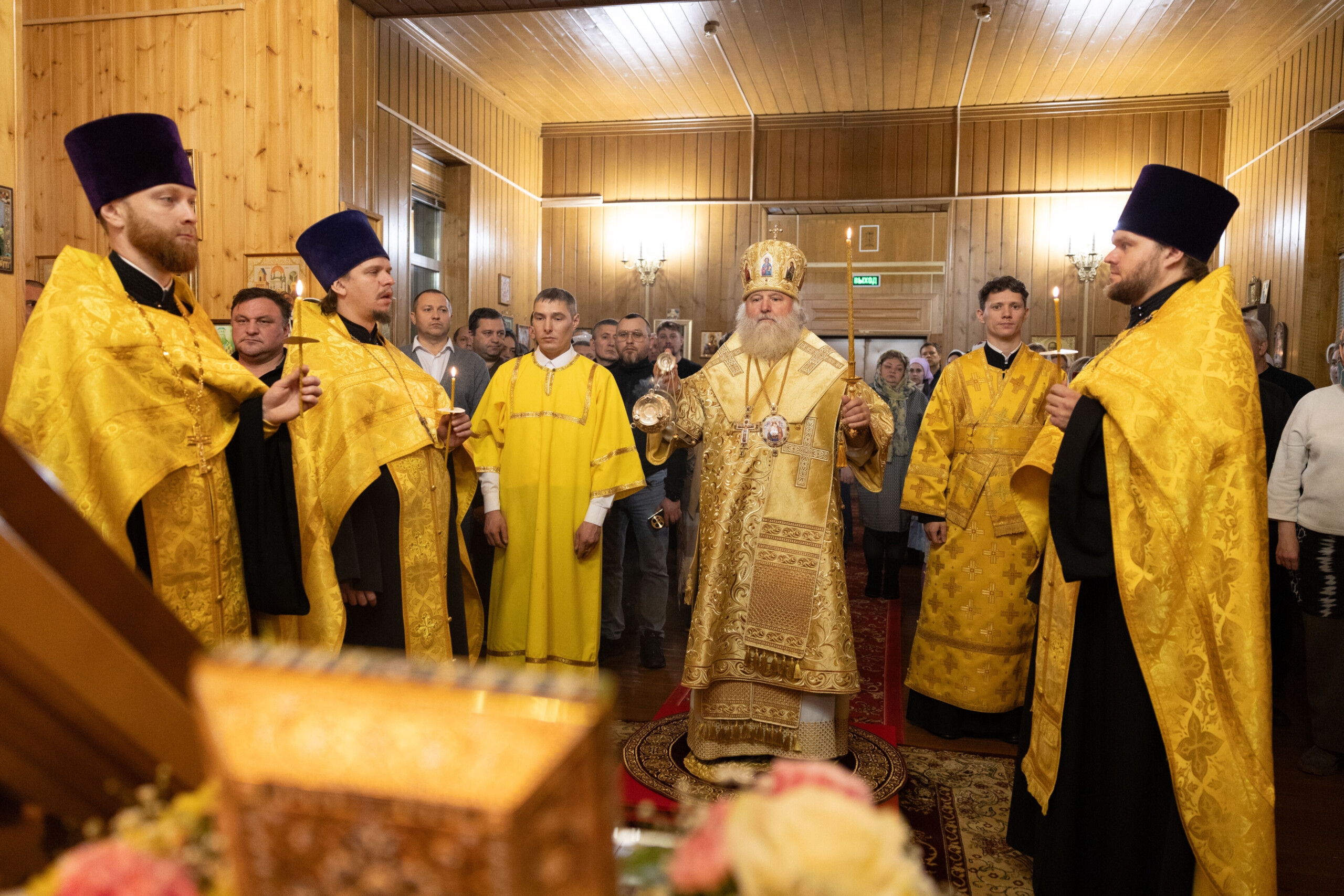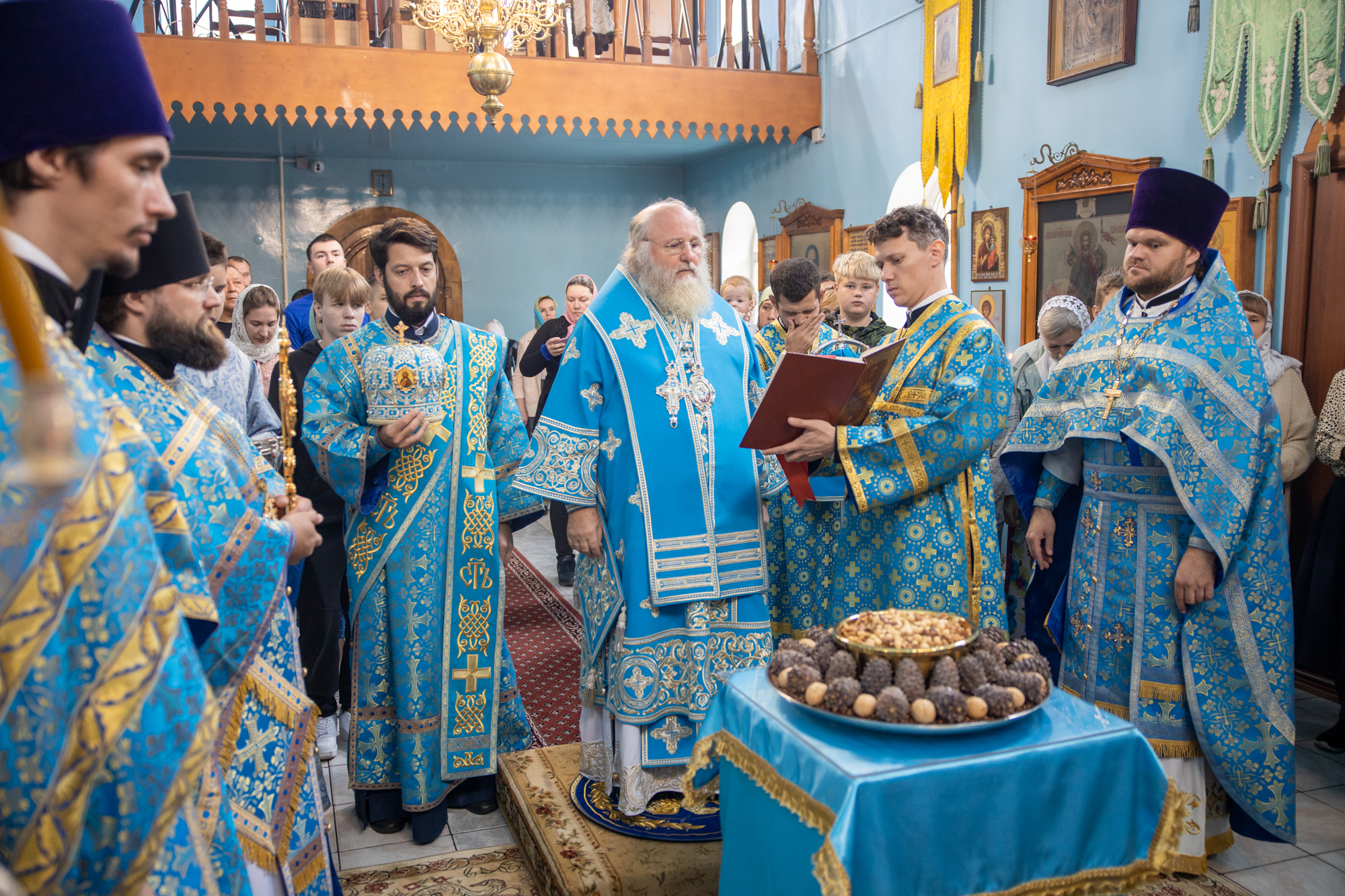Его Высокопреосвященству сослужили: благочинный Сургутского городского благочиния протоиерей Антоний Исаков, ключарь собора иерей Григорий Белянин, духовенство собора. Диаконский чин возглавил диакон Владимир Гах.