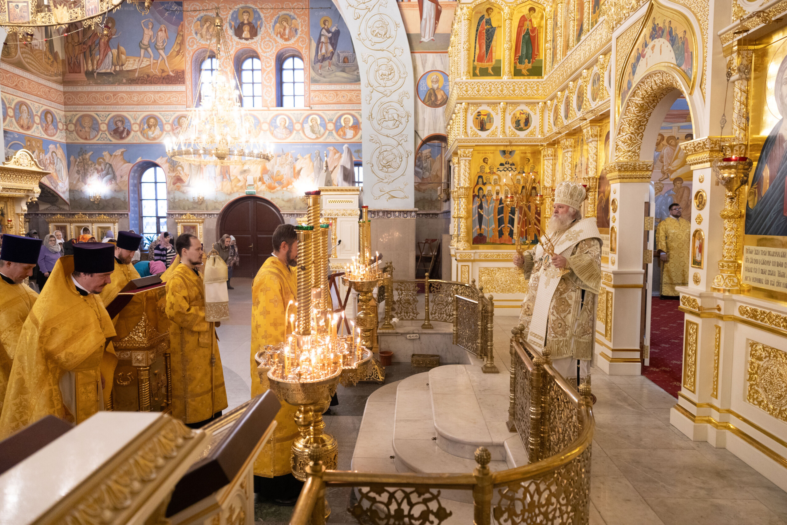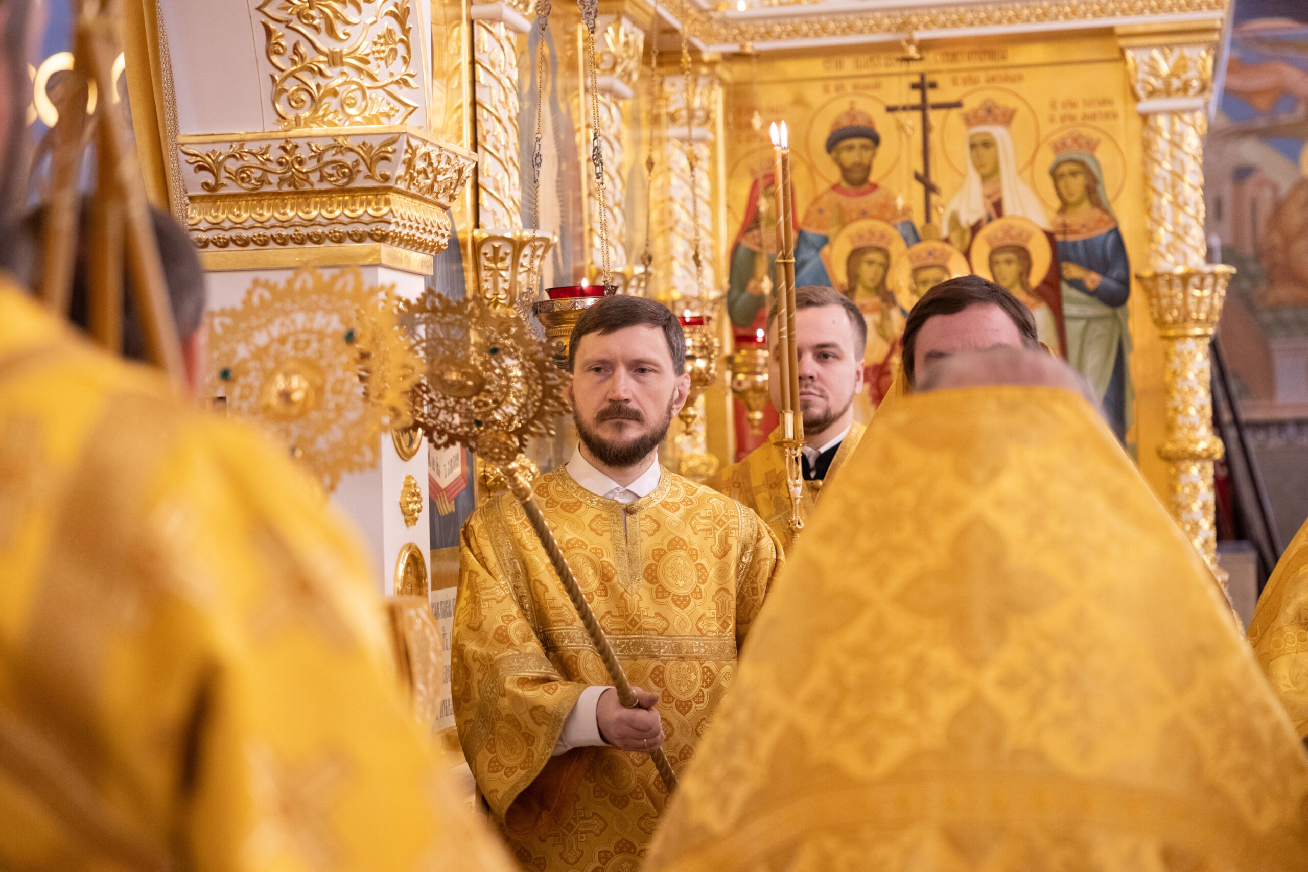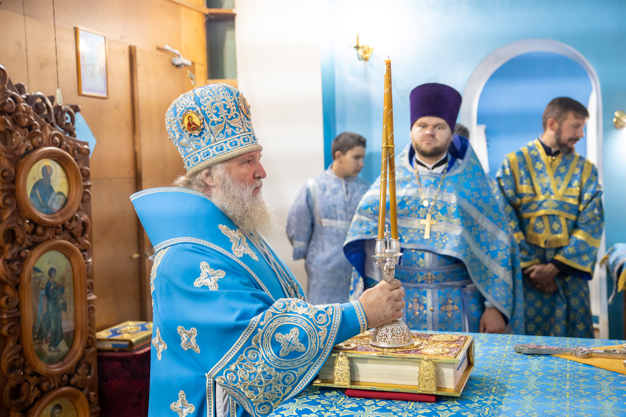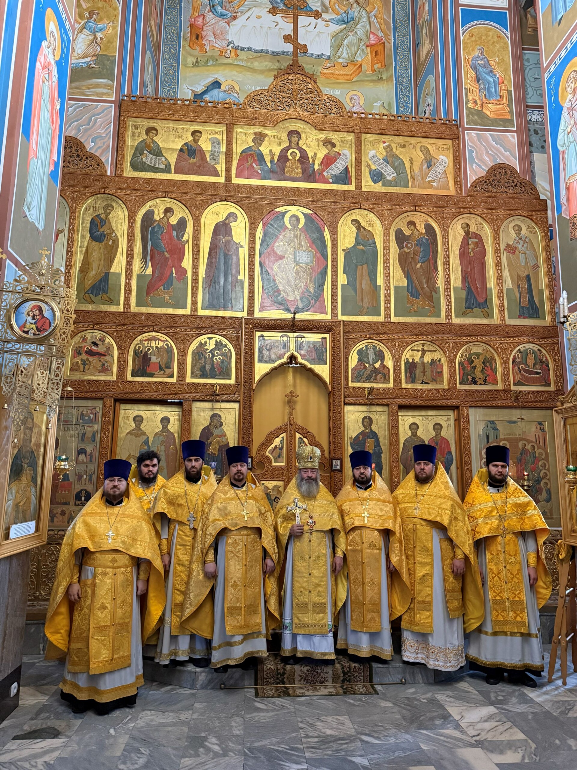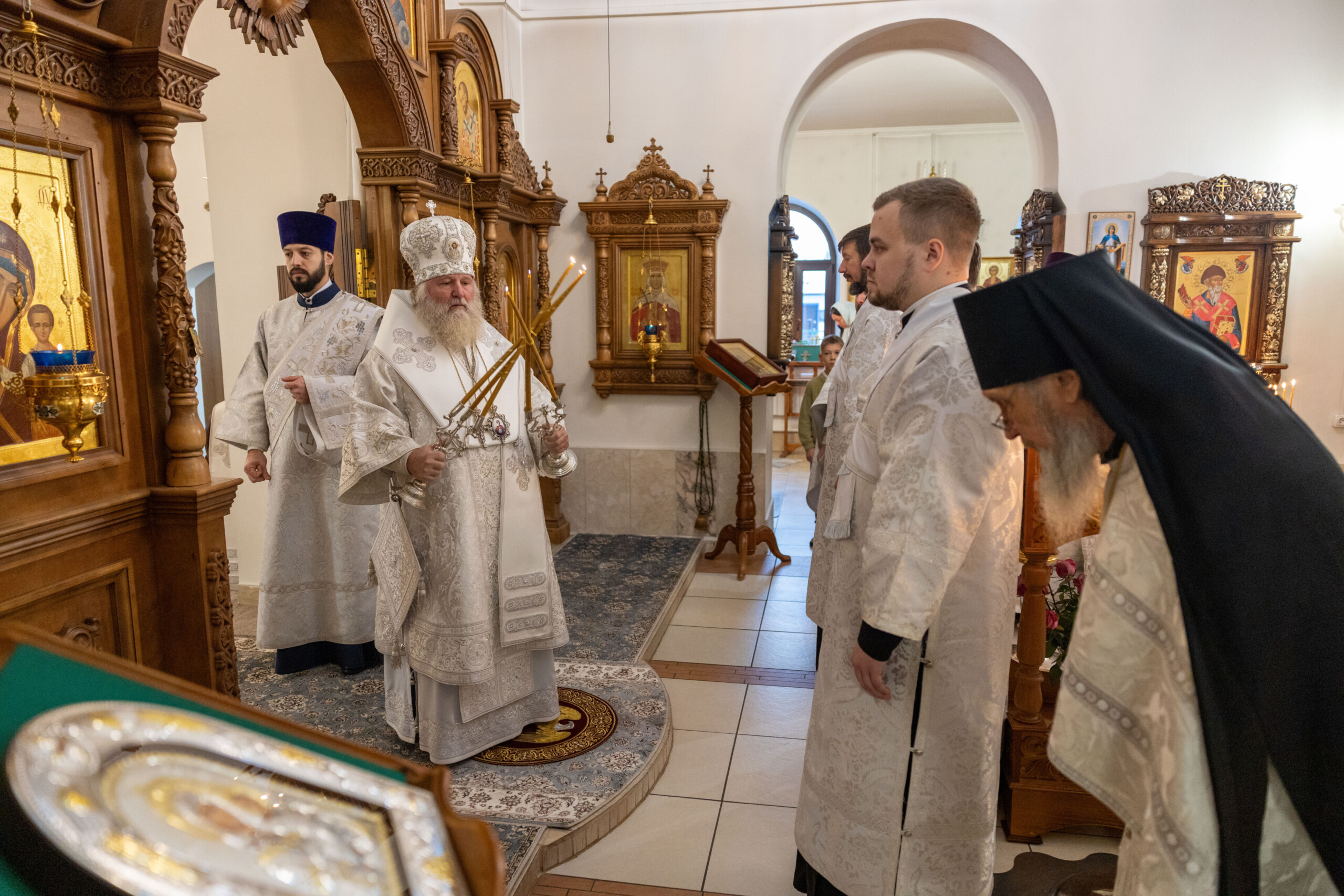 Его Высокопреосвященству сослужили: благочинный Сургутского городского благочиния протоиерей Антоний Исаков, ключарь собора иерей Григорий Белянин, духовенство собора. Диаконский чин возглавил диакон Владимир Гах.