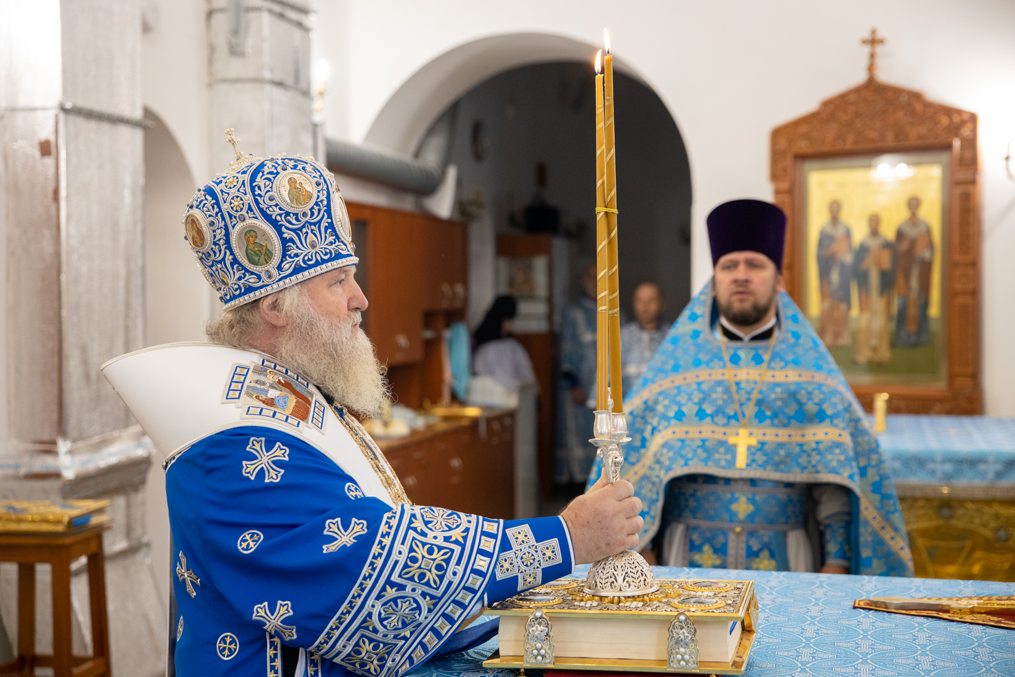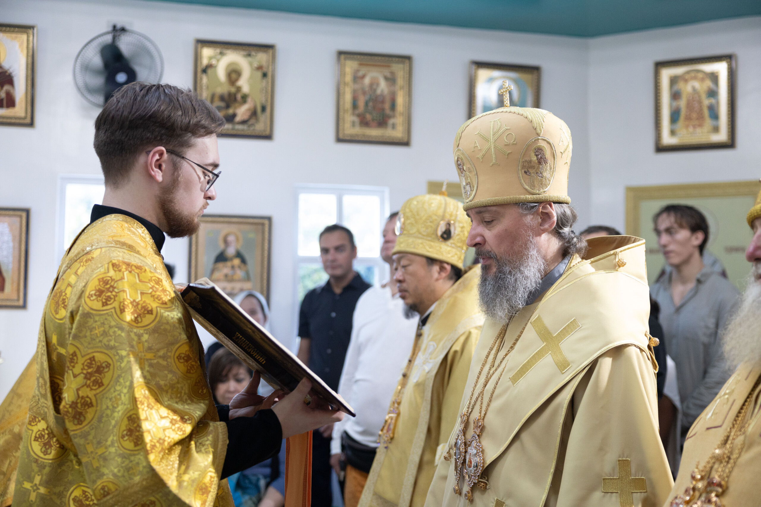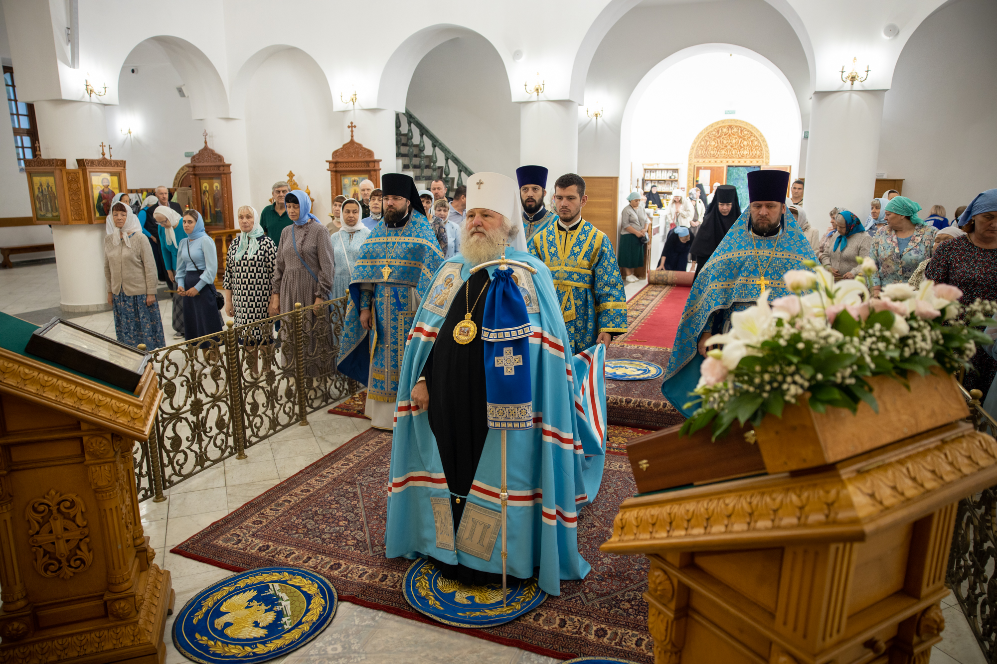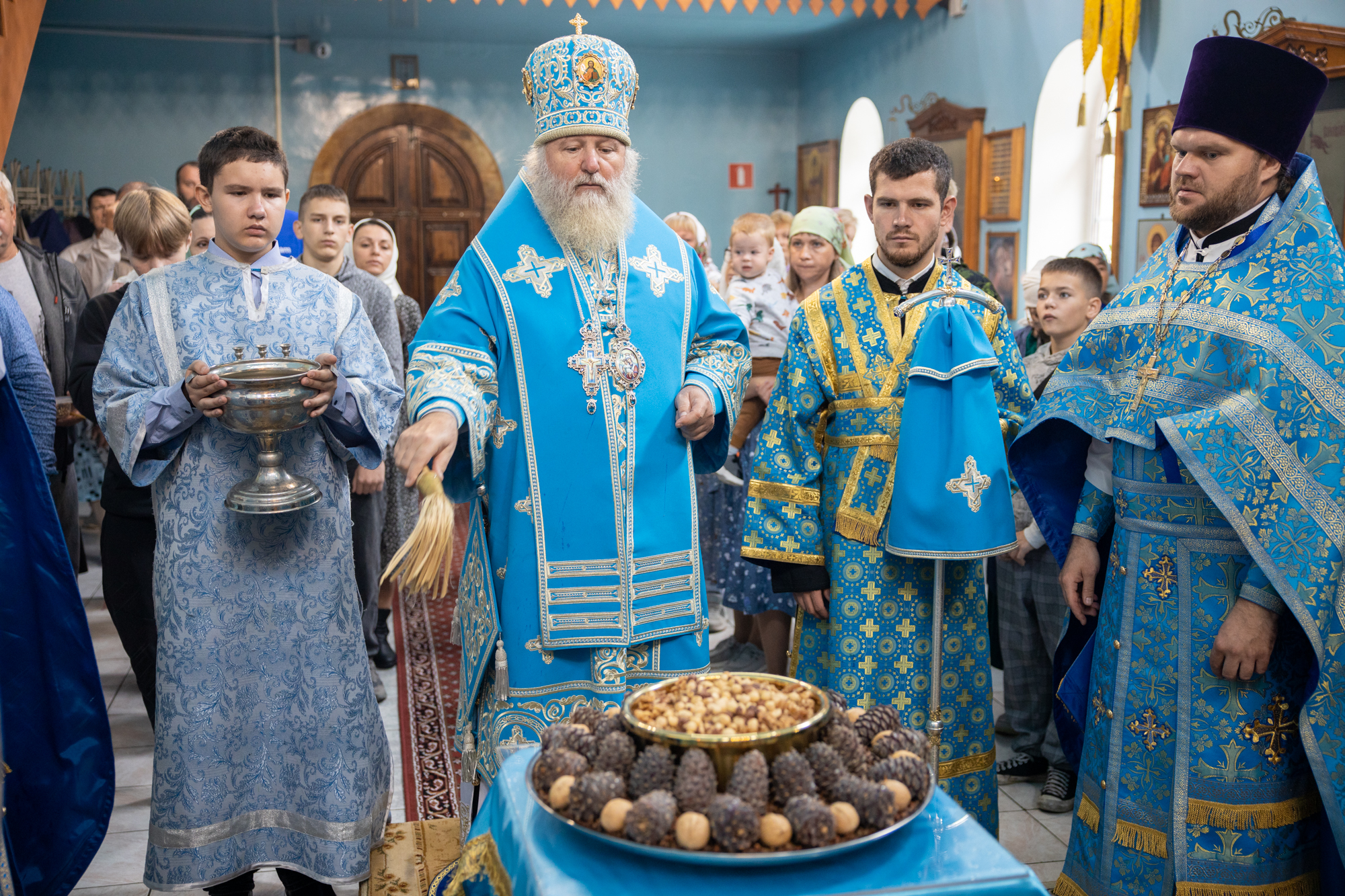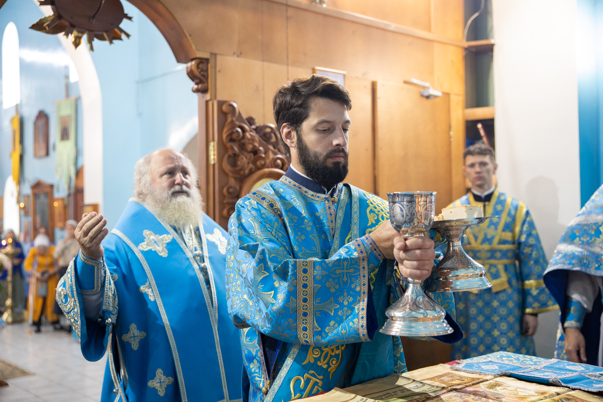 Его Высокопреосвященству сослужили: благочинный Сургутского городского благочиния протоиерей Антоний Исаков, ключарь собора иерей Григорий Белянин, духовенство собора. Диаконский чин возглавил диакон Владимир Гах.