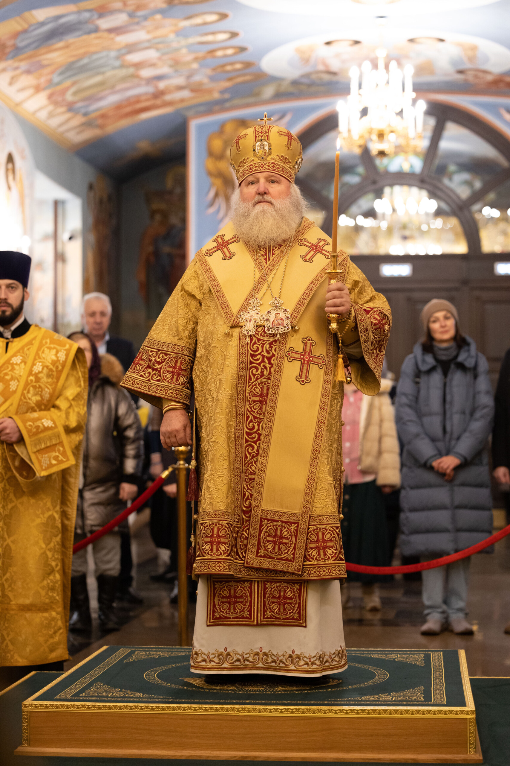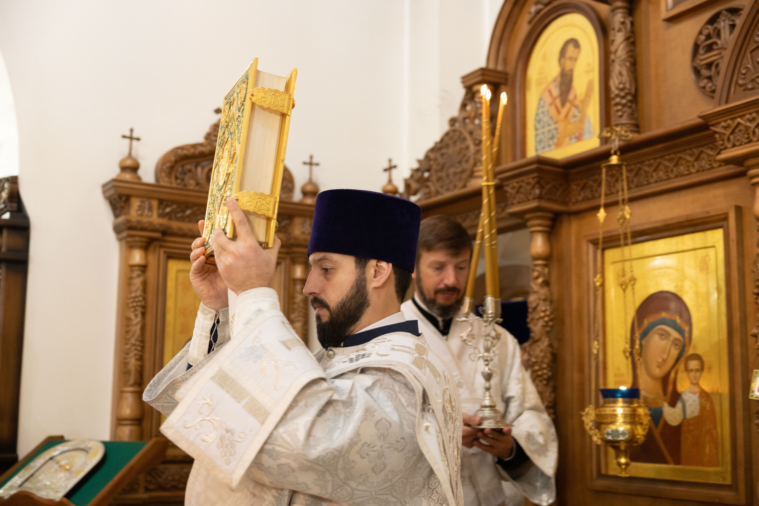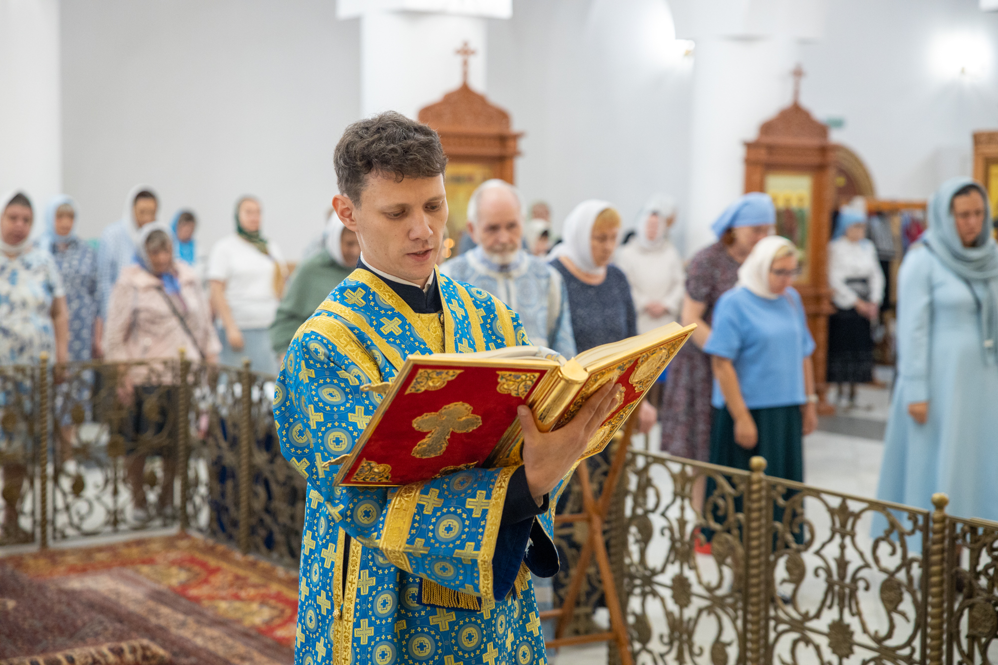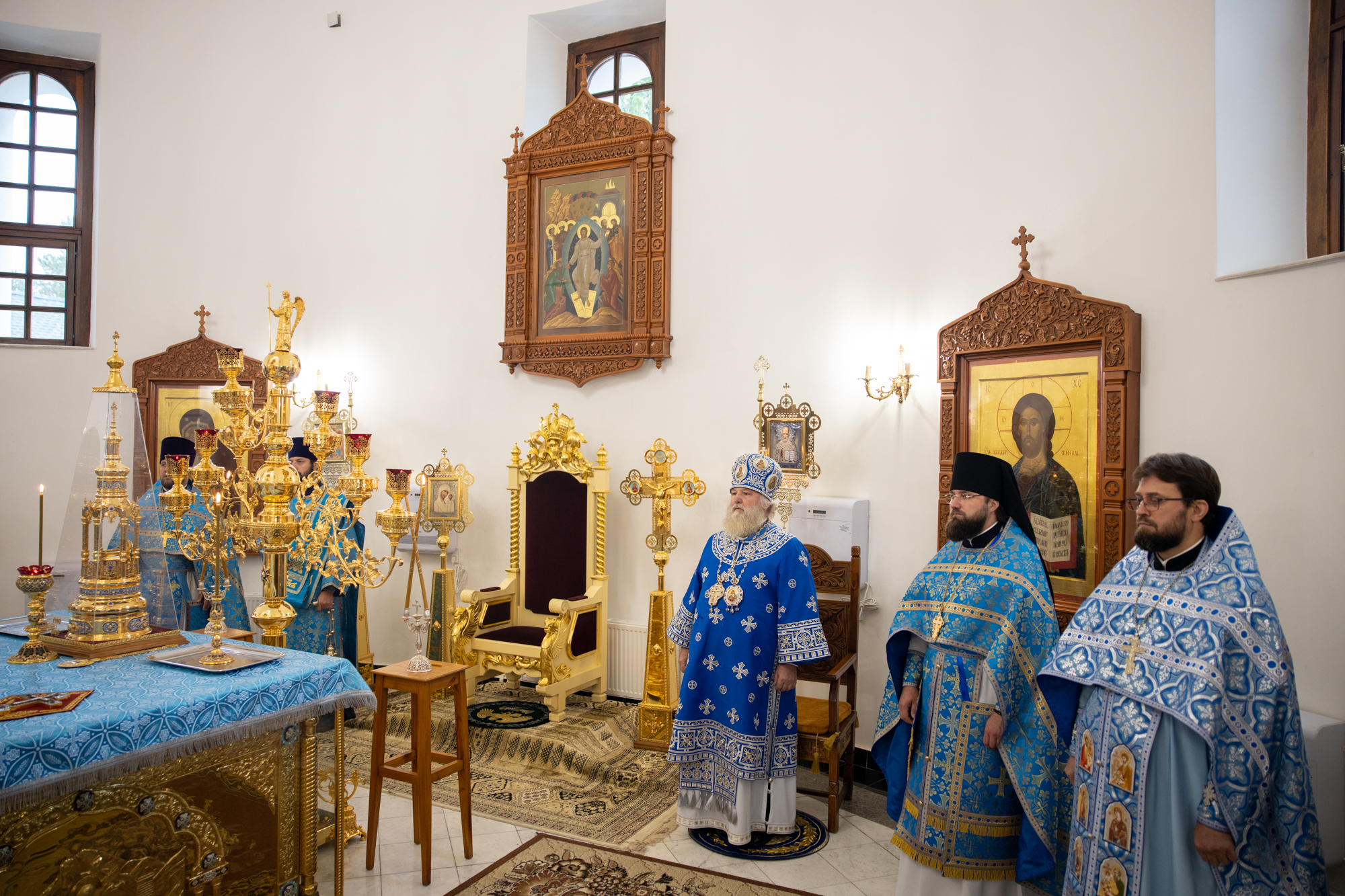 Его Высокопреосвященству сослужили: благочинный Сургутского городского благочиния протоиерей Антоний Исаков, ключарь собора иерей Григорий Белянин, духовенство собора. Диаконский чин возглавил диакон Владимир Гах.