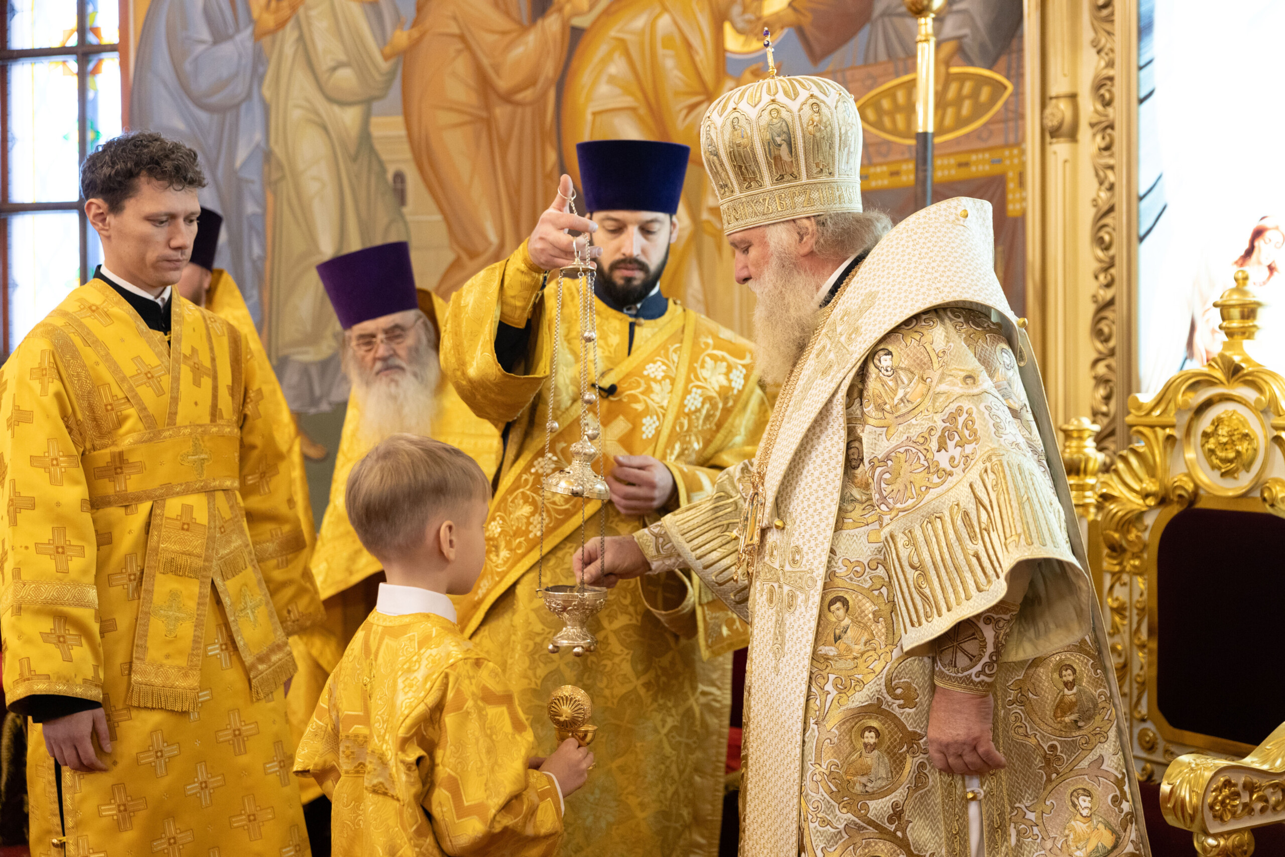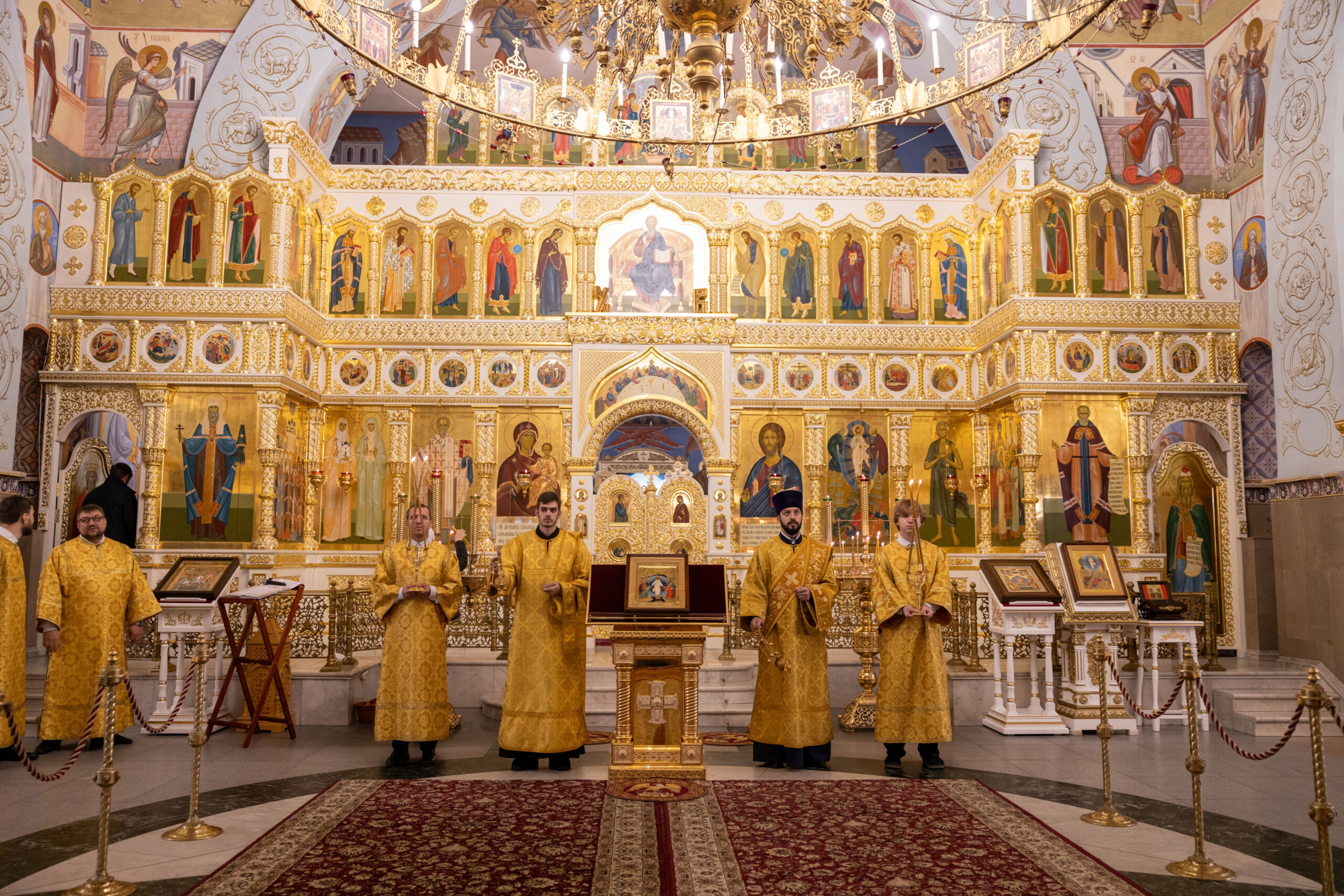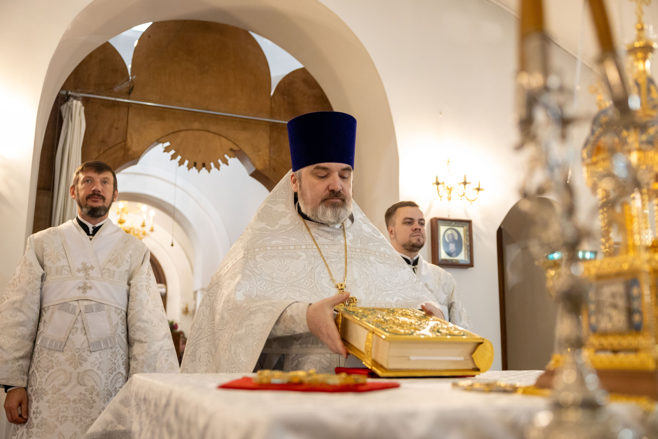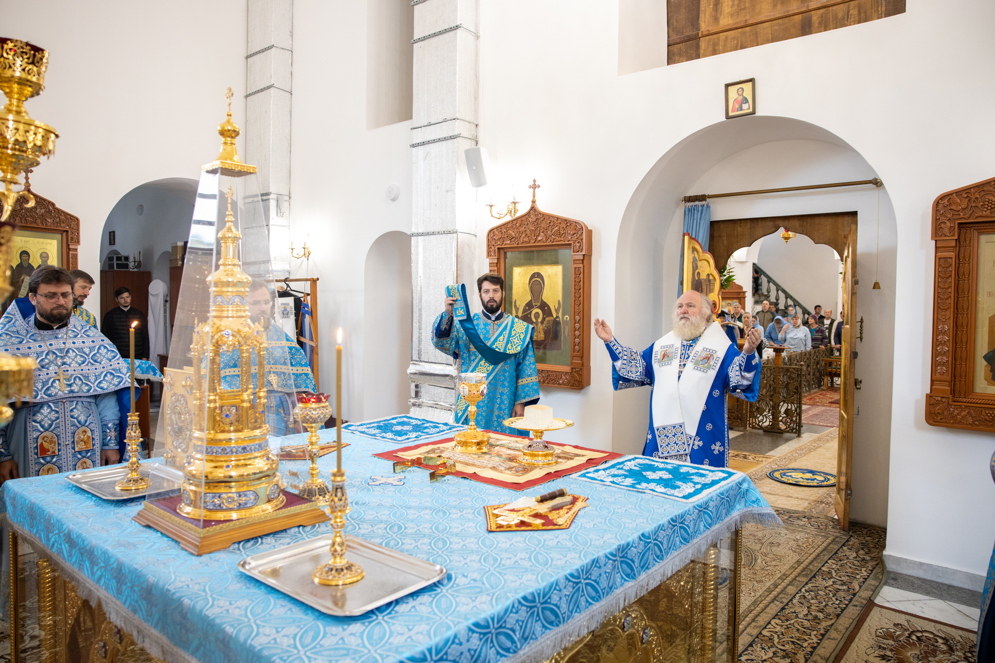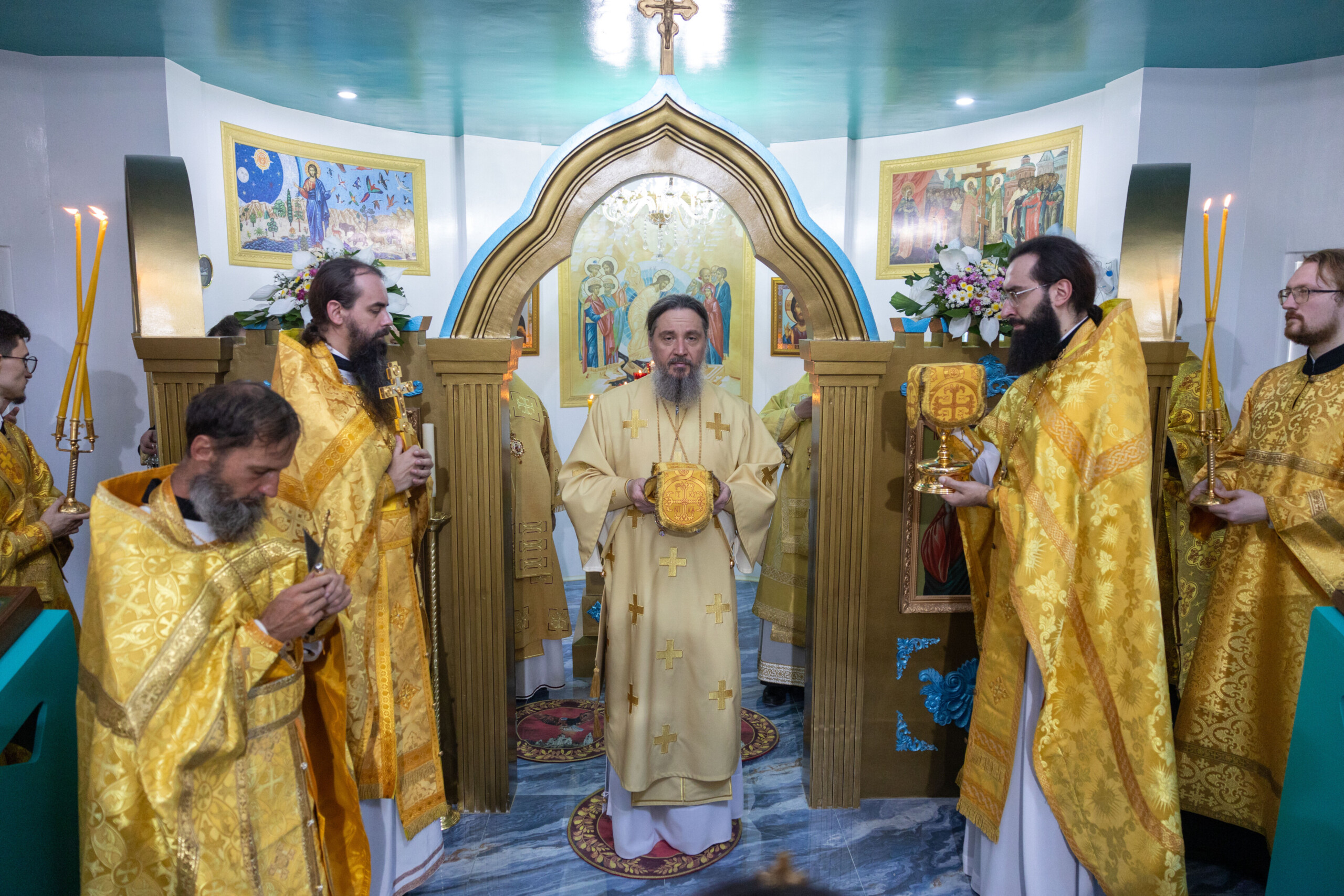 Его Высокопреосвященству сослужили: благочинный Сургутского городского благочиния протоиерей Антоний Исаков, ключарь собора иерей Григорий Белянин, духовенство собора. Диаконский чин возглавил диакон Владимир Гах.