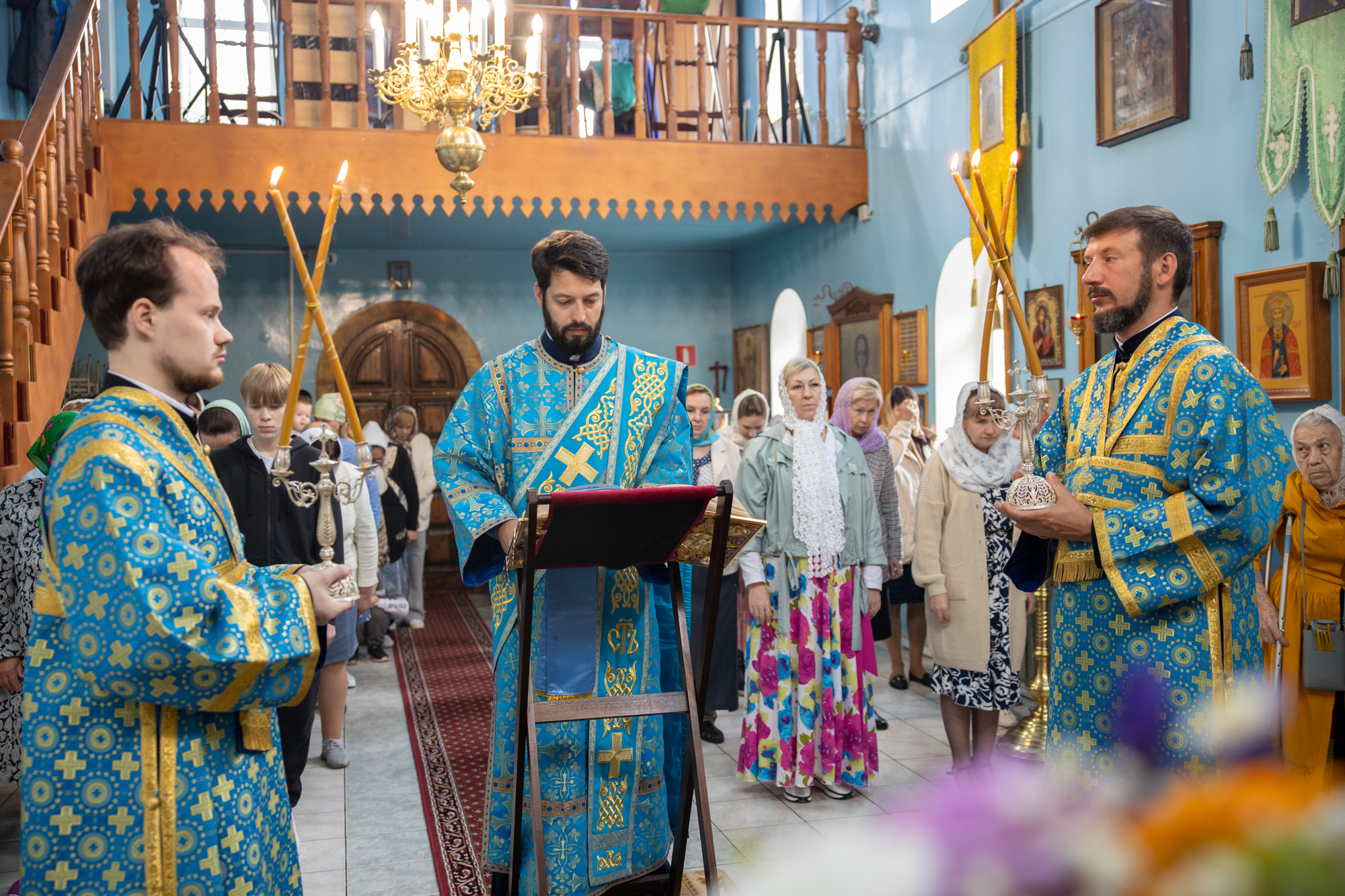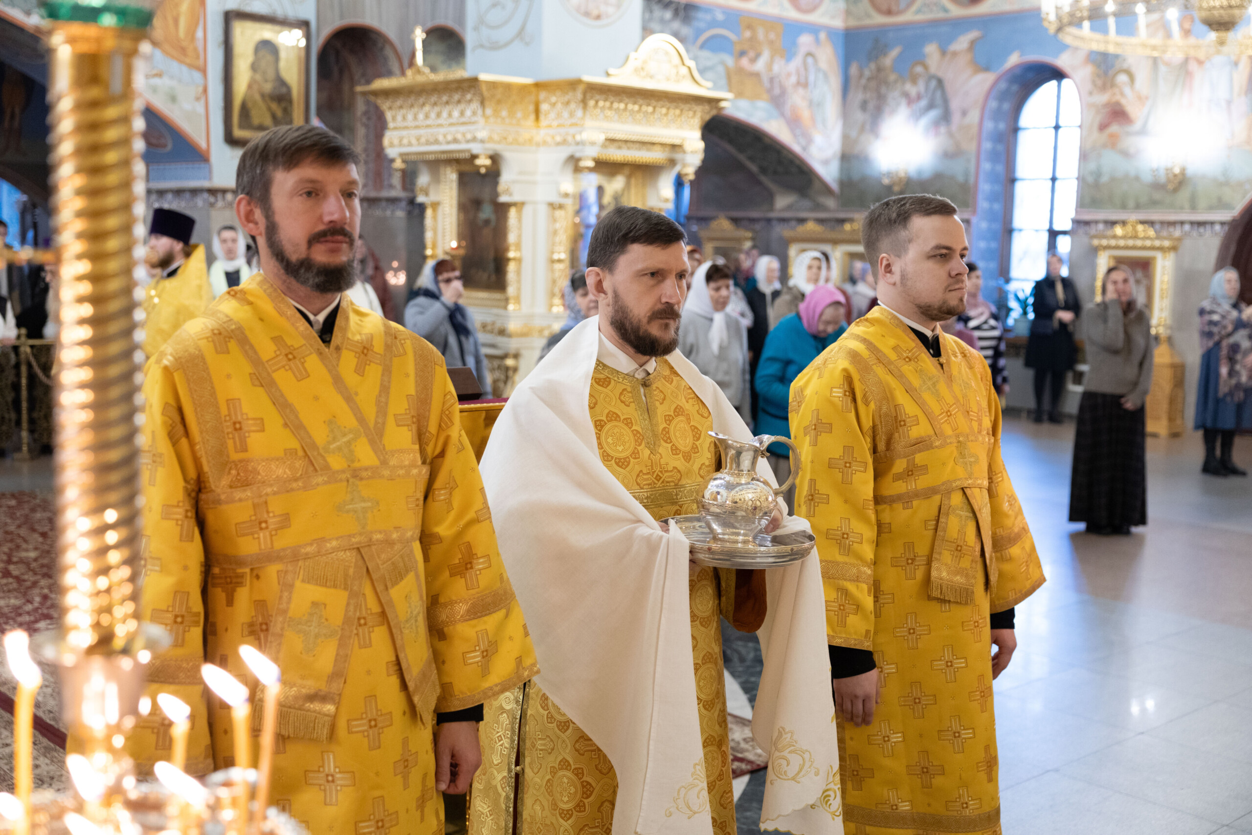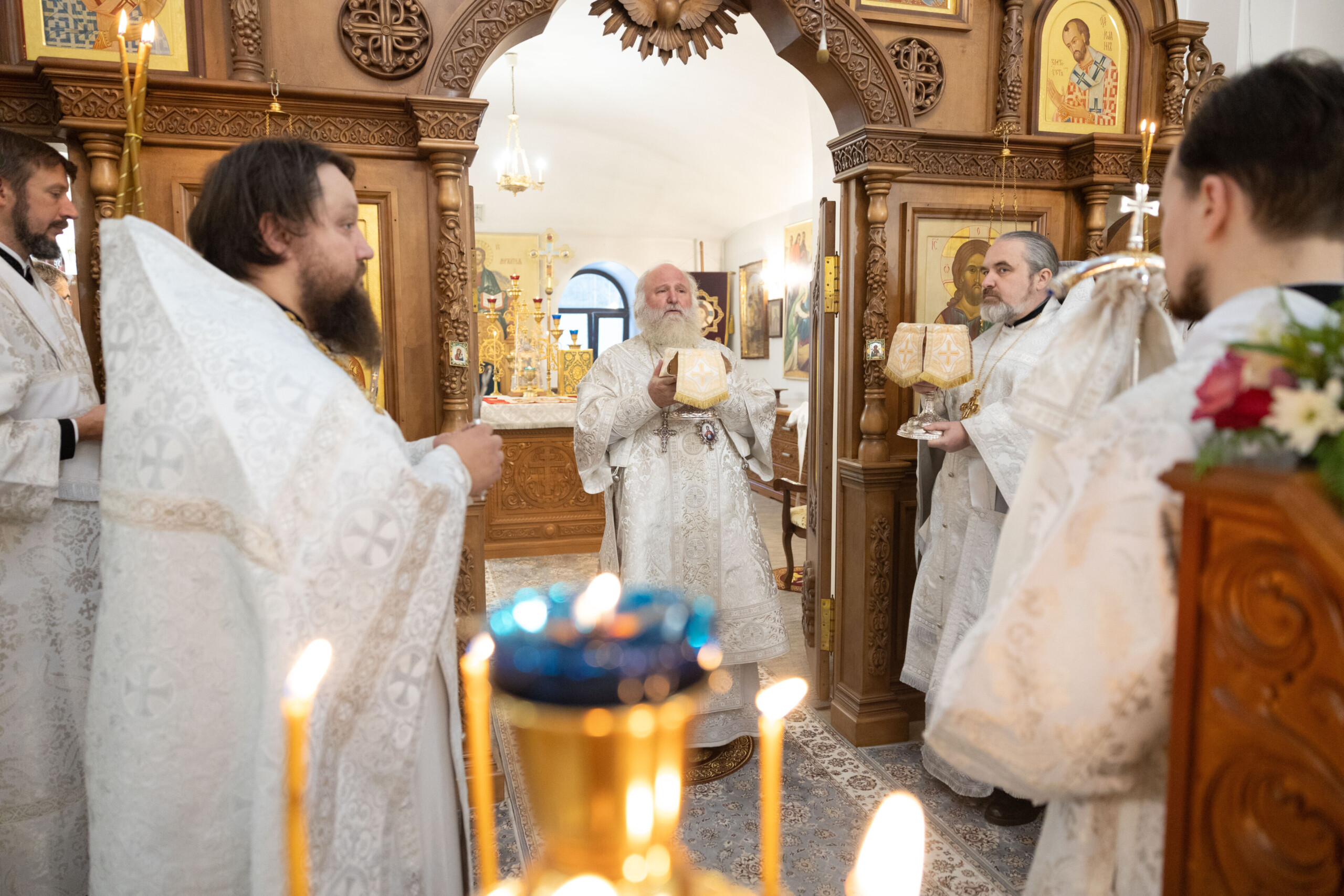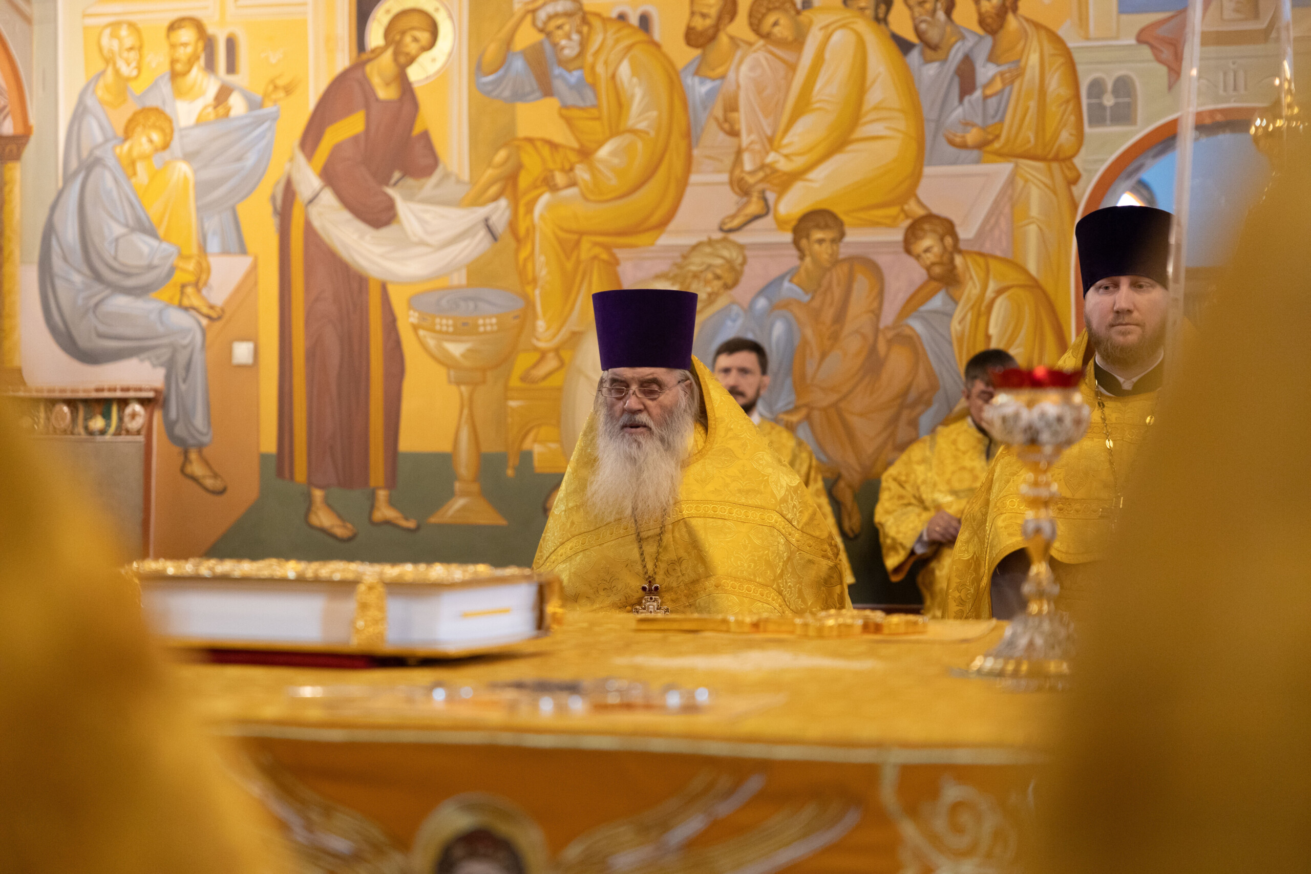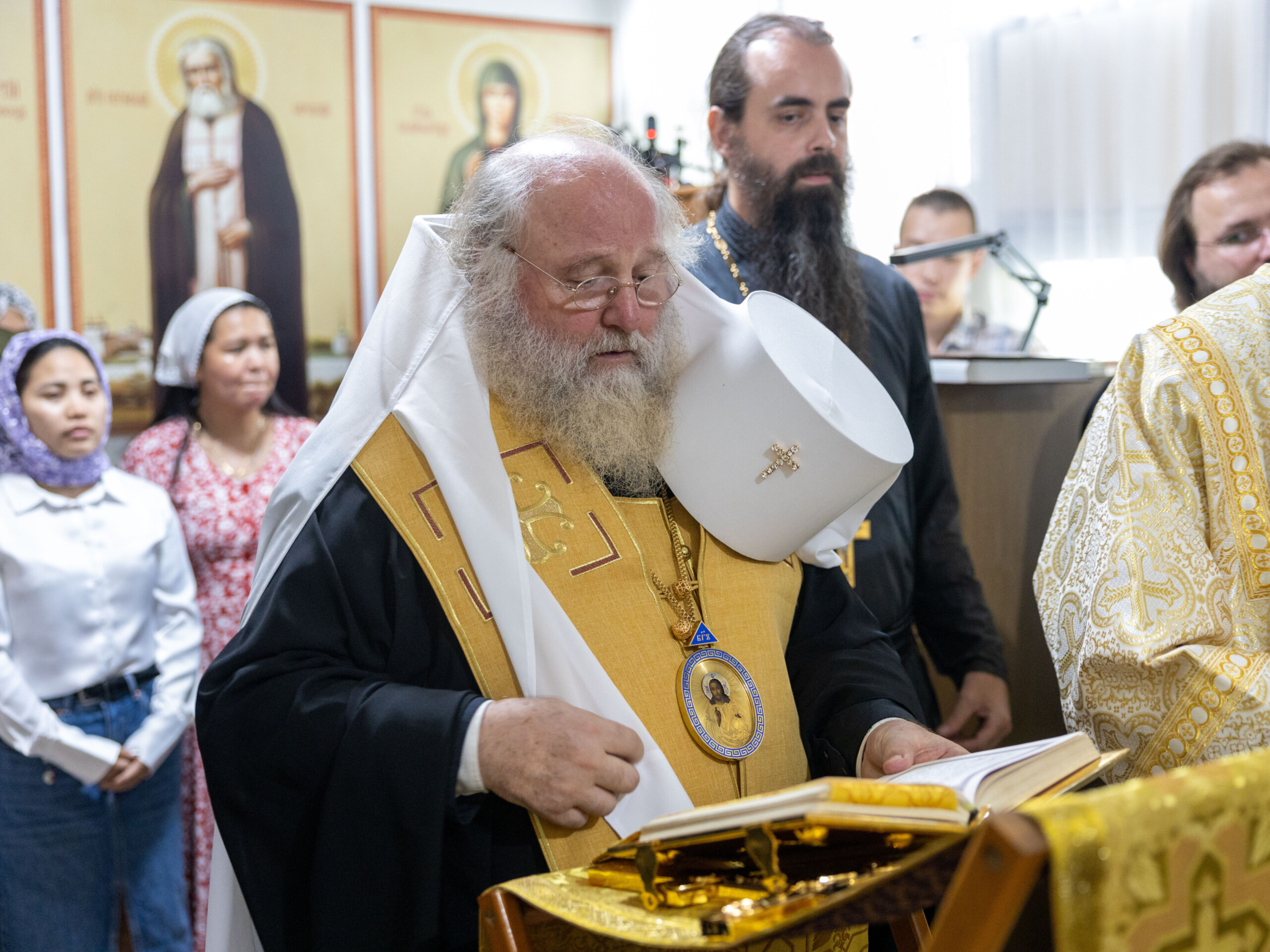 Его Высокопреосвященству сослужили: благочинный Сургутского городского благочиния протоиерей Антоний Исаков, ключарь собора иерей Григорий Белянин, духовенство собора. Диаконский чин возглавил диакон Владимир Гах.