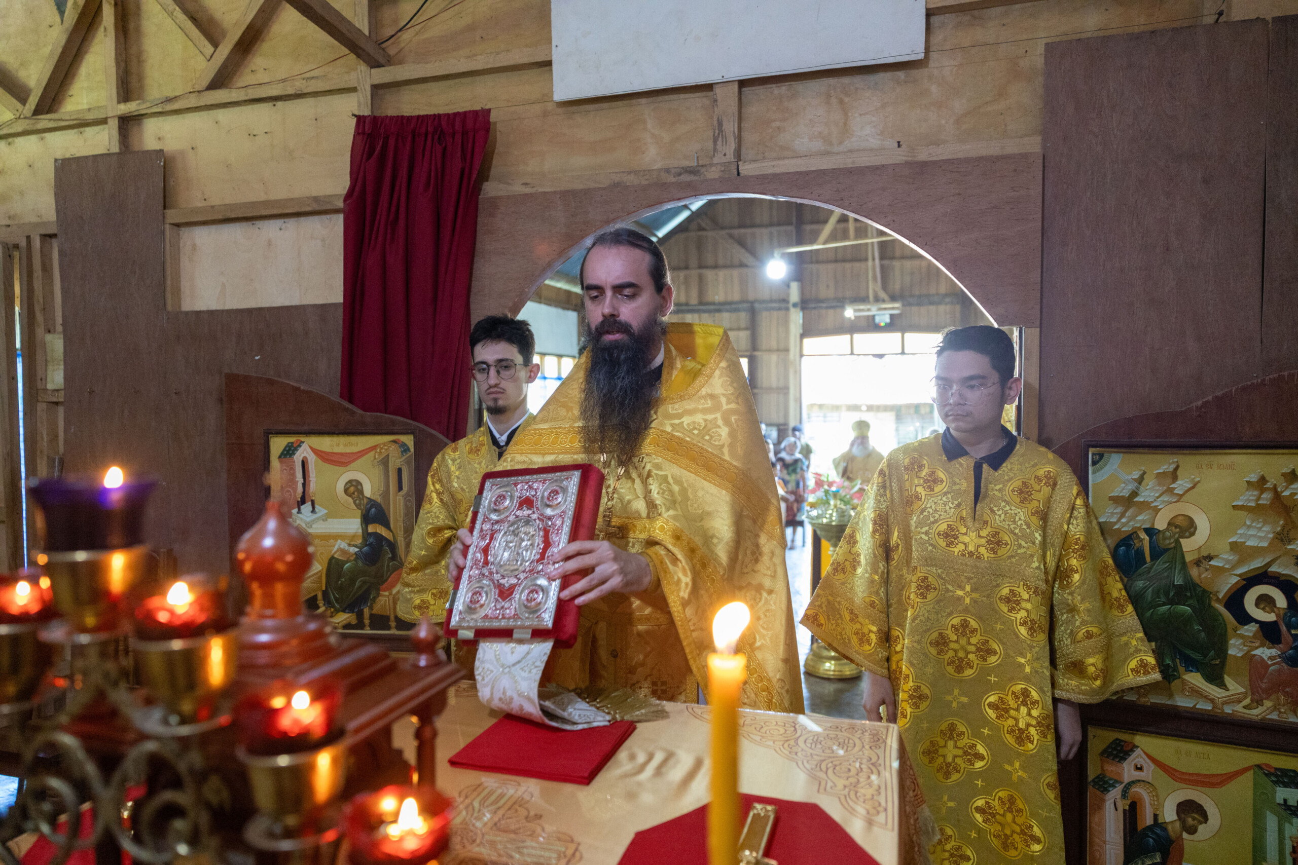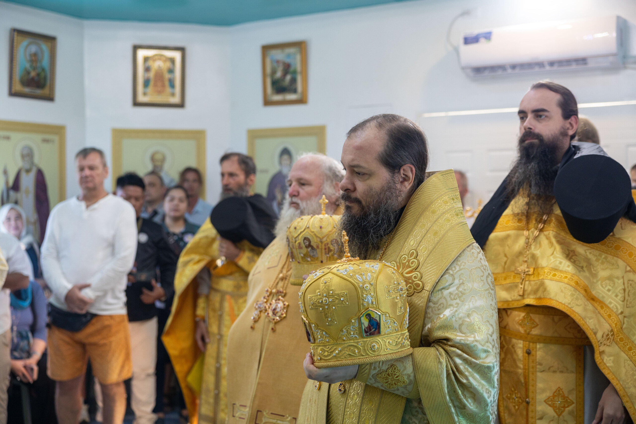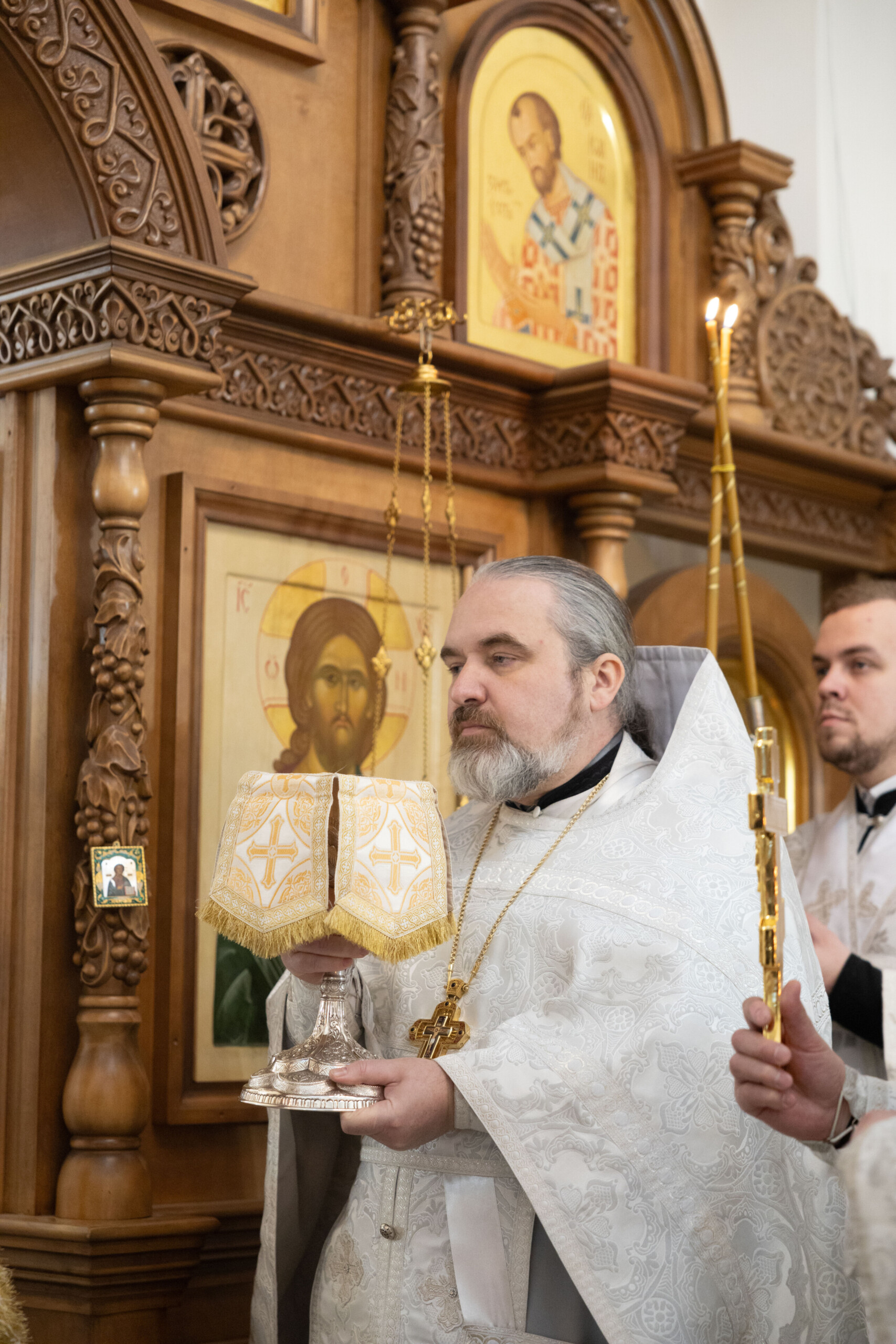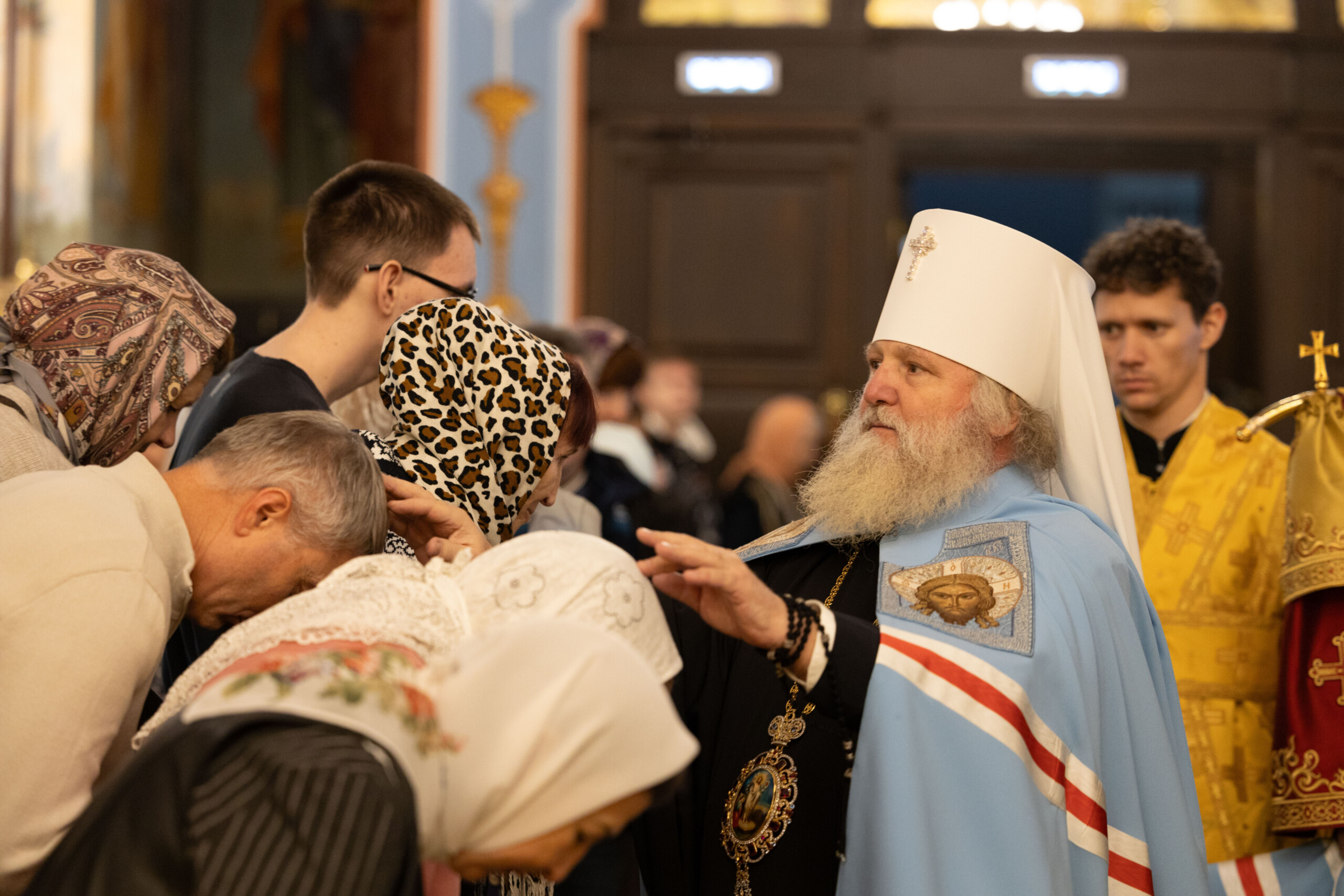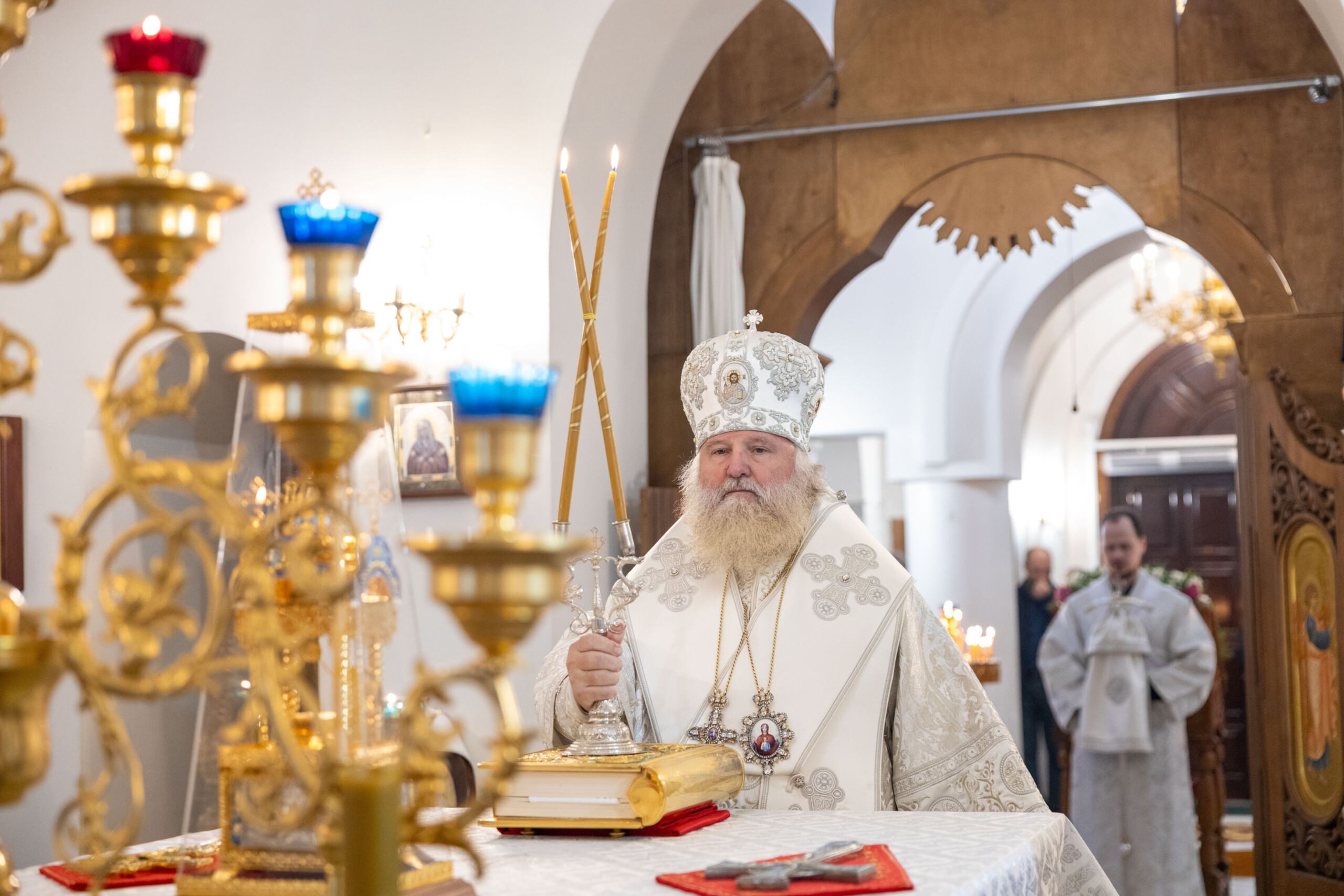 Его Высокопреосвященству сослужили: благочинный Сургутского городского благочиния протоиерей Антоний Исаков, ключарь собора иерей Григорий Белянин, духовенство собора. Диаконский чин возглавил диакон Владимир Гах.