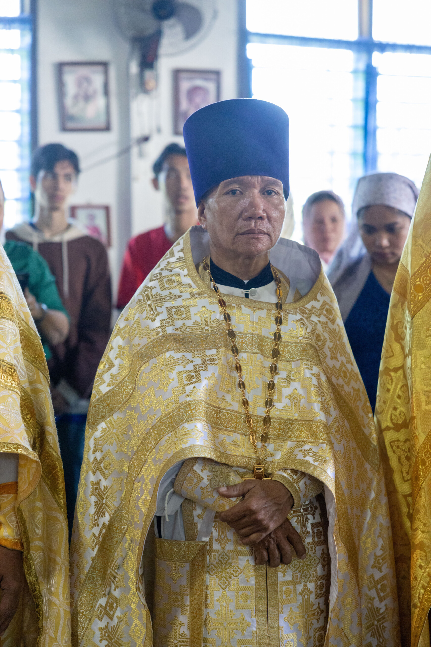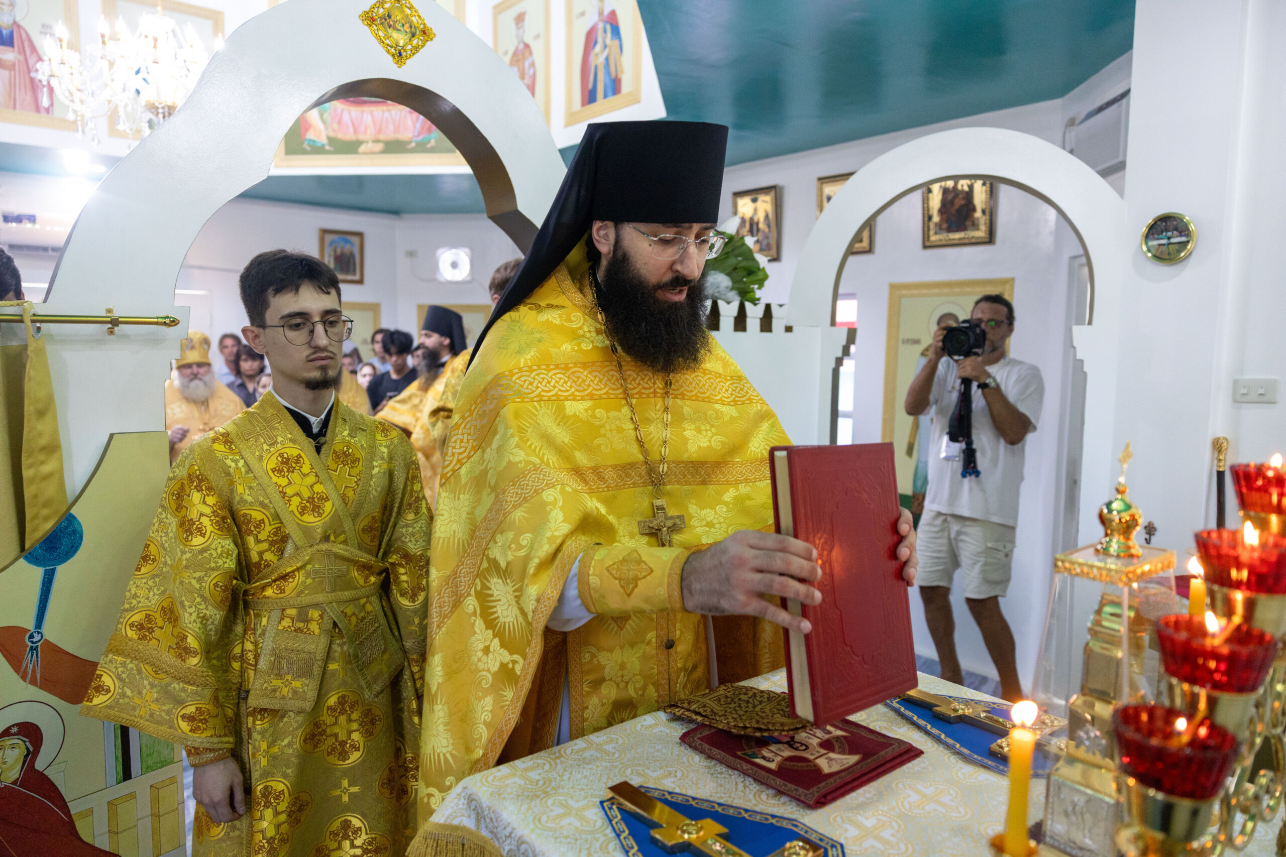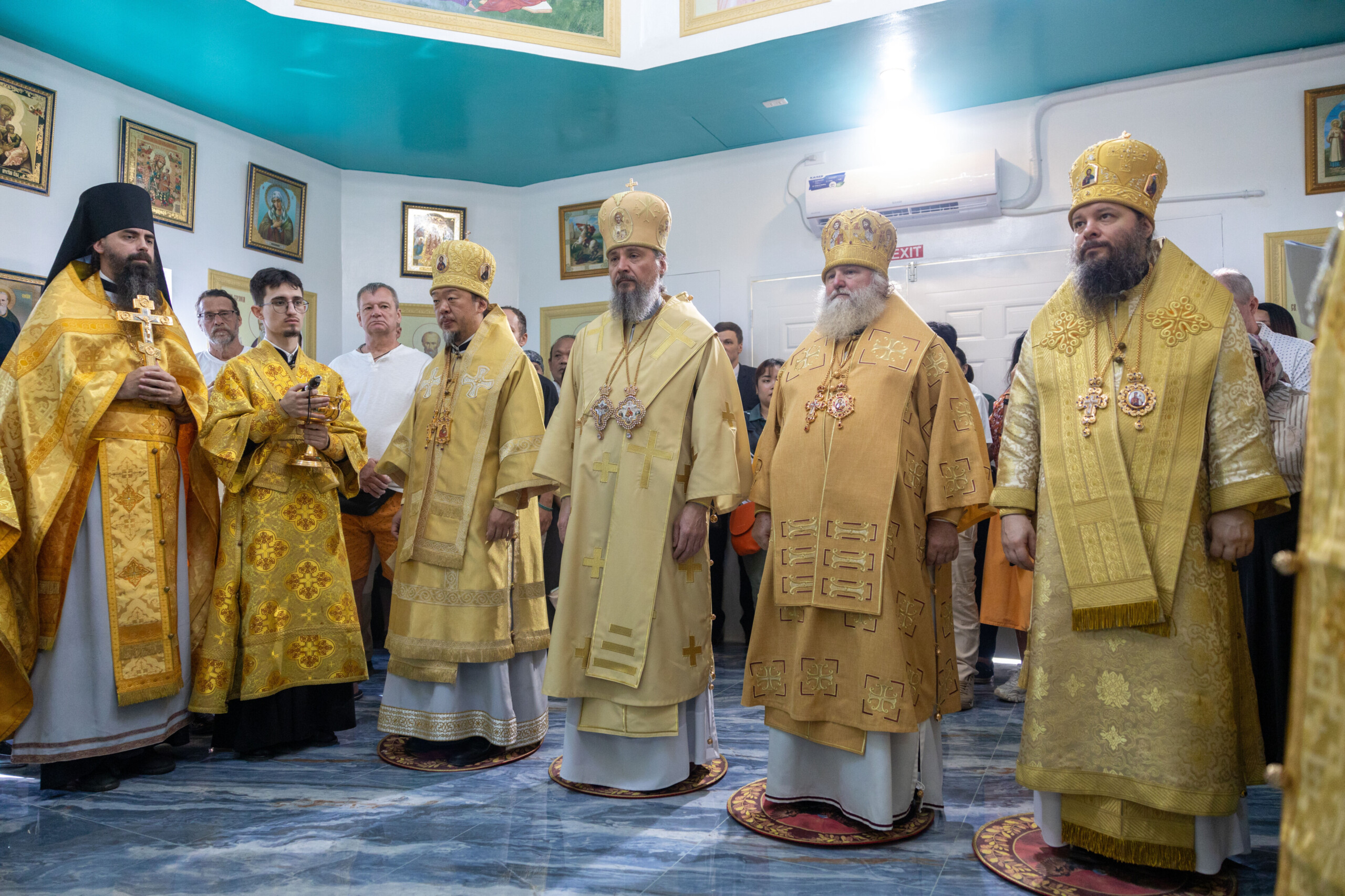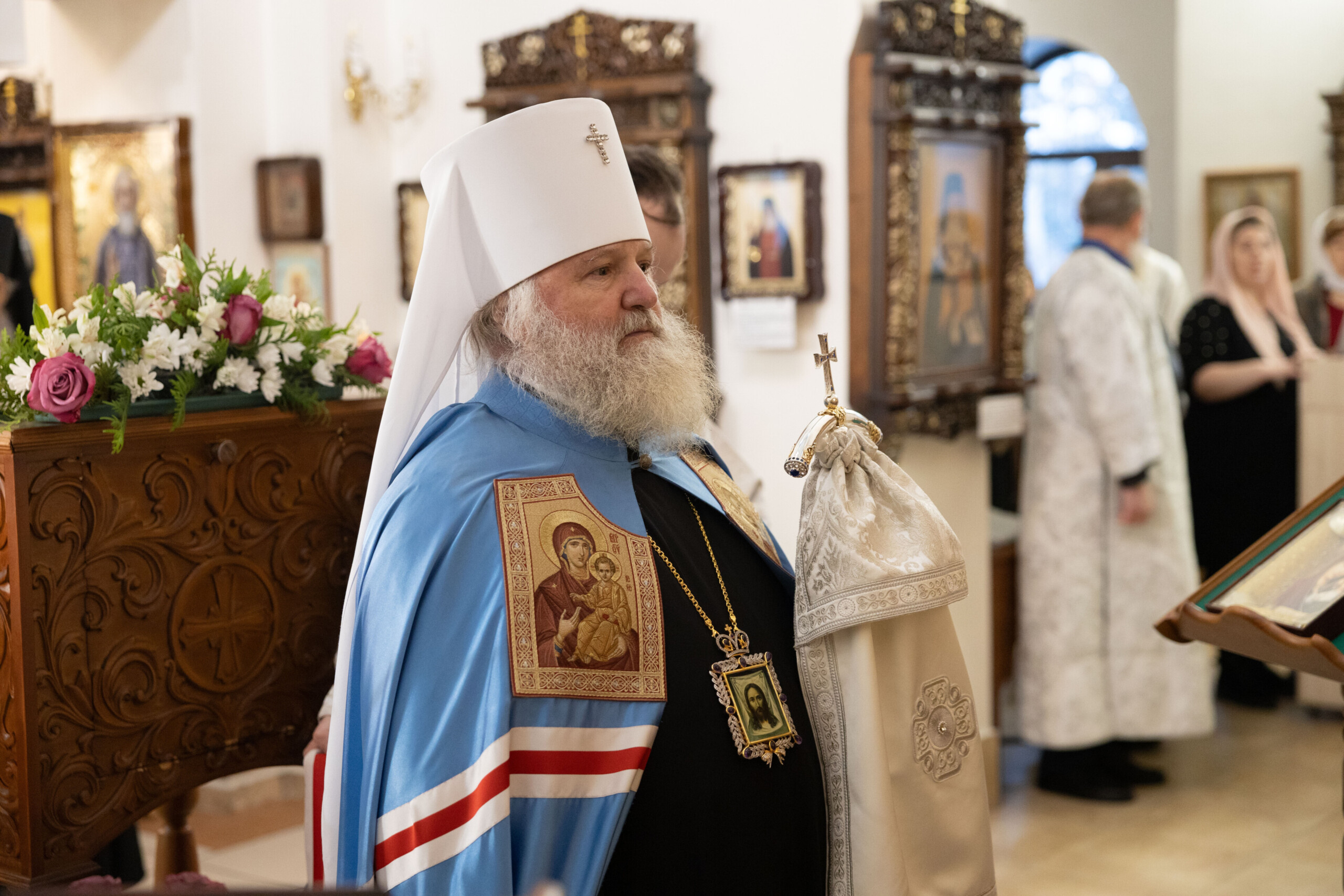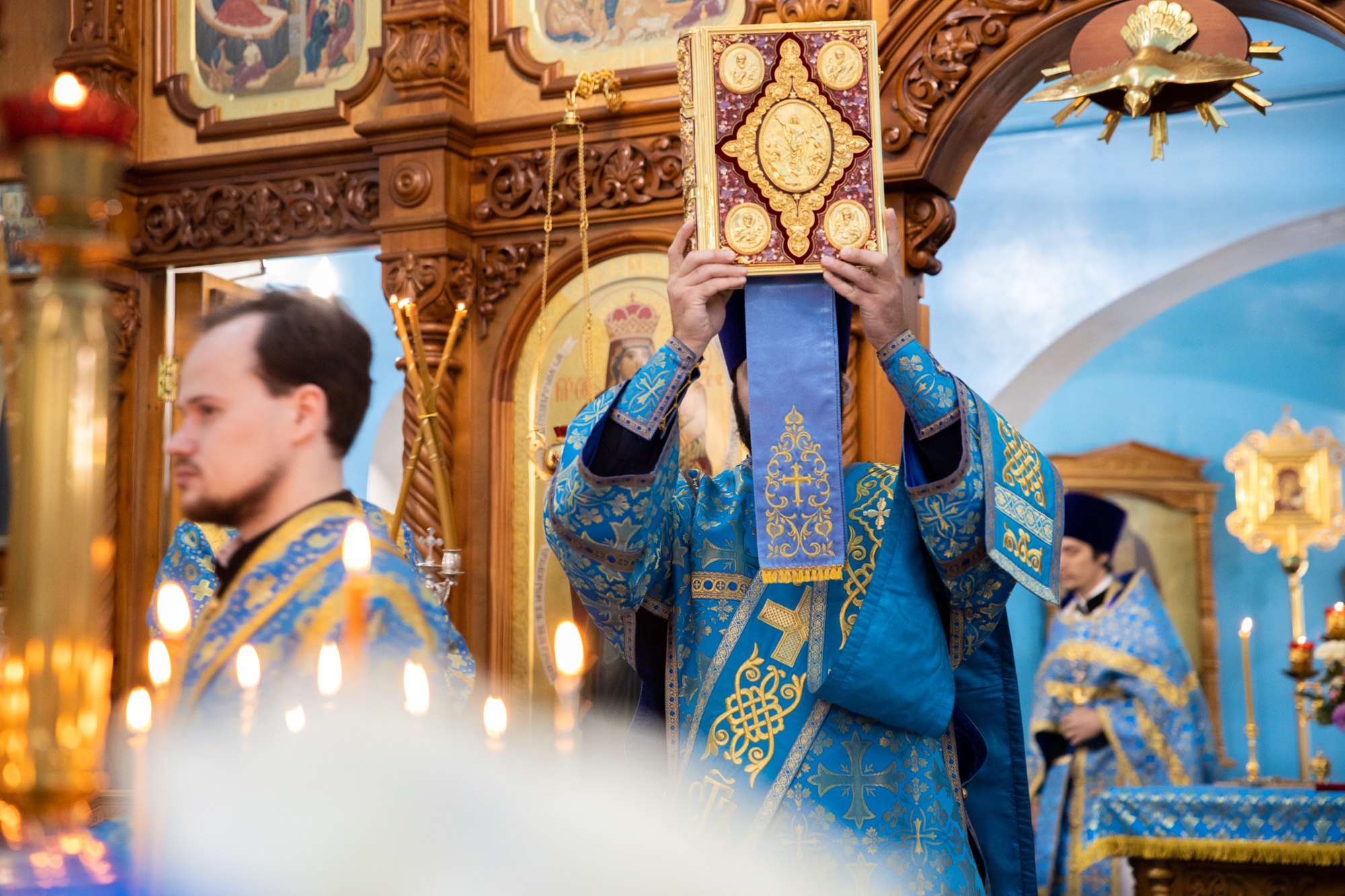 Его Высокопреосвященству сослужили: благочинный Сургутского городского благочиния протоиерей Антоний Исаков, ключарь собора иерей Григорий Белянин, духовенство собора. Диаконский чин возглавил диакон Владимир Гах.