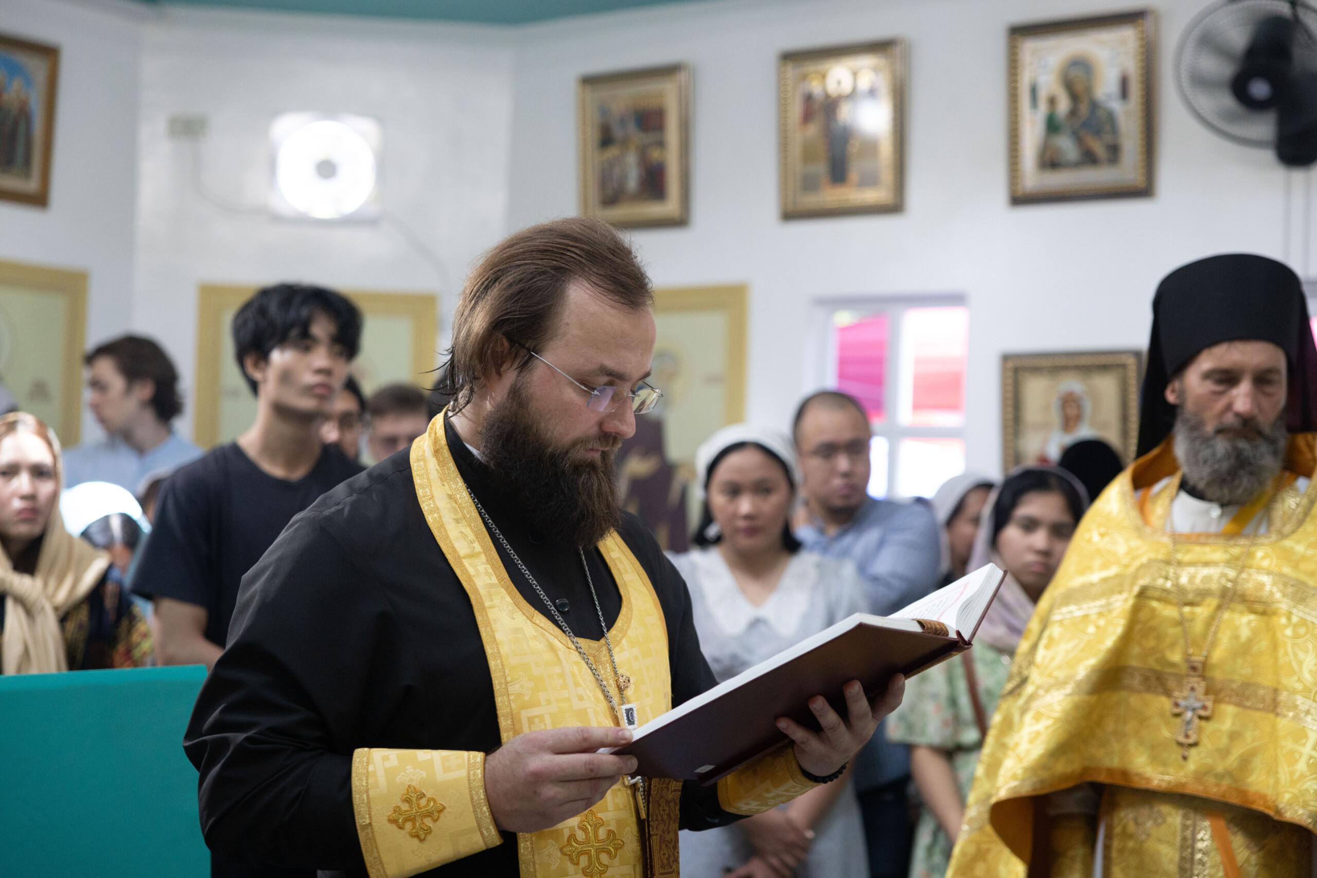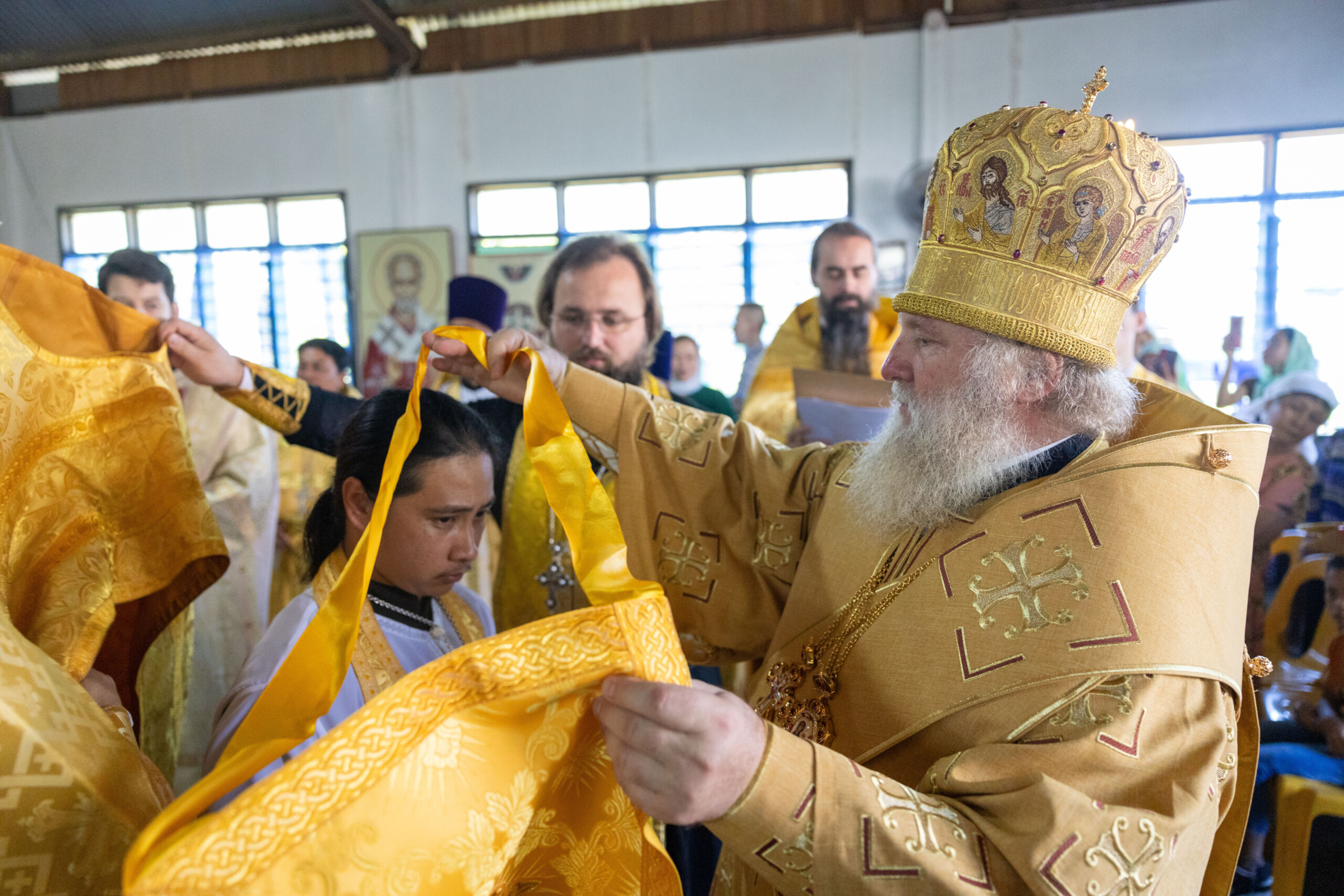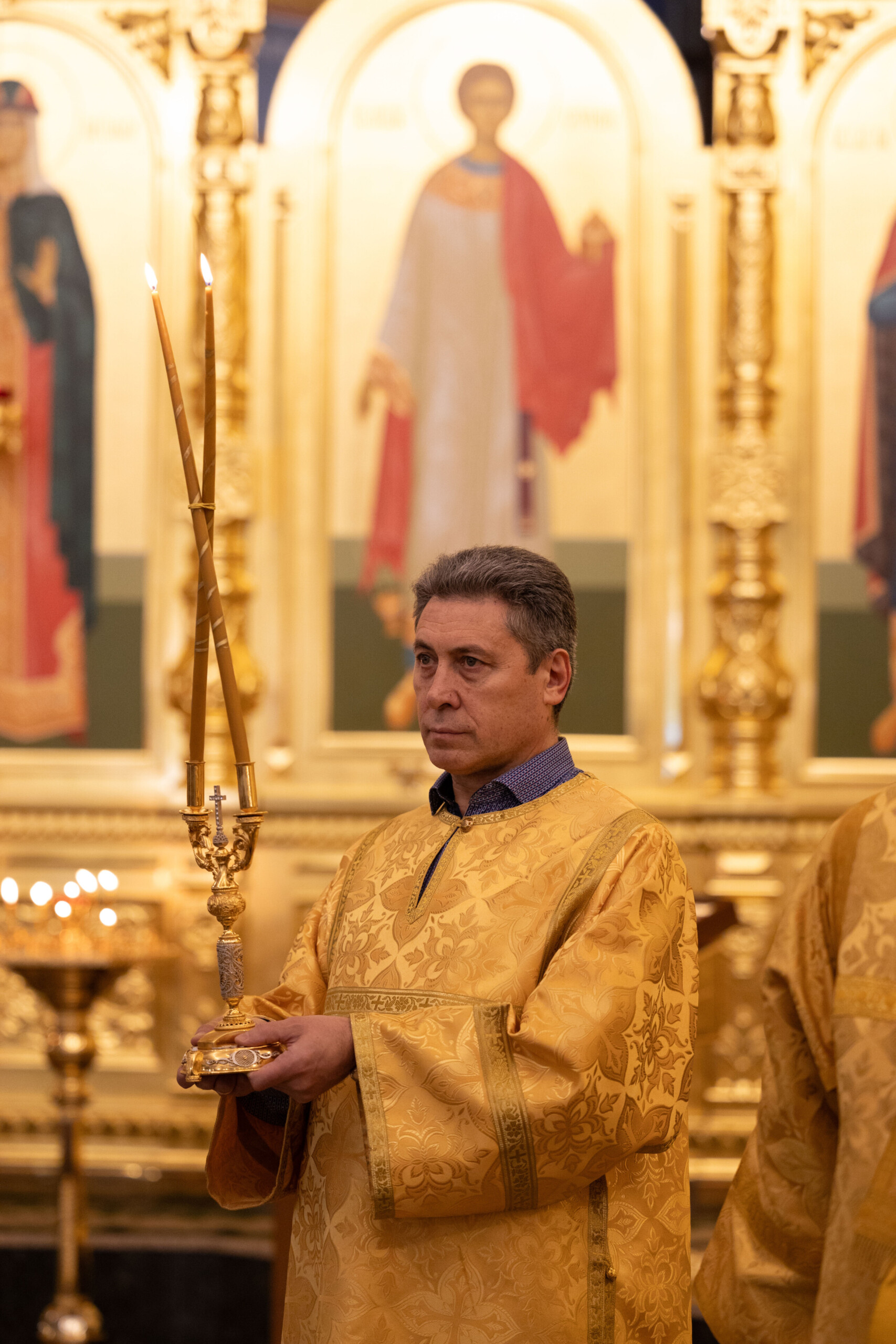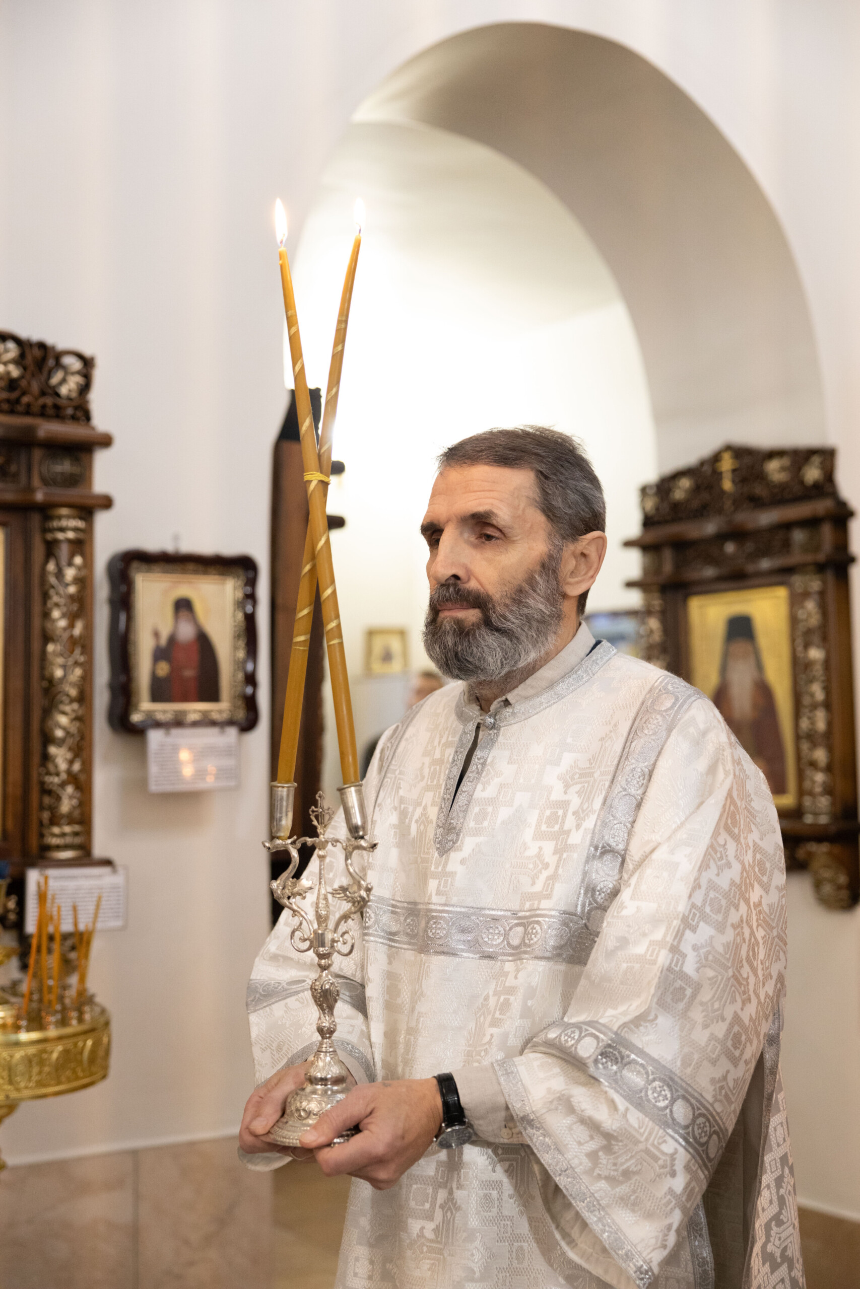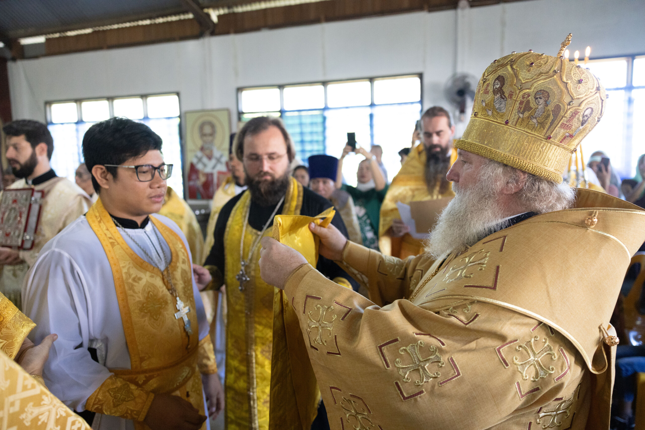 Его Высокопреосвященству сослужили: благочинный Сургутского городского благочиния протоиерей Антоний Исаков, ключарь собора иерей Григорий Белянин, духовенство собора. Диаконский чин возглавил диакон Владимир Гах.