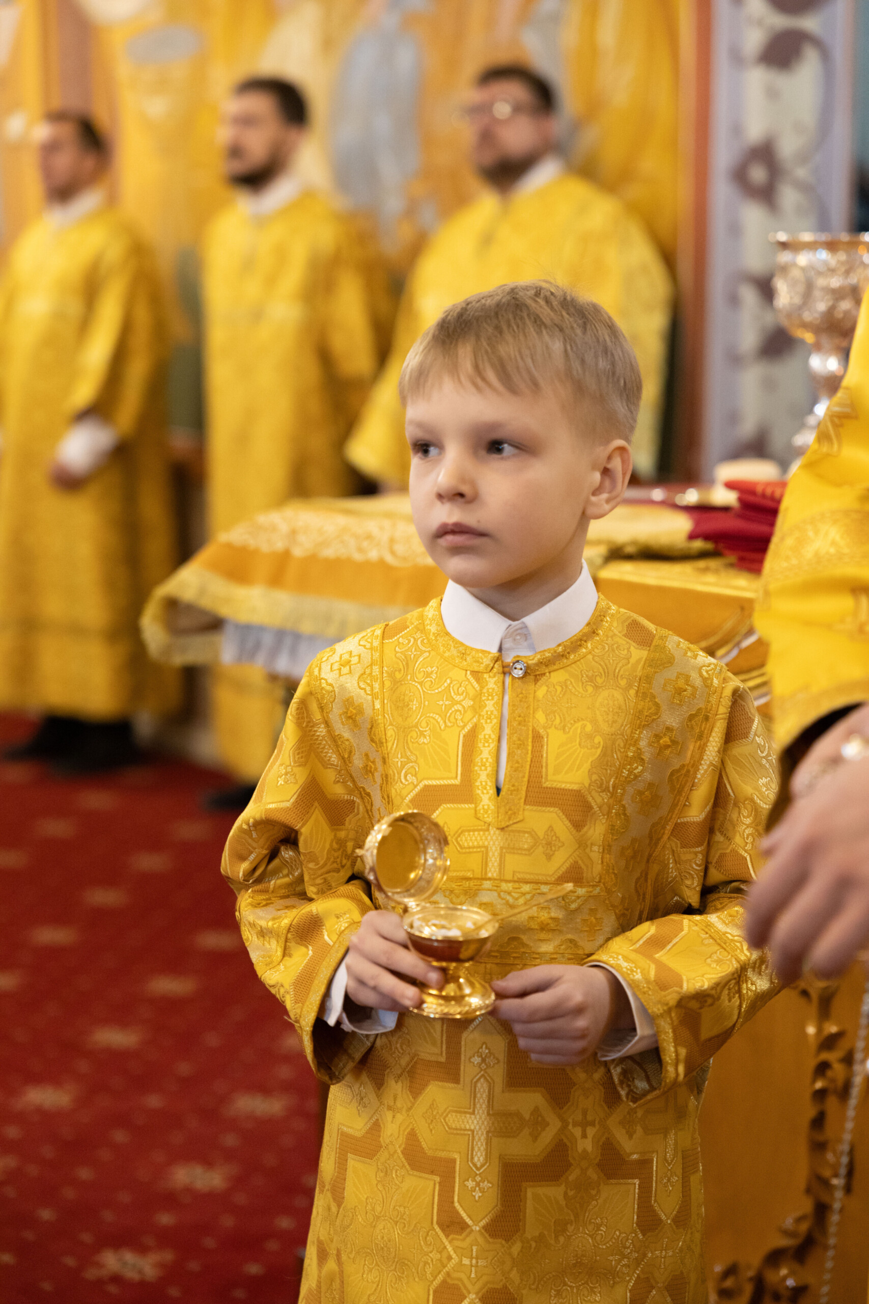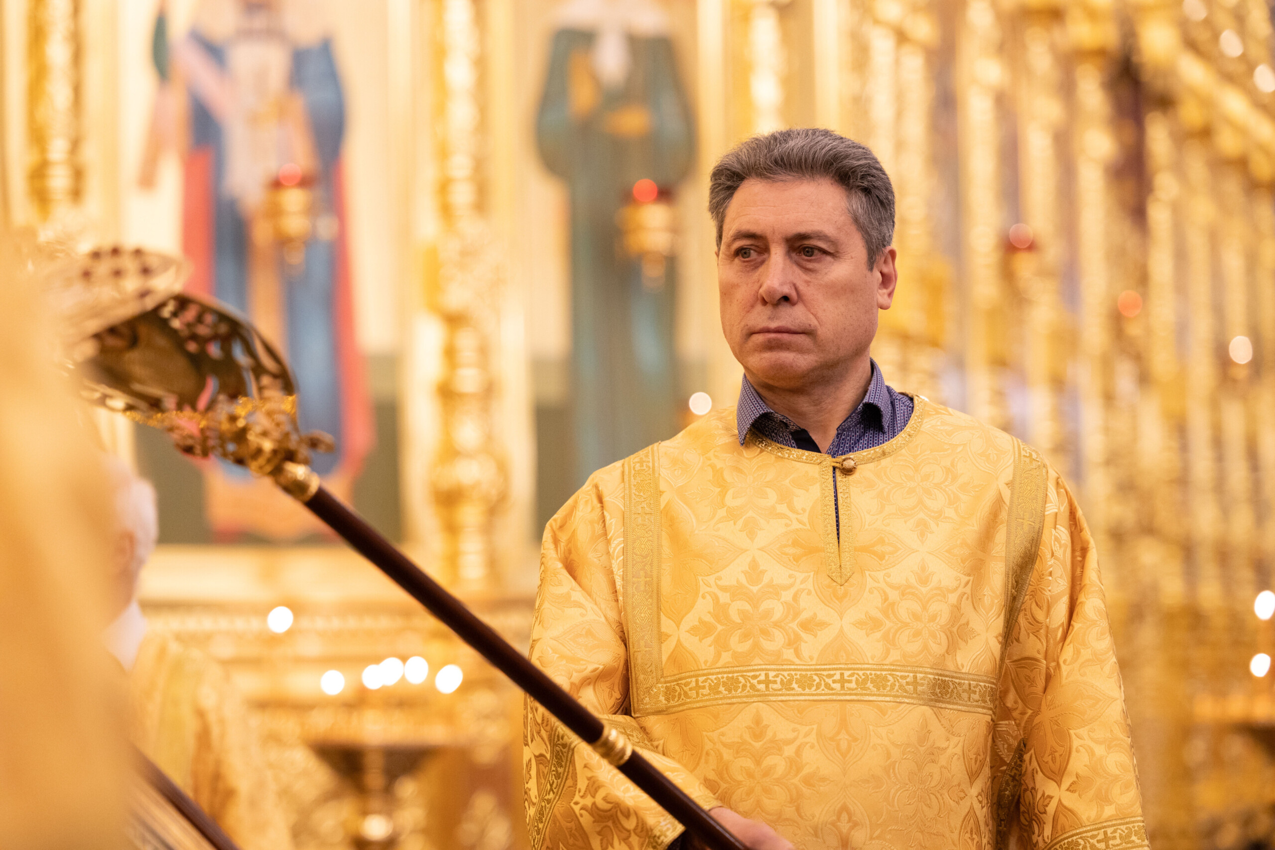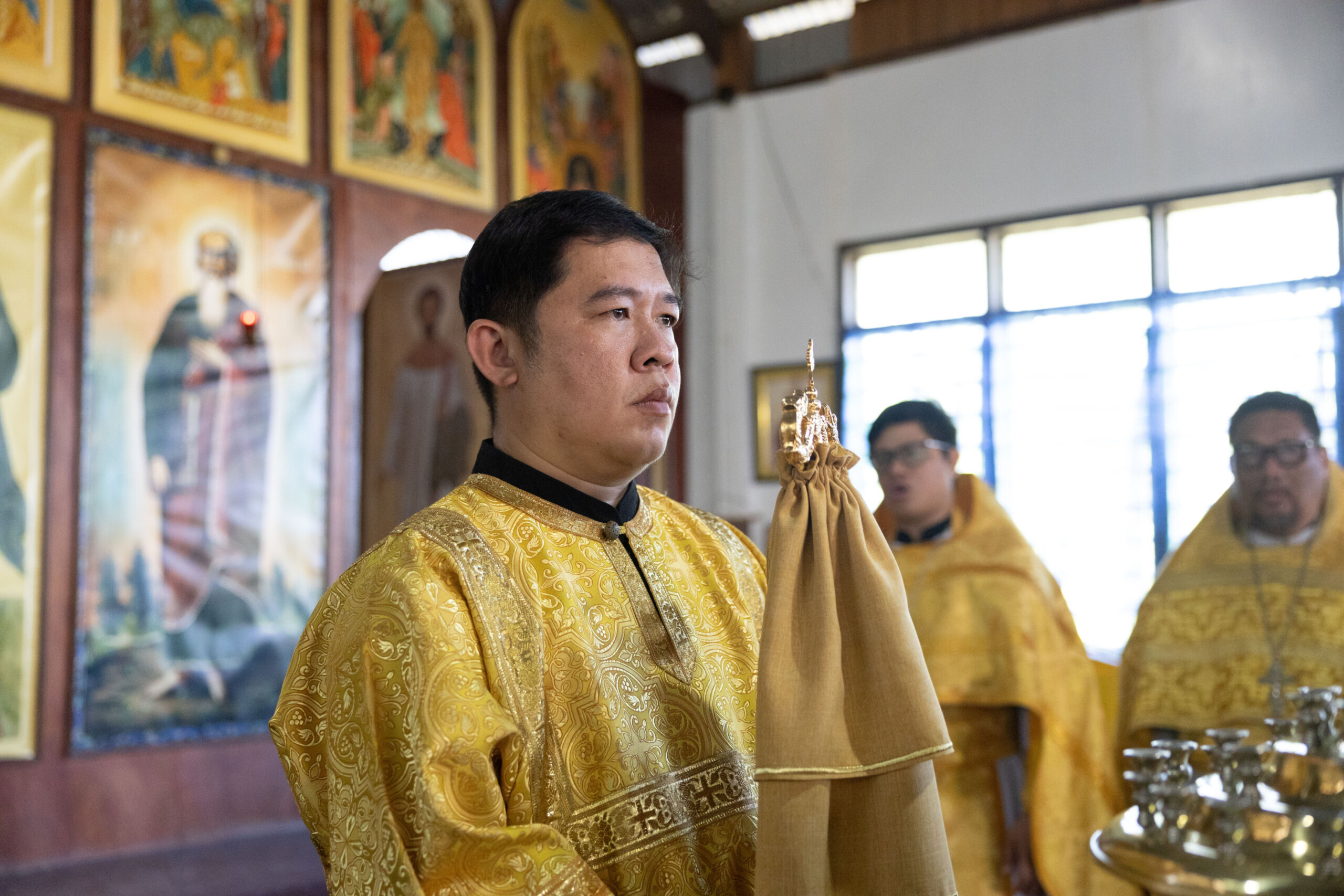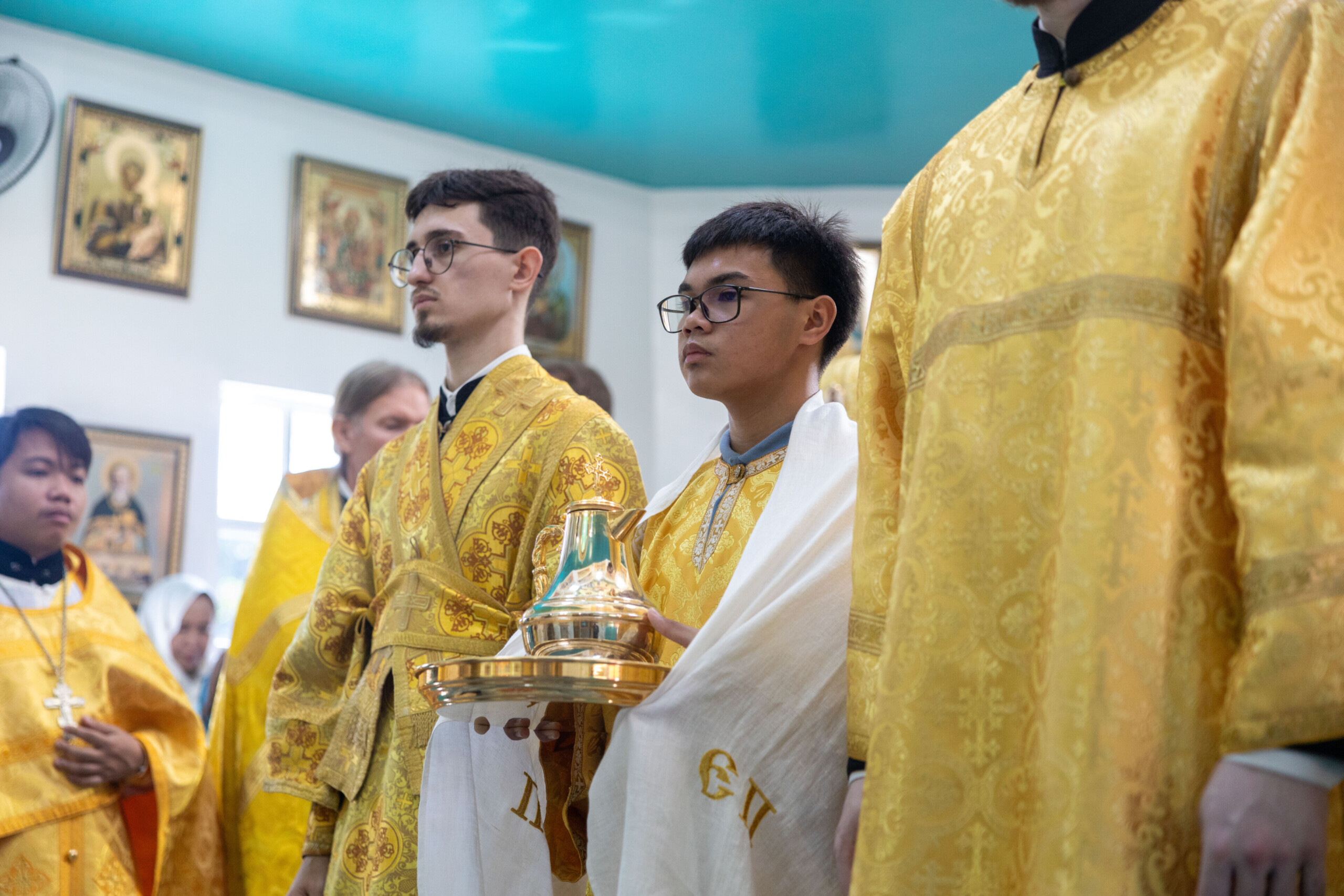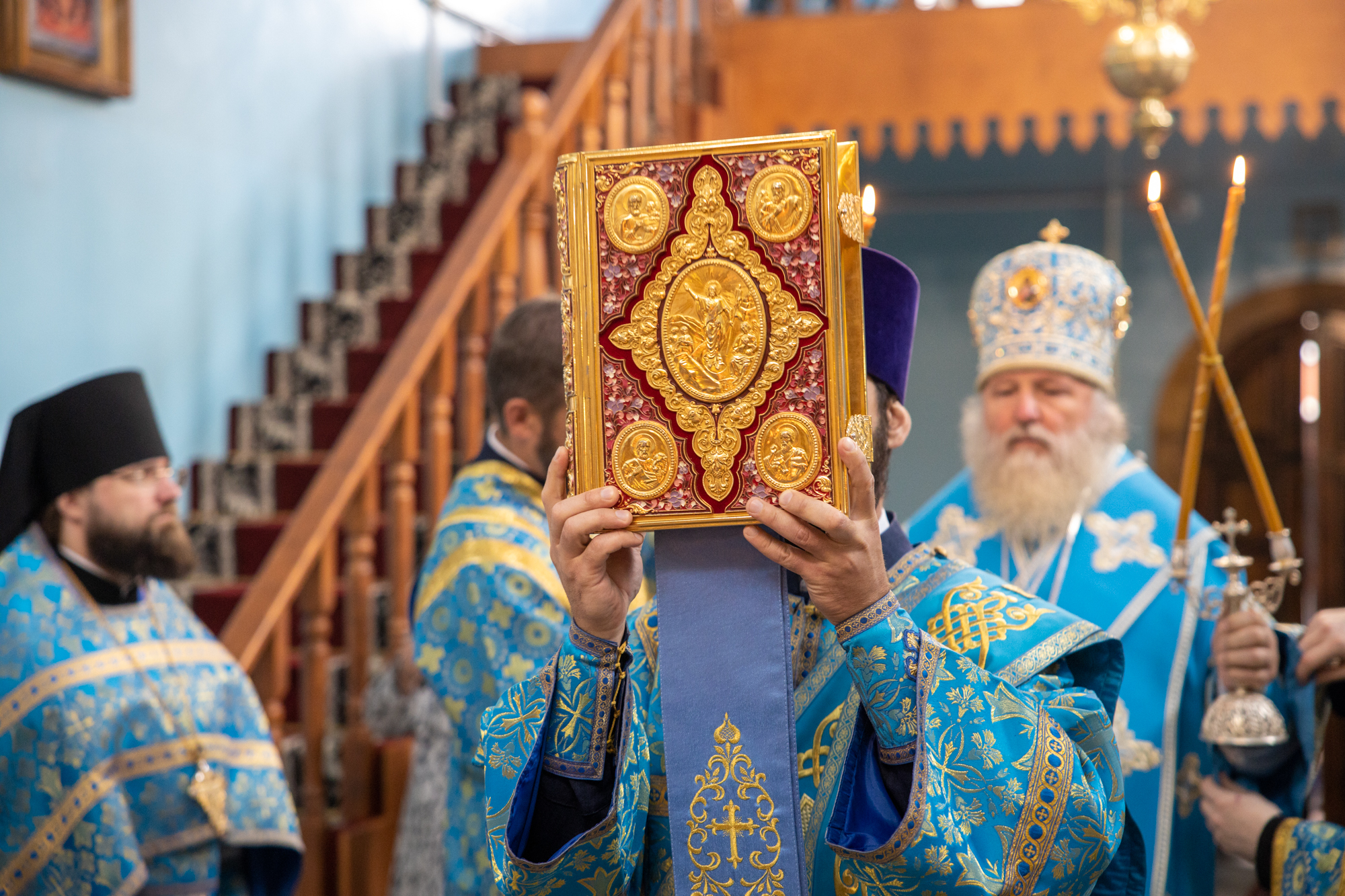 Его Высокопреосвященству сослужили: благочинный Сургутского городского благочиния протоиерей Антоний Исаков, ключарь собора иерей Григорий Белянин, духовенство собора. Диаконский чин возглавил диакон Владимир Гах.