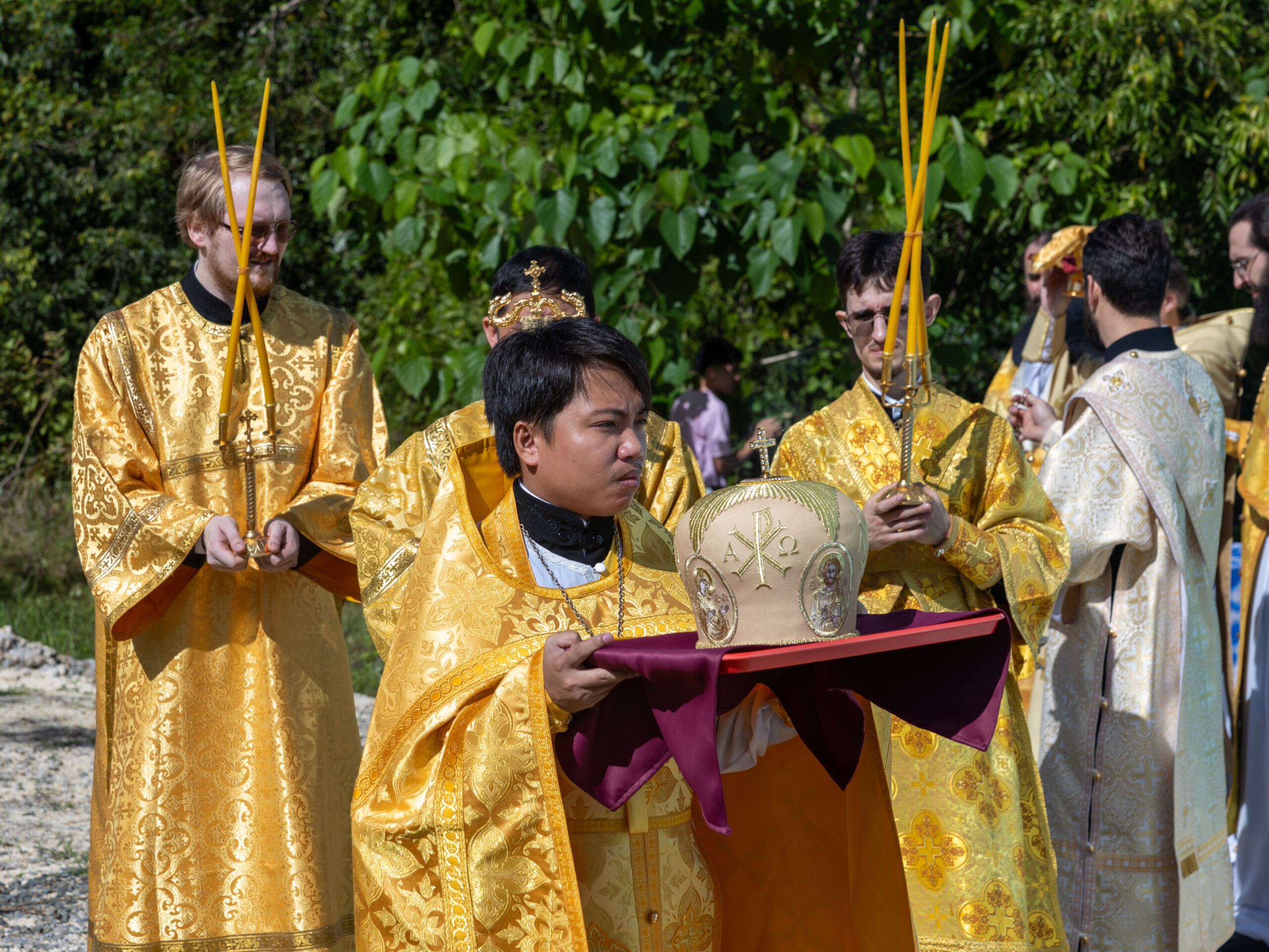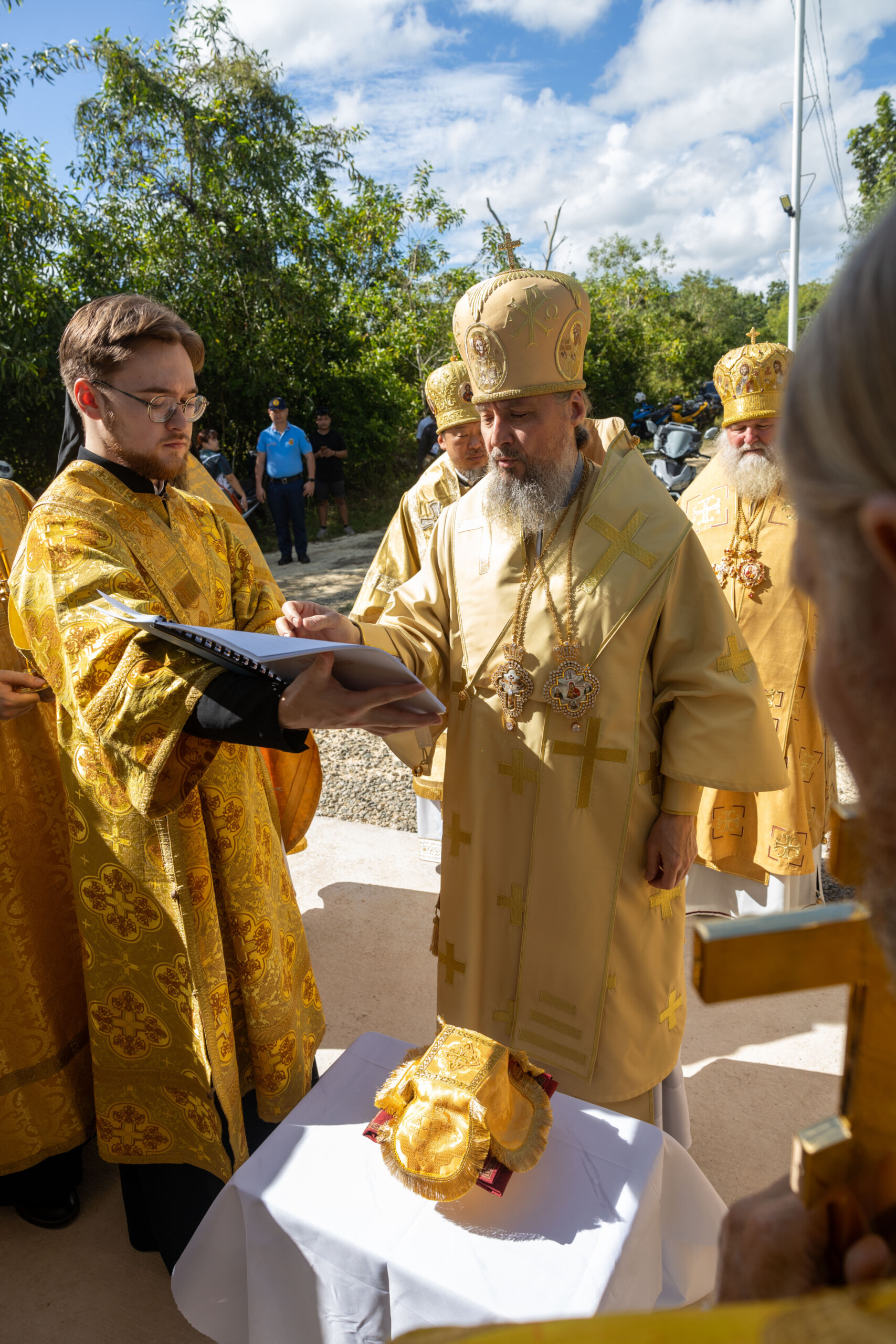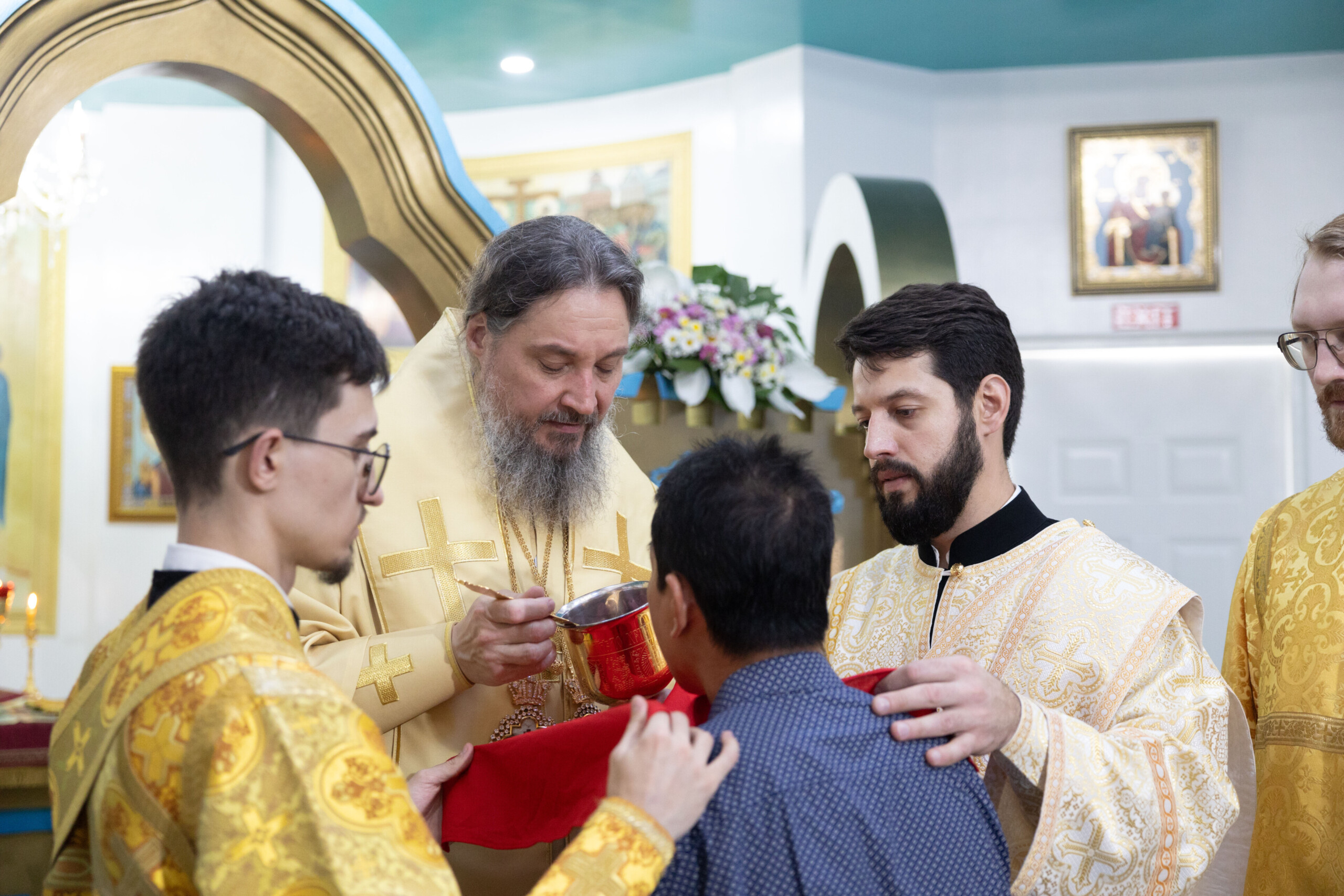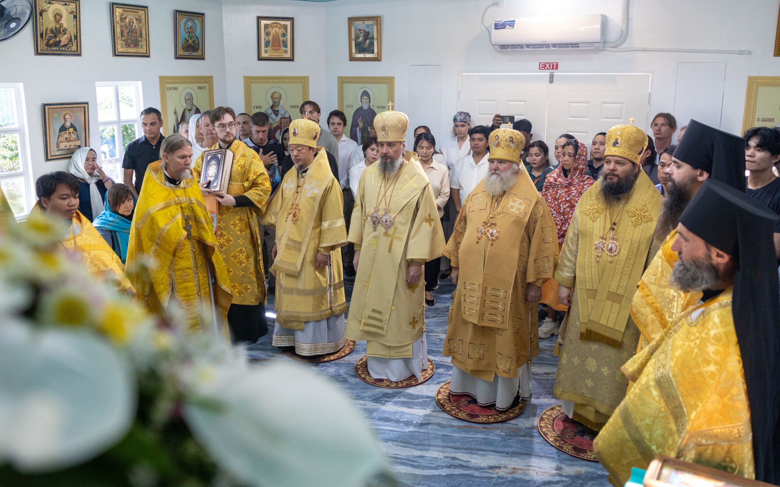 Его Высокопреосвященству сослужили: благочинный Сургутского городского благочиния протоиерей Антоний Исаков, ключарь собора иерей Григорий Белянин, духовенство собора. Диаконский чин возглавил диакон Владимир Гах.