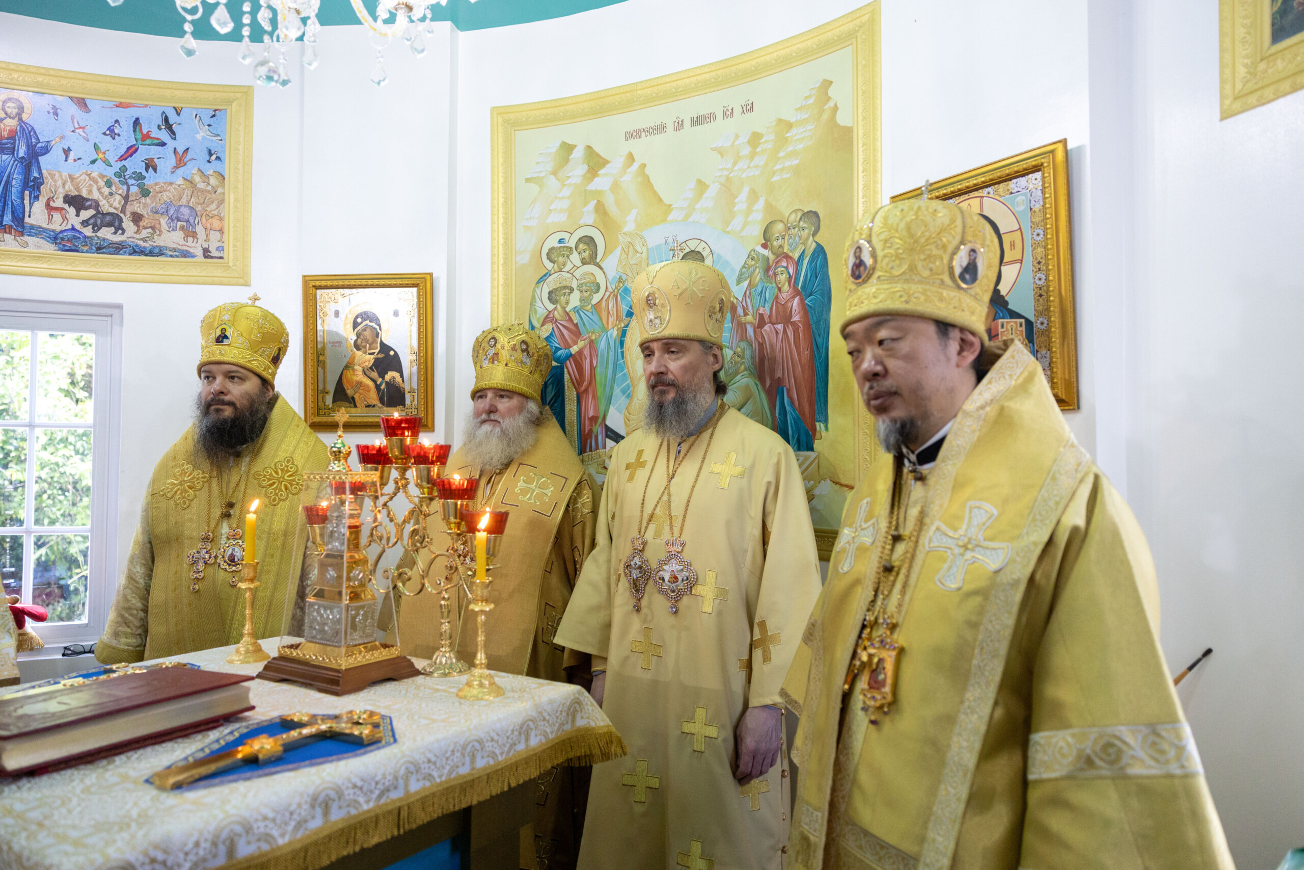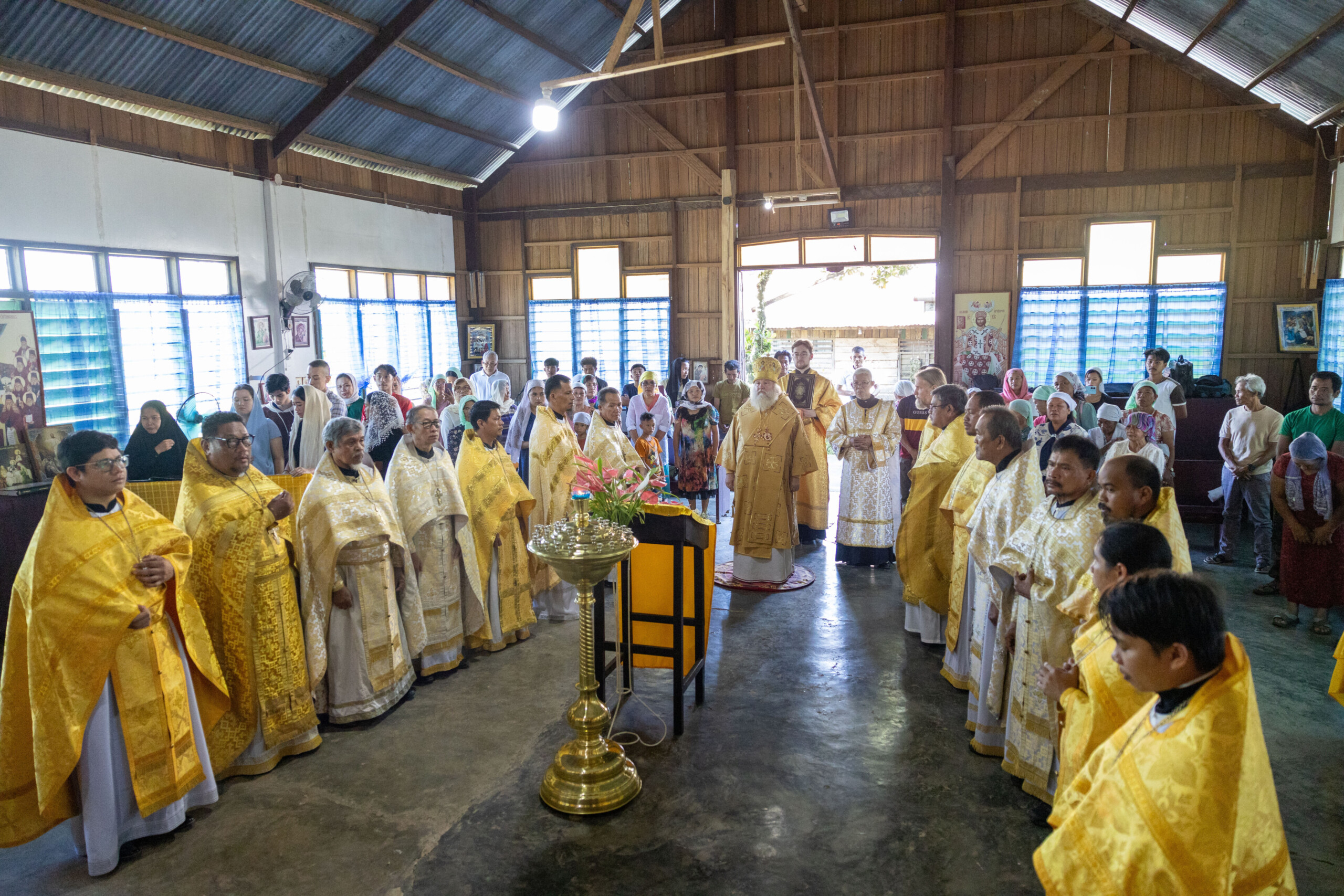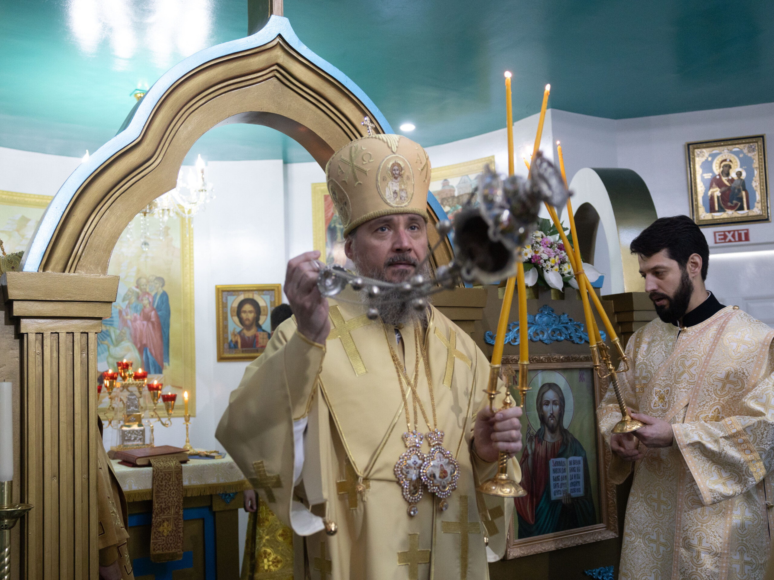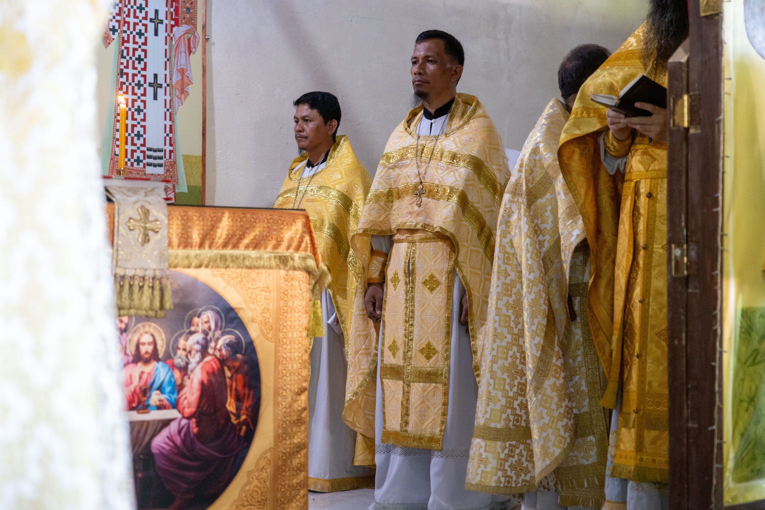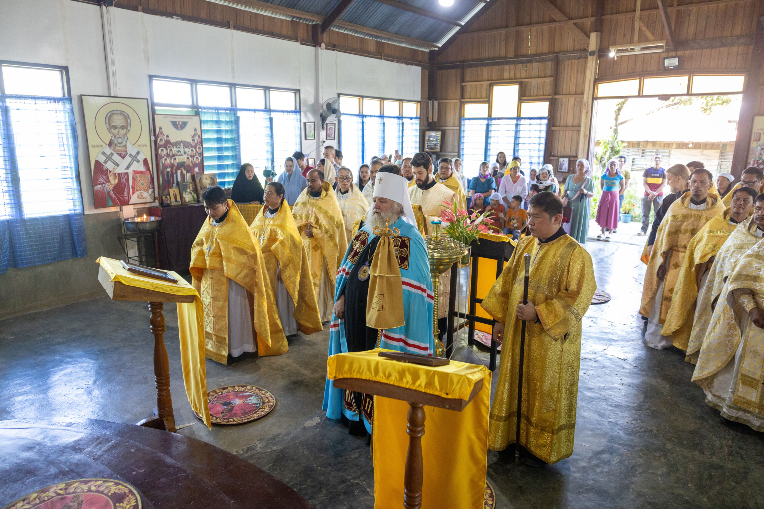 Его Высокопреосвященству сослужили: благочинный Сургутского городского благочиния протоиерей Антоний Исаков, ключарь собора иерей Григорий Белянин, духовенство собора. Диаконский чин возглавил диакон Владимир Гах.
