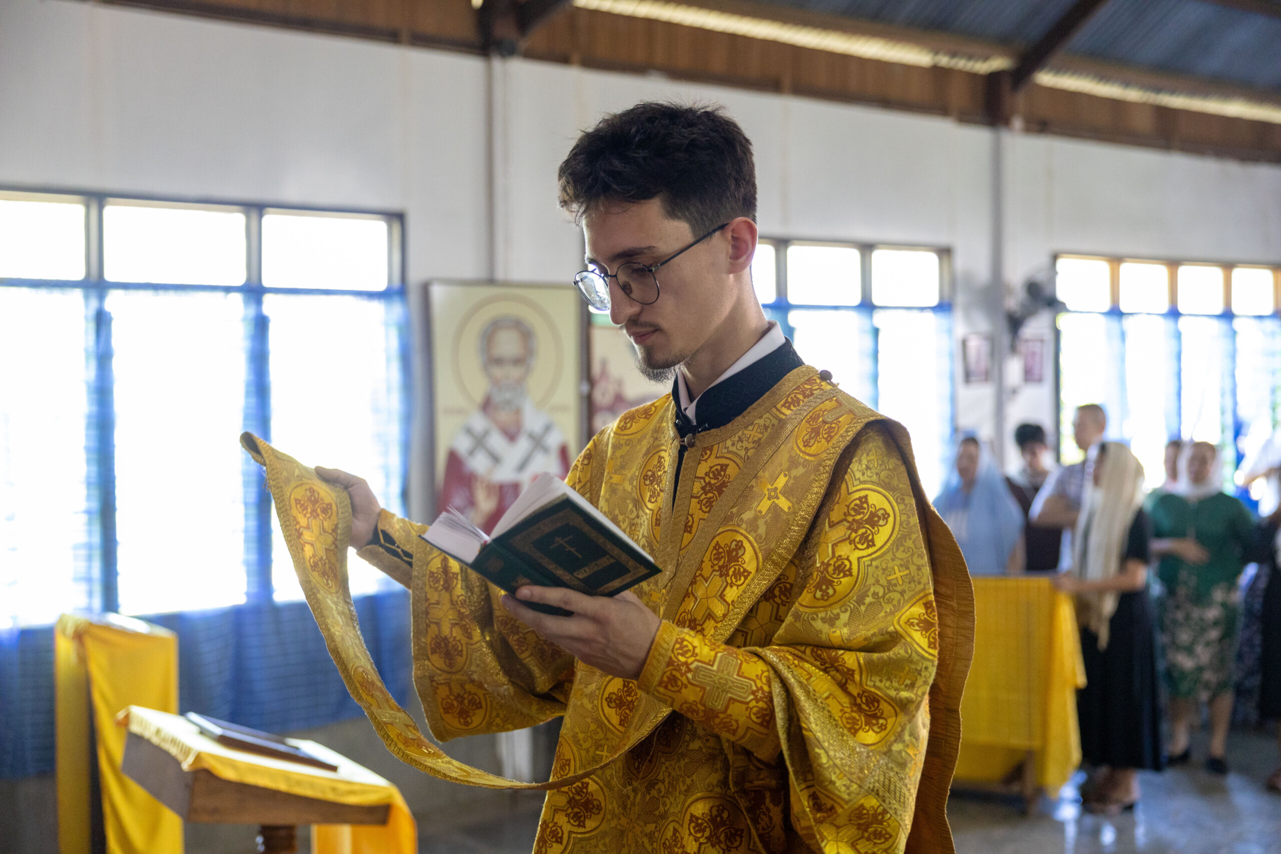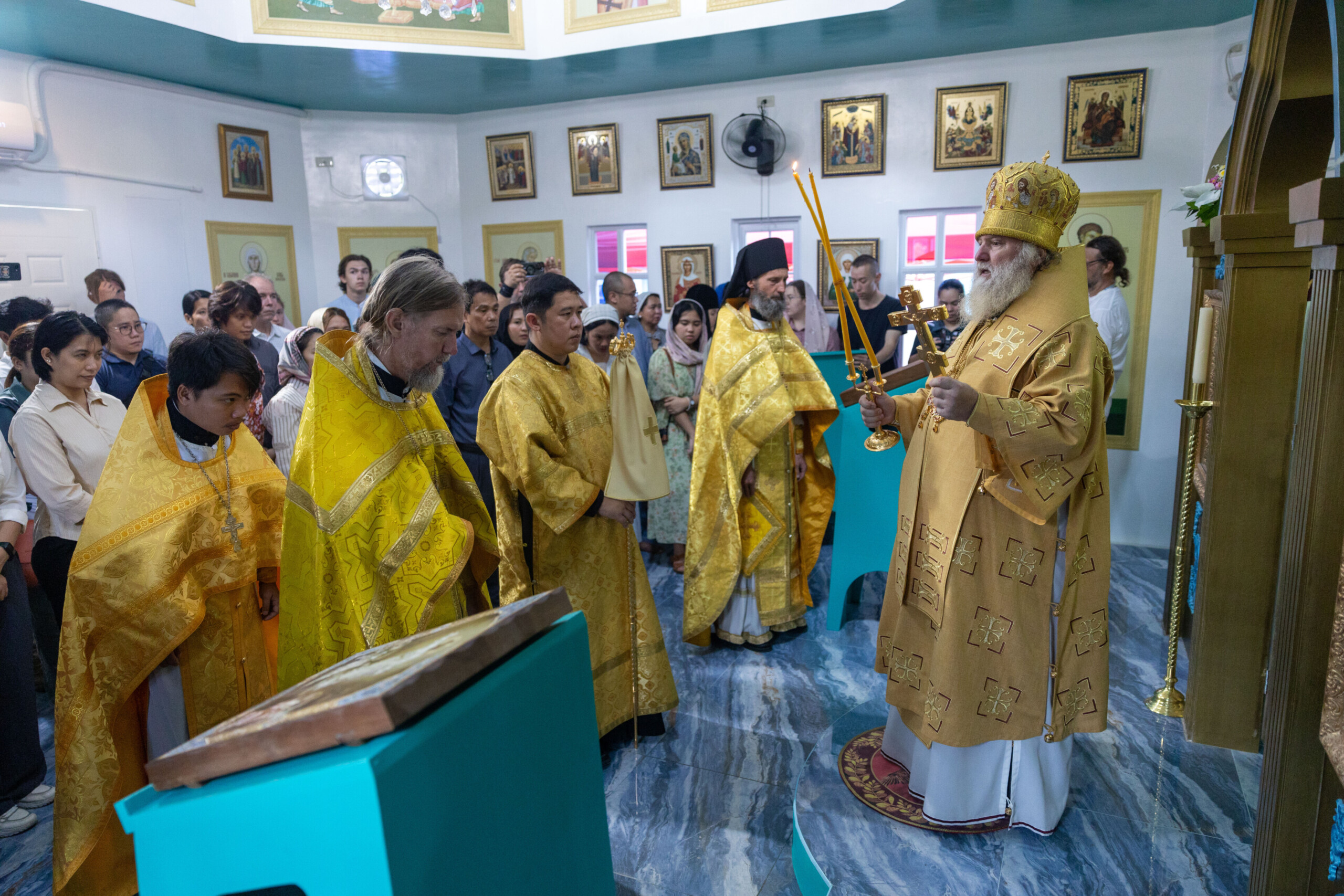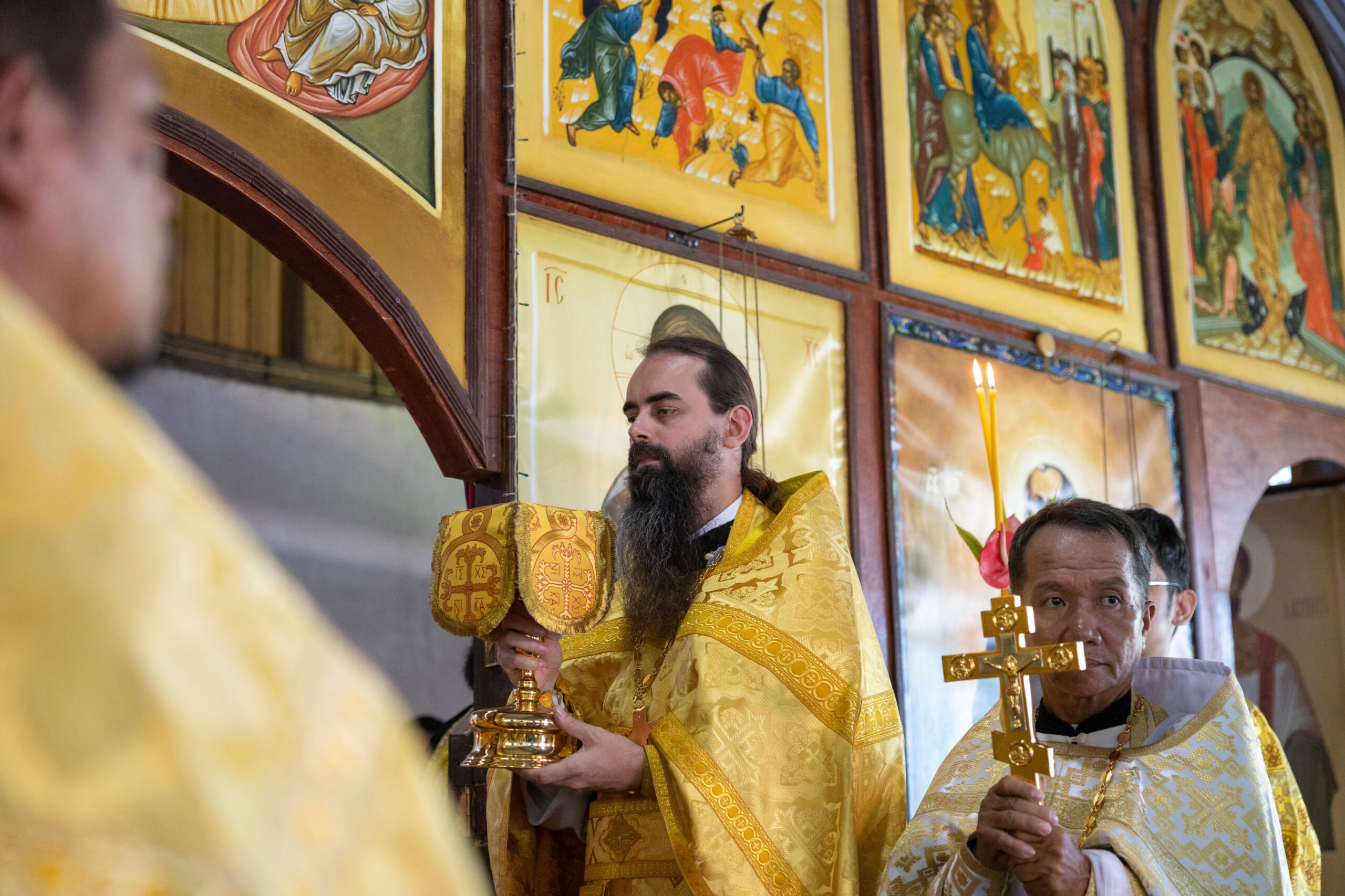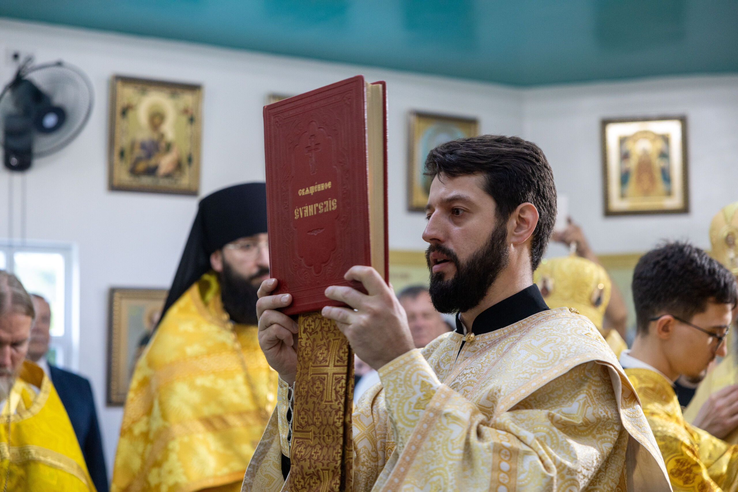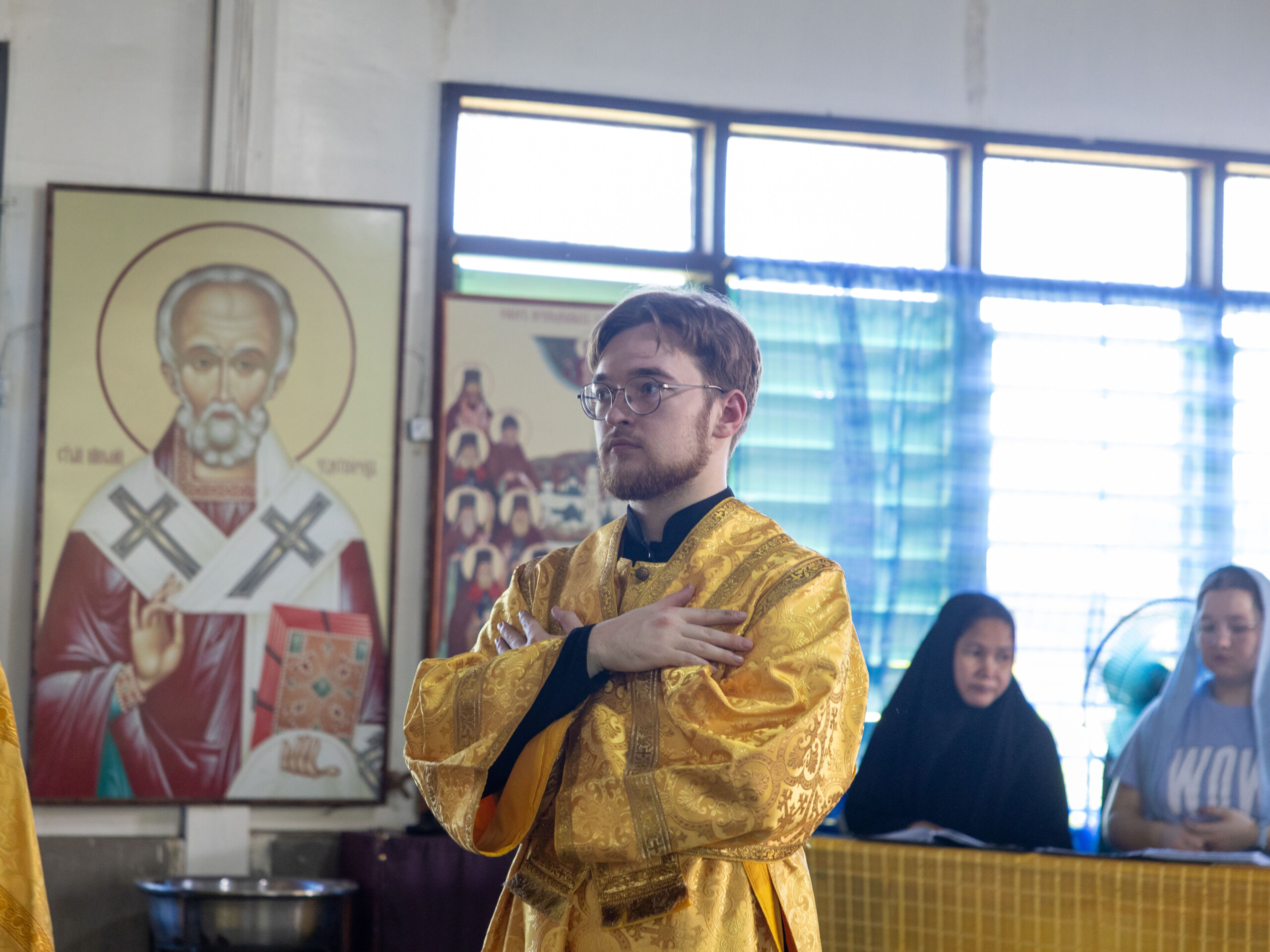 Его Высокопреосвященству сослужили: благочинный Сургутского городского благочиния протоиерей Антоний Исаков, ключарь собора иерей Григорий Белянин, духовенство собора. Диаконский чин возглавил диакон Владимир Гах.