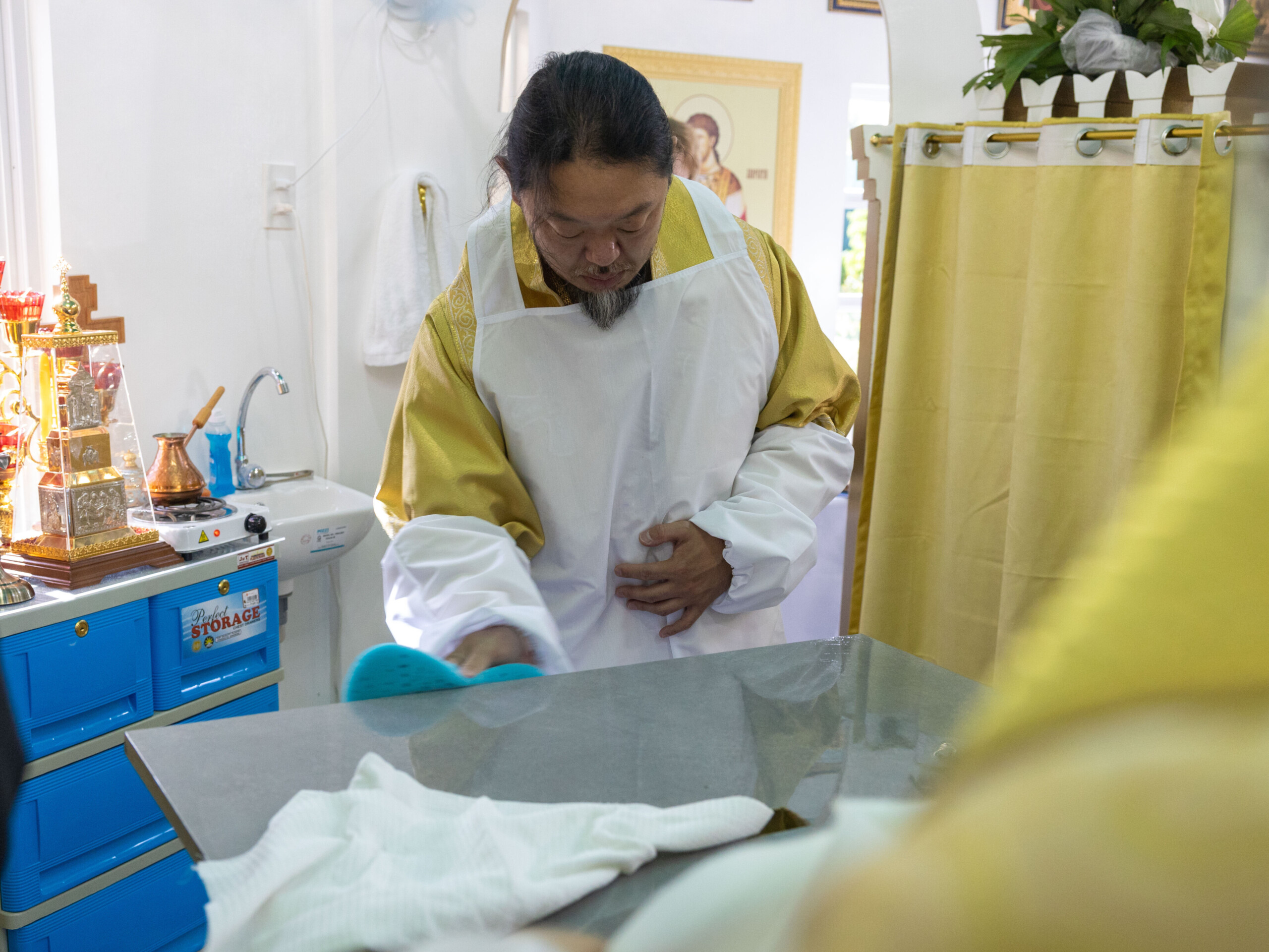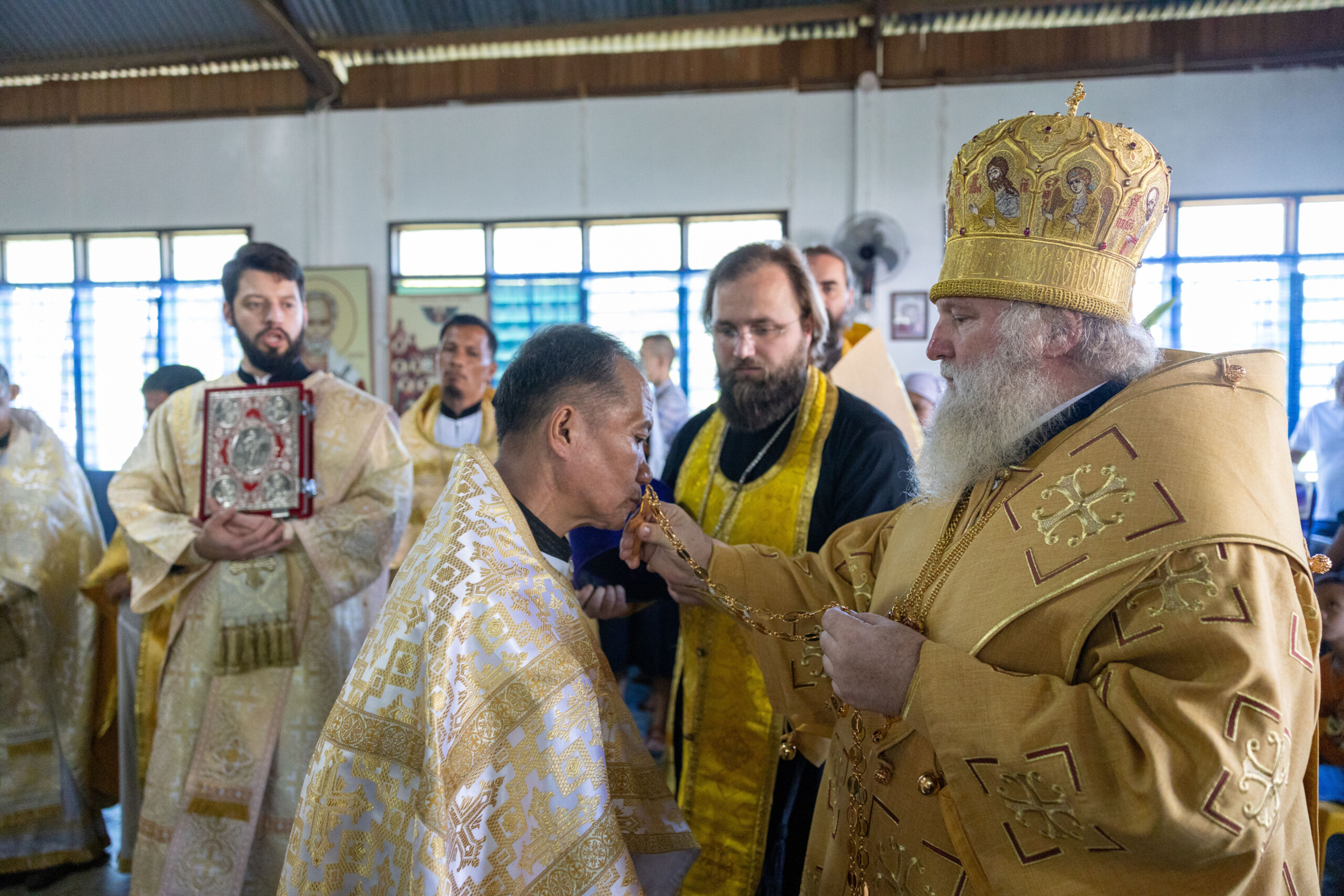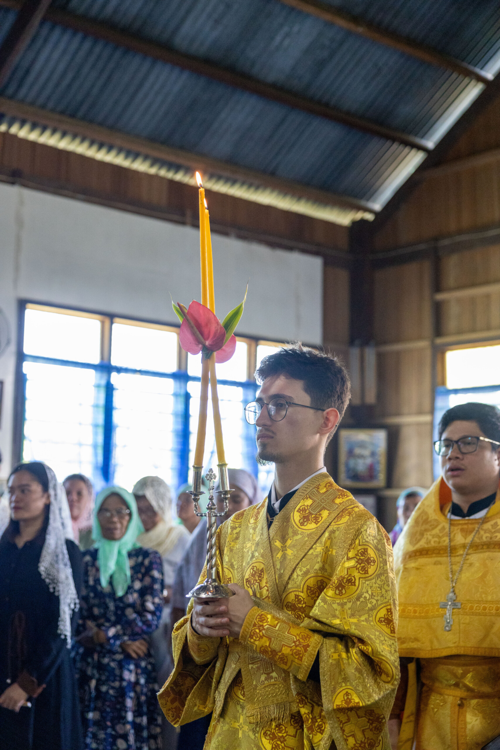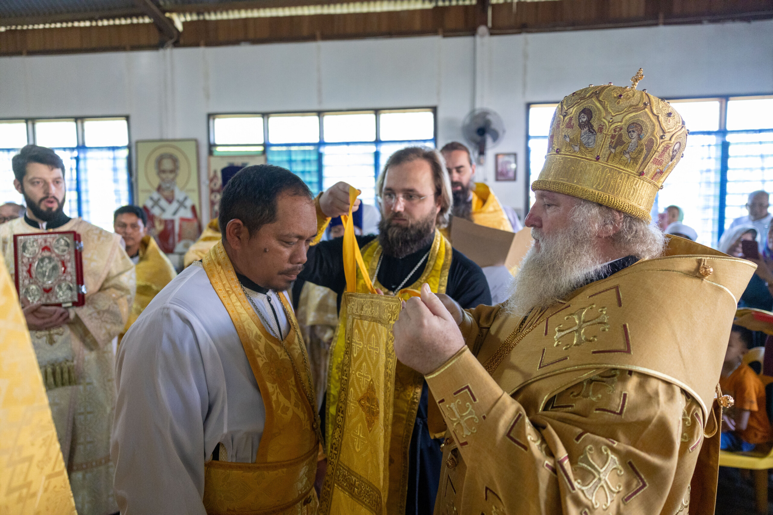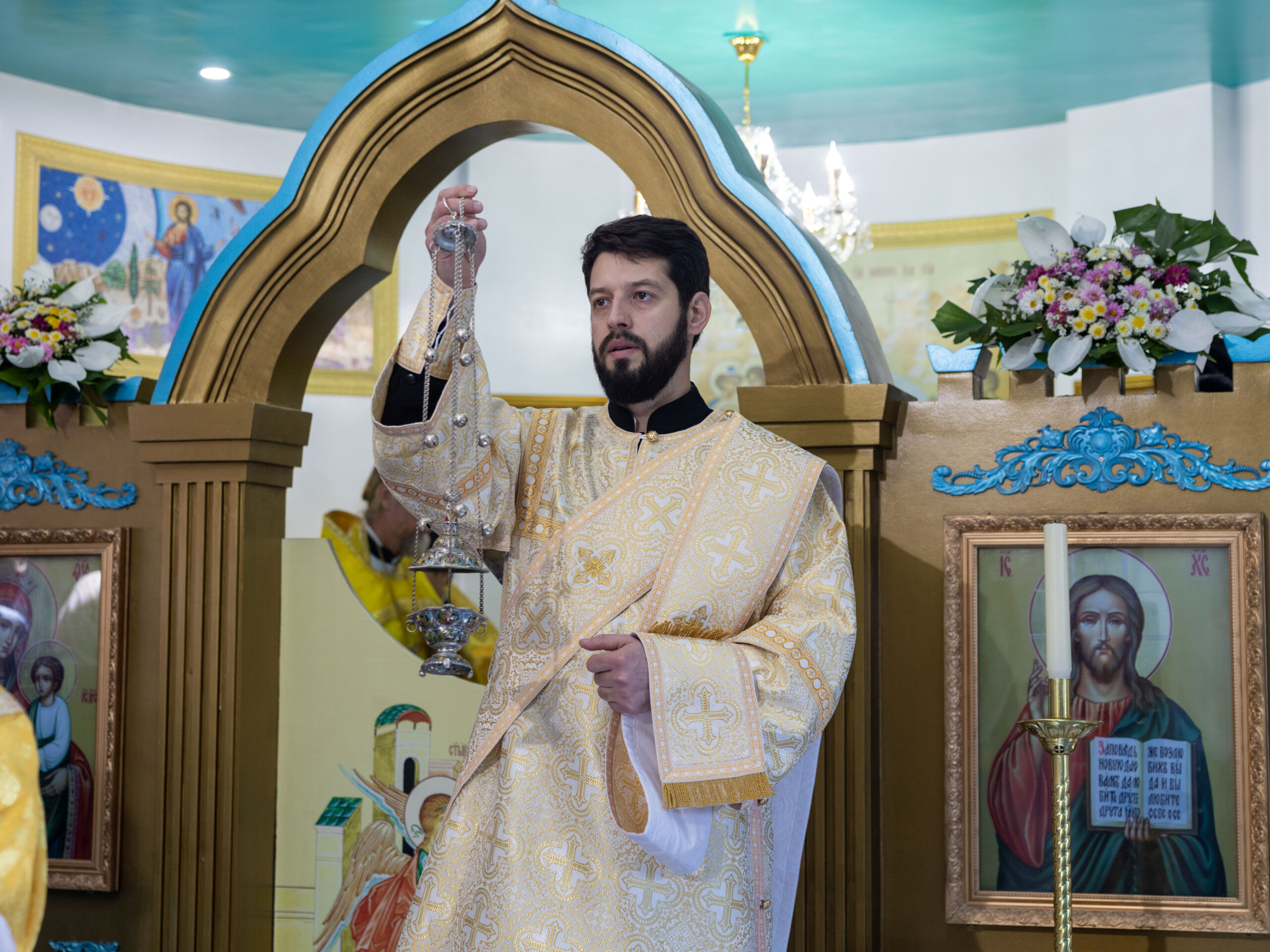 Его Высокопреосвященству сослужили: благочинный Сургутского городского благочиния протоиерей Антоний Исаков, ключарь собора иерей Григорий Белянин, духовенство собора. Диаконский чин возглавил диакон Владимир Гах.