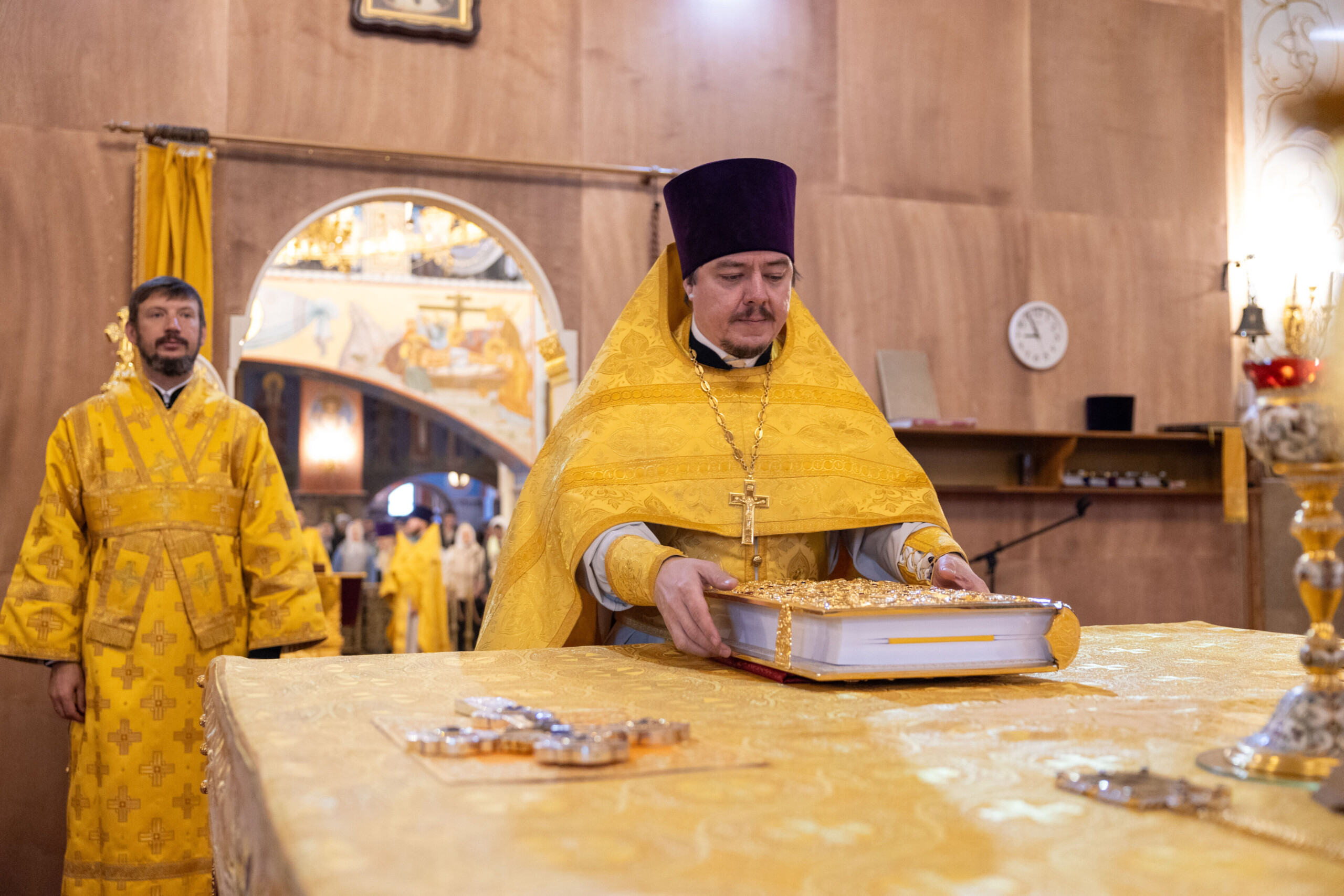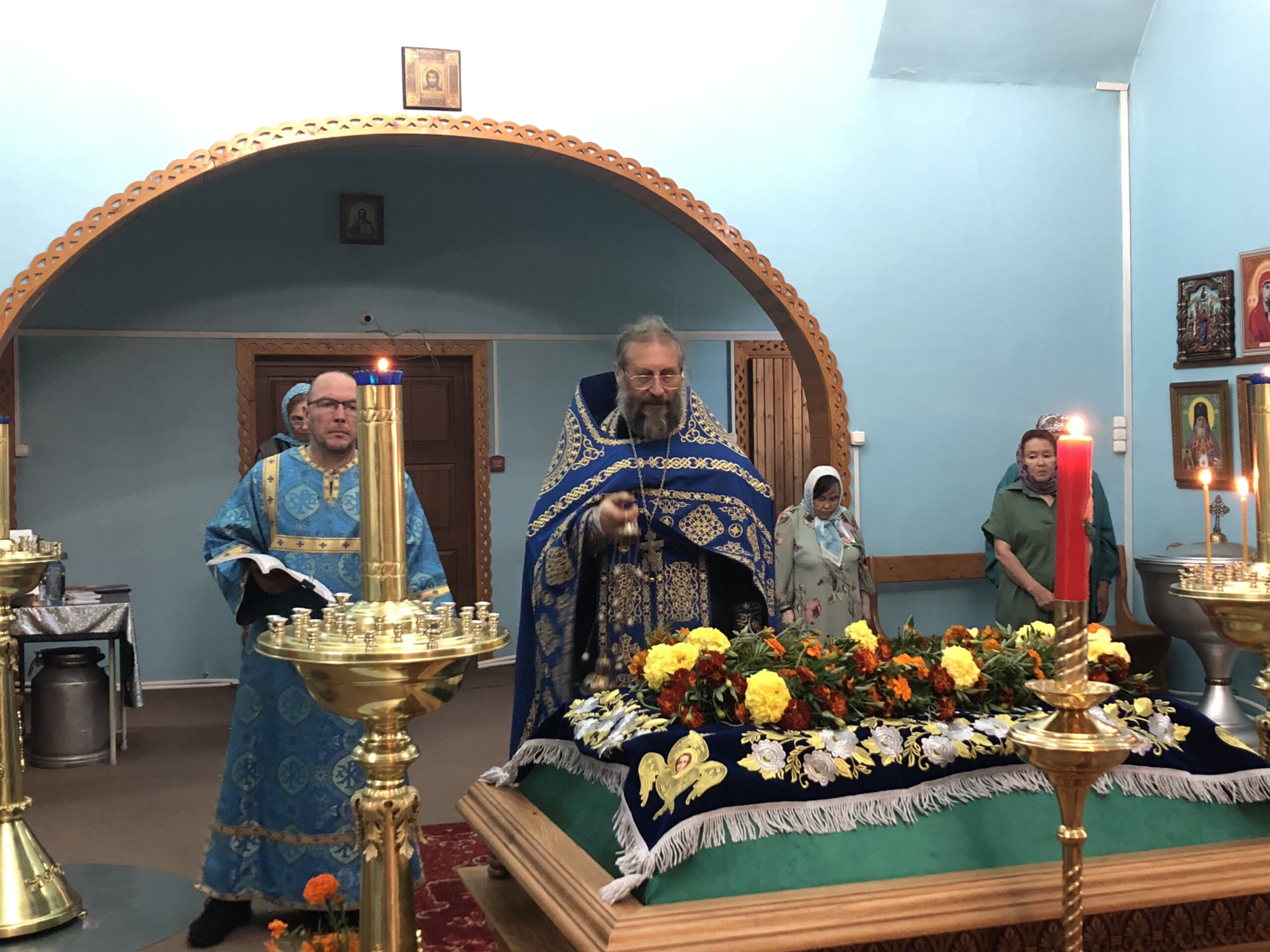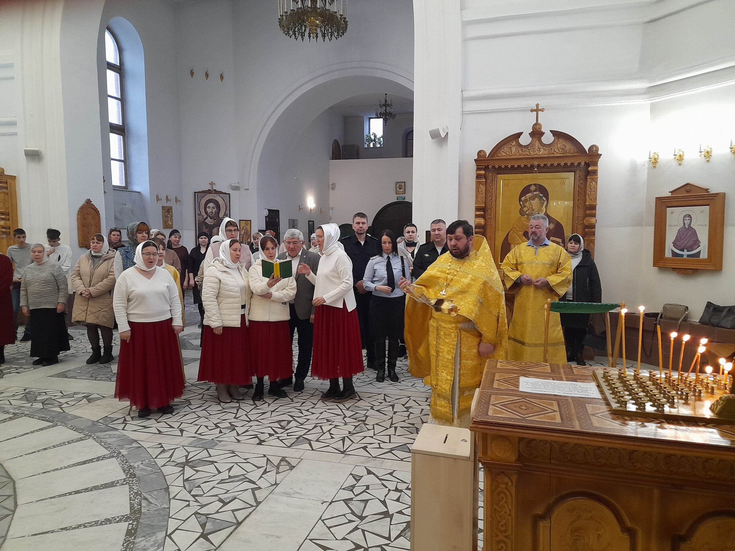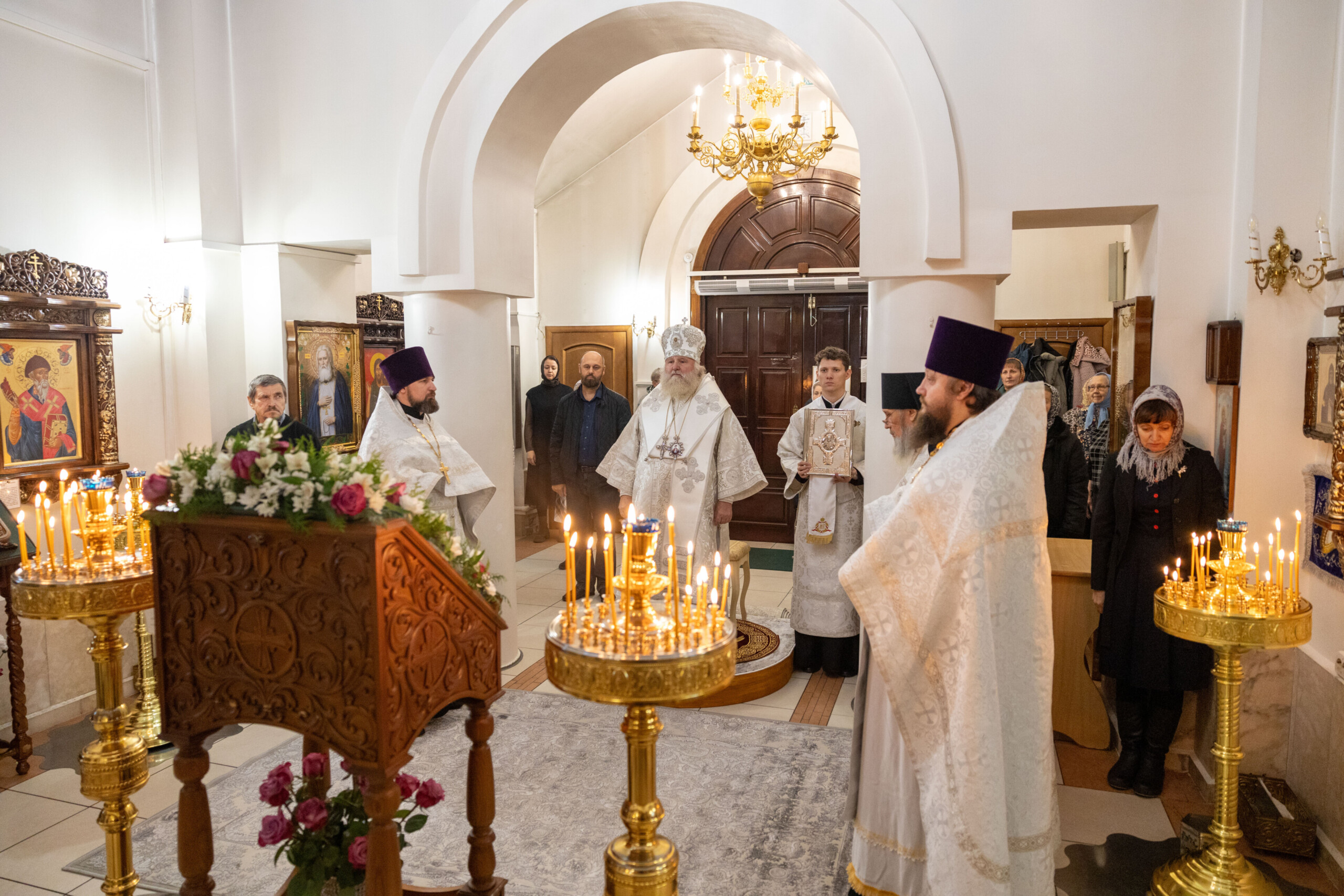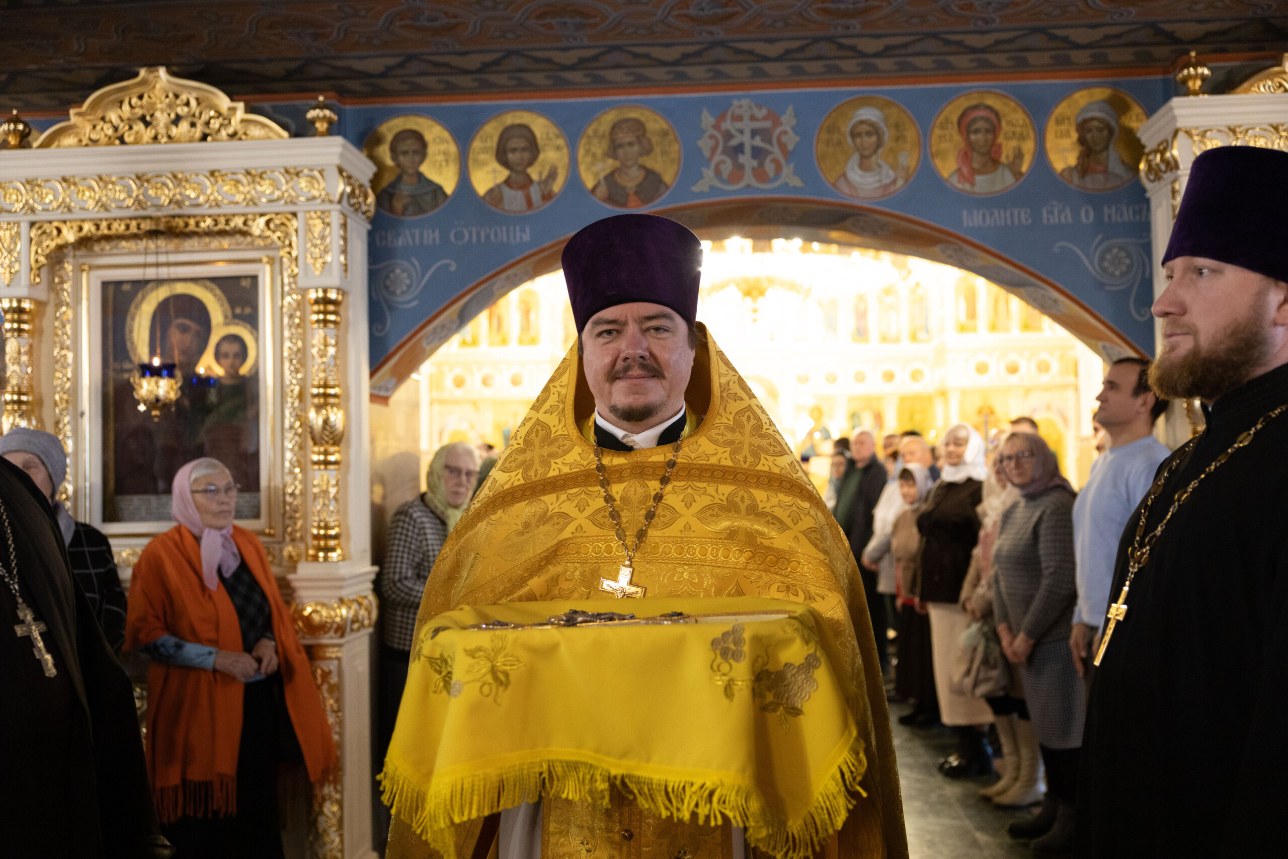 Богослужение возглавил благочинный Лангепасского благочиния иерей Евгений Чебыкин, в сослужении настоятеля храма иерея Димитрия Галицкого и клирика Прихода храма в честь великомученика Феодора Стратилата пгт. Федоровский иерея Богдана Черныша.