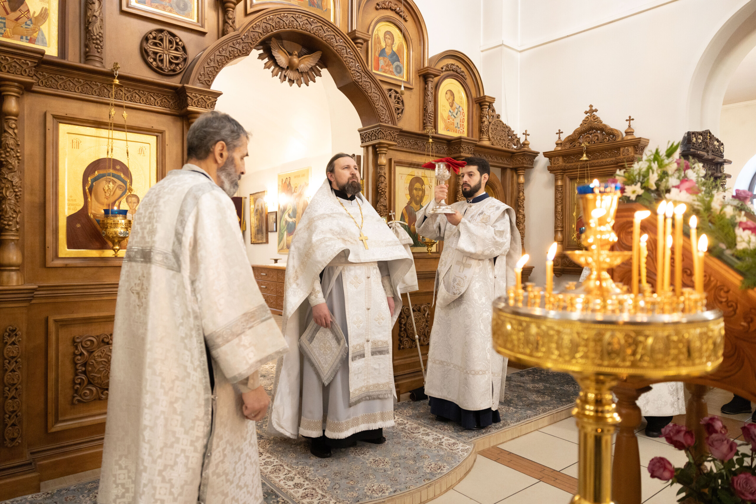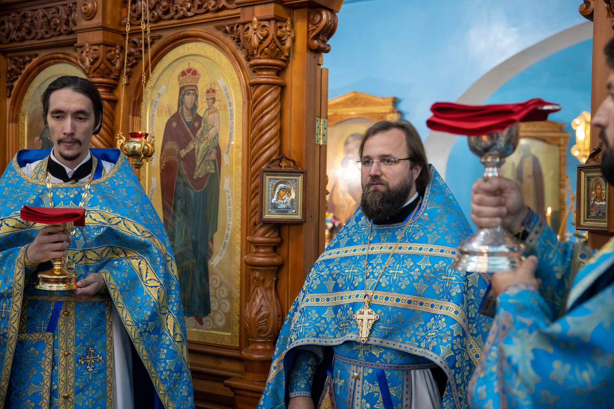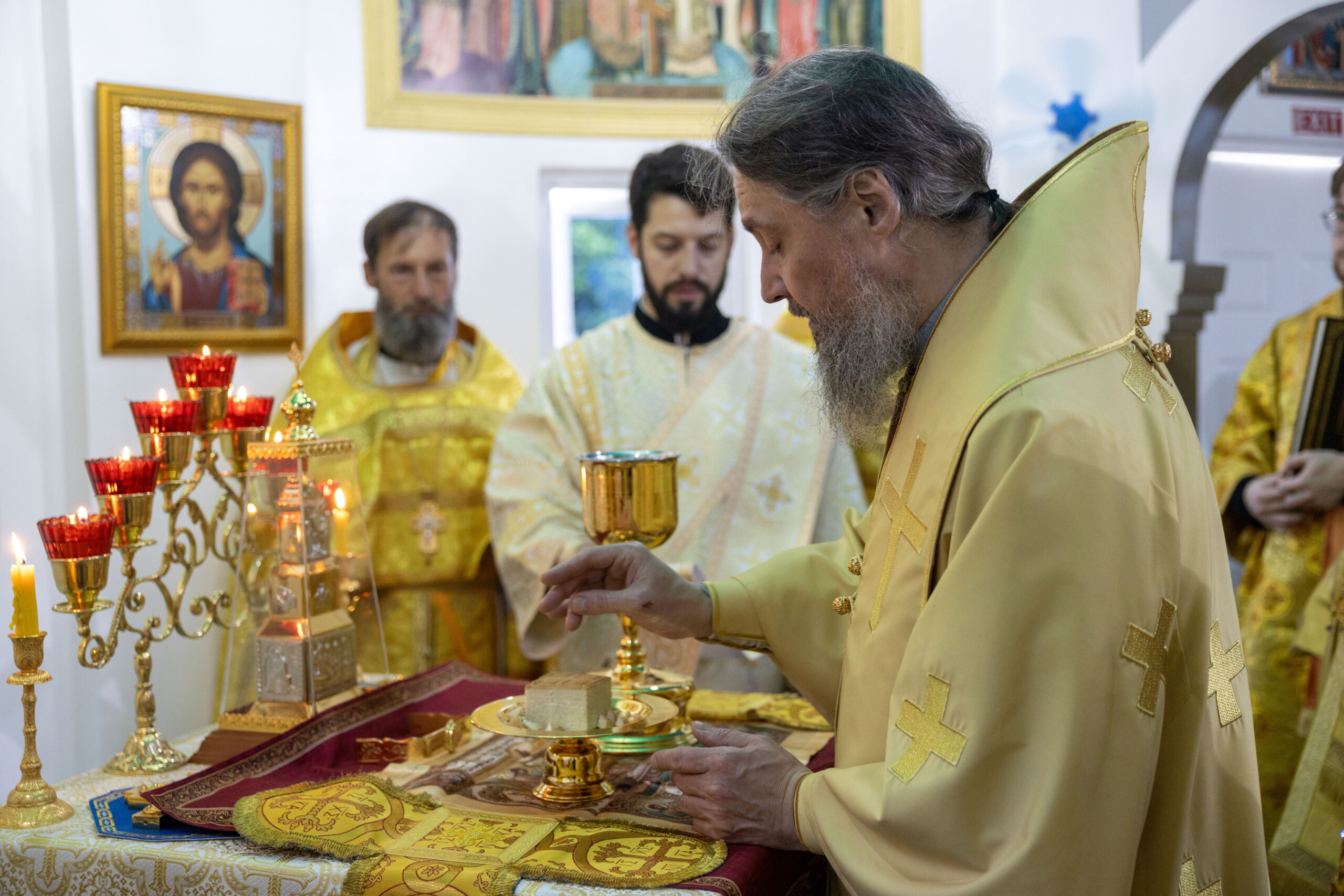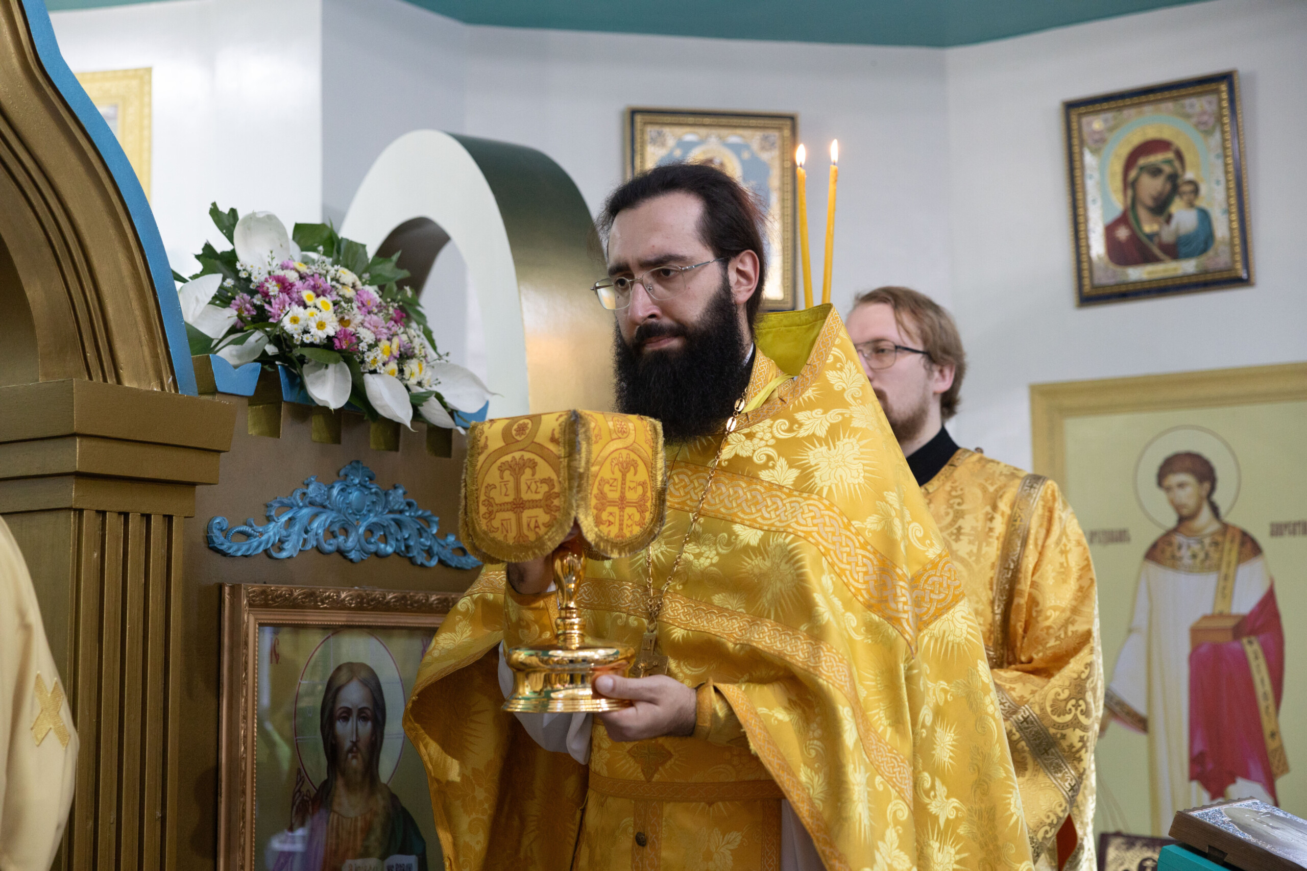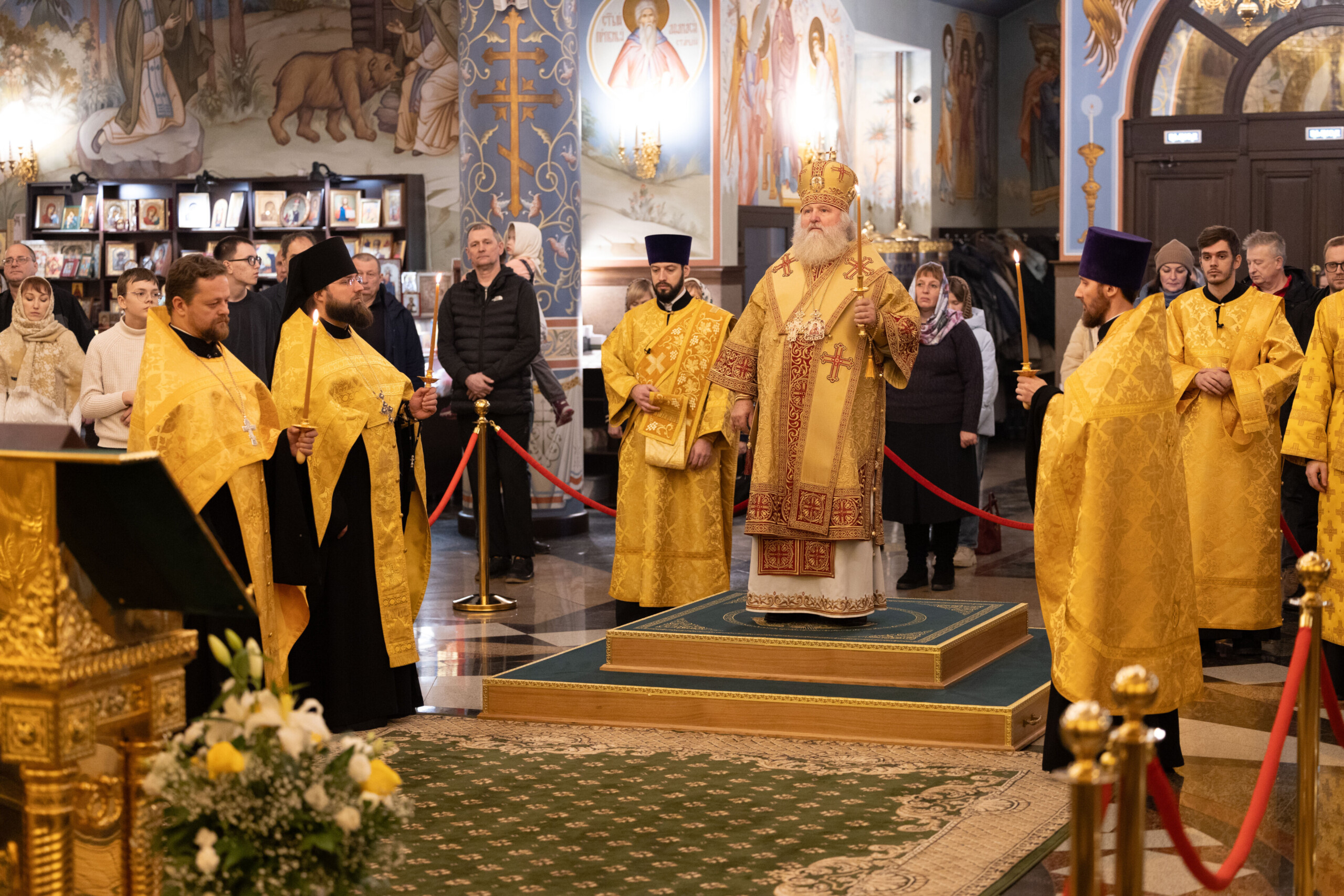 Богослужение возглавил благочинный Лангепасского благочиния иерей Евгений Чебыкин, в сослужении настоятеля храма иерея Димитрия Галицкого и клирика Прихода храма в честь великомученика Феодора Стратилата пгт. Федоровский иерея Богдана Черныша.
