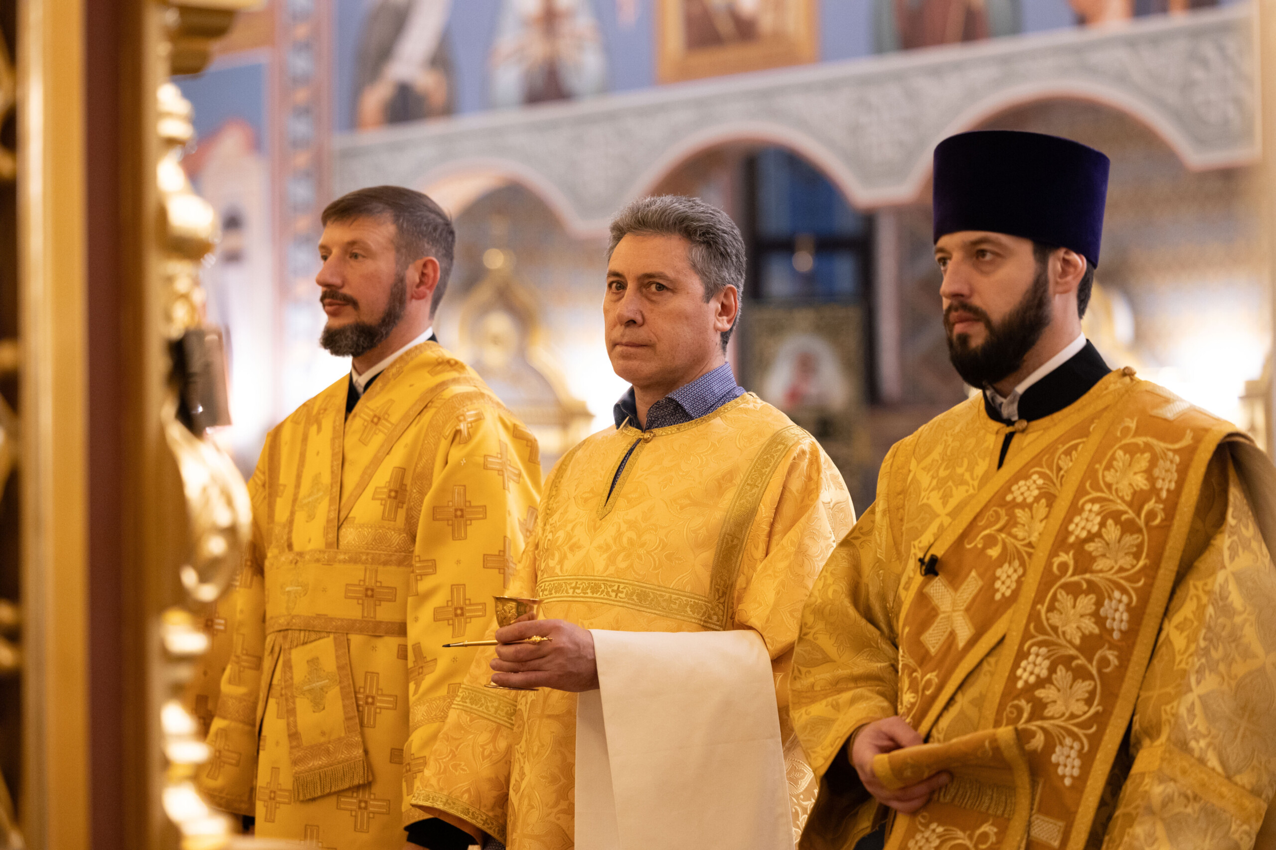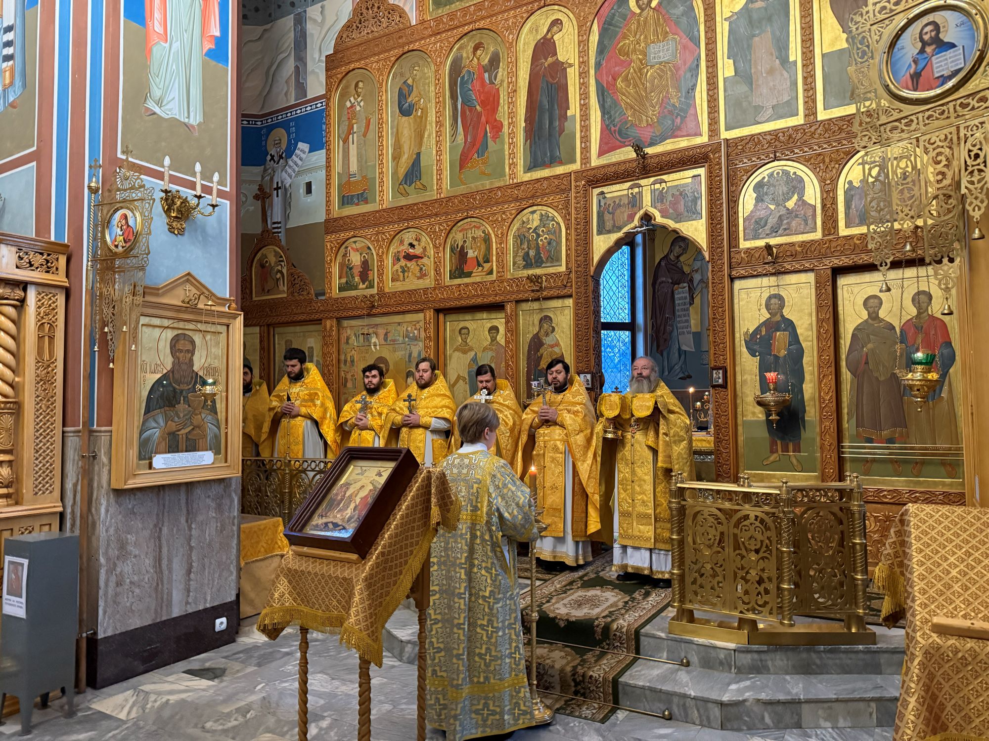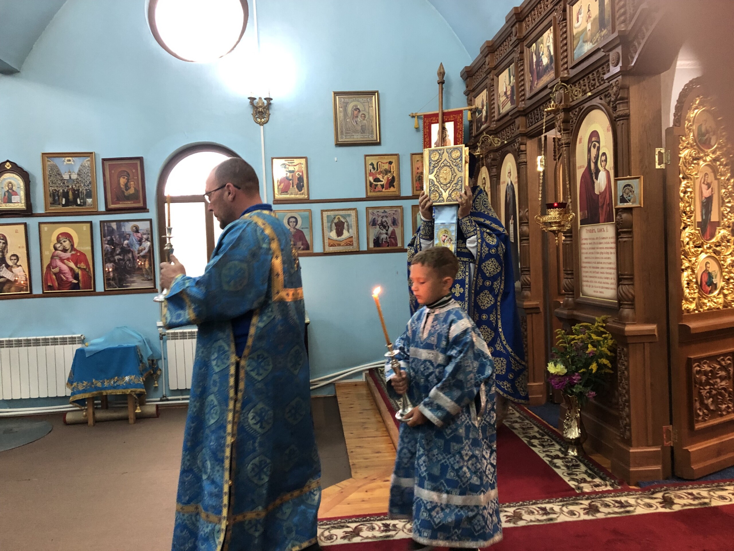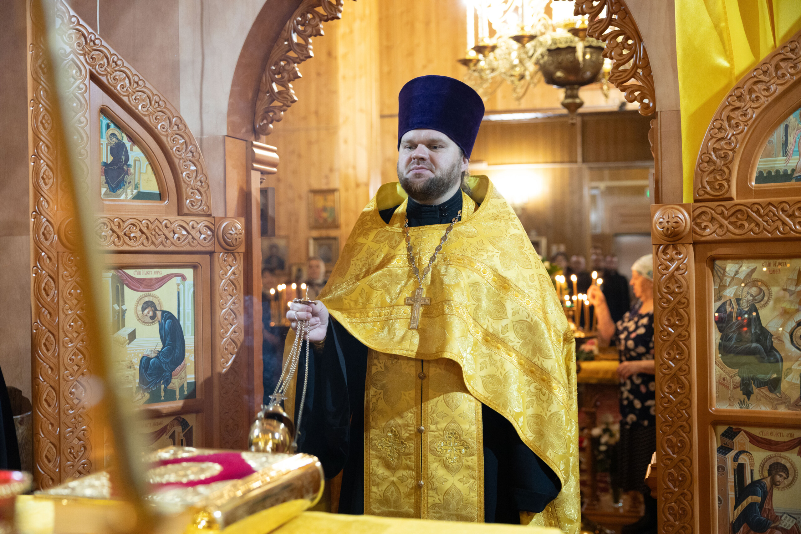 Богослужение возглавил благочинный Лангепасского благочиния иерей Евгений Чебыкин, в сослужении настоятеля храма иерея Димитрия Галицкого и клирика Прихода храма в честь великомученика Феодора Стратилата пгт. Федоровский иерея Богдана Черныша.