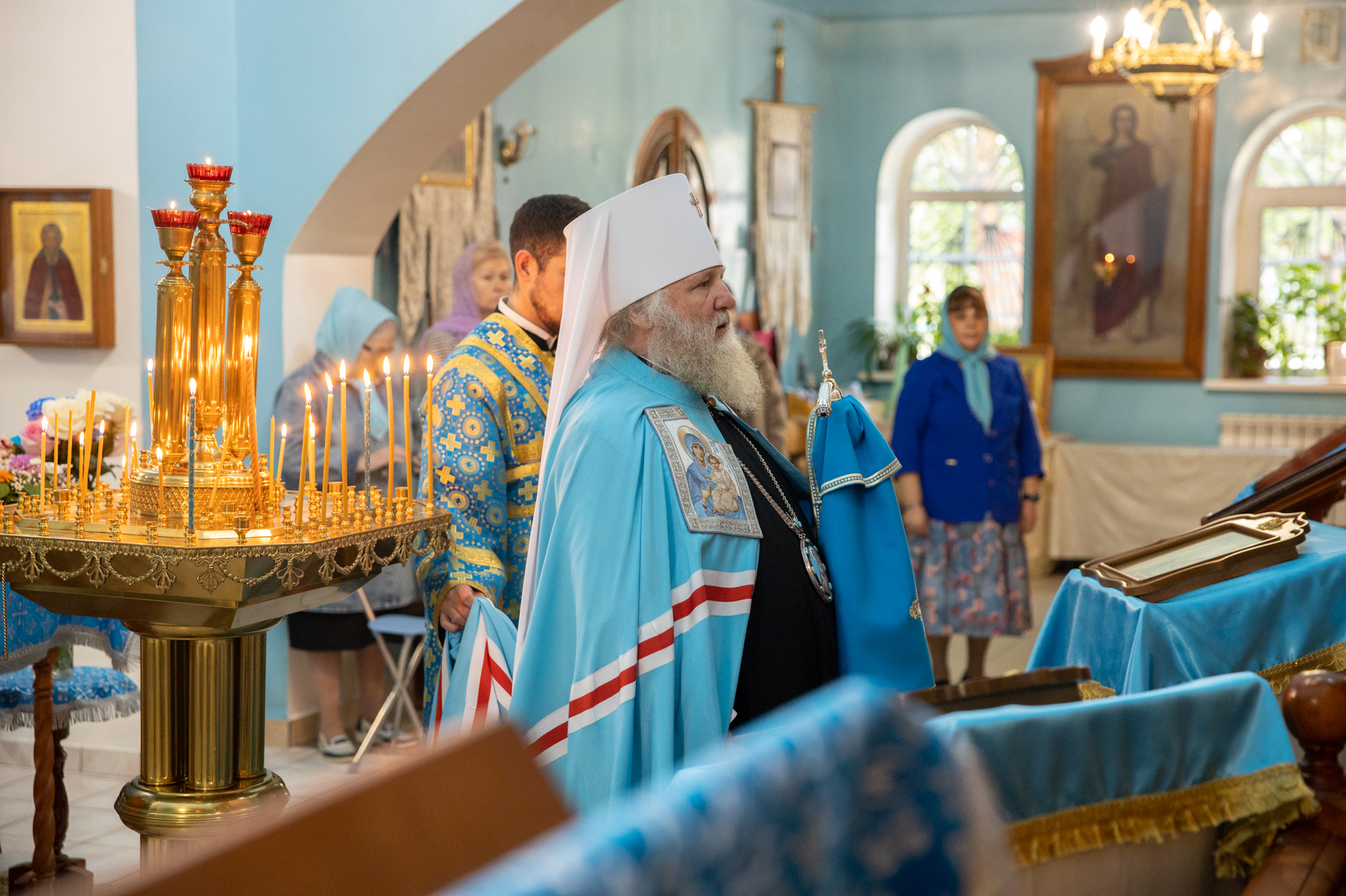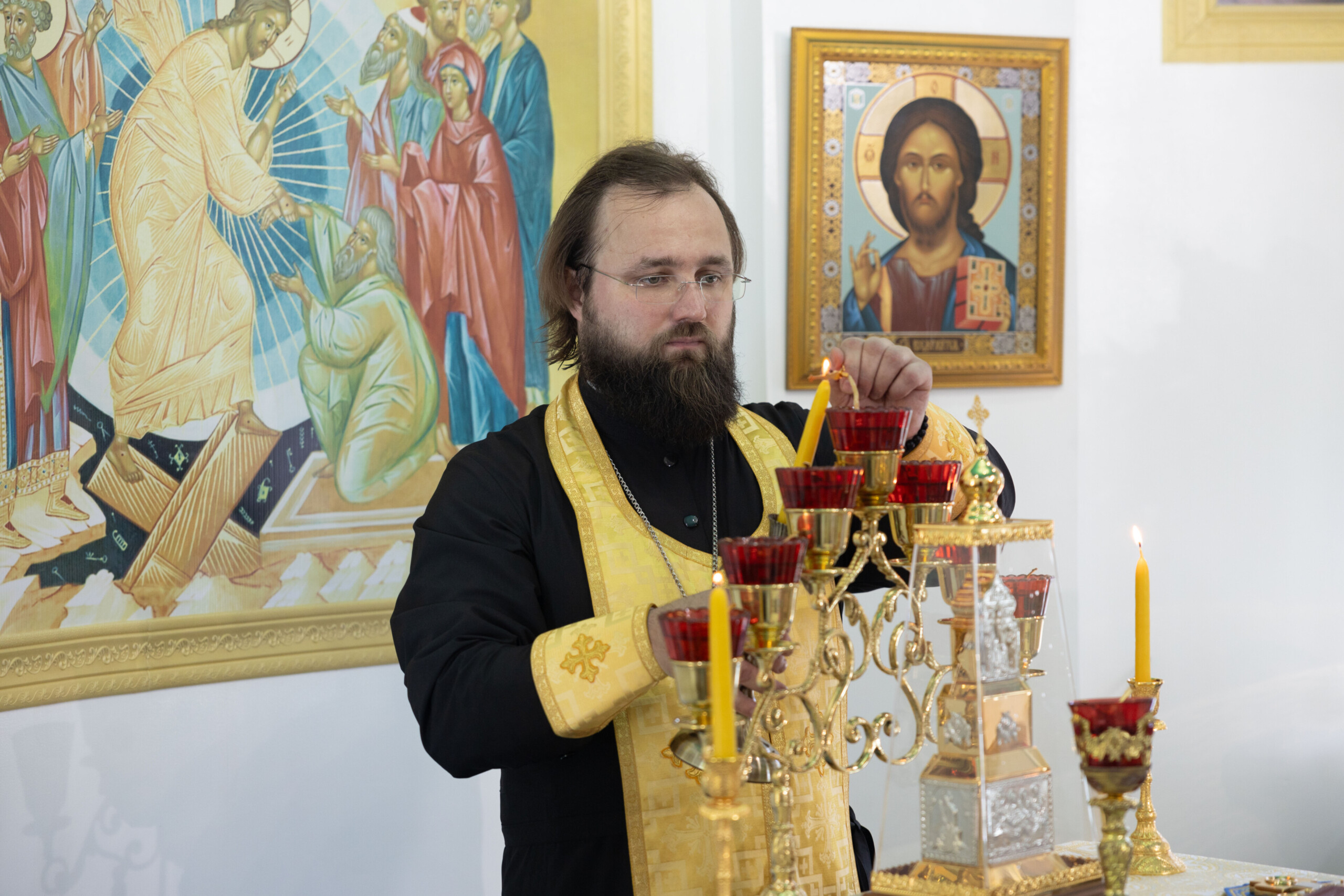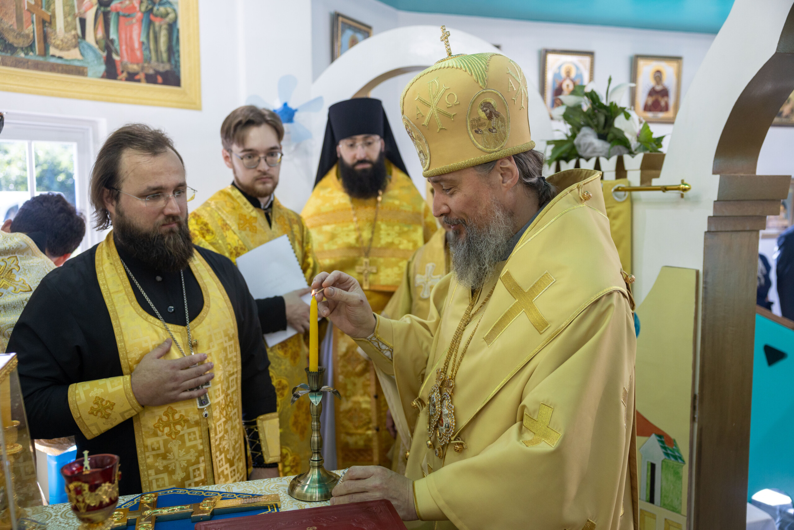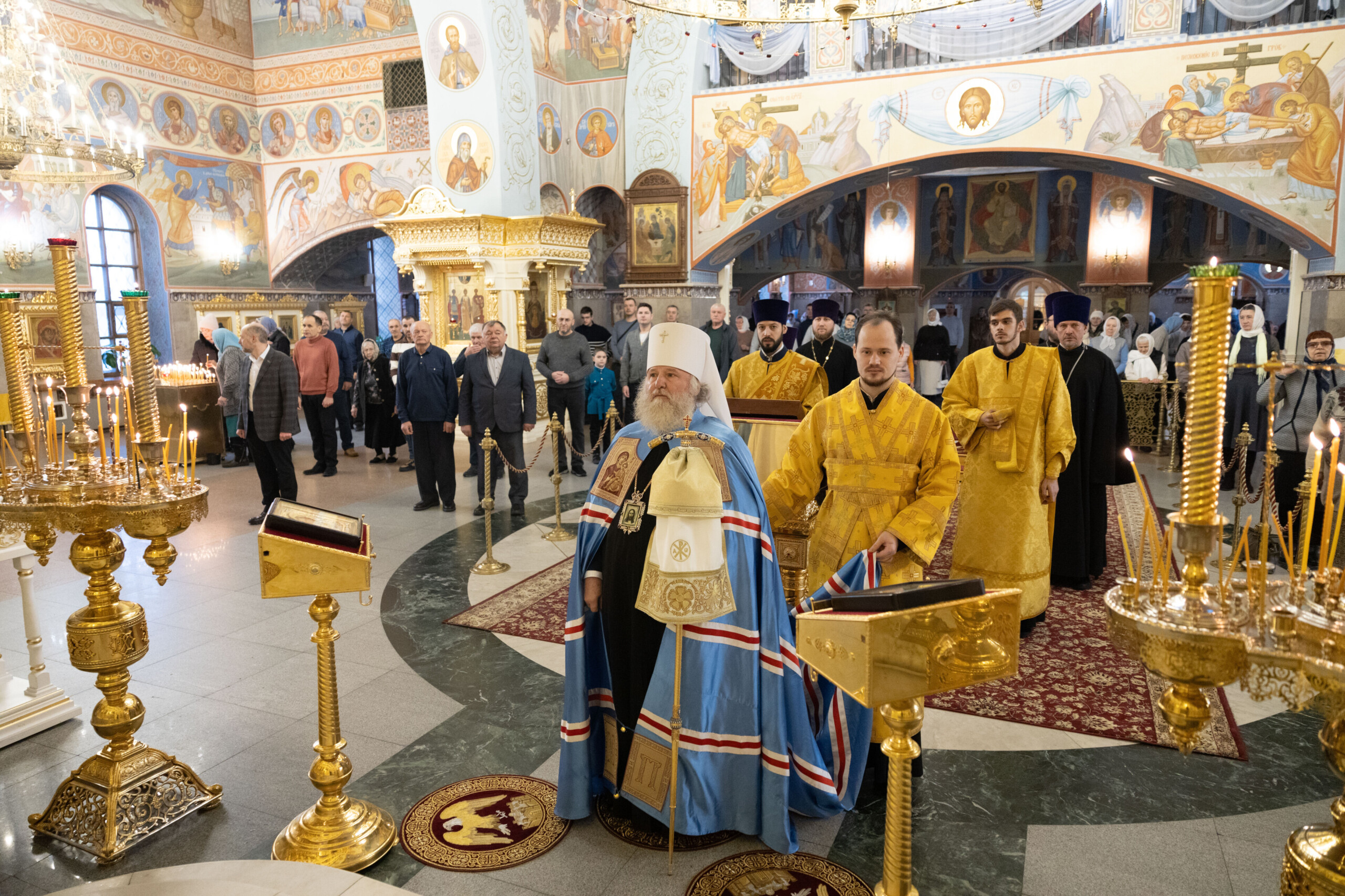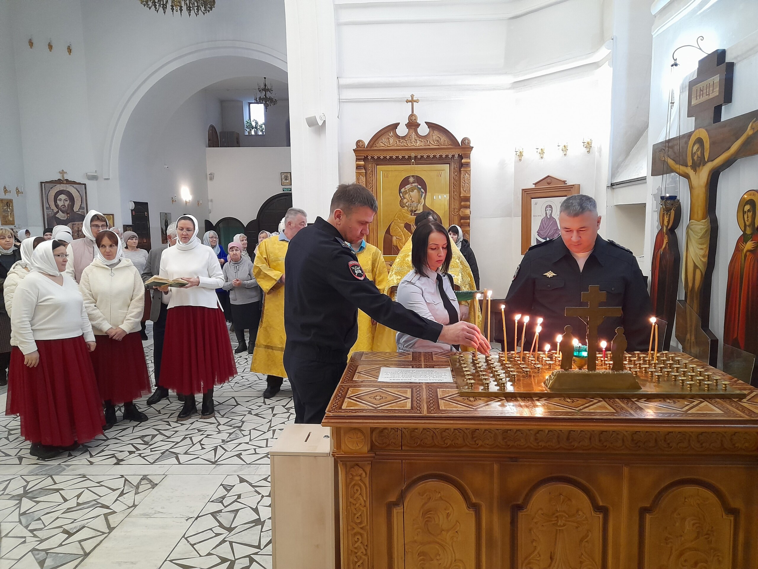 Богослужение возглавил благочинный Лангепасского благочиния иерей Евгений Чебыкин, в сослужении настоятеля храма иерея Димитрия Галицкого и клирика Прихода храма в честь великомученика Феодора Стратилата пгт. Федоровский иерея Богдана Черныша.