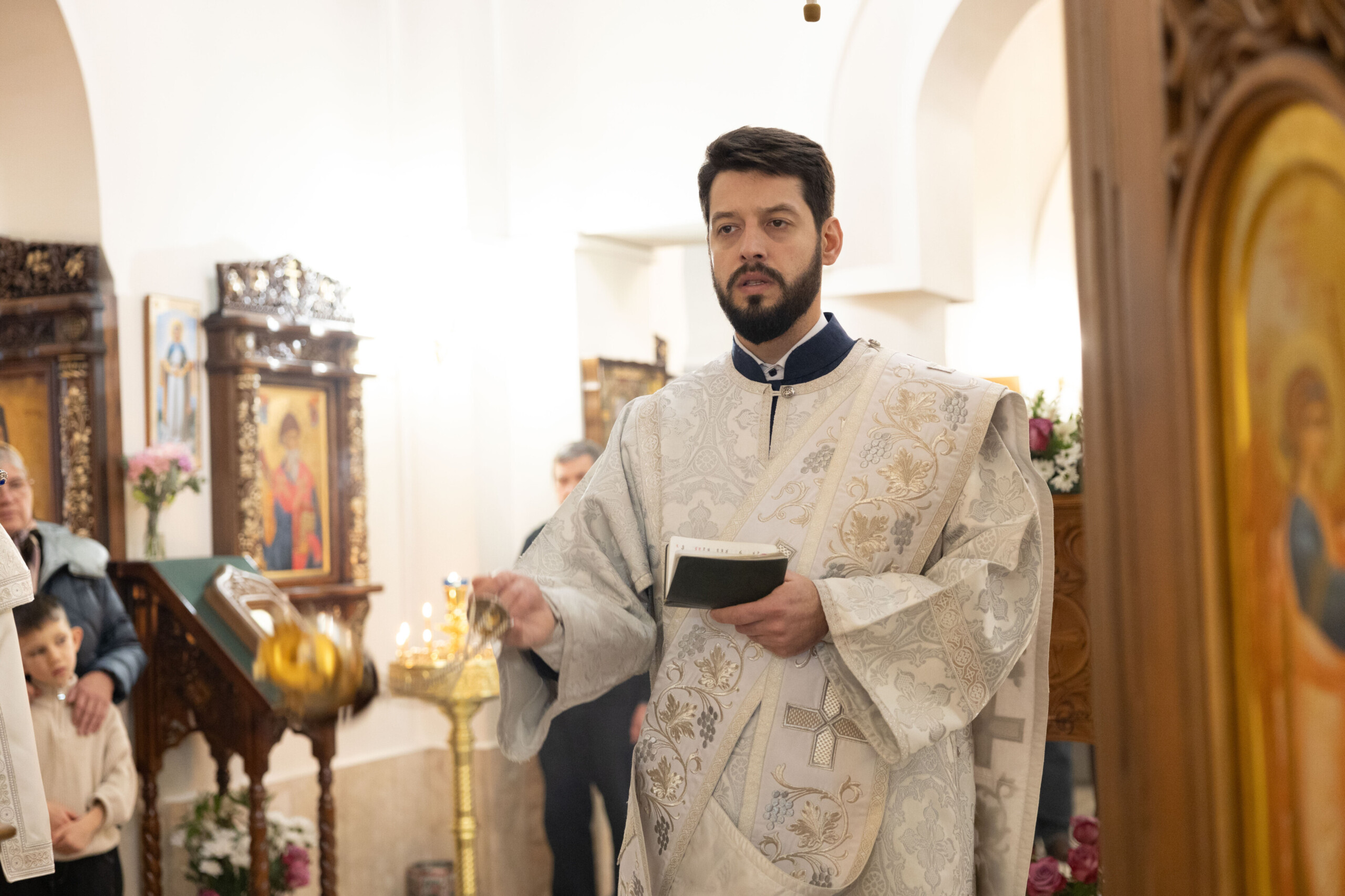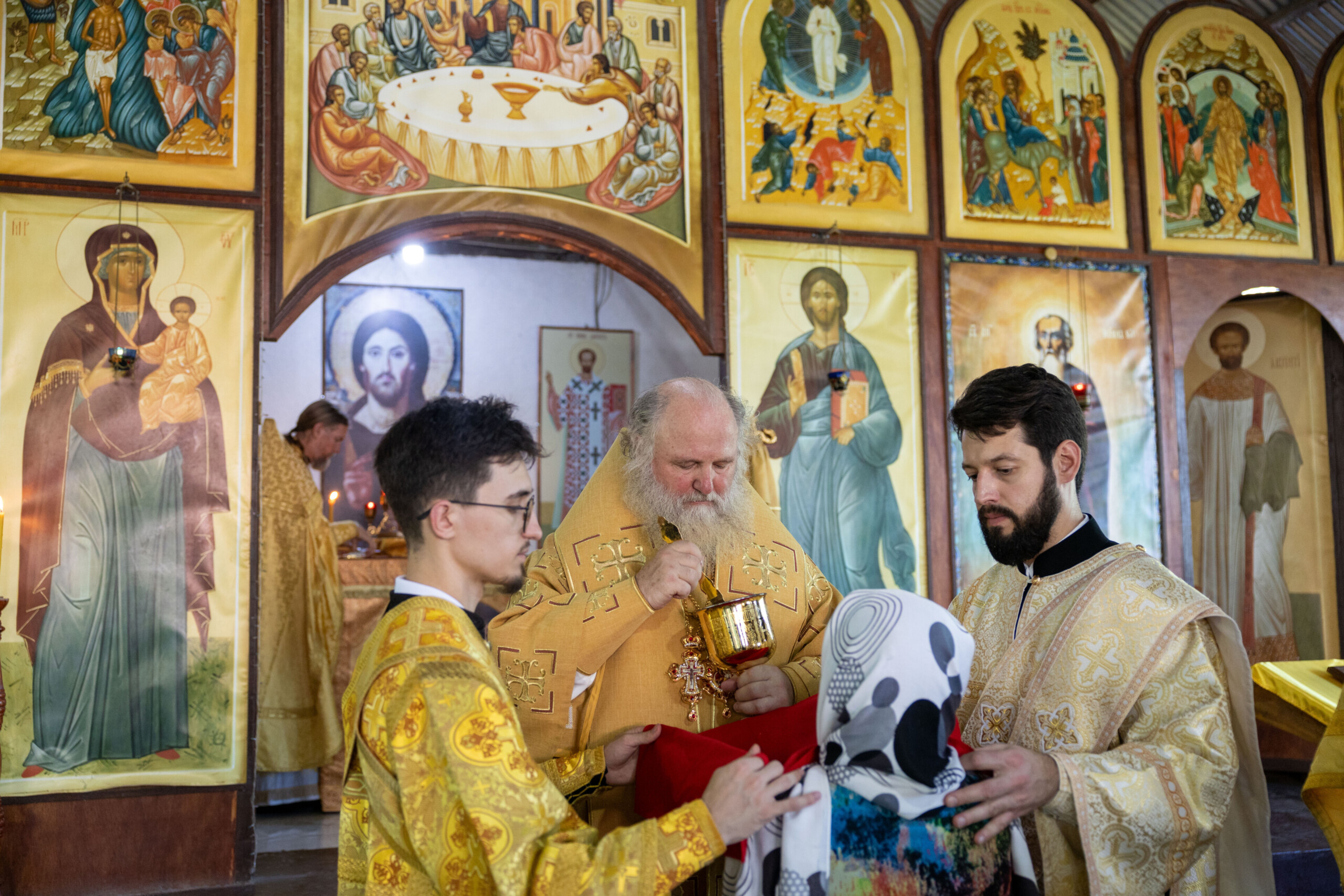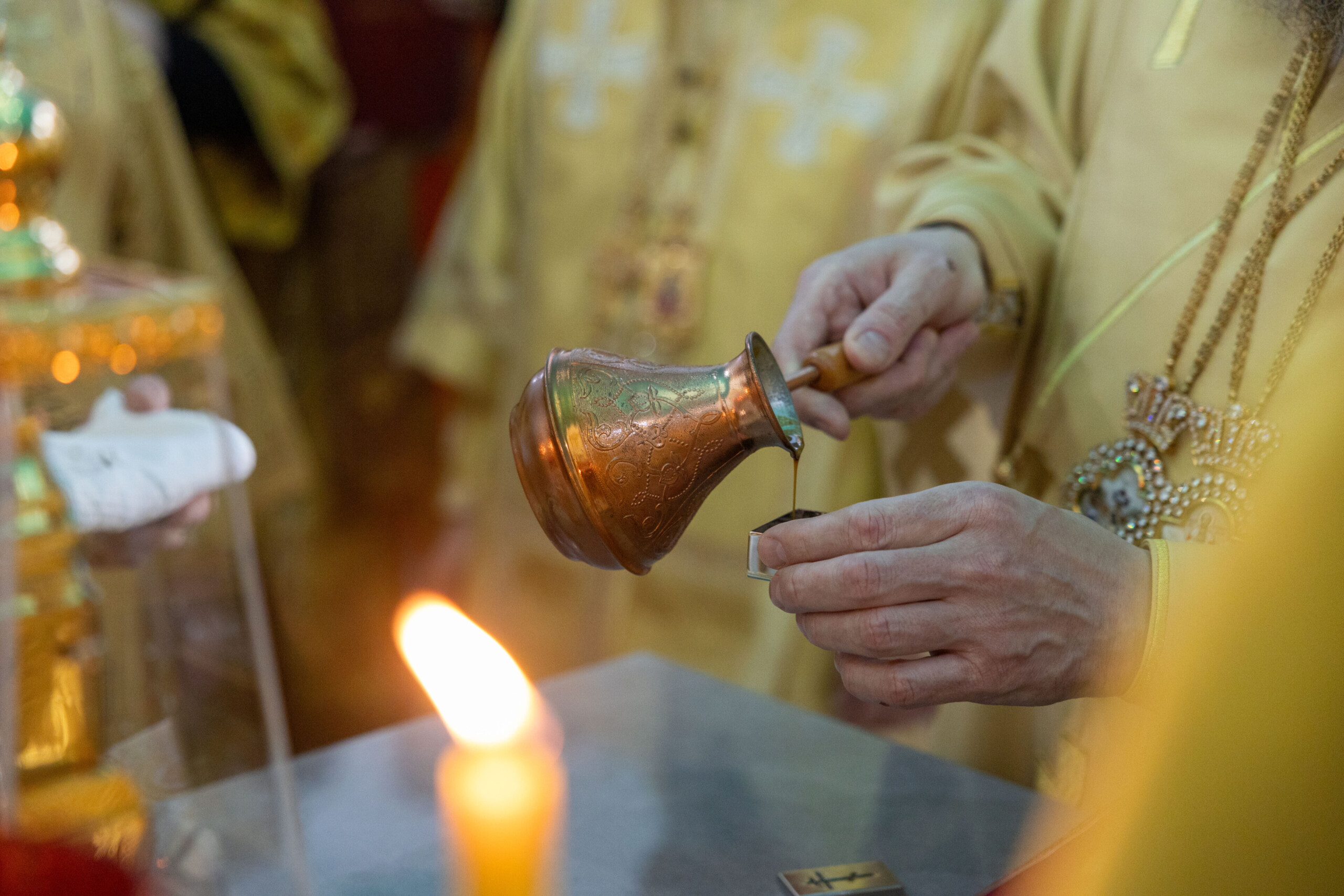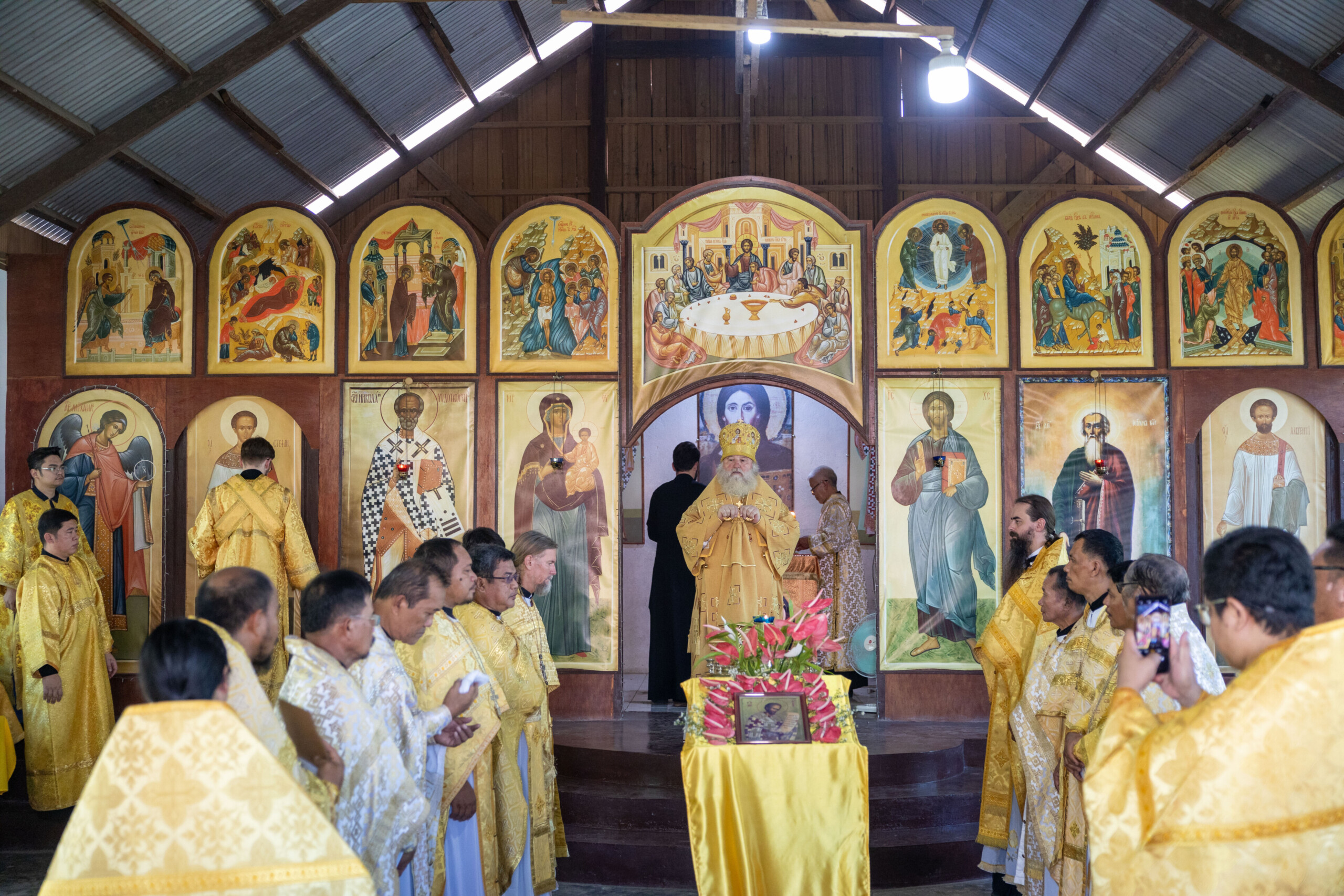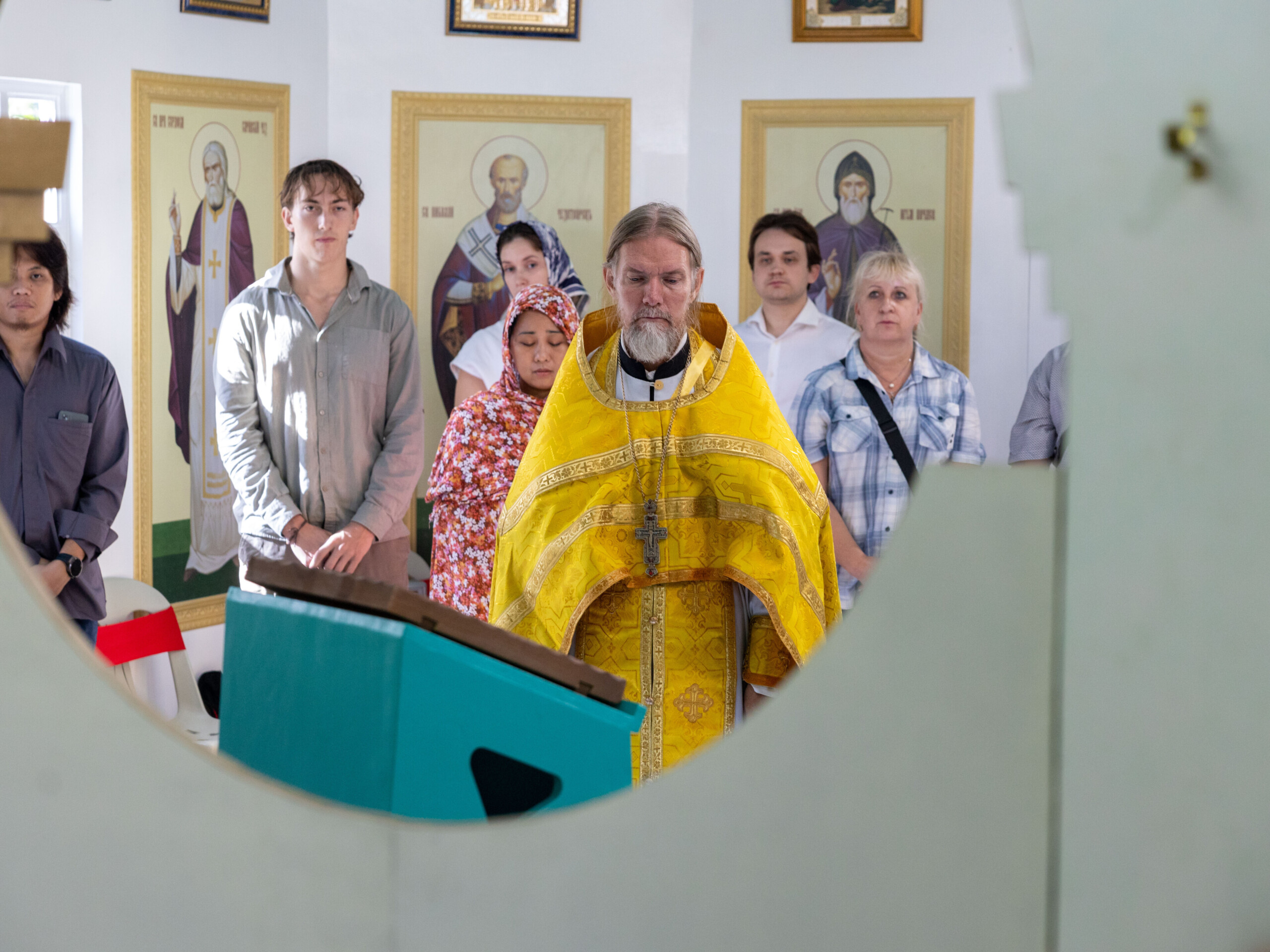 Богослужение возглавил благочинный Лангепасского благочиния иерей Евгений Чебыкин, в сослужении настоятеля храма иерея Димитрия Галицкого и клирика Прихода храма в честь великомученика Феодора Стратилата пгт. Федоровский иерея Богдана Черныша.