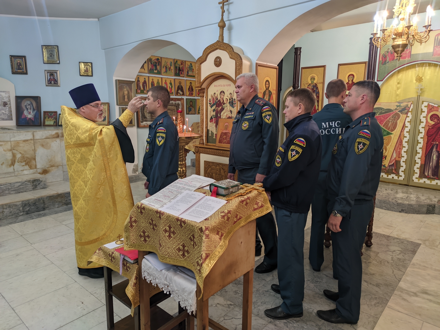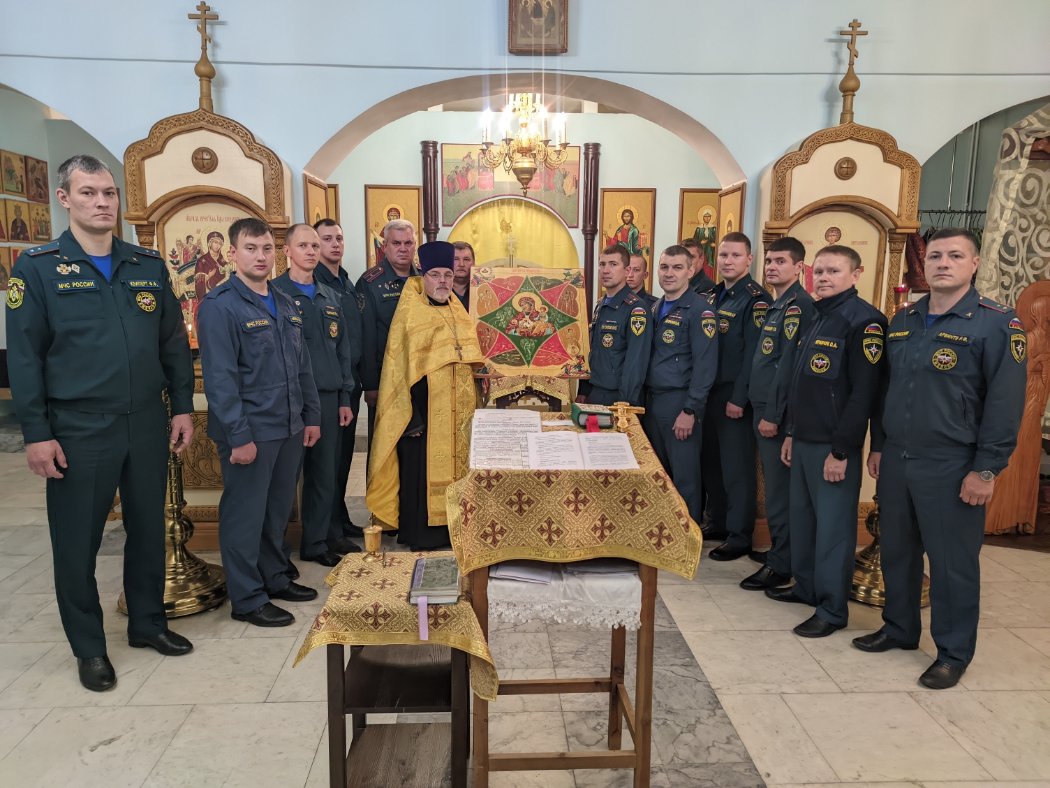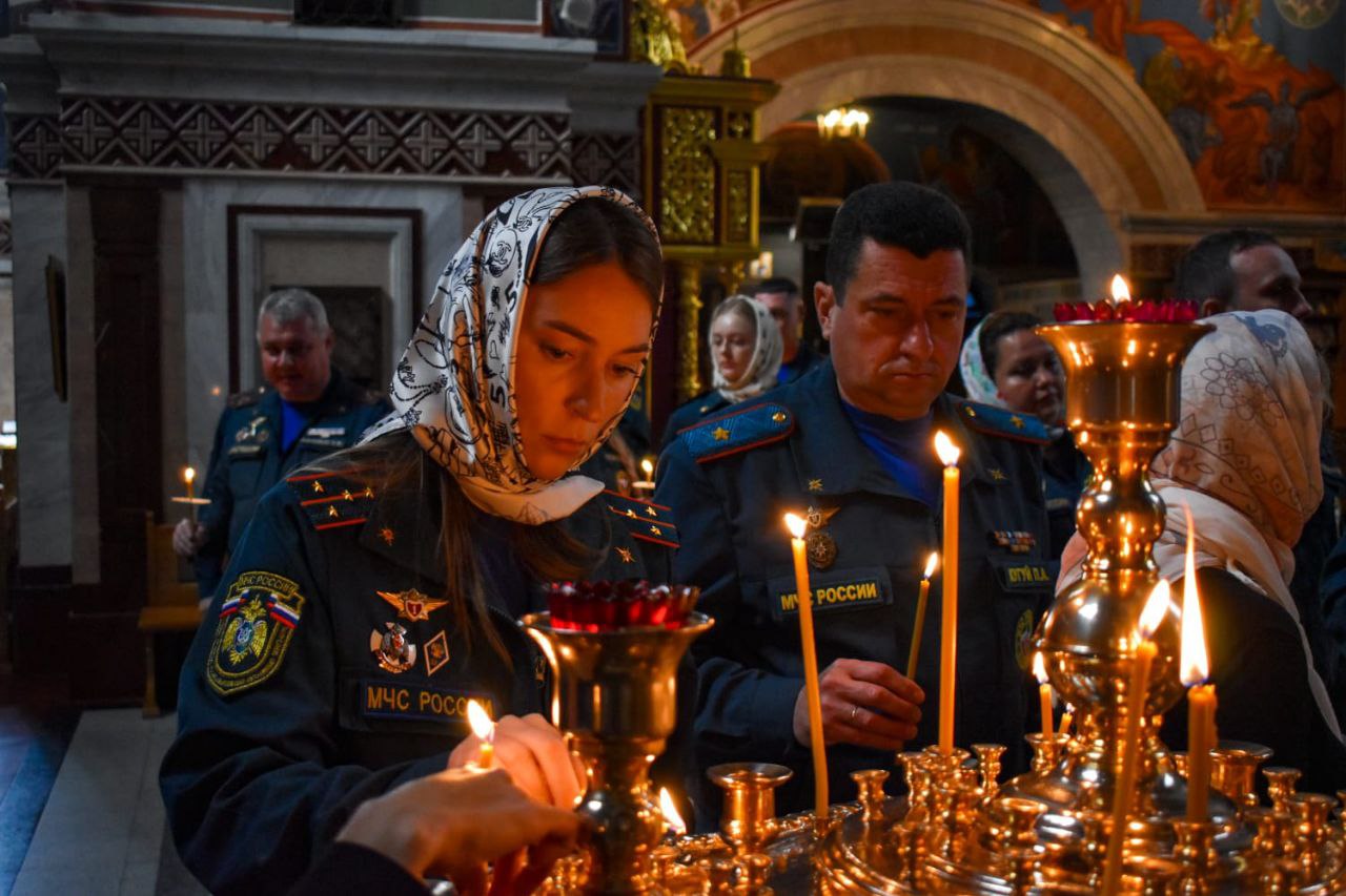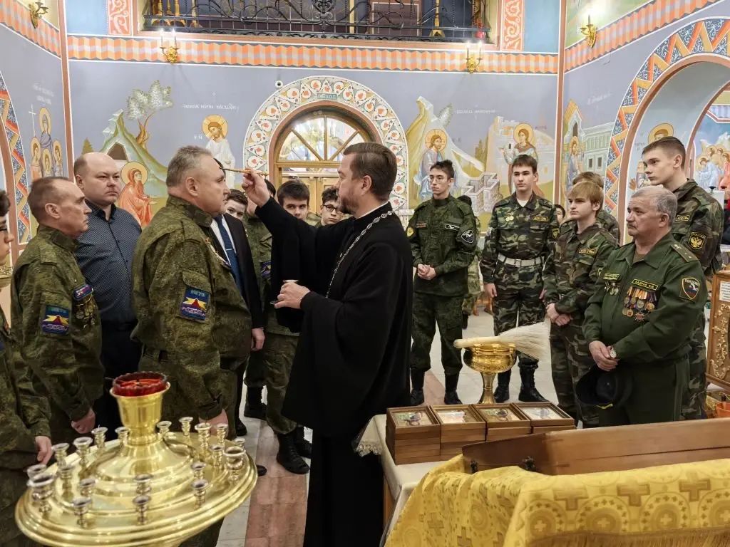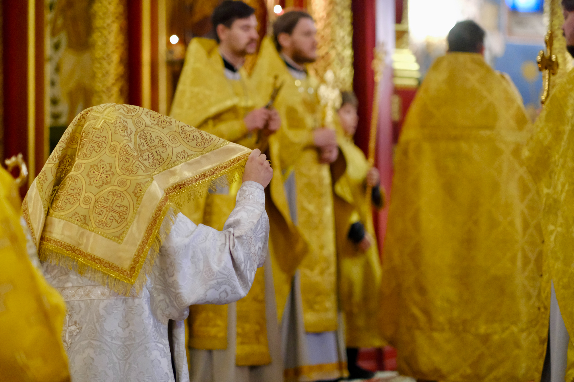 На мирной и сугубой ектениях были вознесены молитвы о Российском воинстве и о мире.