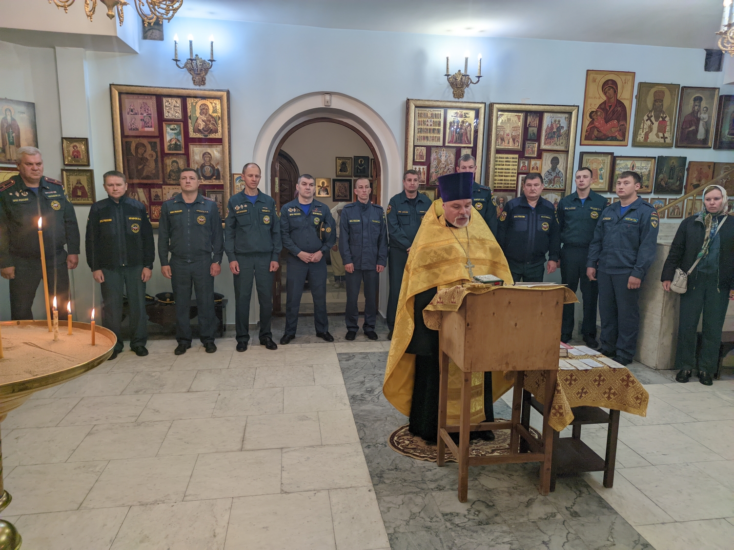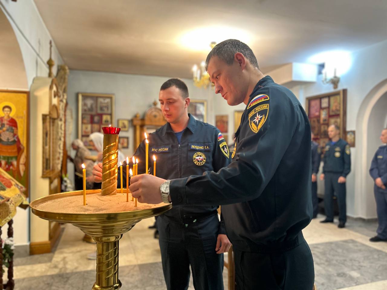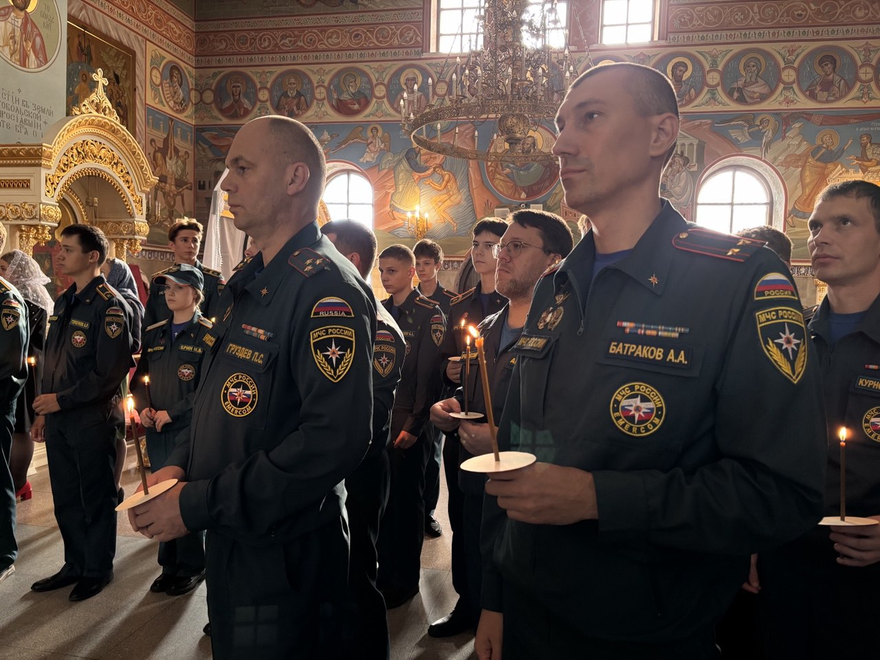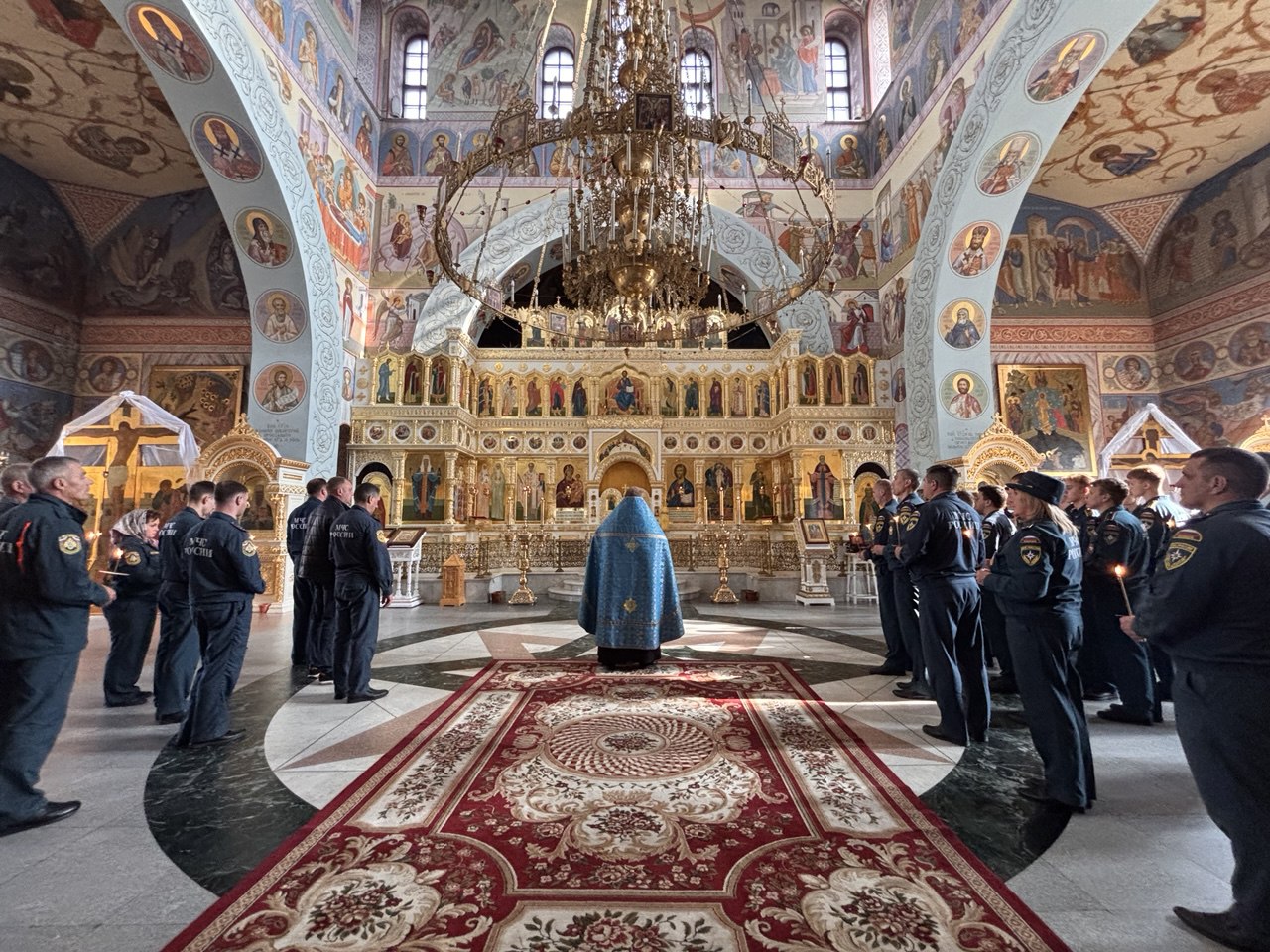 На мирной и сугубой ектениях были вознесены молитвы о Российском воинстве и о мире.