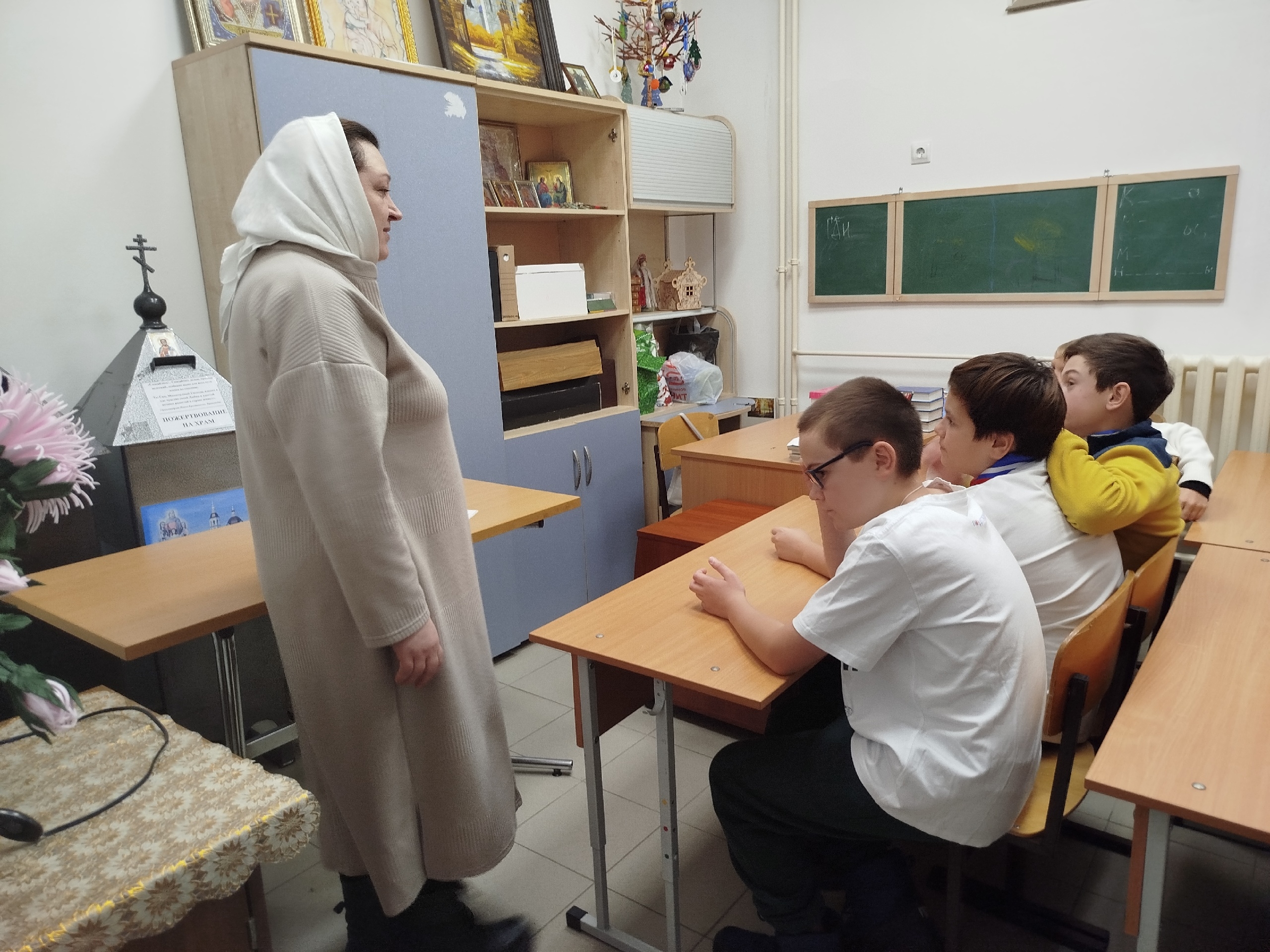 Продолжилась встреча беседой о том, кто такой священник, чем он занимается, какие у него обязанности и кому он служит?