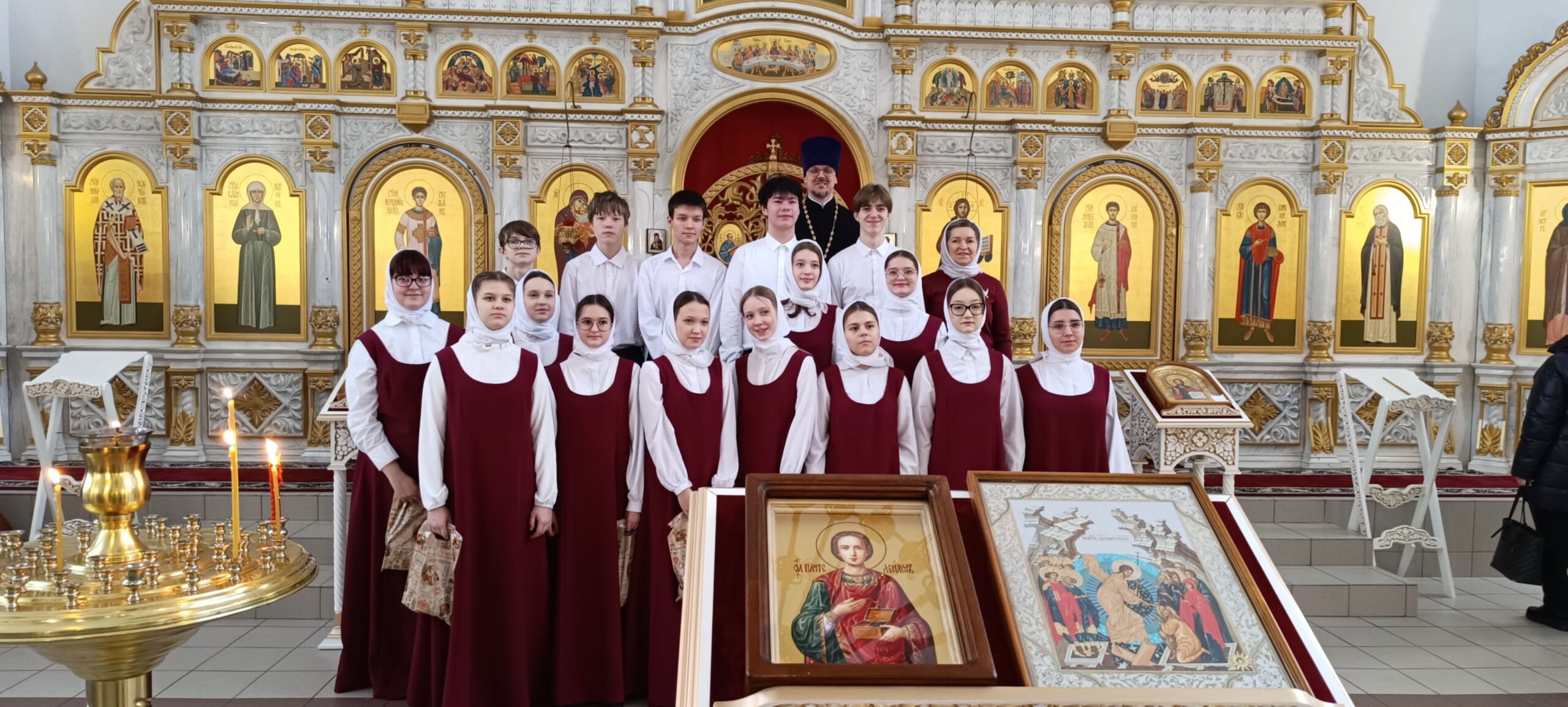 Особым, благодатным событием стало посещение одного из древнейших храмов Югорской земли — храма Покрова Божией Матери. Его история уходит корнями в 1640 год! Ребята с трепетом приложились к великим святыням, которые бережно хранятся здесь: