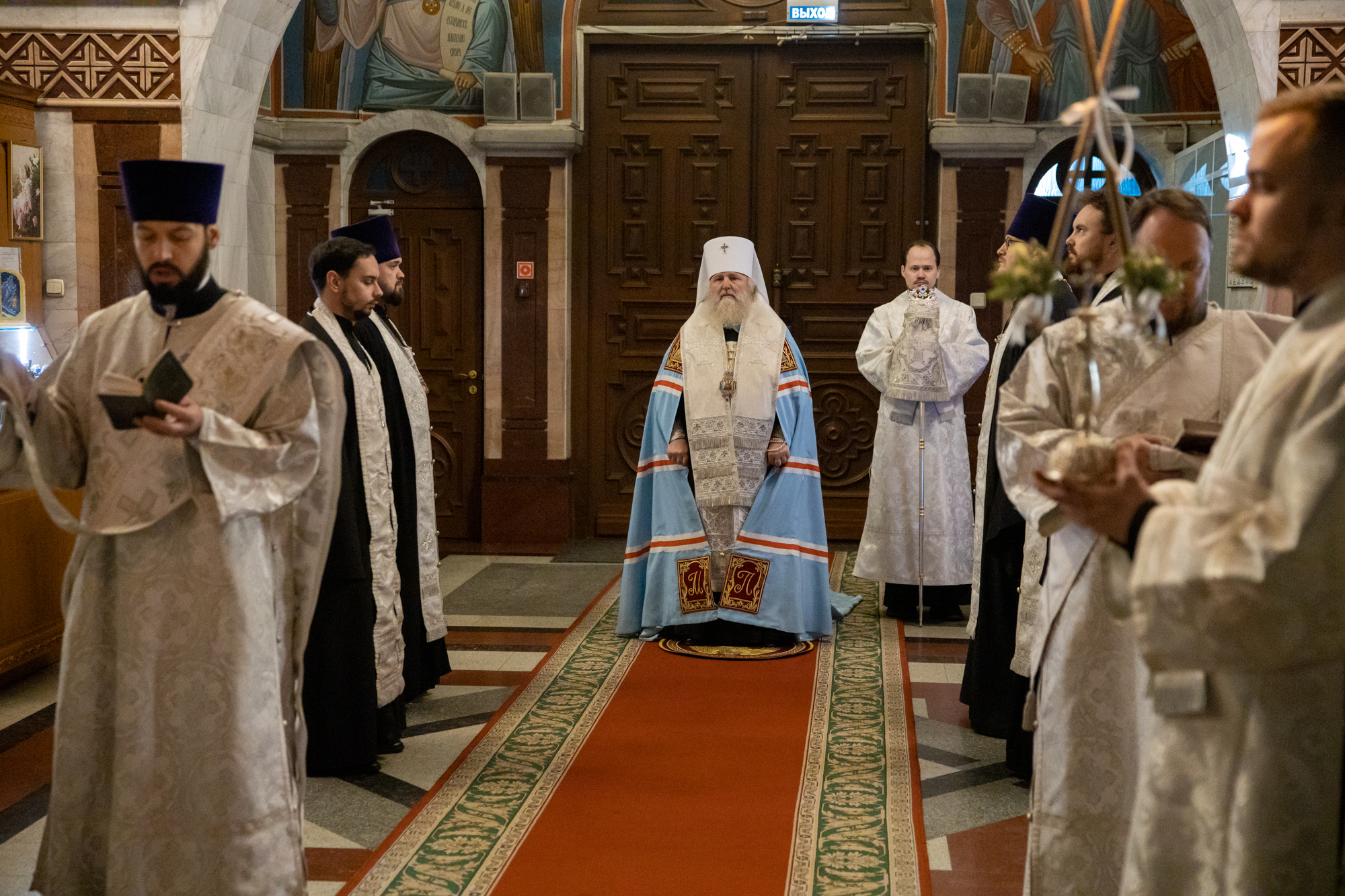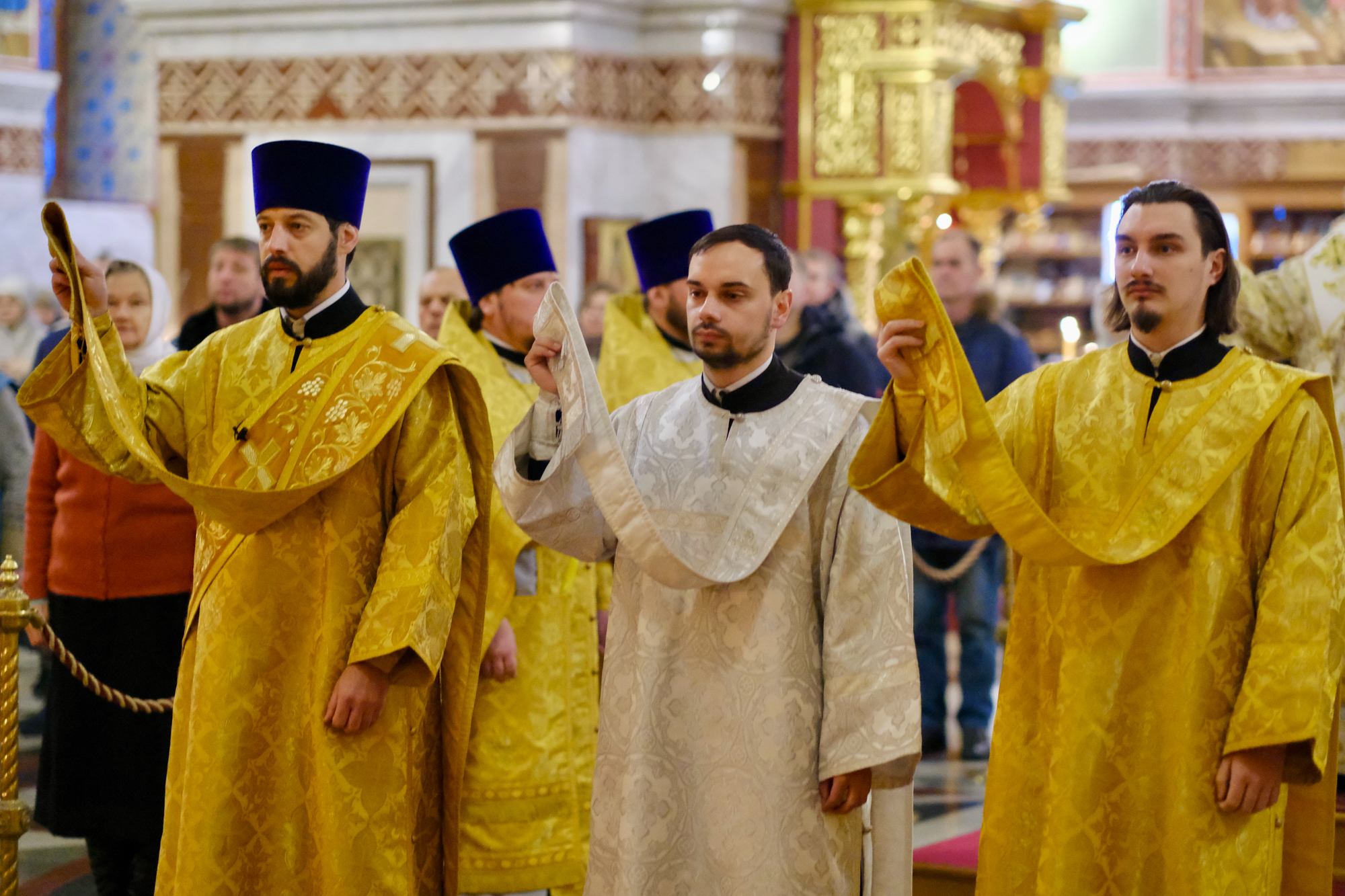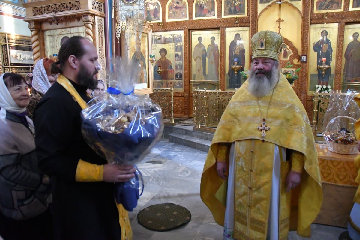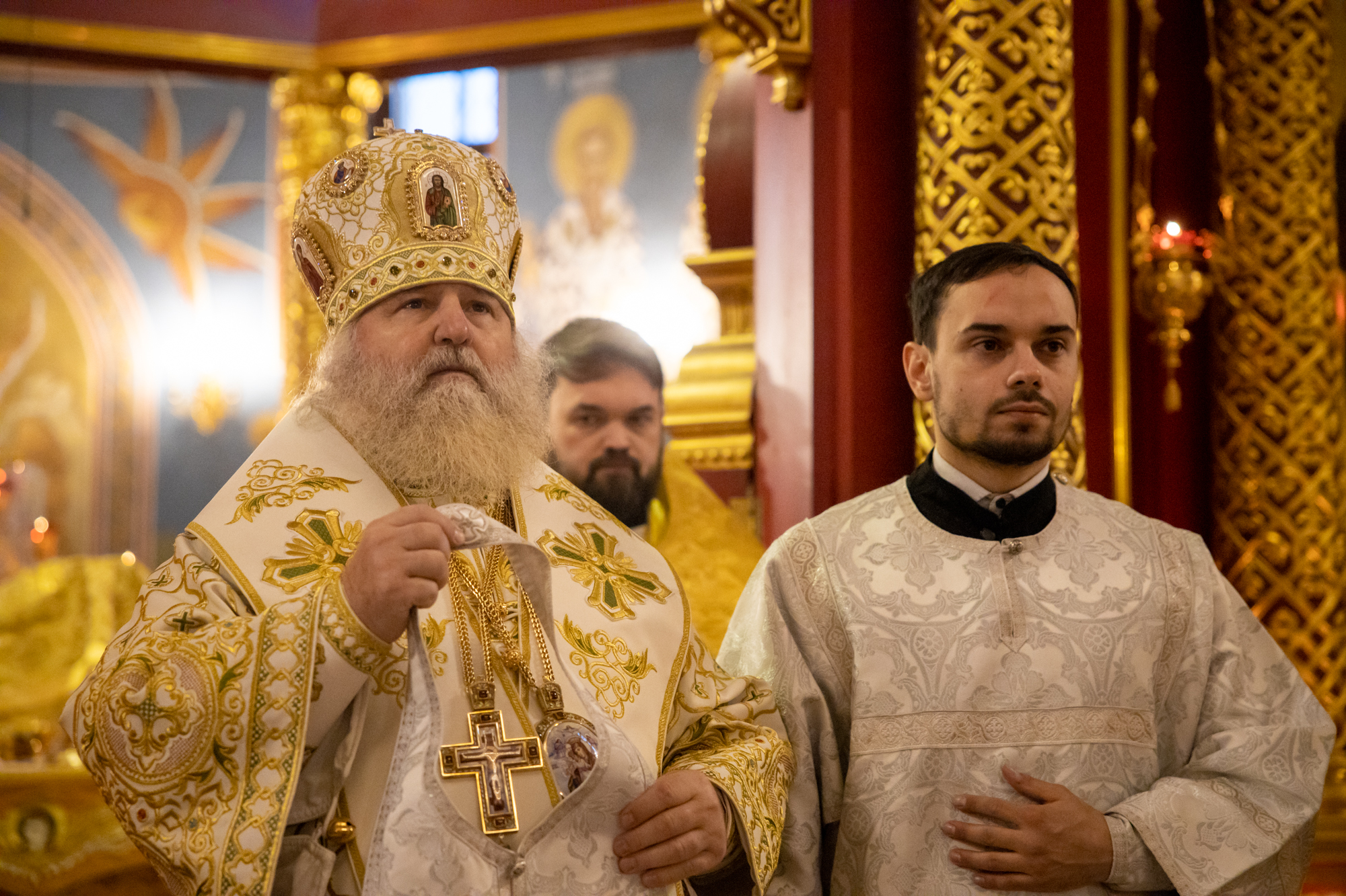 Его Высокопреосвященству сослужили: благочинный Ханты-Мансийского благочиния иерей Димитрий Губанищев, ключарь собора иерей Александр Петюр, духовенство собора.