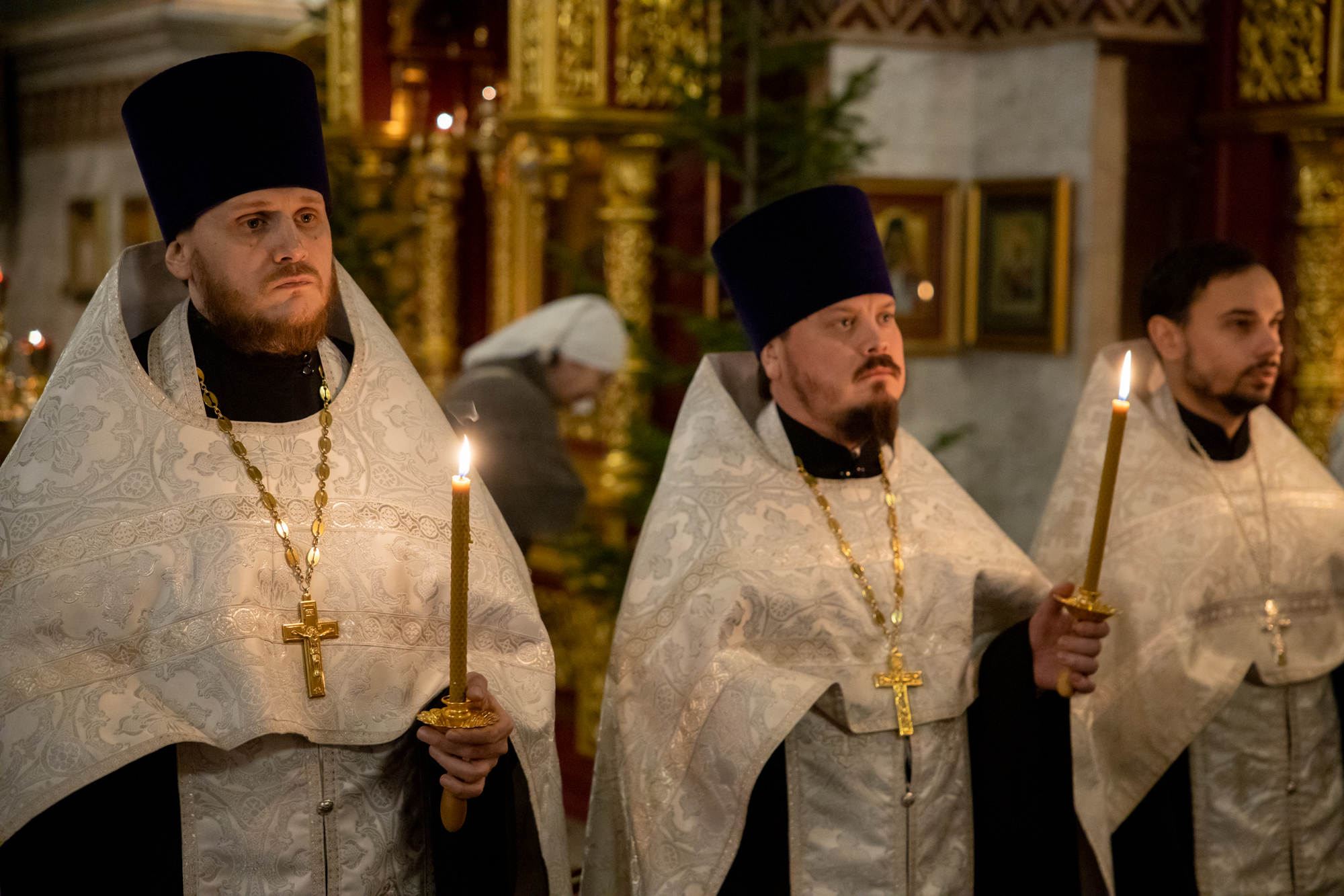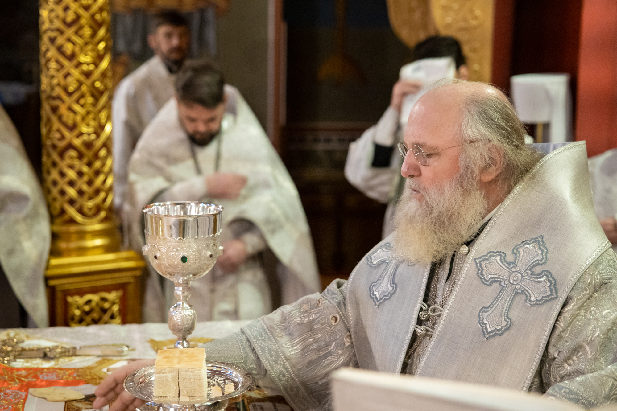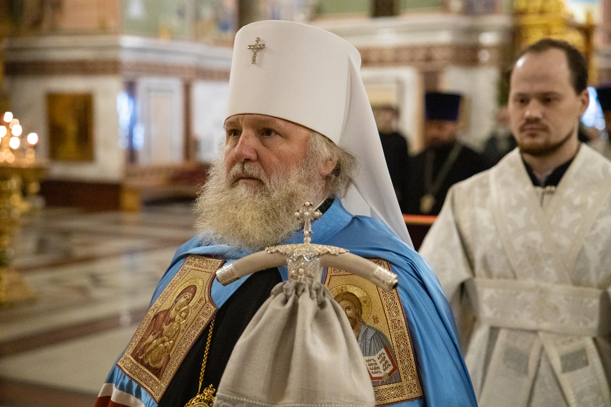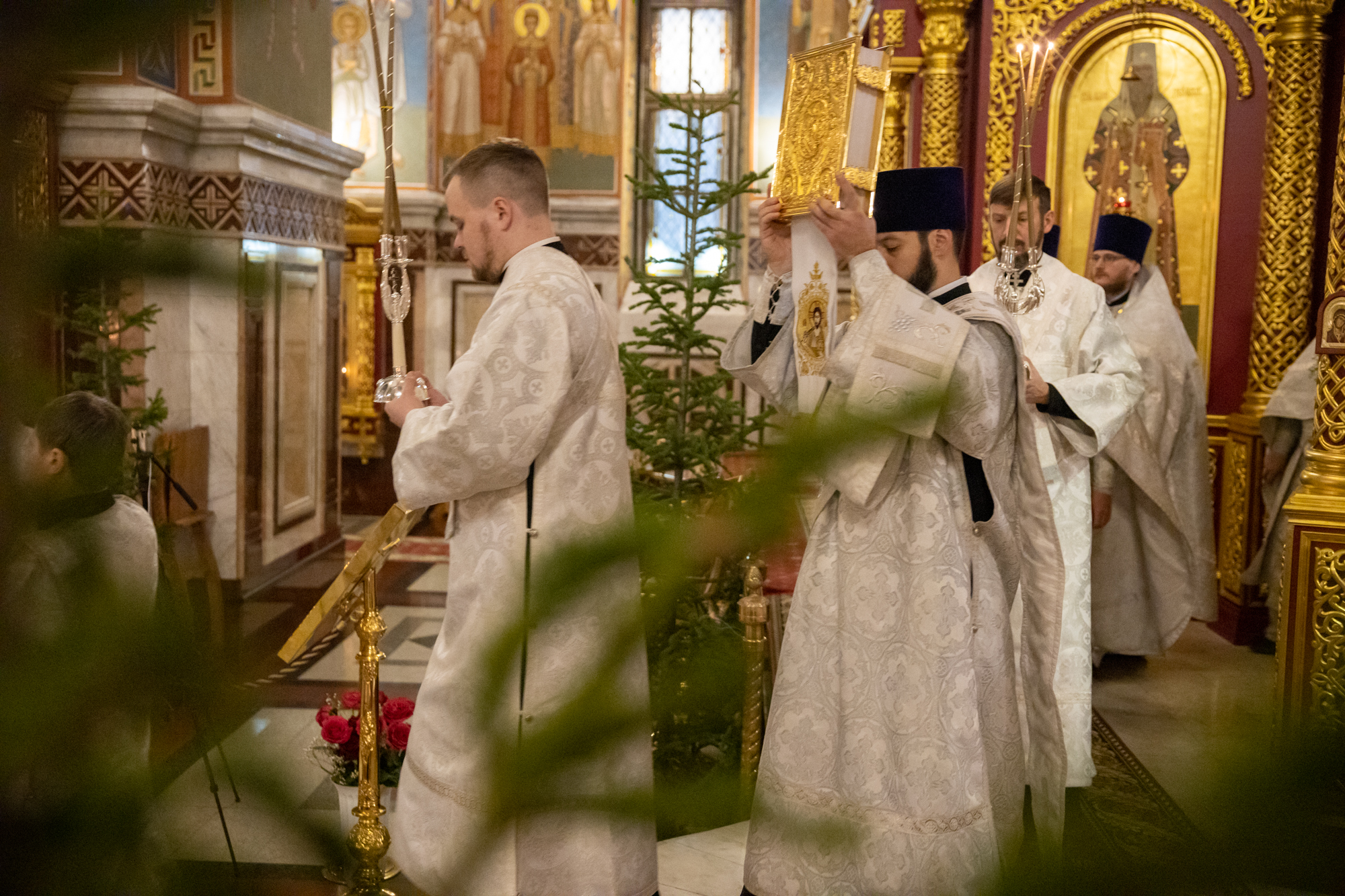 Его Высокопреосвященству сослужили: благочинный Ханты-Мансийского благочиния иерей Димитрий Губанищев, ключарь собора иерей Александр Петюр, духовенство собора.