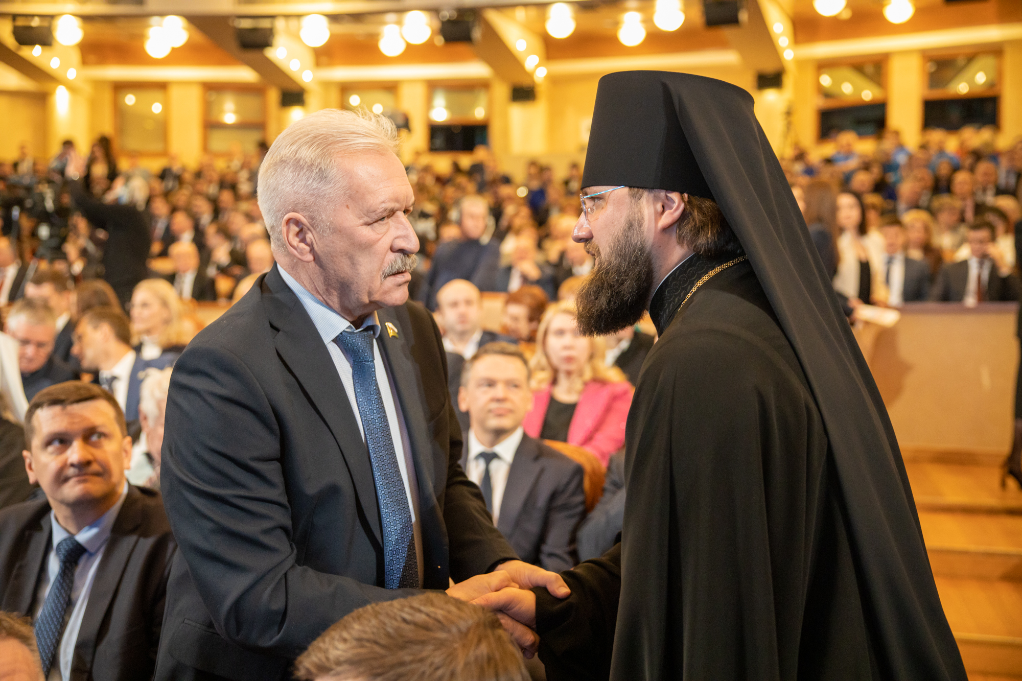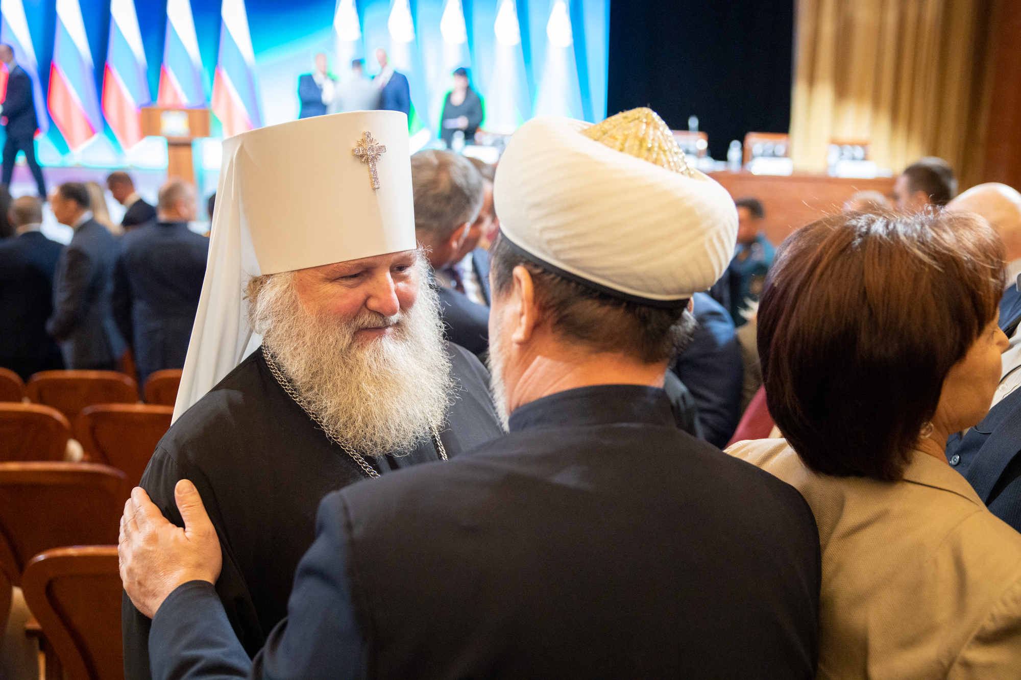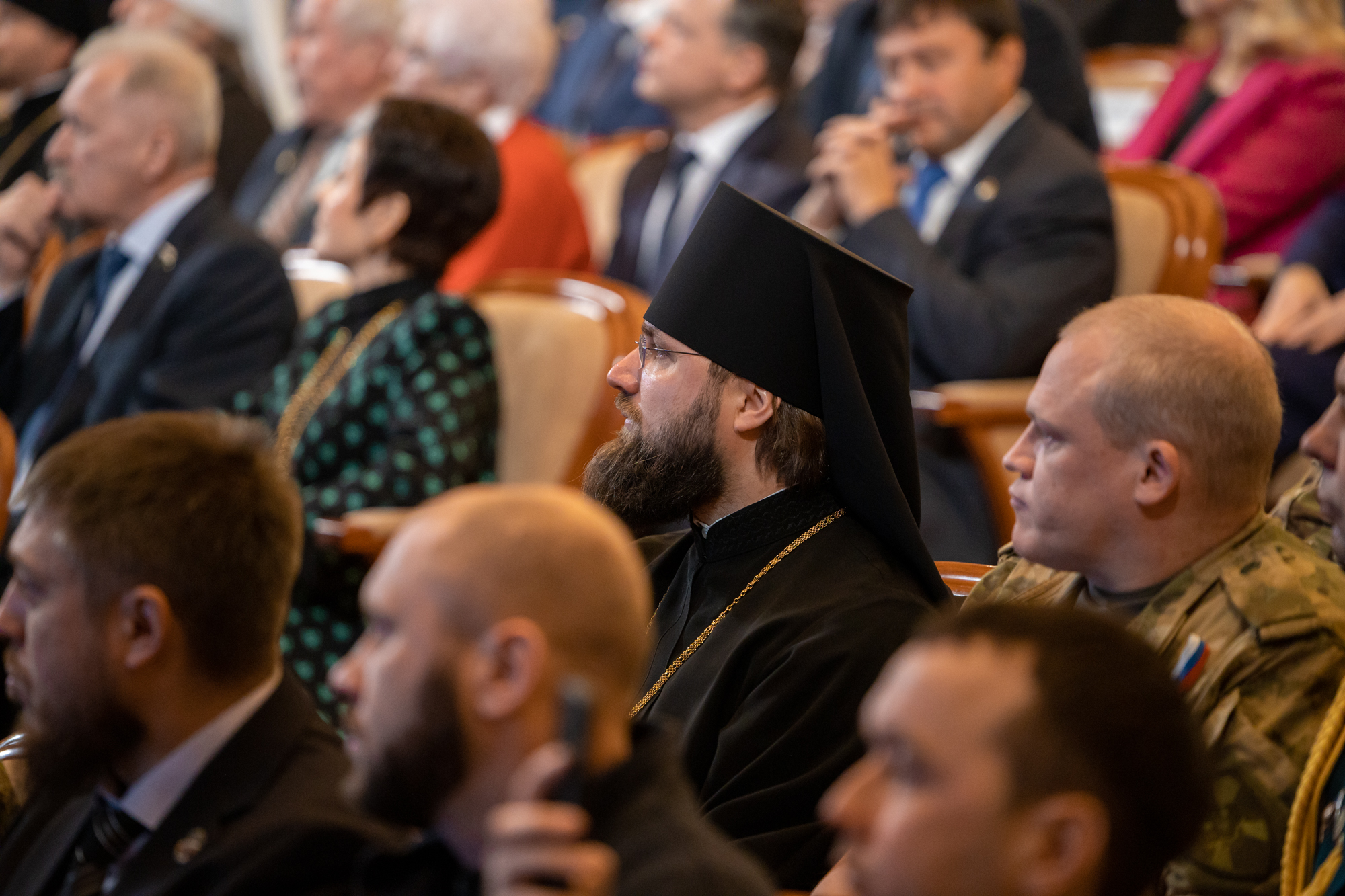 В ежегодном обращении Губернатора приняли участие митрополит Ханты-Мансийский и Сургутский Павел, епископ Югорский и Няганский Михаил, секретарь Ханты-Мансийской епархии игумен Антоний Кирпичев.