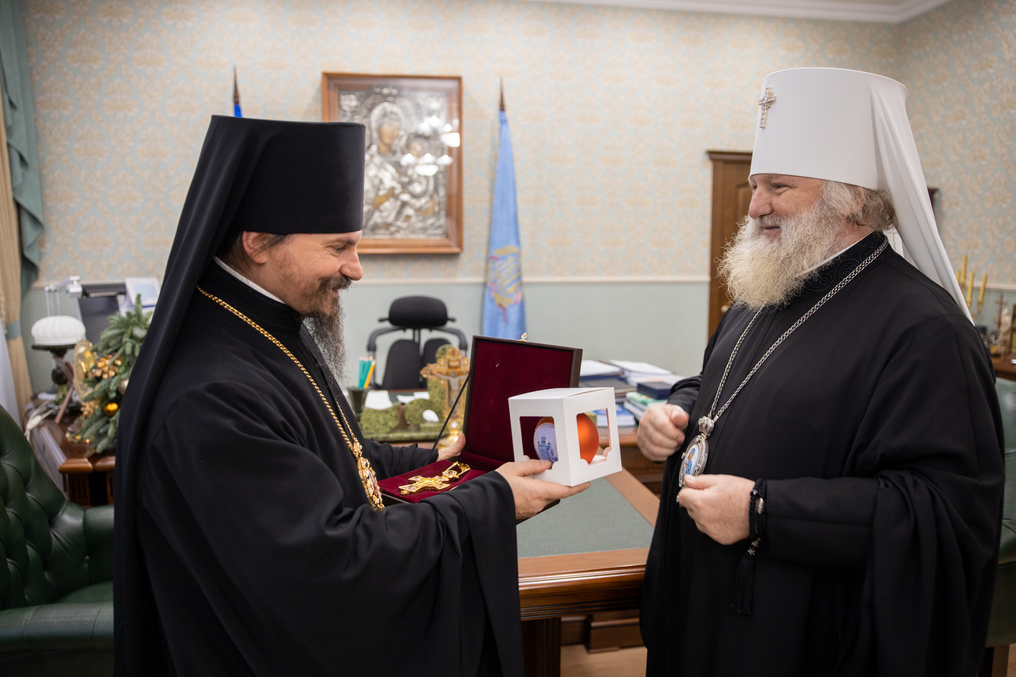 23 декабря 2025 года, в епархиальном управлении г. Ханты-Мансийска, состоялась рабочая встреча Главы Ханты-Мансийской митрополии митрополита Ханты-Мансийского и Сургутского Павла с епископом Югорским и Няганским Михаилом.