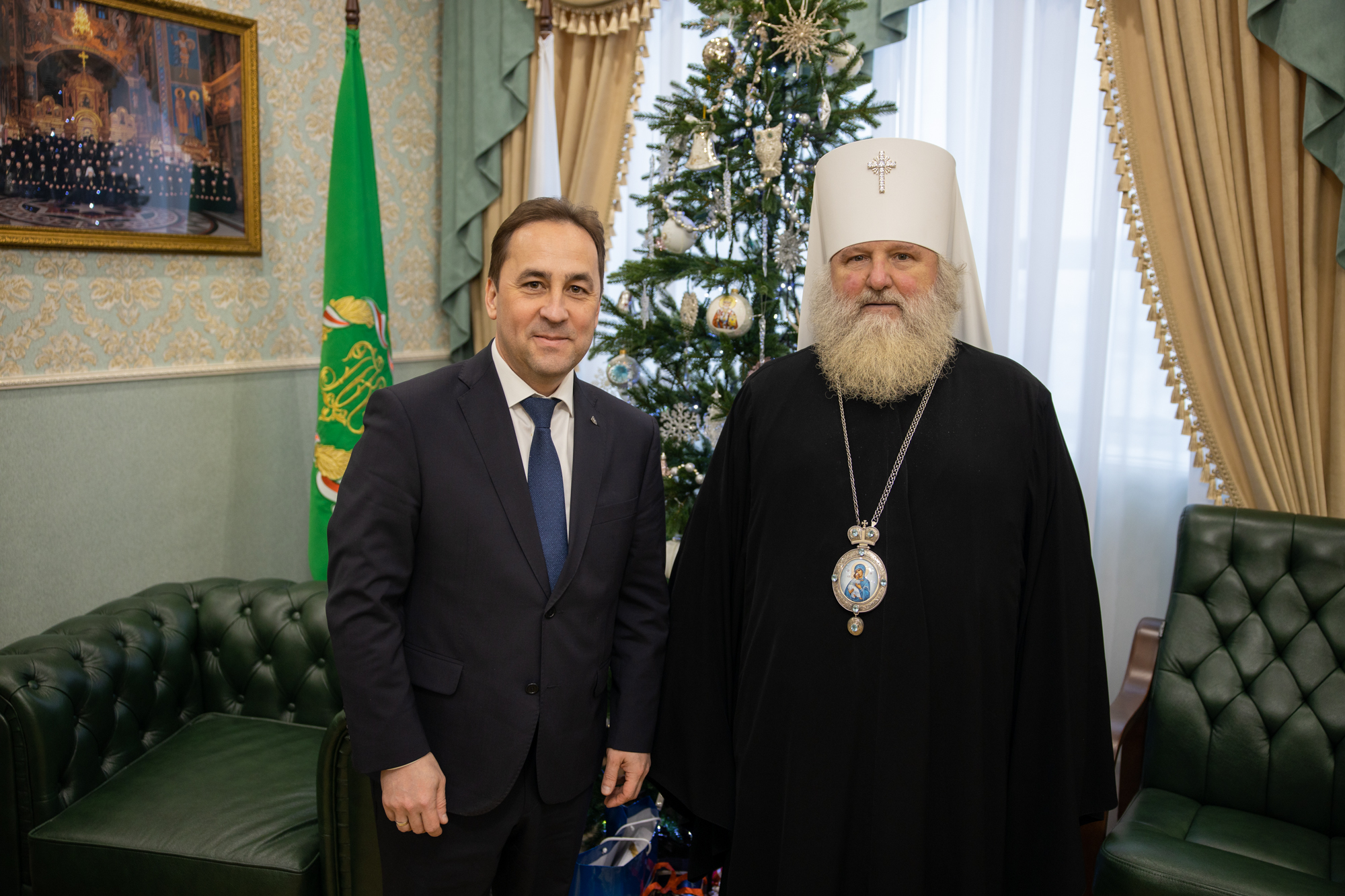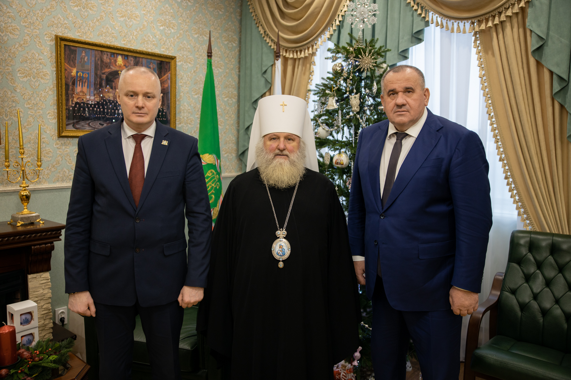 23 декабря 2025 года, в епархиальном управлении г. Ханты-Мансийска, состоялась встреча митрополита Ханты-Мансийского и Сургутского Павла с Главой г. Пыть-Яха Сергеем Елишевым и Генеральным директором компании ООО «Экотон» Ярославом Мельник.