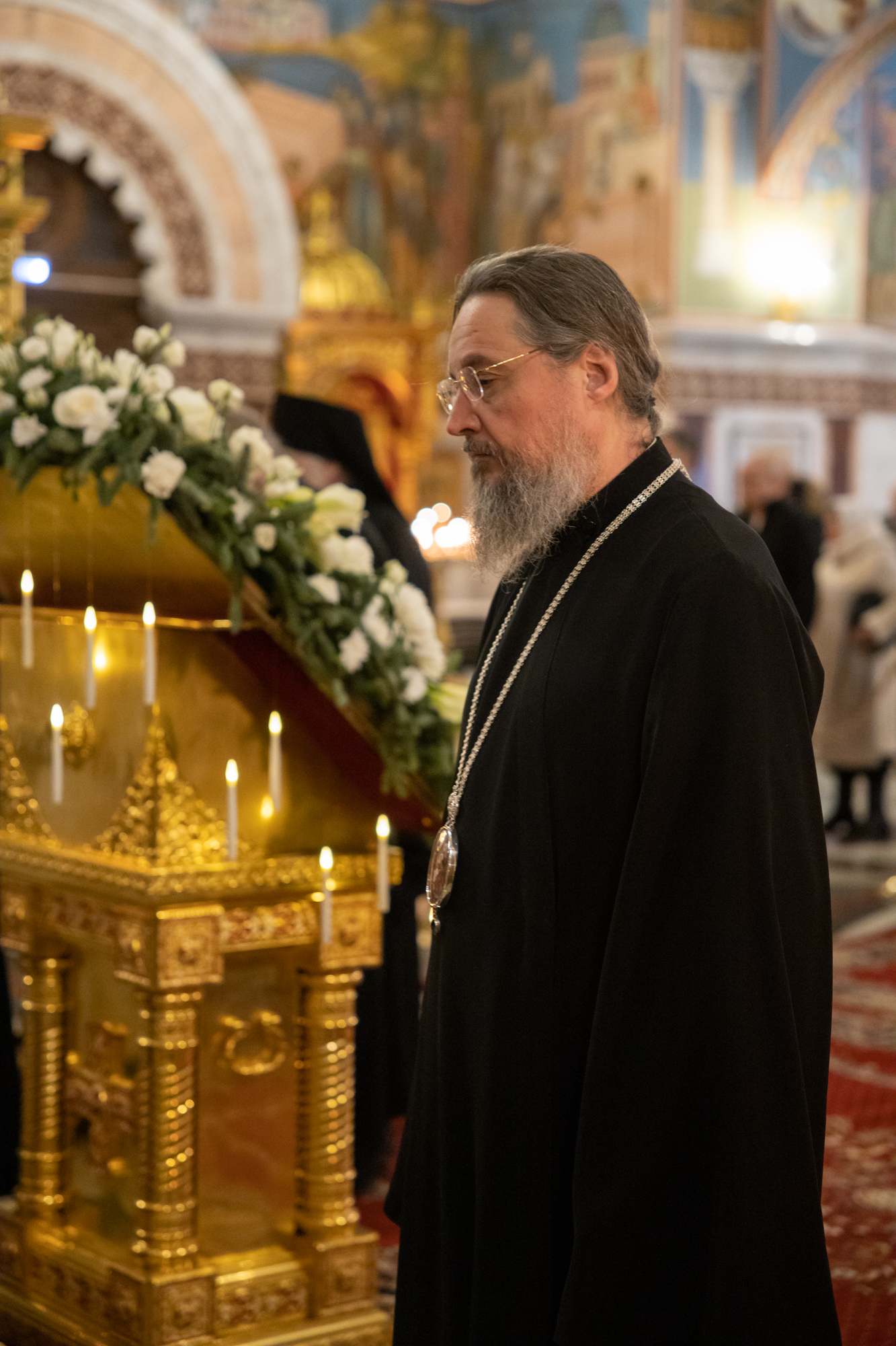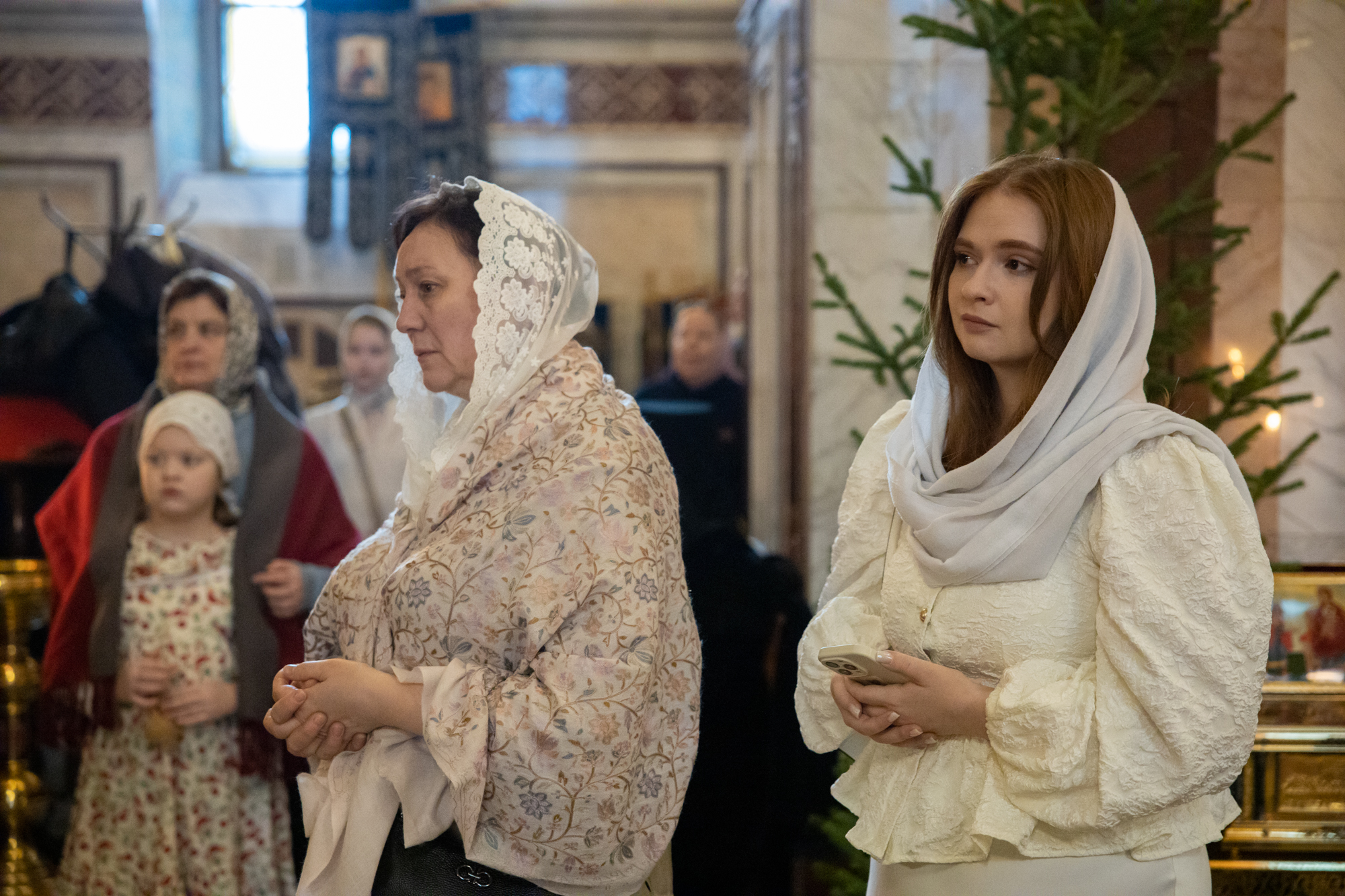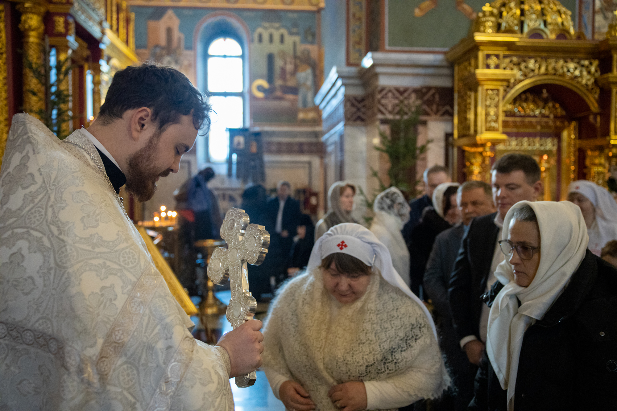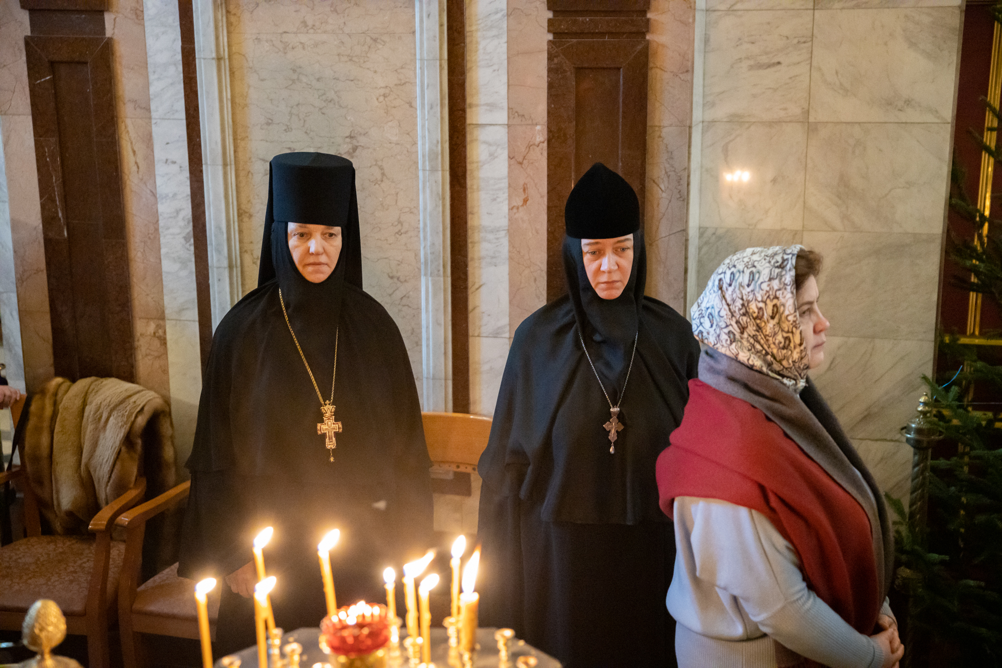 За богослужением молились: игумения София (Силина), настоятельница Воскресенского Новодевичьего монастыря г. Санкт-Петербурга, игумения Георгия (Алгинина), настоятельница монастыря в честь иконы Божией Матери «Умиление» г. Сургута.