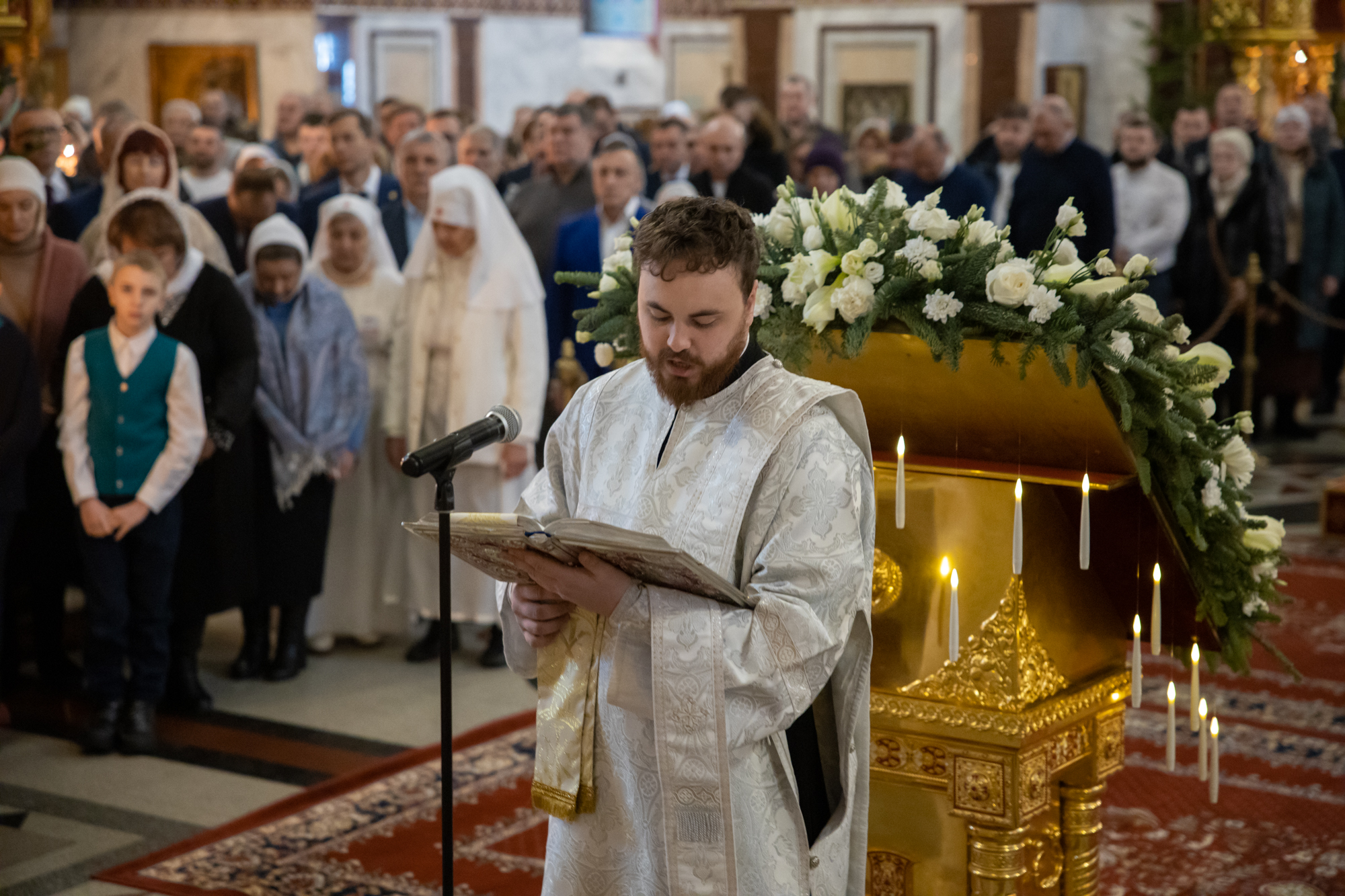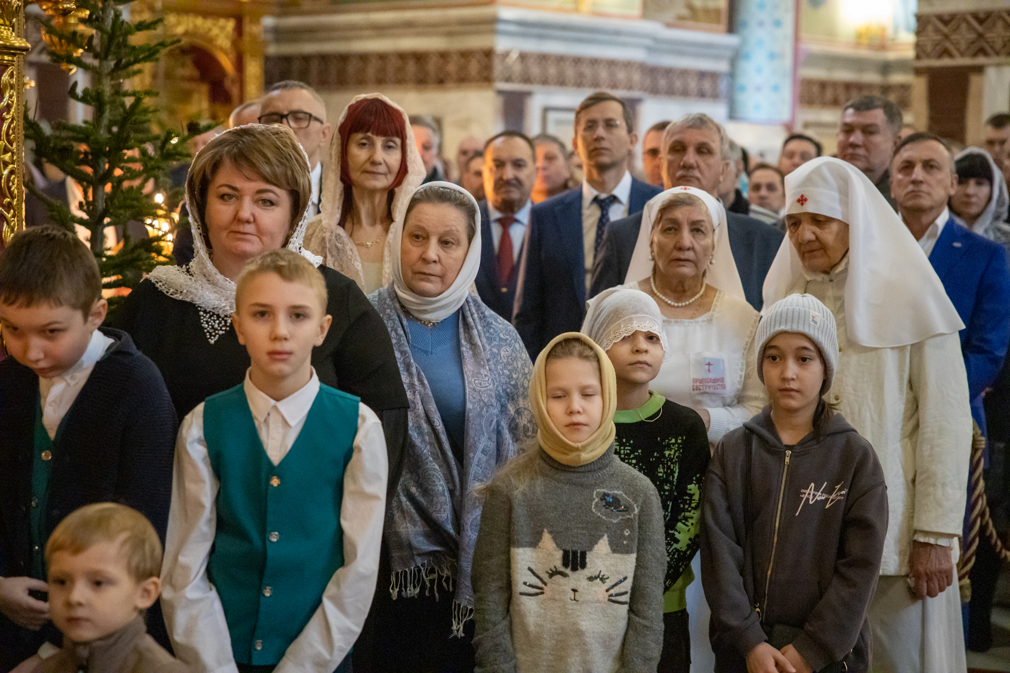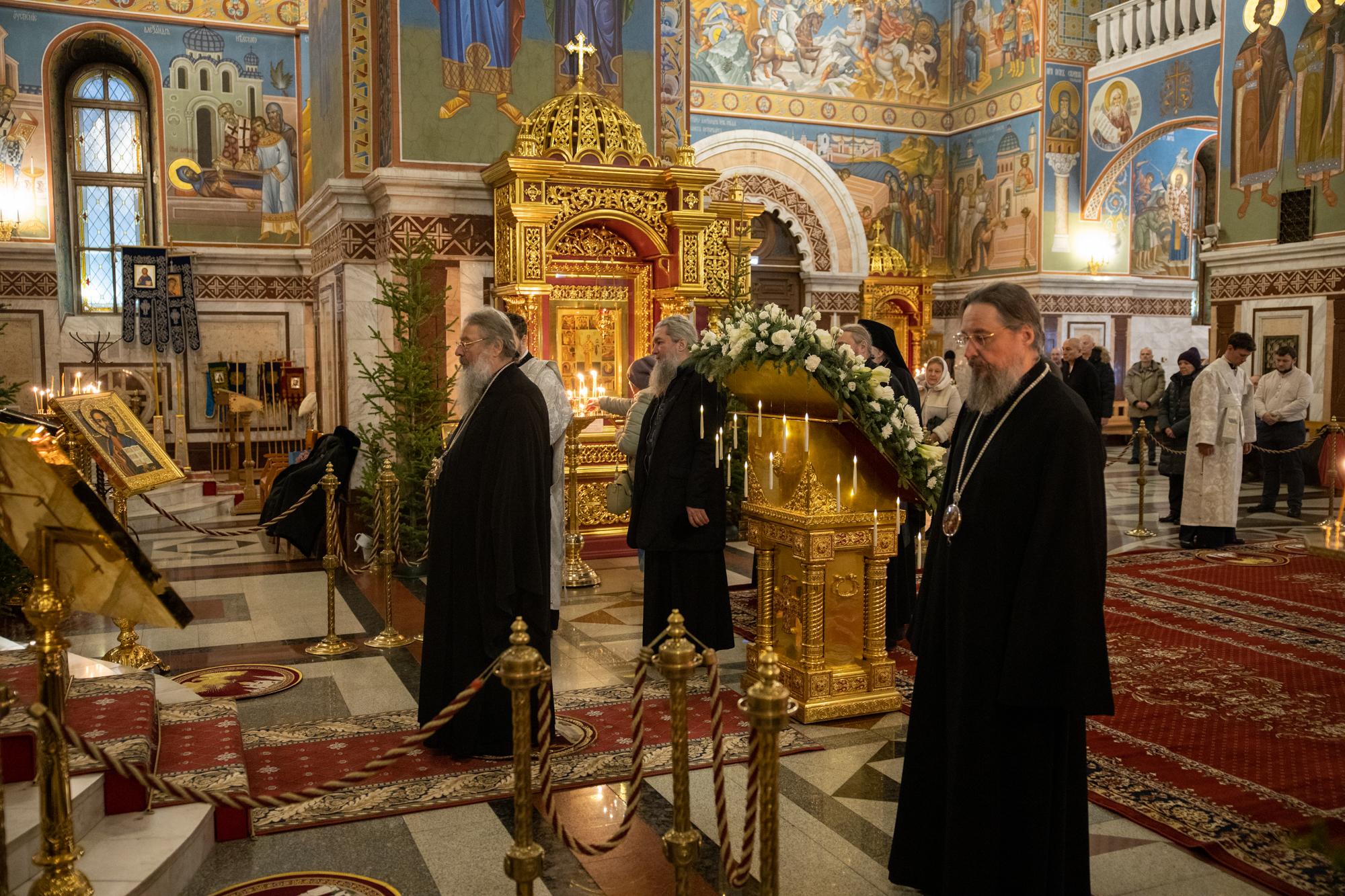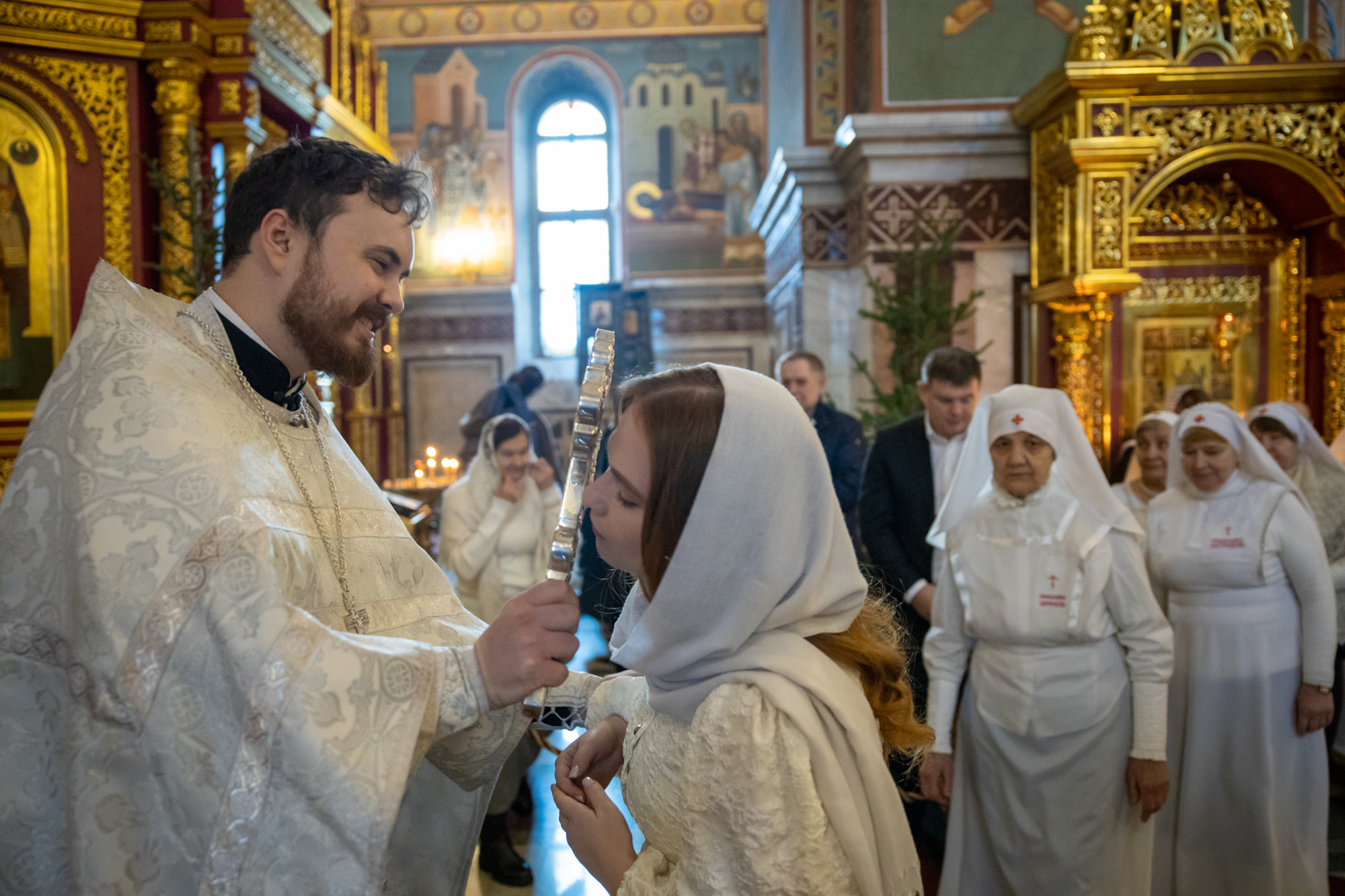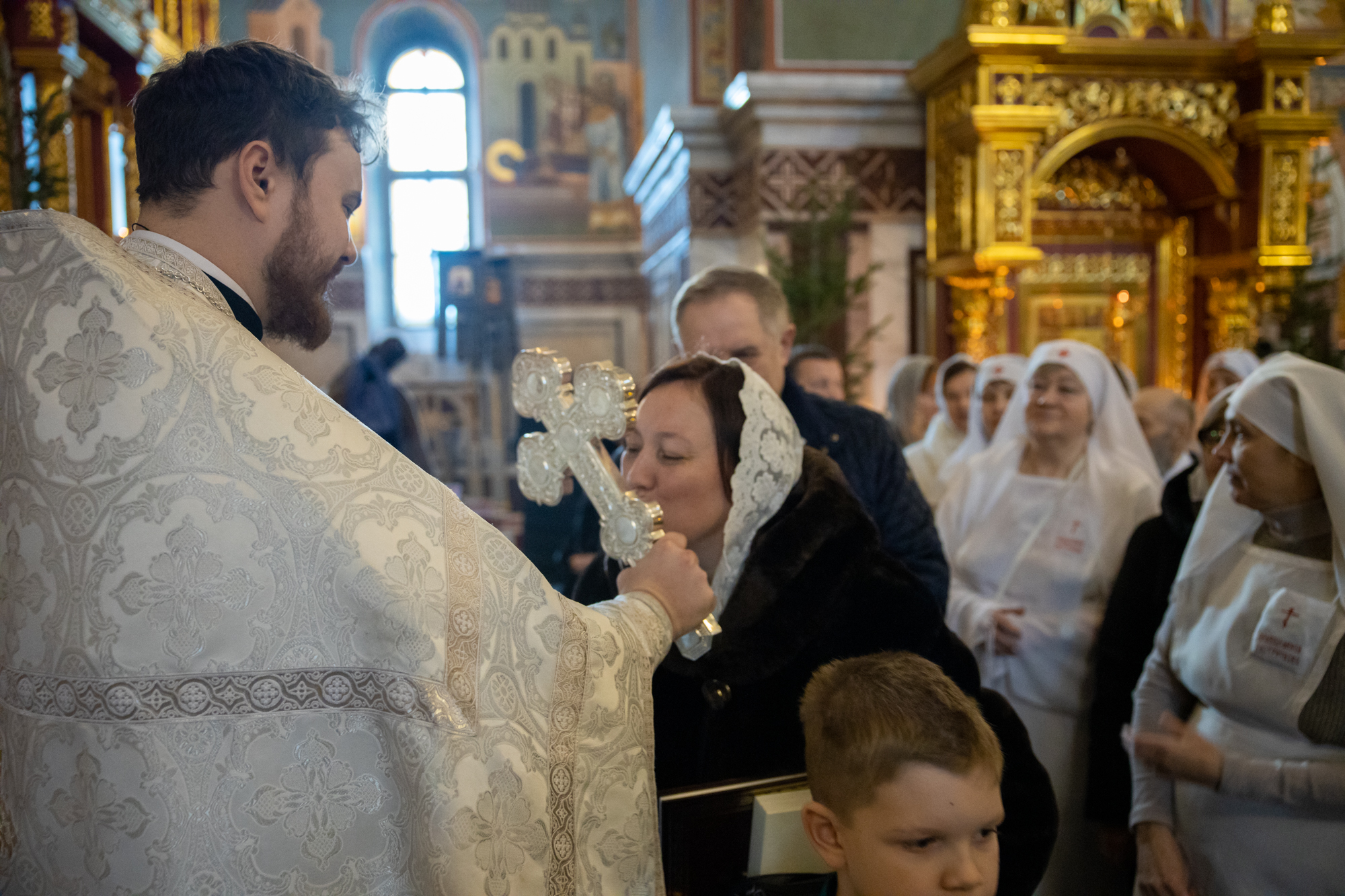 За богослужением молились: игумения София (Силина), настоятельница Воскресенского Новодевичьего монастыря г. Санкт-Петербурга, игумения Георгия (Алгинина), настоятельница монастыря в честь иконы Божией Матери «Умиление» г. Сургута.