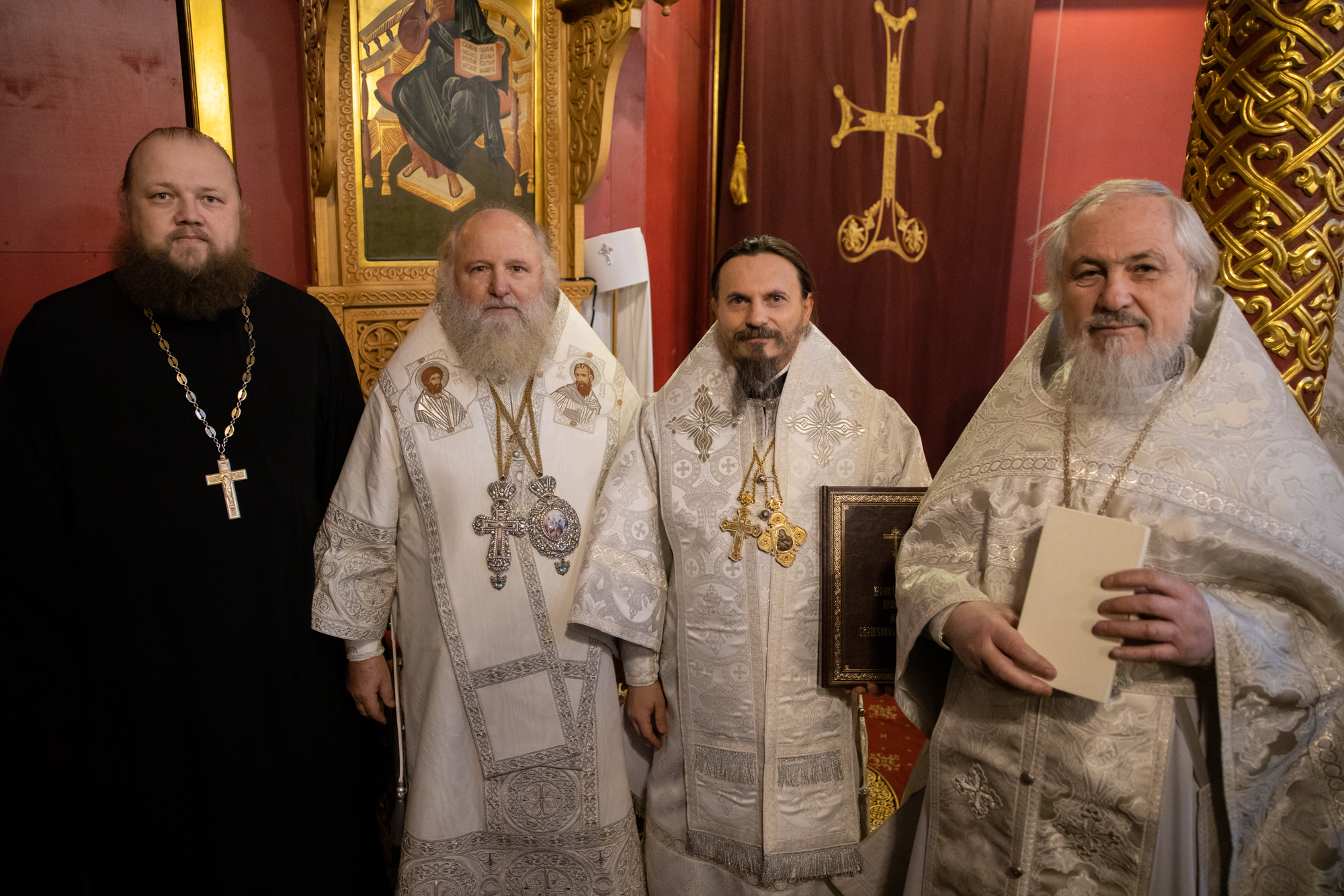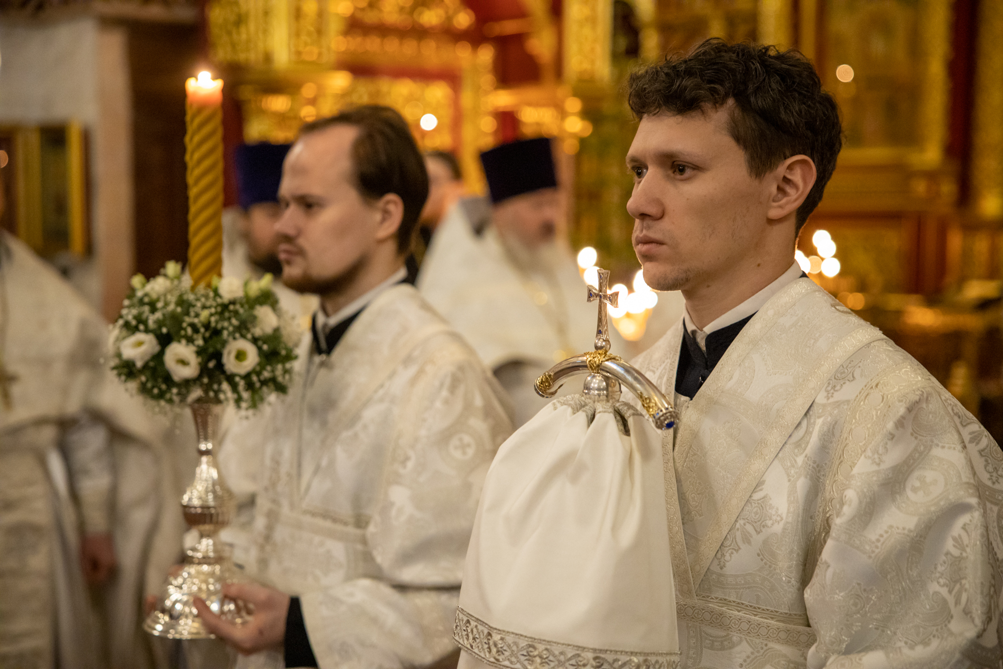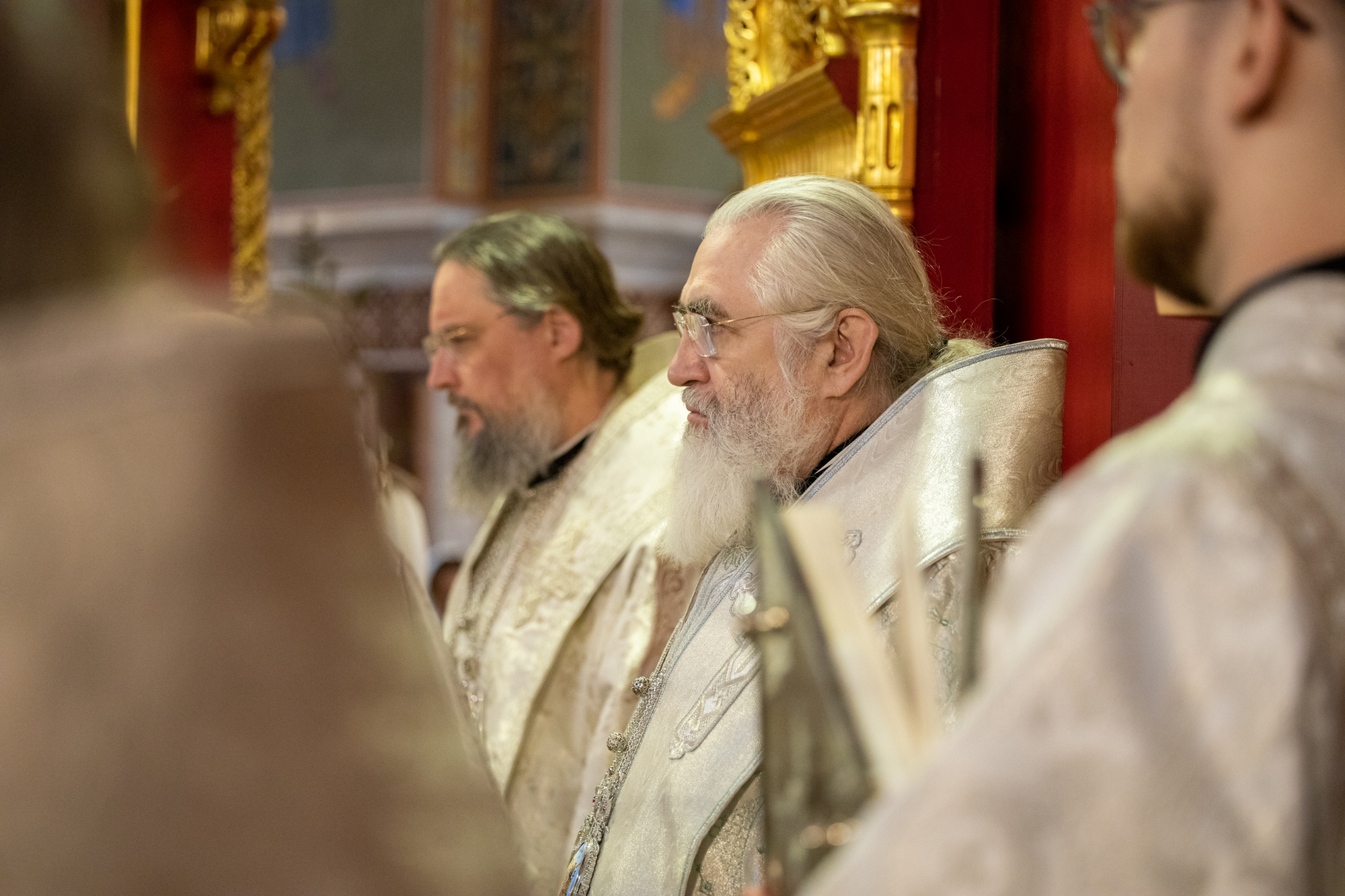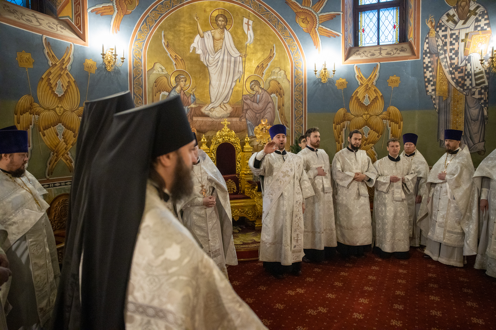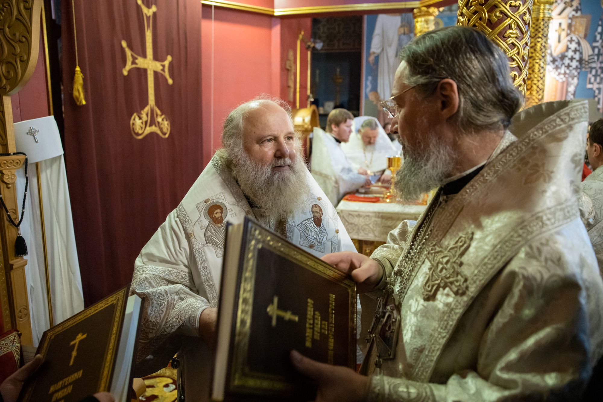 Архипастырям сослужили: и.о. начальника Санкт-Петербургского подворья Спасо-Преображенского Валаамского монастыря игумен Иосиф (Крюков), секретарь Татарстанской митрополии иеромонах Кирилл (Корытко), настоятель храма иконы Божией Матери «Седмиезерная» г. Мытищи протоиерей Александр Мензелинцев, секретарь Филиппинско-Вьетнамской епархии иеромонах Корнилий (Молев), духовенство Ханты-Мансийской митрополии. Диаконский чин возглавил клирик Тихвинской епархии протодиакон Георгий Стефанов.