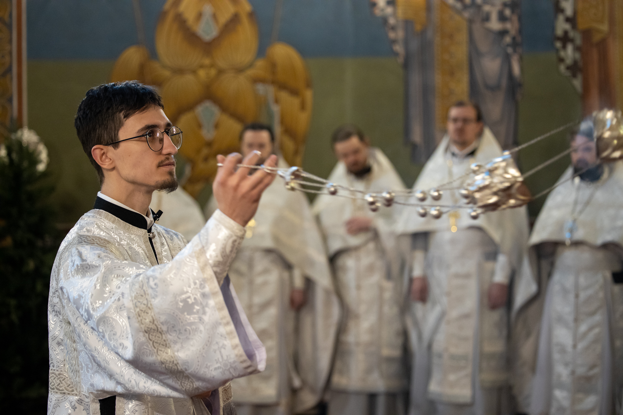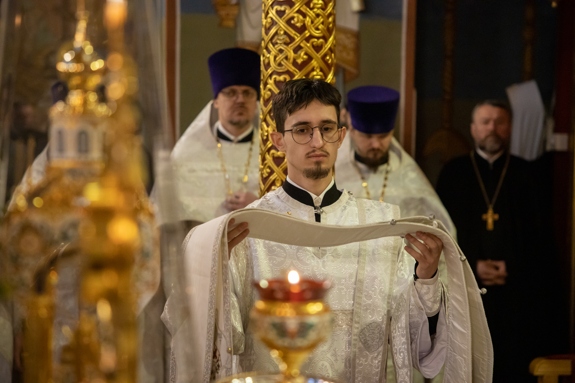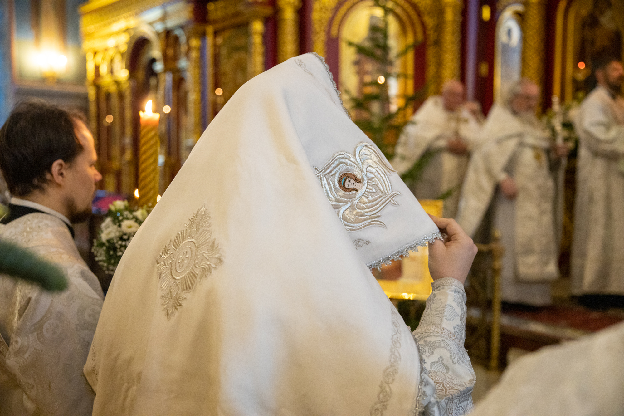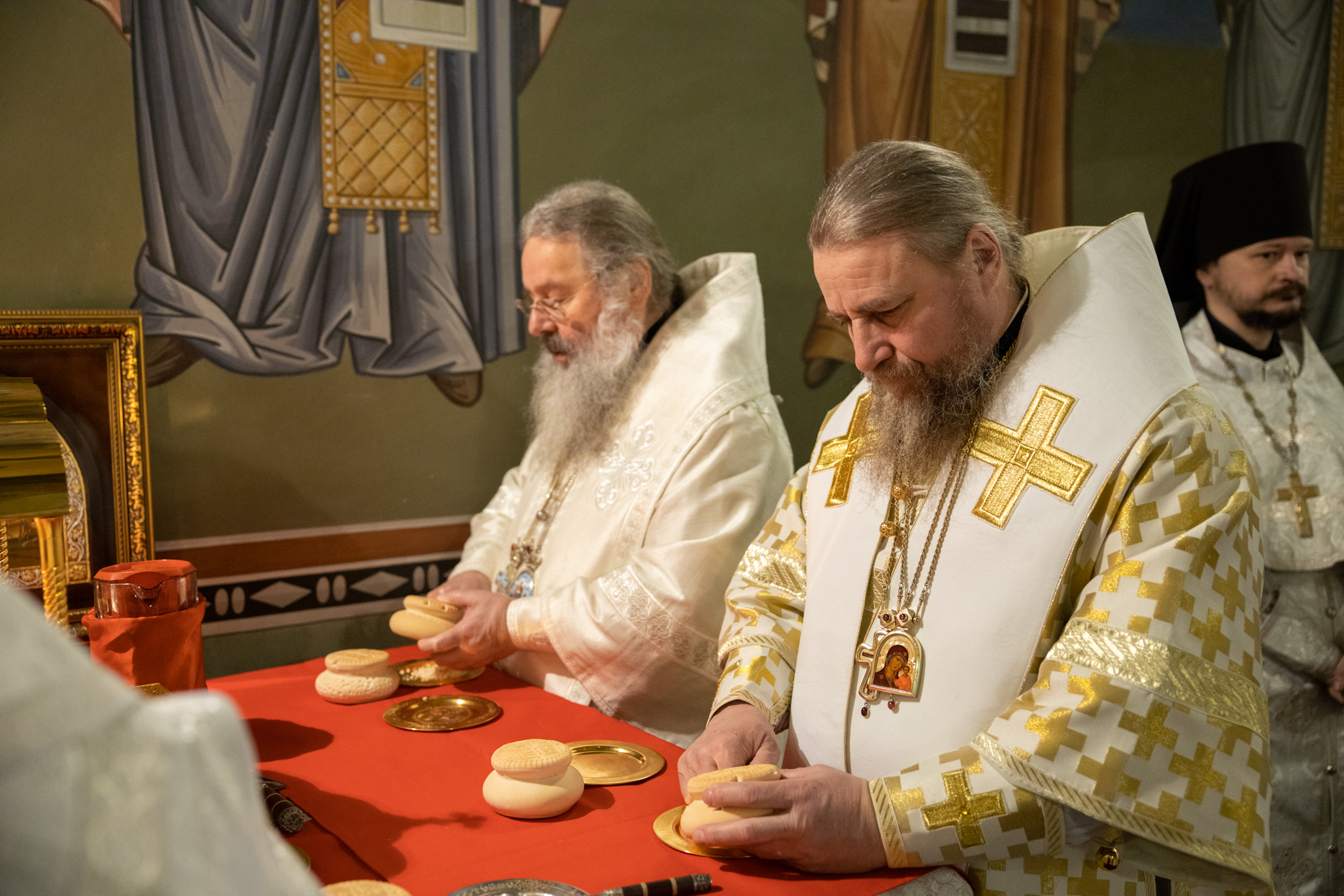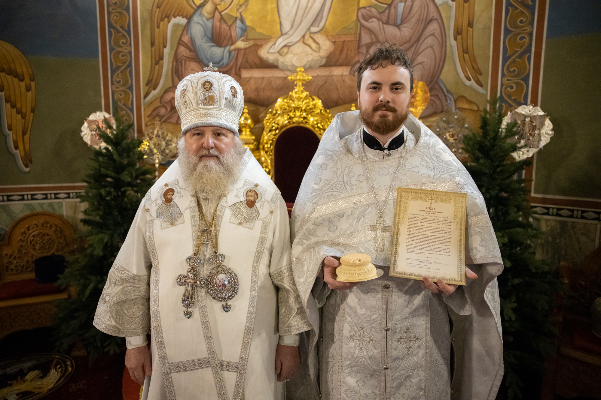 Архипастырям сослужили: и.о. начальника Санкт-Петербургского подворья Спасо-Преображенского Валаамского монастыря игумен Иосиф (Крюков), секретарь Татарстанской митрополии иеромонах Кирилл (Корытко), настоятель храма иконы Божией Матери «Седмиезерная» г. Мытищи протоиерей Александр Мензелинцев, секретарь Филиппинско-Вьетнамской епархии иеромонах Корнилий (Молев), духовенство Ханты-Мансийской митрополии. Диаконский чин возглавил клирик Тихвинской епархии протодиакон Георгий Стефанов.