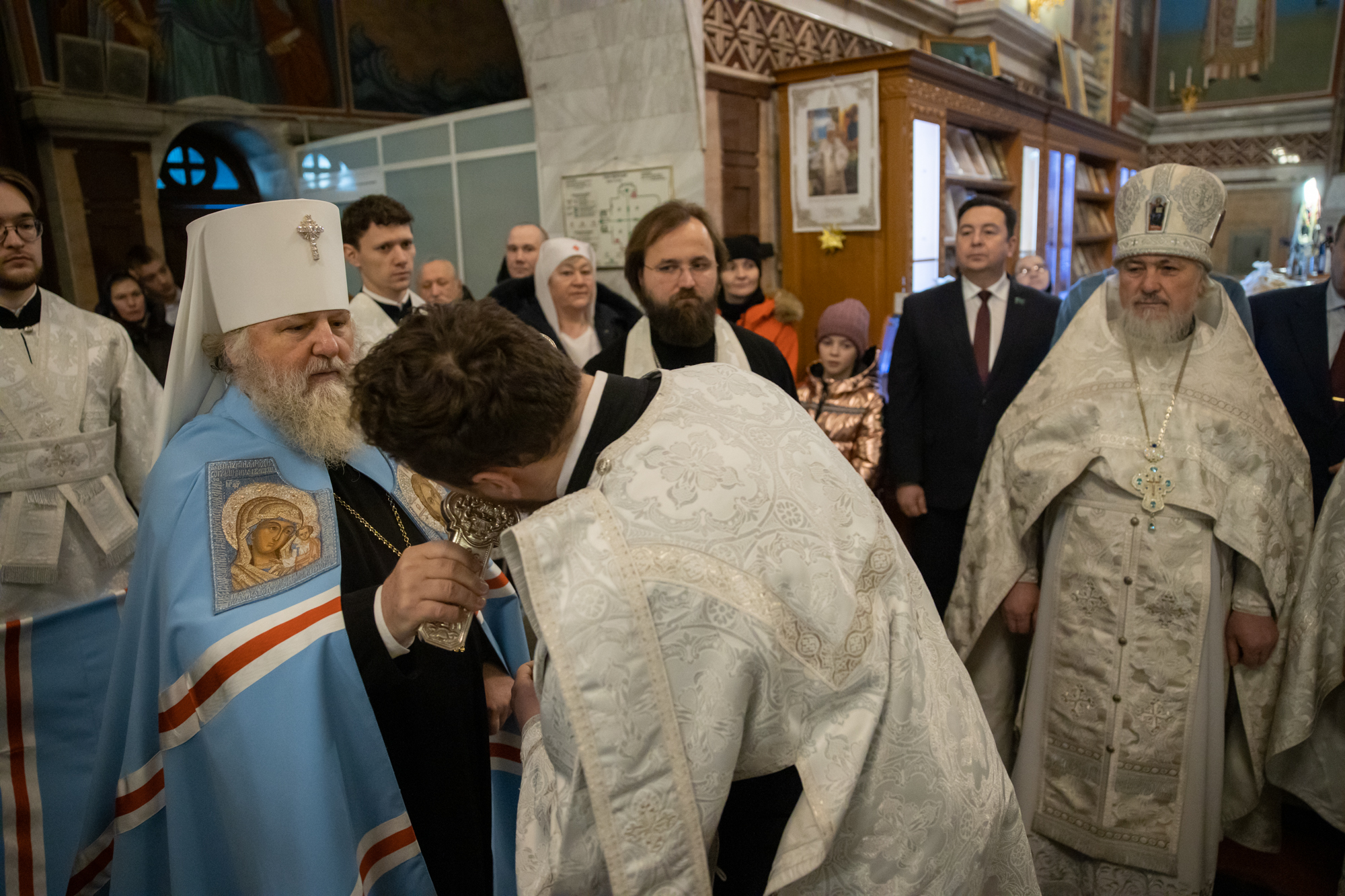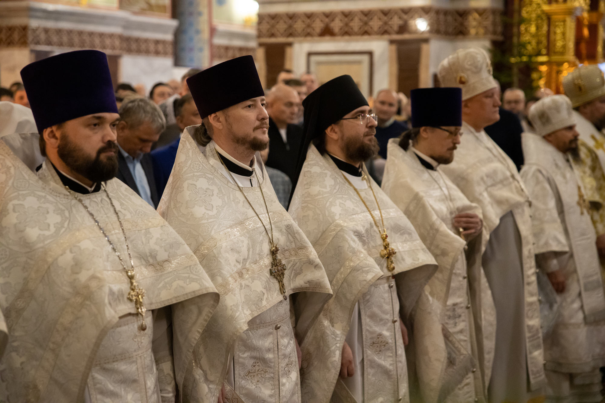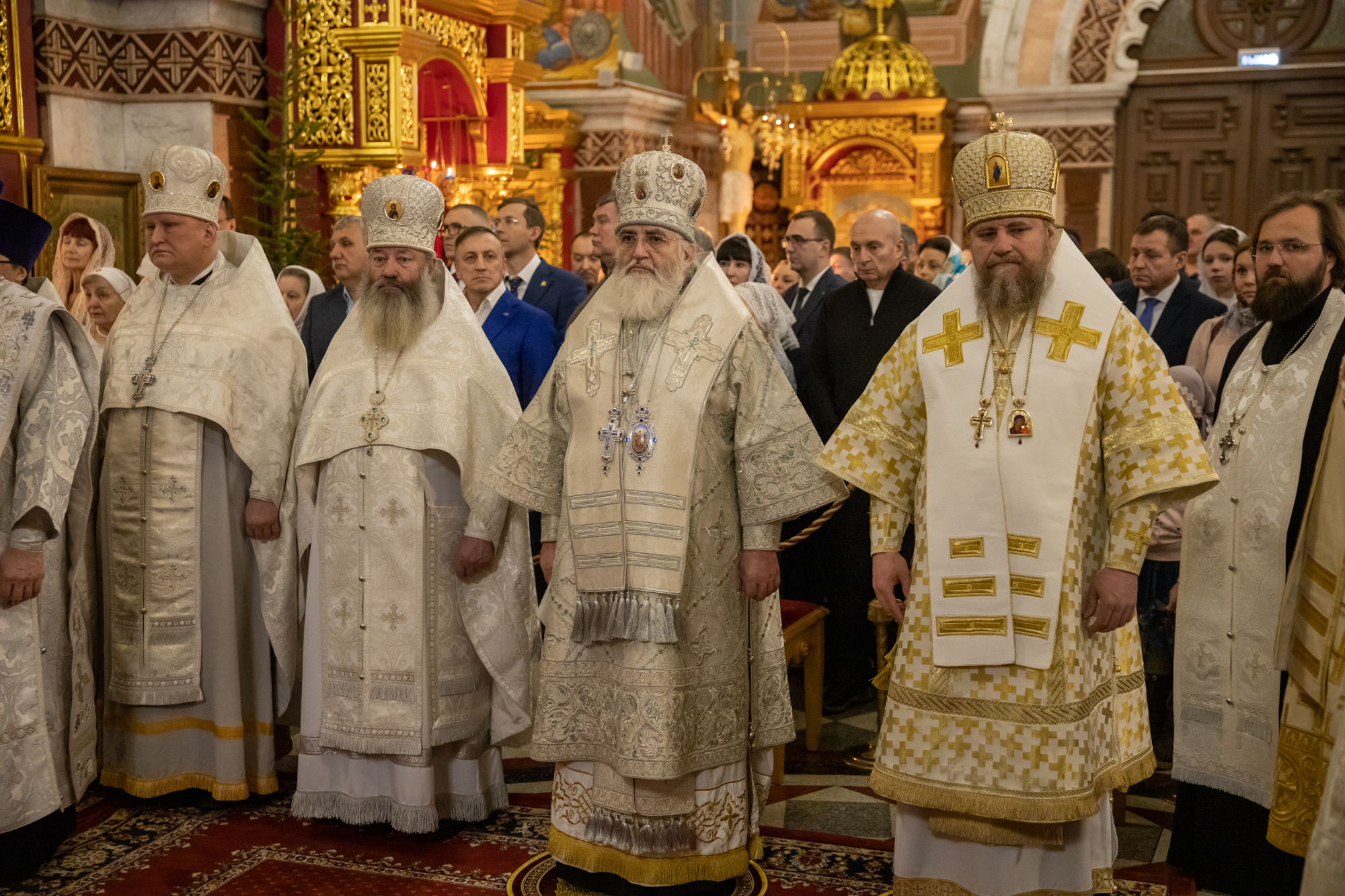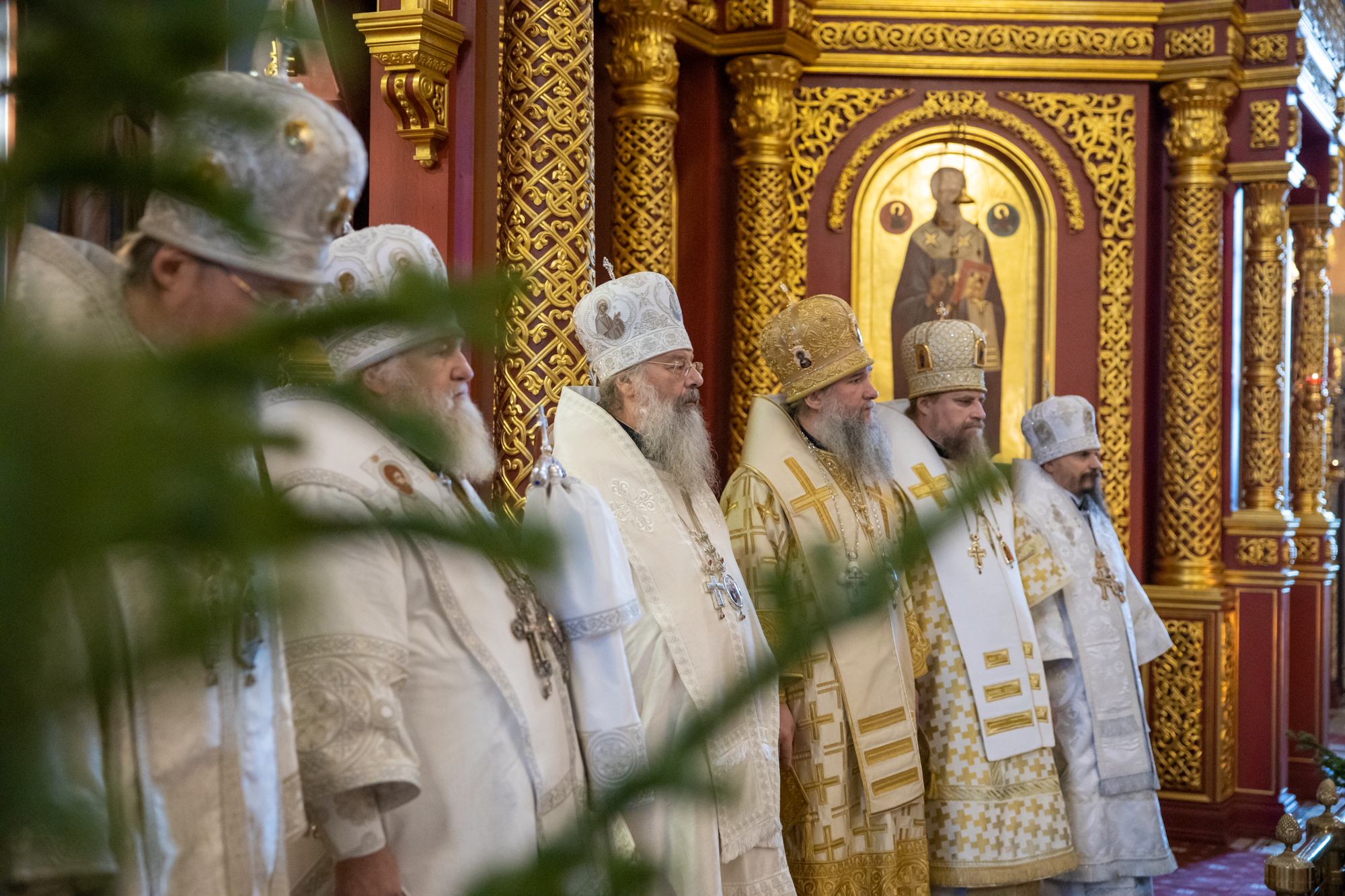 Литургию возглавили 7 архиереев: митрополит Казанский и Татарстанский Кирилл, митрополит Сингапурский и Юго-Восточно-Азиатский Сергий, митрополит Ханты-Мансийский и Сургутский Павел, митрополит Екатеринбургский и Верхотурский Евгений, архиепископ Салехардский и Ново-Уренгойский Николай, епископ Тихвинский и Лодейнопольский Мстислав, епископ Югорский и Няганский Михаил.