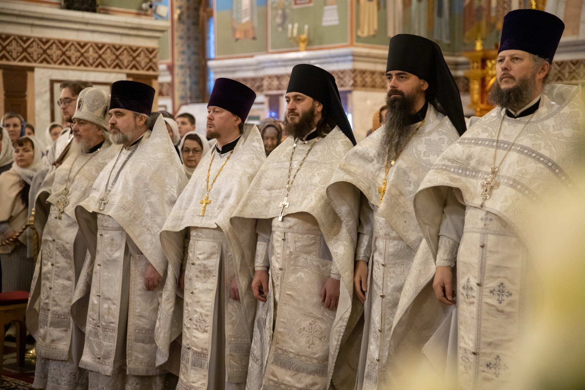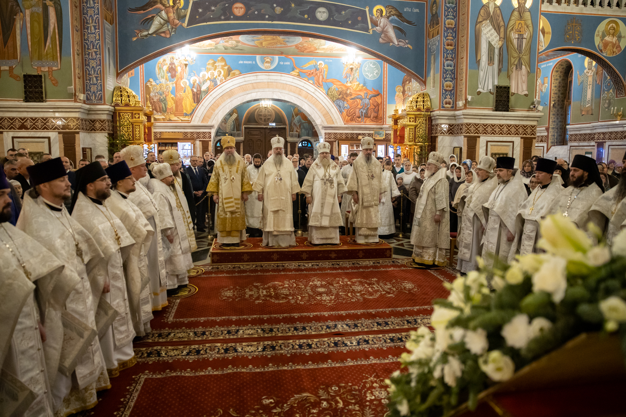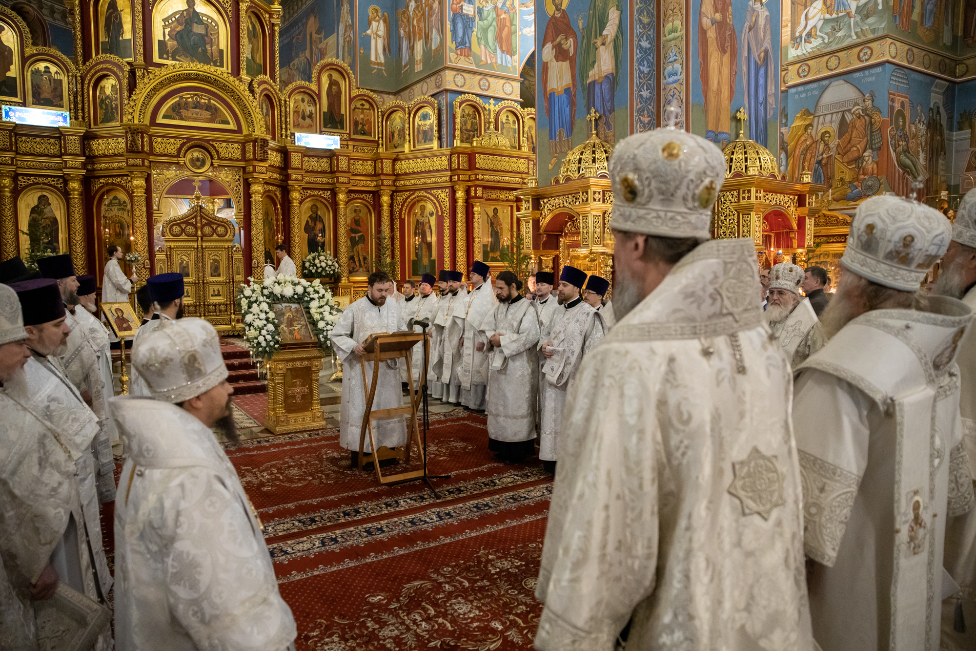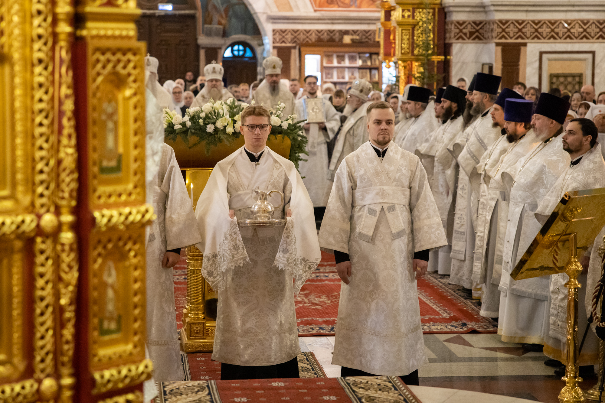 Литургию возглавили 7 архиереев: митрополит Казанский и Татарстанский Кирилл, митрополит Сингапурский и Юго-Восточно-Азиатский Сергий, митрополит Ханты-Мансийский и Сургутский Павел, митрополит Екатеринбургский и Верхотурский Евгений, архиепископ Салехардский и Ново-Уренгойский Николай, епископ Тихвинский и Лодейнопольский Мстислав, епископ Югорский и Няганский Михаил.