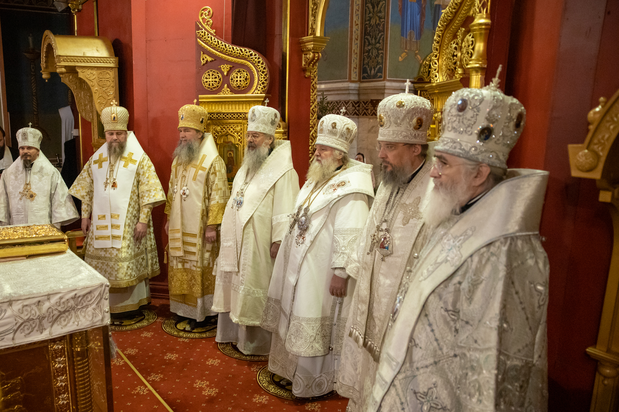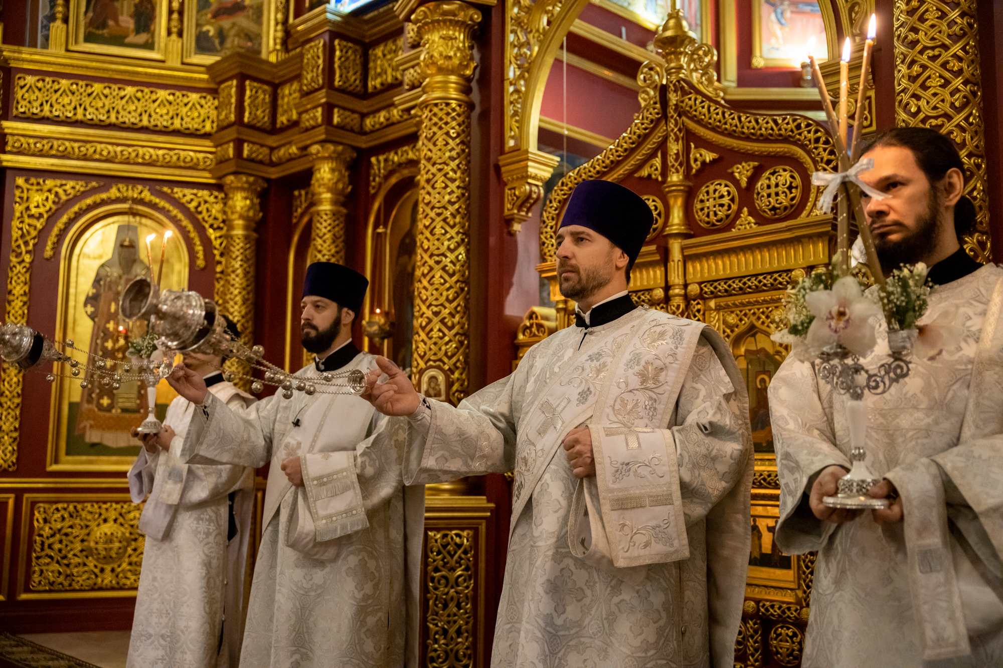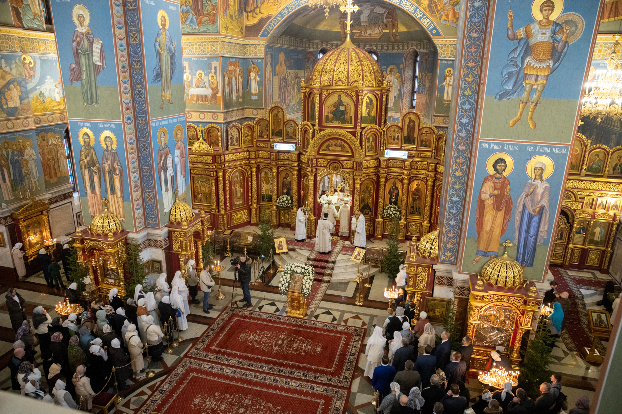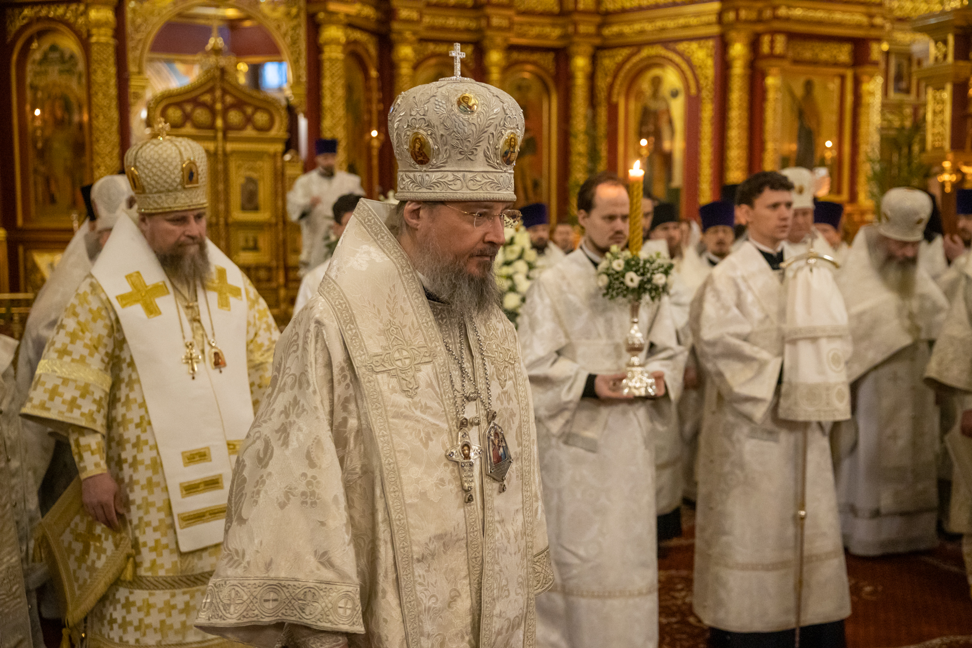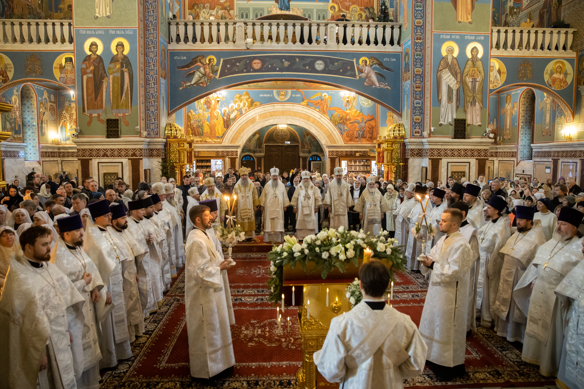Литургию возглавили 7 архиереев: митрополит Казанский и Татарстанский Кирилл, митрополит Сингапурский и Юго-Восточно-Азиатский Сергий, митрополит Ханты-Мансийский и Сургутский Павел, митрополит Екатеринбургский и Верхотурский Евгений, архиепископ Салехардский и Ново-Уренгойский Николай, епископ Тихвинский и Лодейнопольский Мстислав, епископ Югорский и Няганский Михаил.