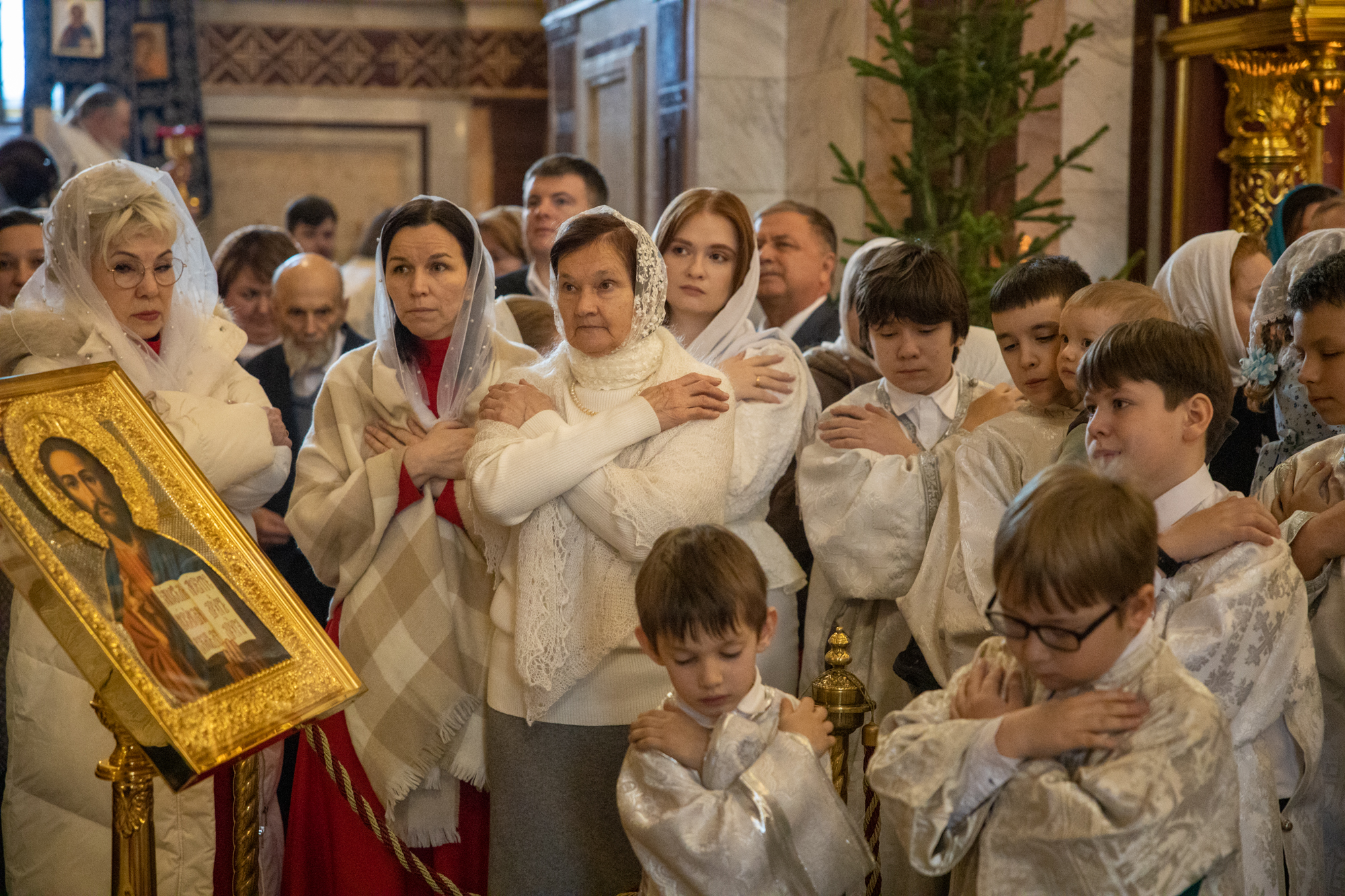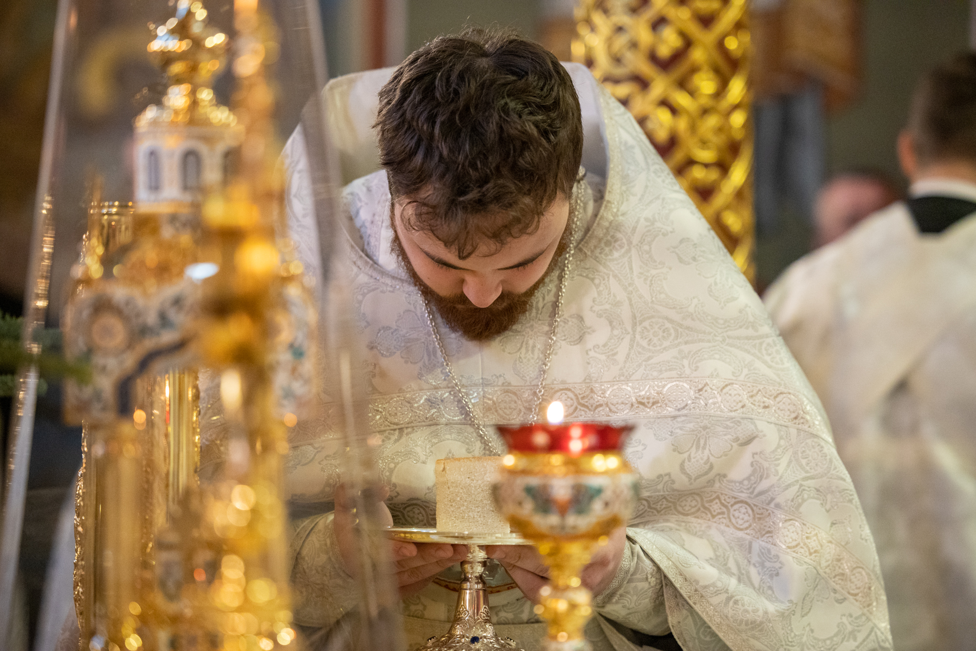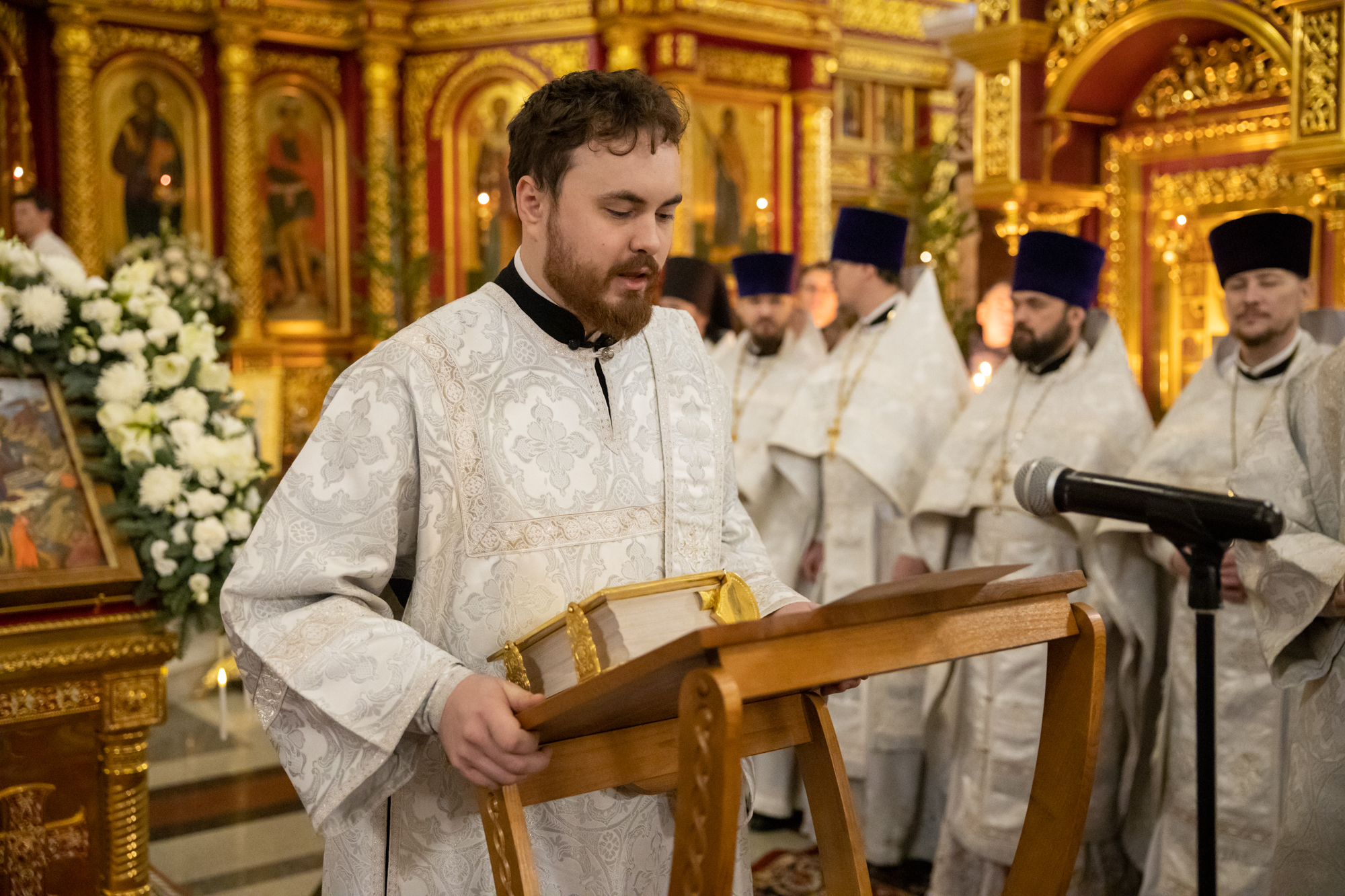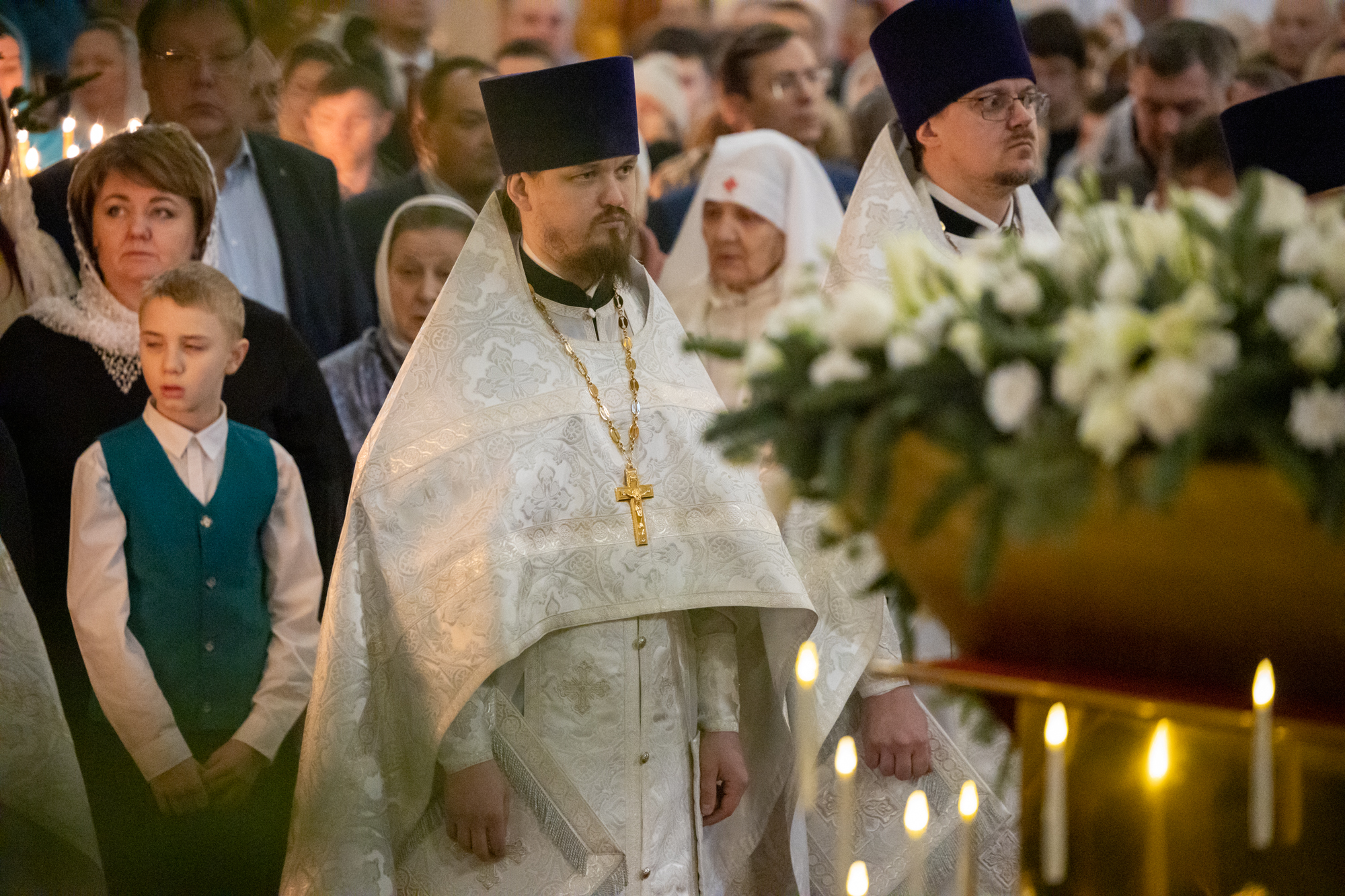 Литургию возглавили 7 архиереев: митрополит Казанский и Татарстанский Кирилл, митрополит Сингапурский и Юго-Восточно-Азиатский Сергий, митрополит Ханты-Мансийский и Сургутский Павел, митрополит Екатеринбургский и Верхотурский Евгений, архиепископ Салехардский и Ново-Уренгойский Николай, епископ Тихвинский и Лодейнопольский Мстислав, епископ Югорский и Няганский Михаил.