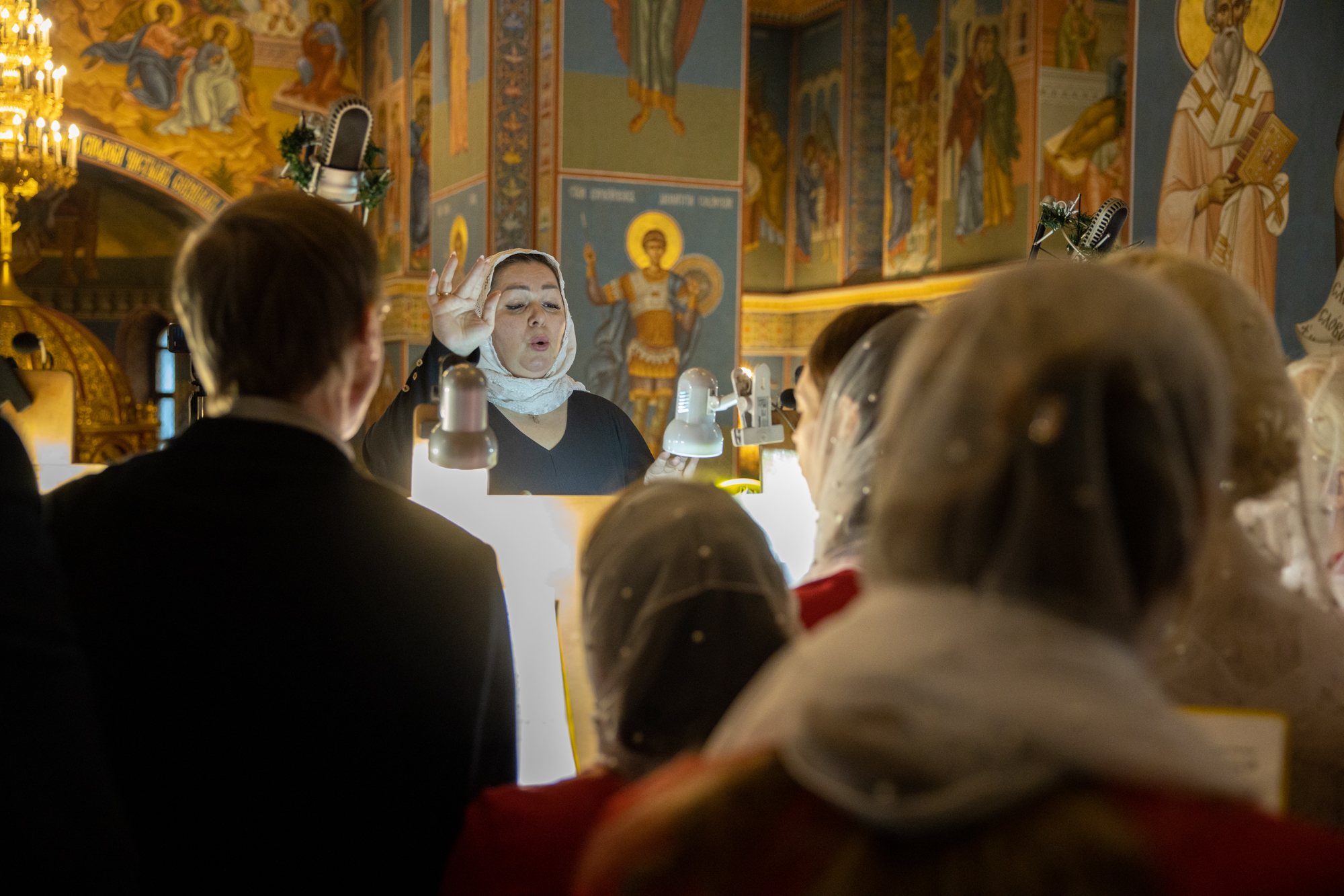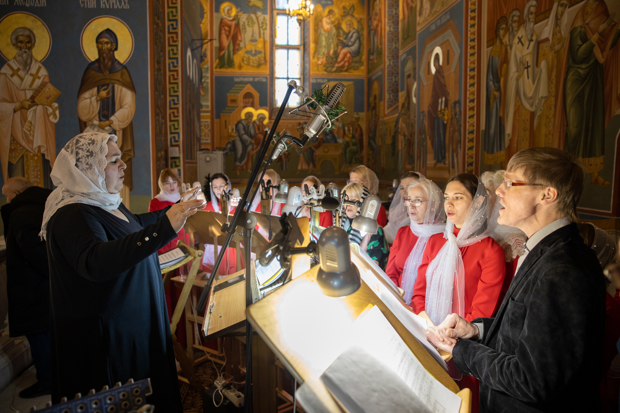 Богослужебные песнопения исполнили: хор духовенства Ханты-Мансийской епархии под управлением иерея Григория Белянина и хор Воскресенского кафедрального собора г. Ханты-Мансийска под управлением Эрики Сатрапинской.