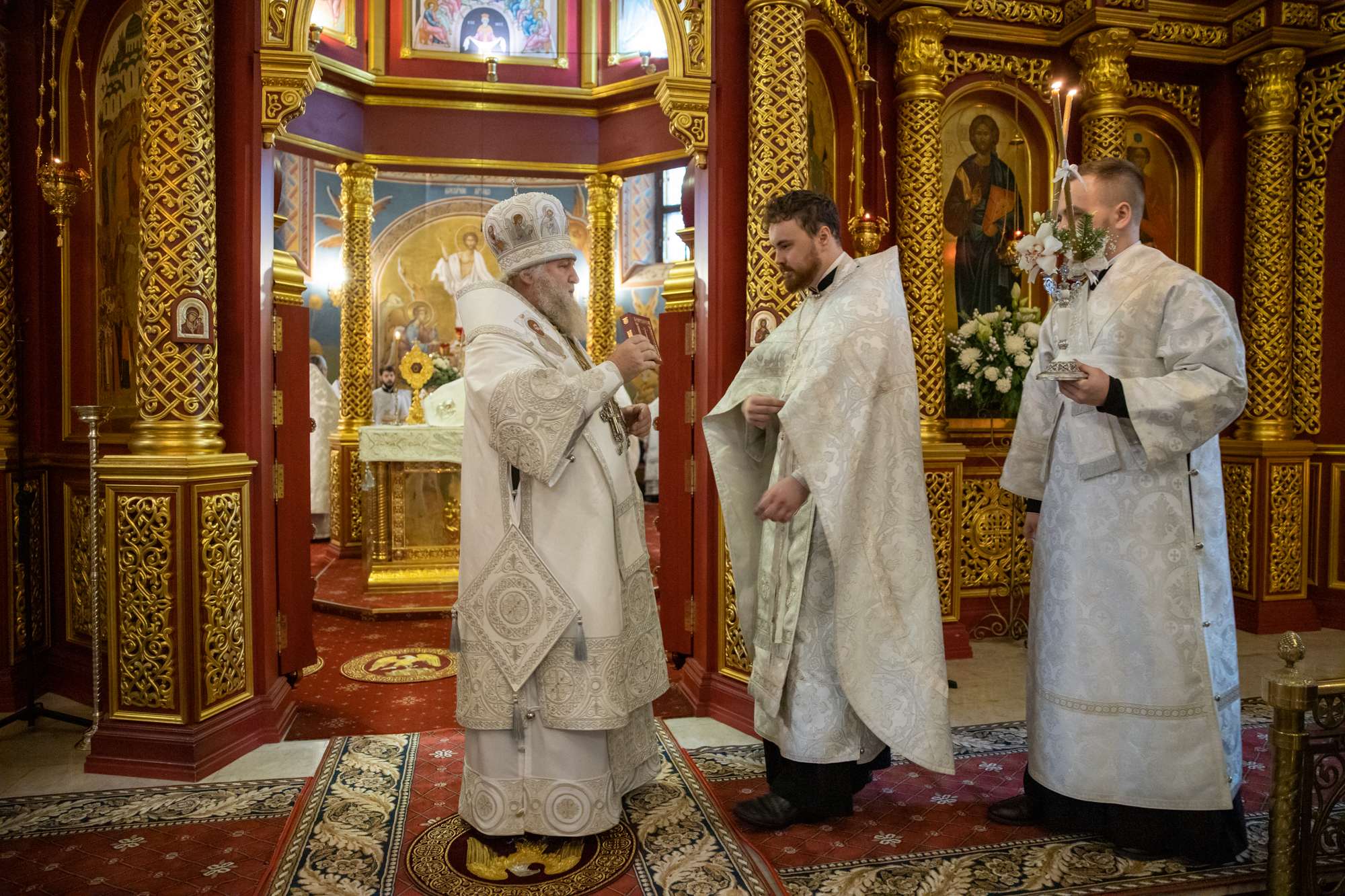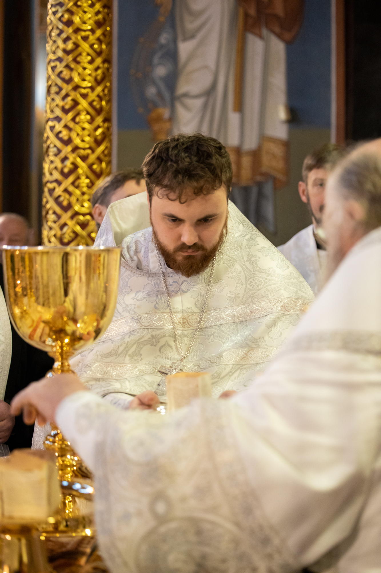 За Литургией владыка рукоположил диакона Михаила Моздора во иерея.