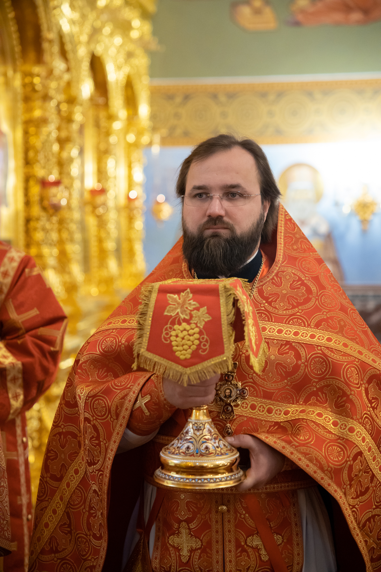 Его Высокопреосвященству сослужили: благочинный Нефтеюганского благочиния протоиерей Николай Матвийчук, благочинный Сургутского городского благочиния протоиерей Антоний Исаков, благочинный Нижневартовского городского благочиния протоиерей Сергий Шевченко, благочинный Сургутского районного благочиния протоиерей Димитрий Глухарев, благочинный Ханты-Мансийского благочиния иерей Димитрий Губанищев, благочинный Нижневартовского районного благочиния иерей Олег Гордеев, секретарь Ханты-Мансийской епархии игумен Антоний (Кирпичев), духовенство Ханты-Мансийский епархии. Диаконский чин возглавил диакон Даниил Матвеев.