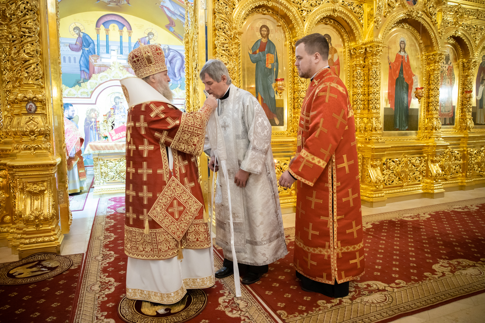 За Литургией владыка рукоположил клирика храма Покрова Божией Матери г. Лянтора диакона Михаила Шевченко во иерея.
