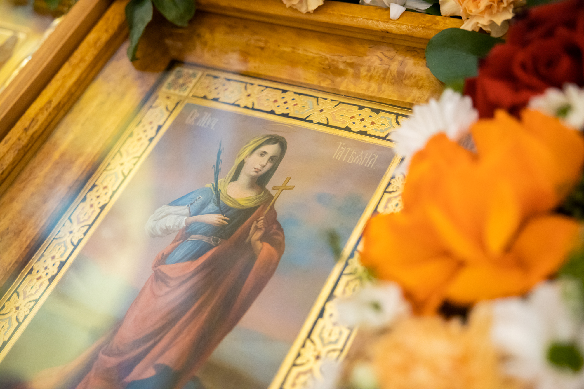 Помоги нам, Господи! И, конечно же, в эти святые дни мы празднуем память мученицы Татьяны. Это великая милость Божия, что в нашем храме есть частица мощей мученицы Татьяны. Поверьте, по России их 2 или 3 частицы всего. И нам так устроил Господь при освящении строительства этого храма, что были переданы эти мощи из Рима в наш храм. И сегодня мы возносим ей молитвы, покровительнице нашего студенчества. Мы знаем, что основные наши учебные заведения в столицах, и в Москве, при Университете храм мученицы Татьяны, и в Петербурге, при Университете при Смольном, где студенты спокойно приходят в храм в особые дни, почитая Небесную Покровительницу студенчества.