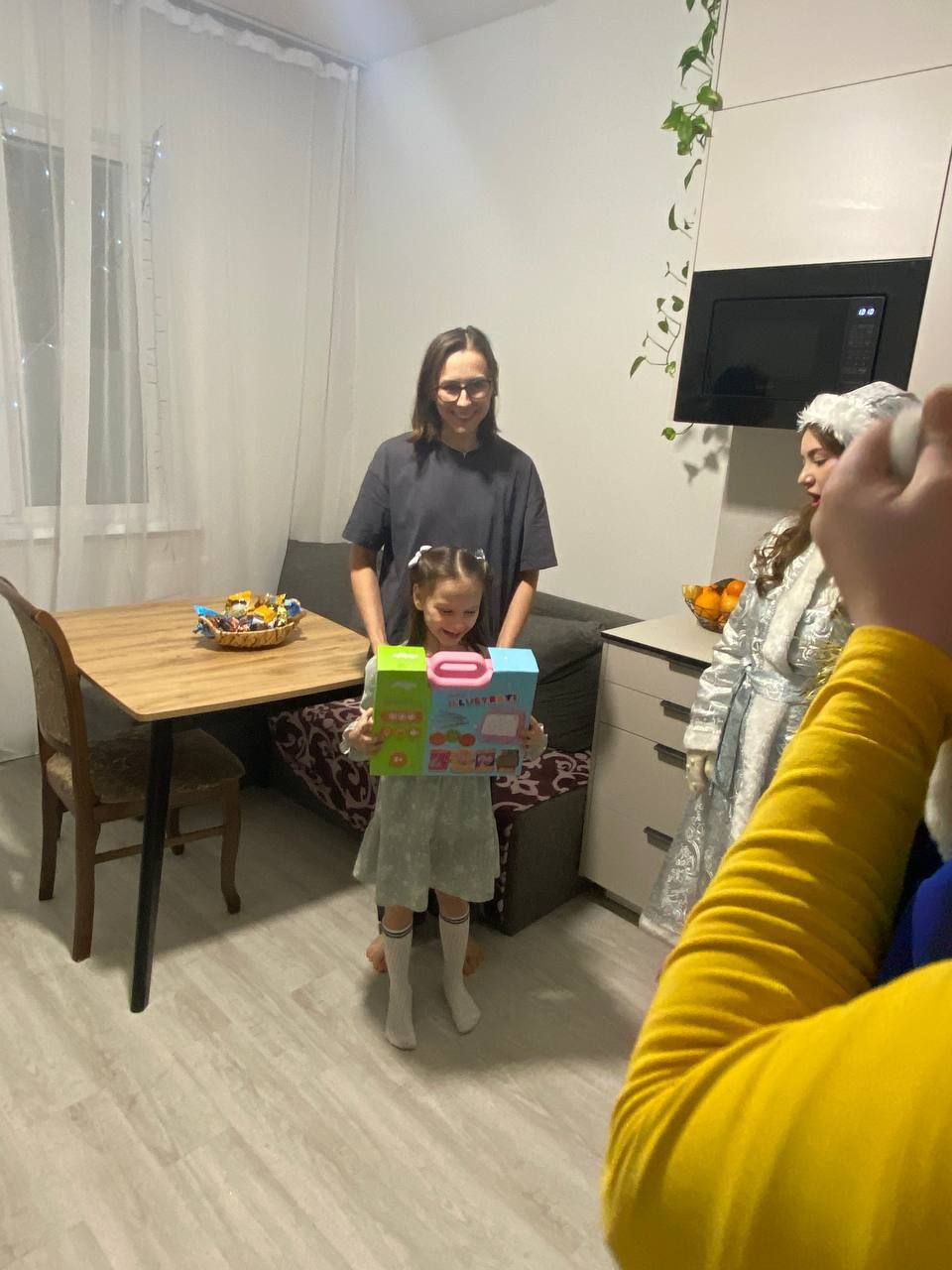 Также рамках данной акции была поздравлена многодетная семья, воспитывающая 11 детей. Здесь, также всем детям было передано по желанному подарку и сладкому гостинцу.