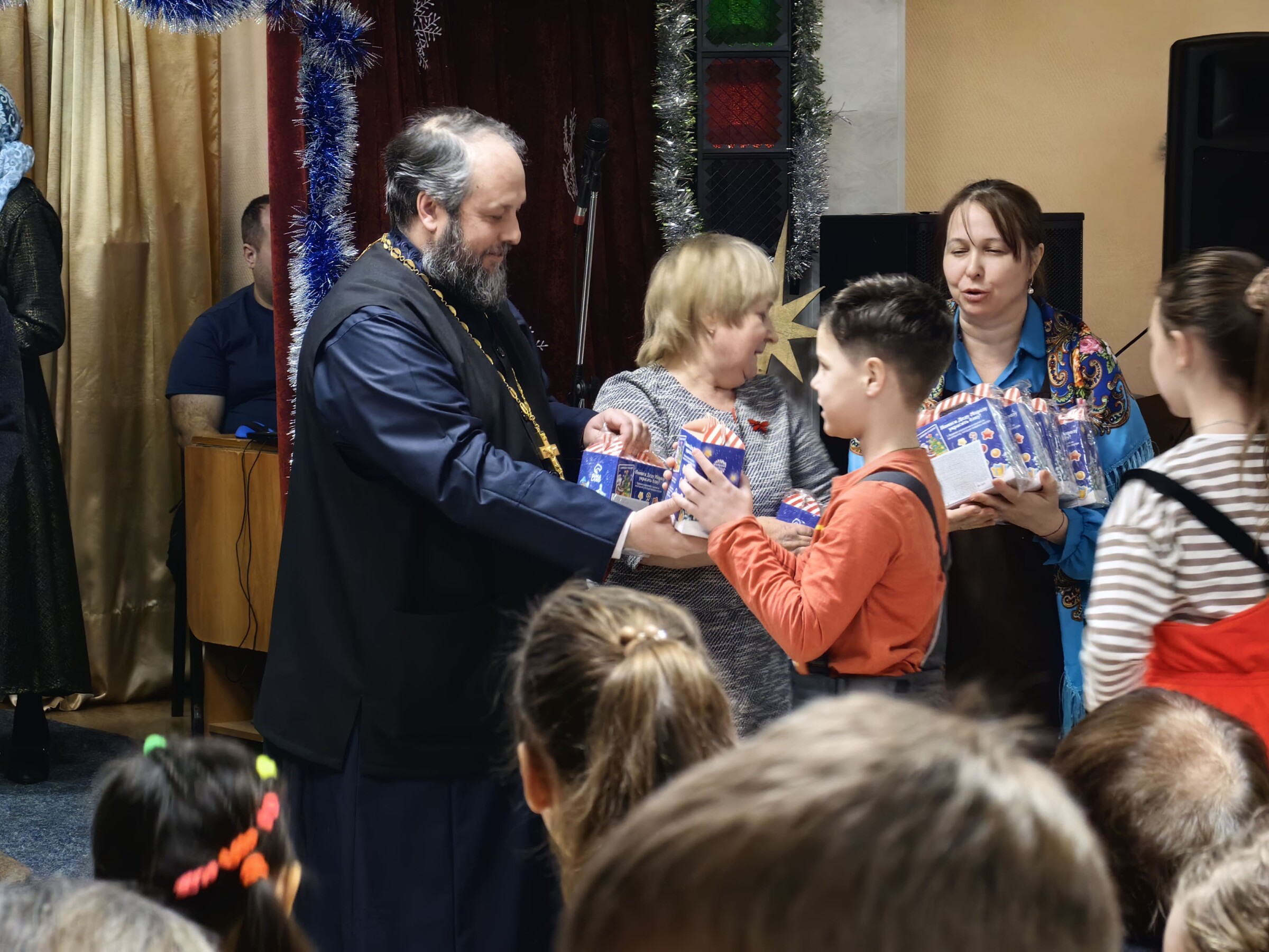 По окончании спектакля настоятель храма в честь святого преподобного Евфимия Великого д. Шапша иеромонах Роман (Киселев) поздравил всех присутствующих с праздниками Рождества Христова и Святого Богоявления, а также вручил детям Рождественские подарки (приобретенных в рамках епархиальной благотворительной акции «Подари Рождество»).