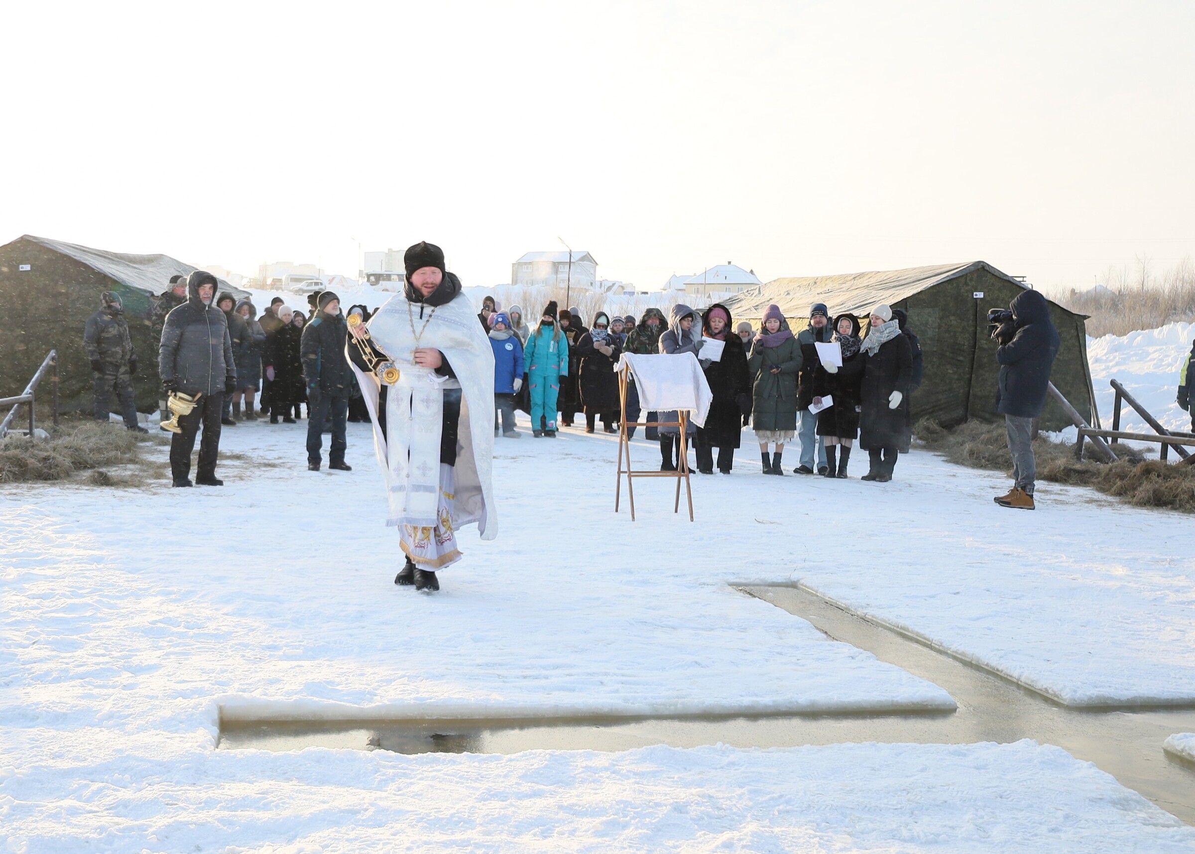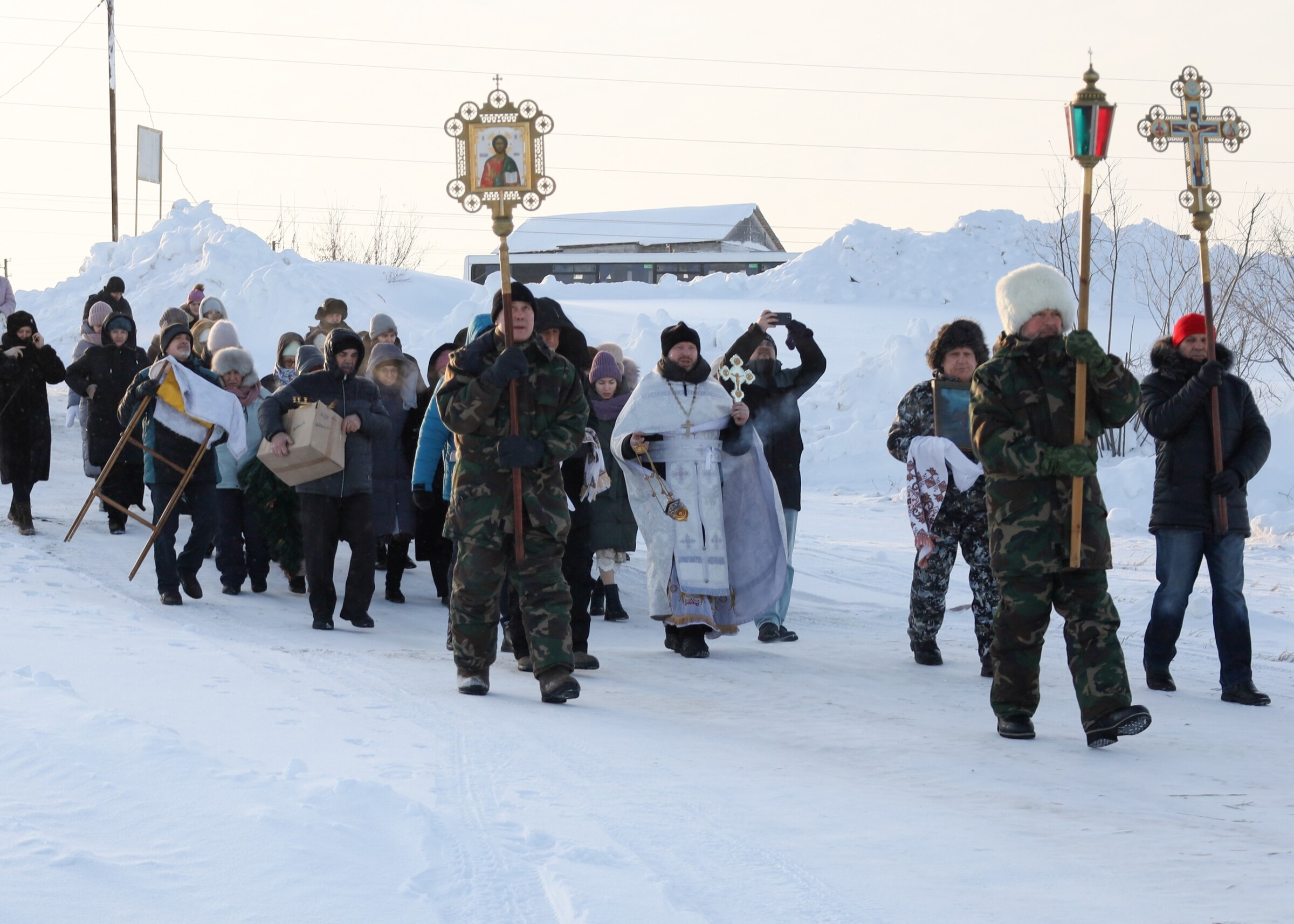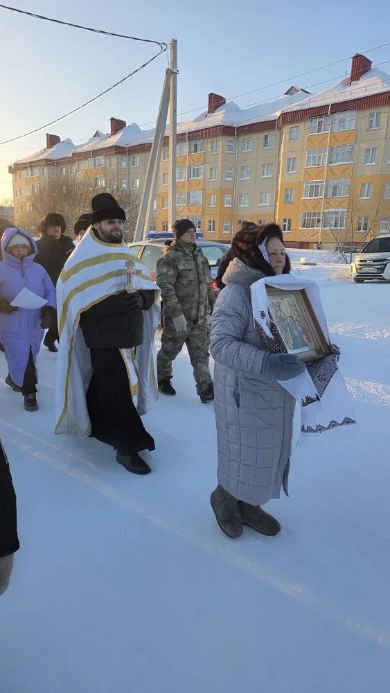 19. 01.2026 иерей Илия Никифоров, настоятель храма в честь Святаго Праведного Иоанна Кронштадтского г. Радужный, совместно с прихожанами храма прошли крестным ходом до реки Аган, где состоялось освящение воды и крещенской купели. Священник поздравил горожан с праздником Крещения Господня и пожелал Божьего благословения всем берущим освящённую воду.