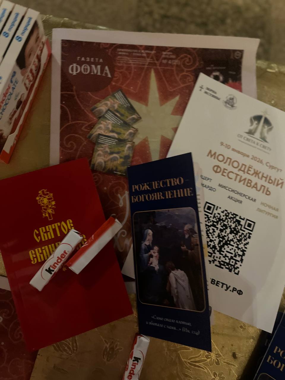16.01.2026 в рамках благотворительной акции «Подари Рождество» сестры милосердия организовали встречу для молодых инвалидов города и волонтеров «серебряного» возраста БУ ХМАО-Югры «Нефтеюганский комплексный центр социального обслуживания населения». Посетили храм Святого Духа, где прочитали акафист святой блаженной Матроне Московской и приложились к ковчегу с частицей мощей святой. Иерей Георгий Полуянов окропил участников святой водой и рассказал о важности и значении Таинств Церкви в жизни христианина. Все приложились к ковчегу с дарами младенцу Христу и посетили Вертеп рожденного Богомладенца, где пропели тропарь, кондак и величание с зажжёнными свечами. После этого мероприятие продолжилось чаепитием с колядками и завершилось вручением сладких подарков всем участникам.