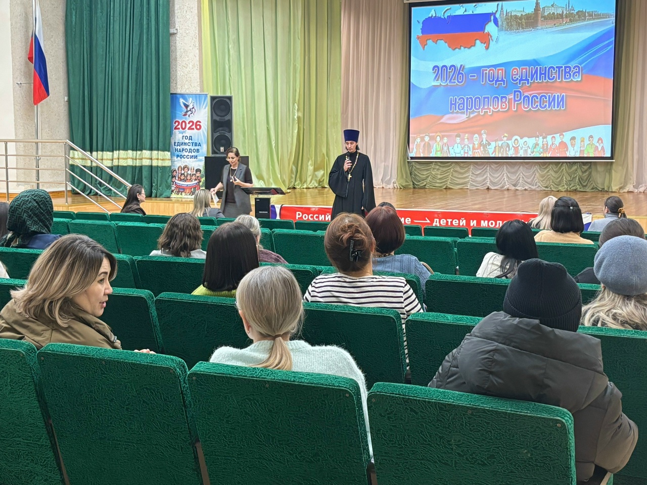 Среди выступающих были: директор нашей школы Наталья Витальевна Зинякова, заместитель директора по воспитательной работе, модератор собрания-Патимат Ибрагимовна Зайнутдинова, заместитель директора по учебно-воспитательной работе -Волынец Ирина Александровна, иерей Богдан Черныш, клирик Прихода храма в честь великомученика Феодора Стратилата, врач-педиатр, заведующий детским отделением БУ «Федоровской городской больницы» -Попова Анастасия Андреевна, психолог центра «Социальная помощь семье и детям «Апрель»-Абдулова Аида Шахиновна.