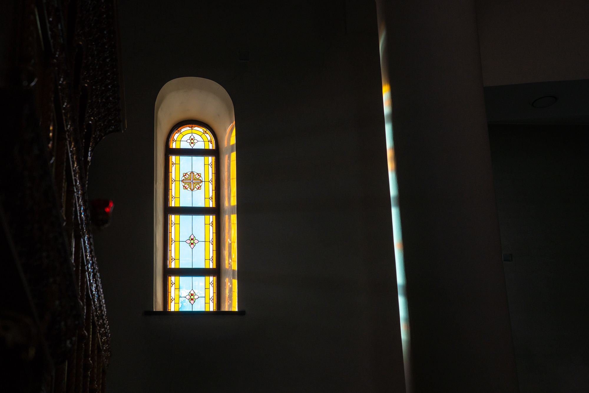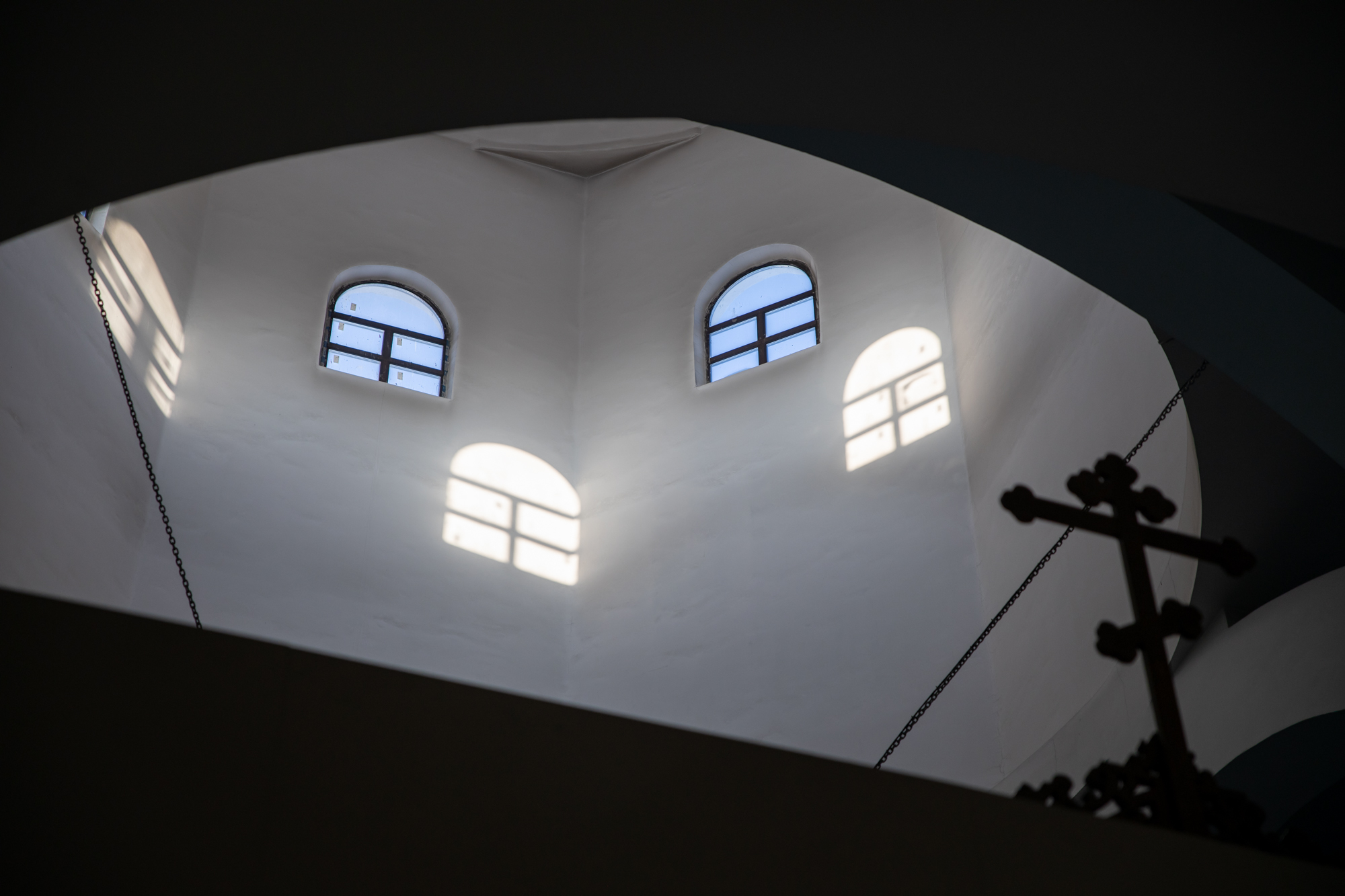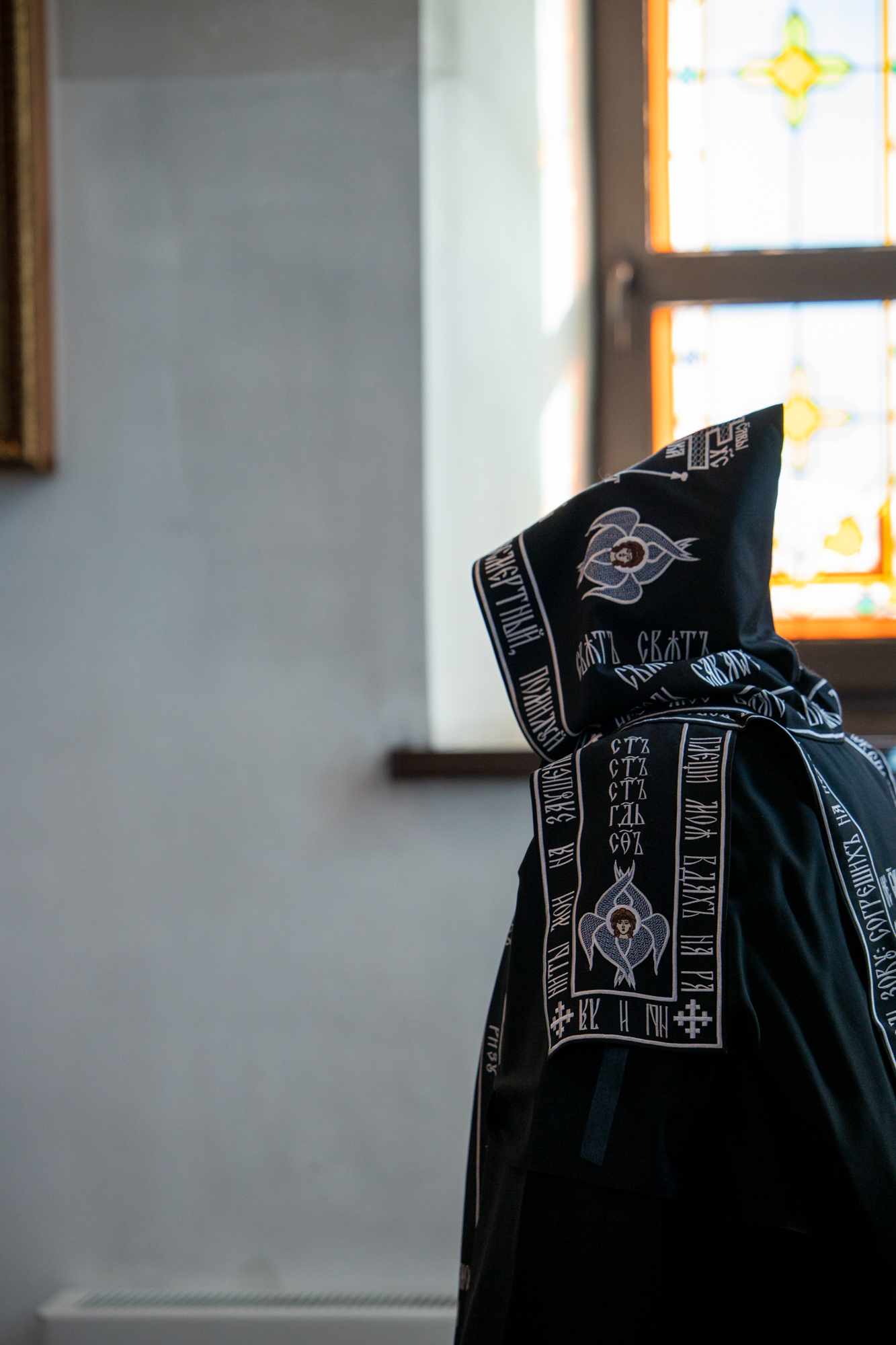 1. В убранстве храма преобладают черные тона. Свет во время богослужений включается редко.
