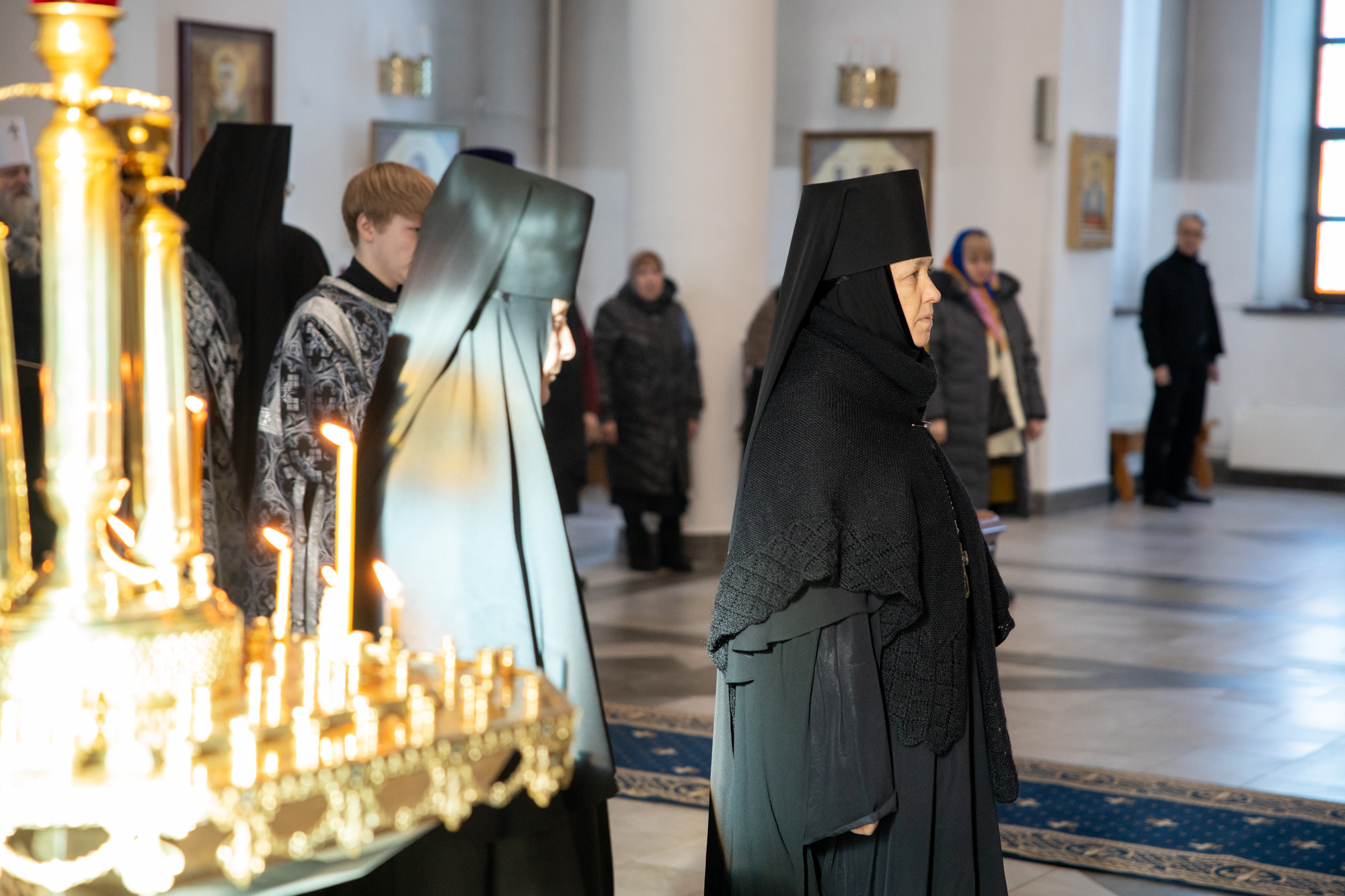 26 февраля 2026 года, в четверг первой седмицы Великого поста митрополит Ханты-Мансийский и Сургутский Павел молился за уставным богослужением в соборном храме женского монастыря в честь иконы Божией Матери «Умиление» г. Сургута.